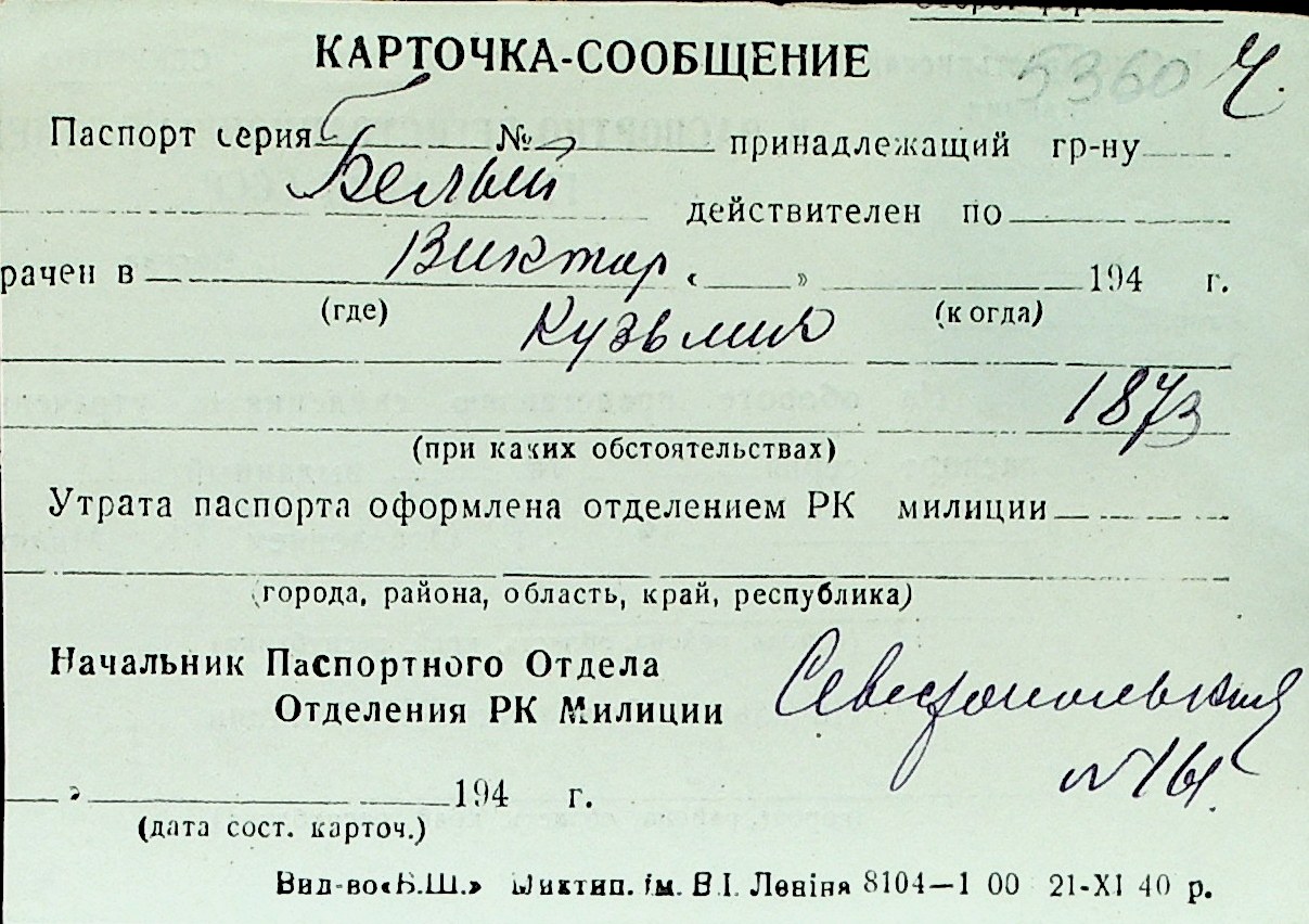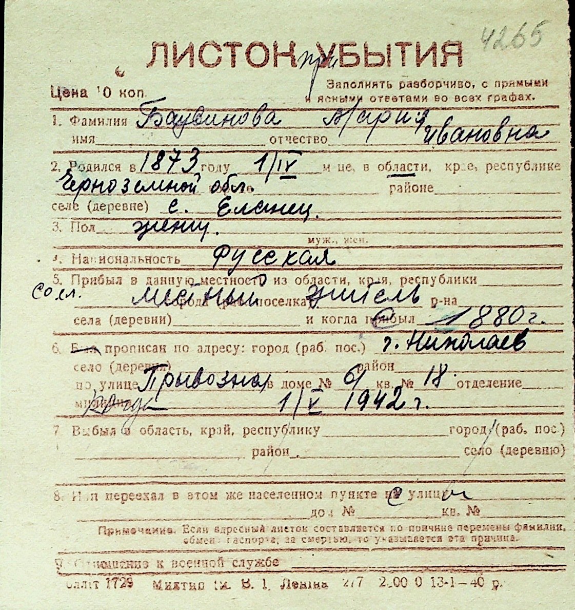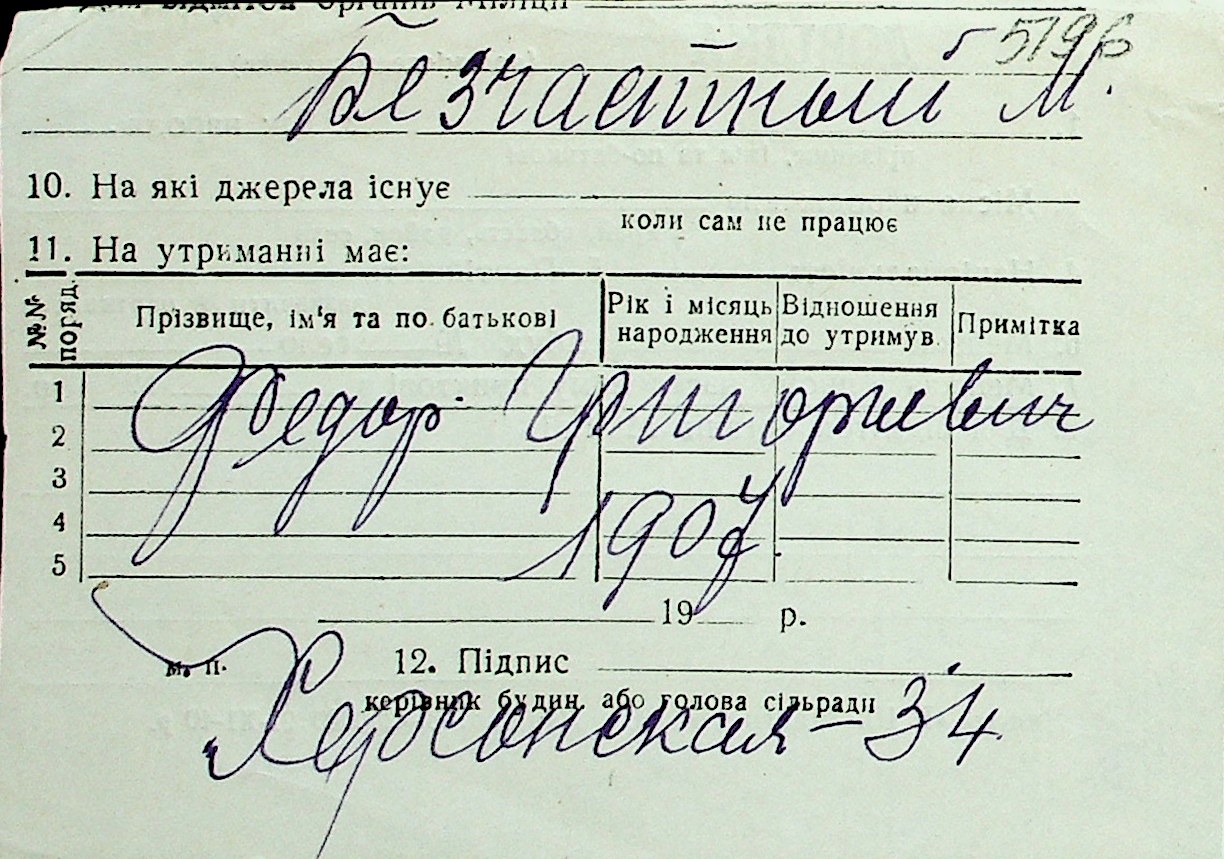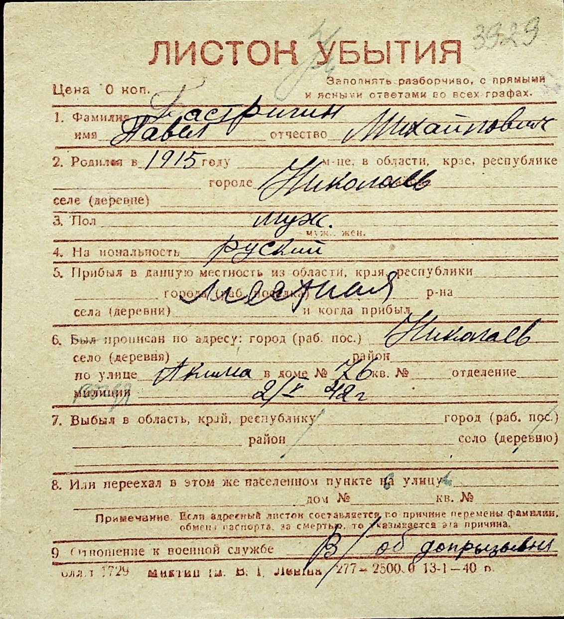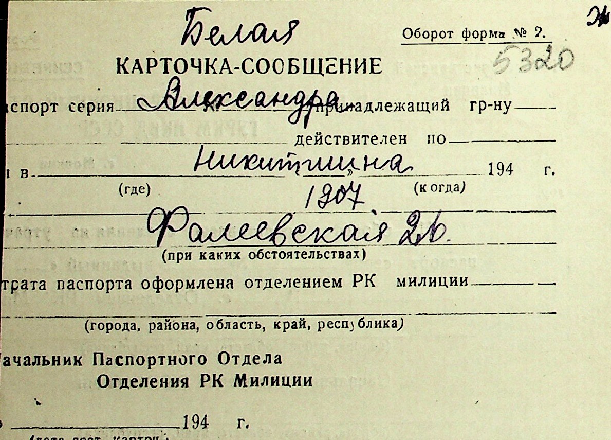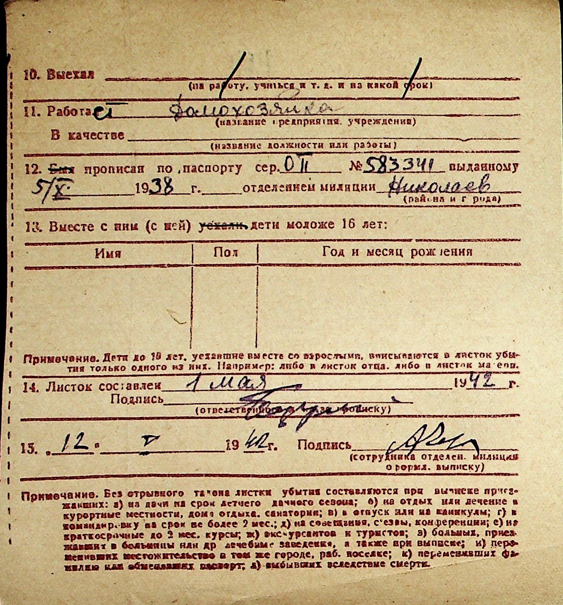 ◦ ◦ Перелік карток на осіб, які мешкали у м. Миколаїв у період окупації 1941–1944 років