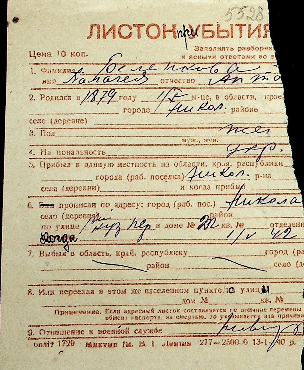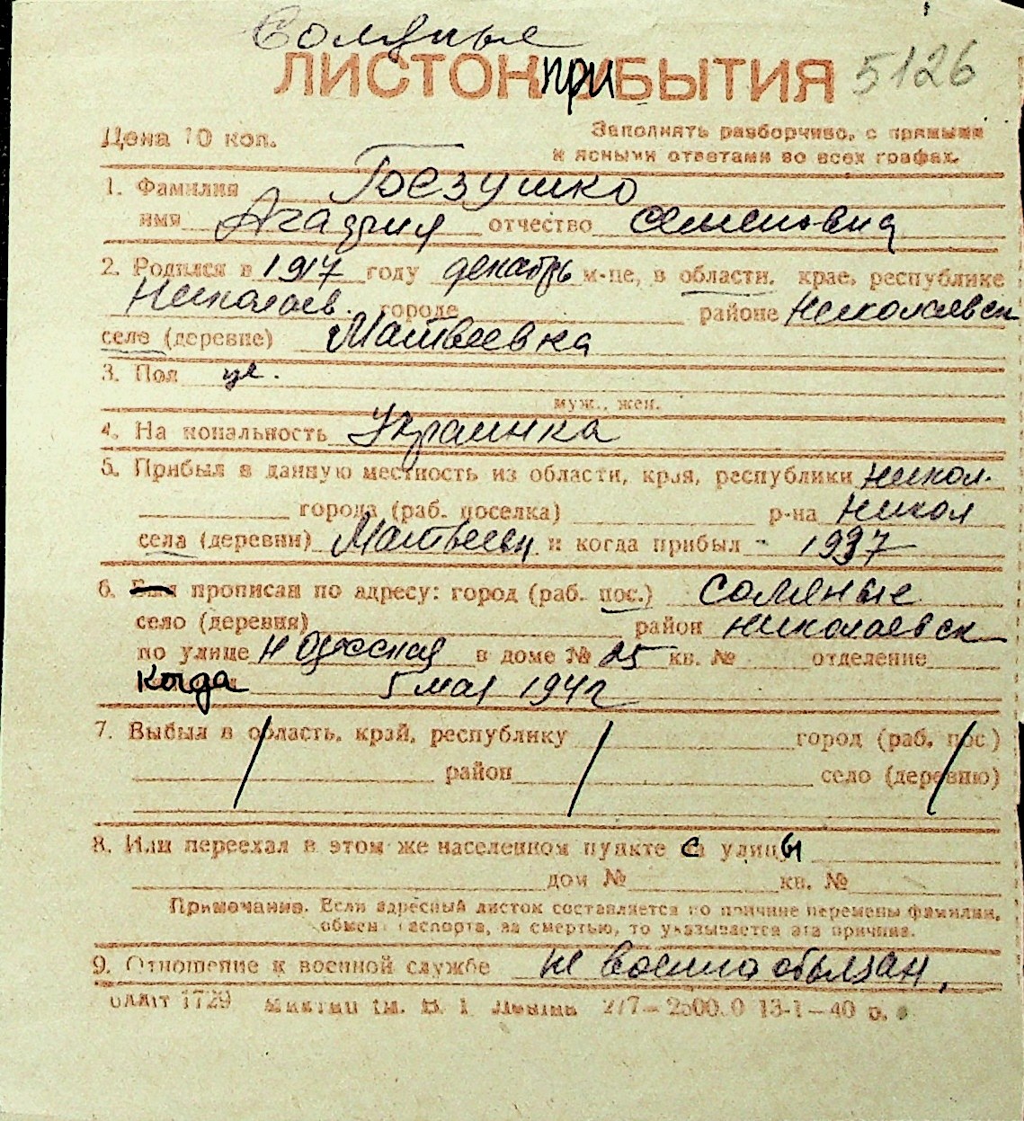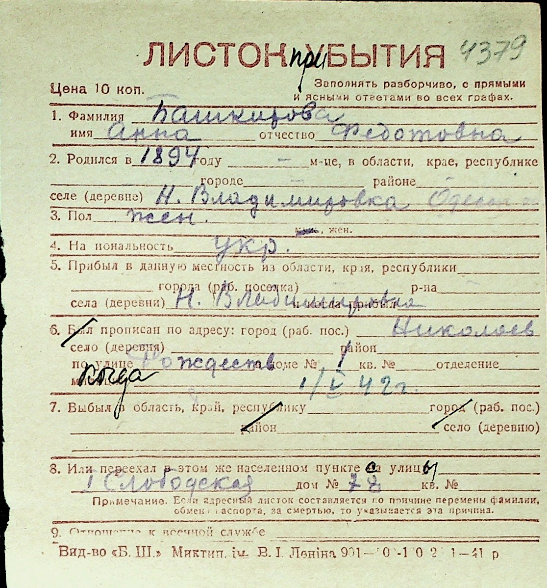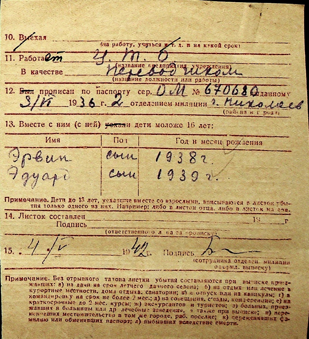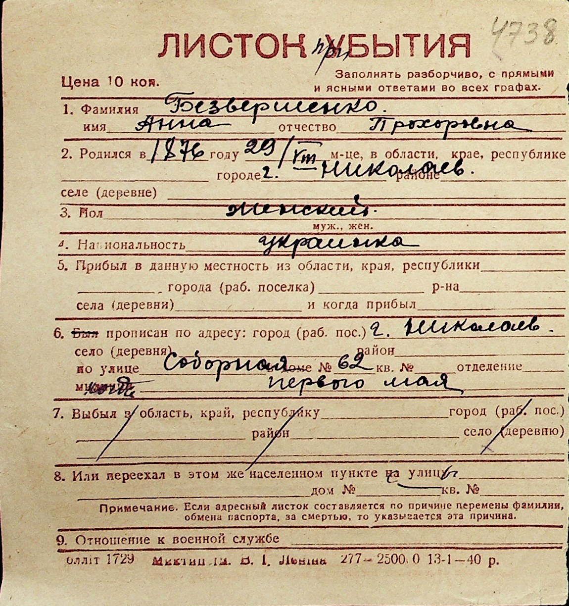 ◦ ◦ Перелік карток на осіб, які мешкали у м. Миколаїв у період окупації 1941–1944 років