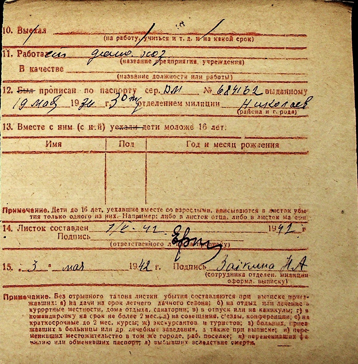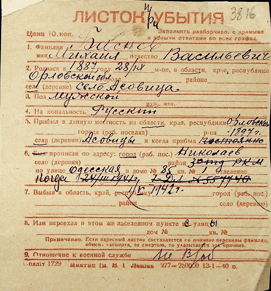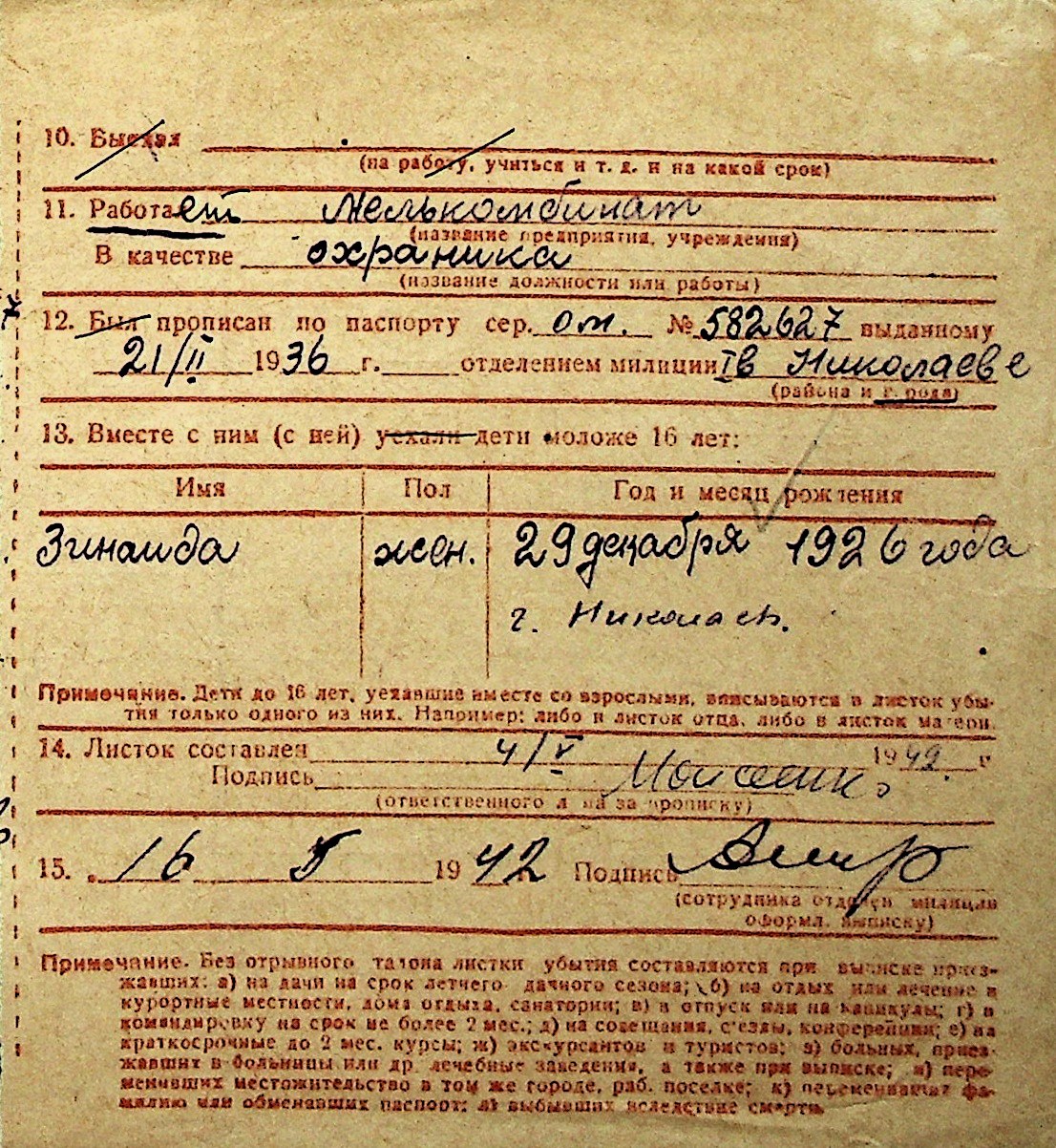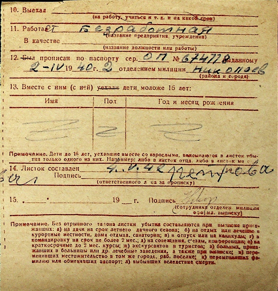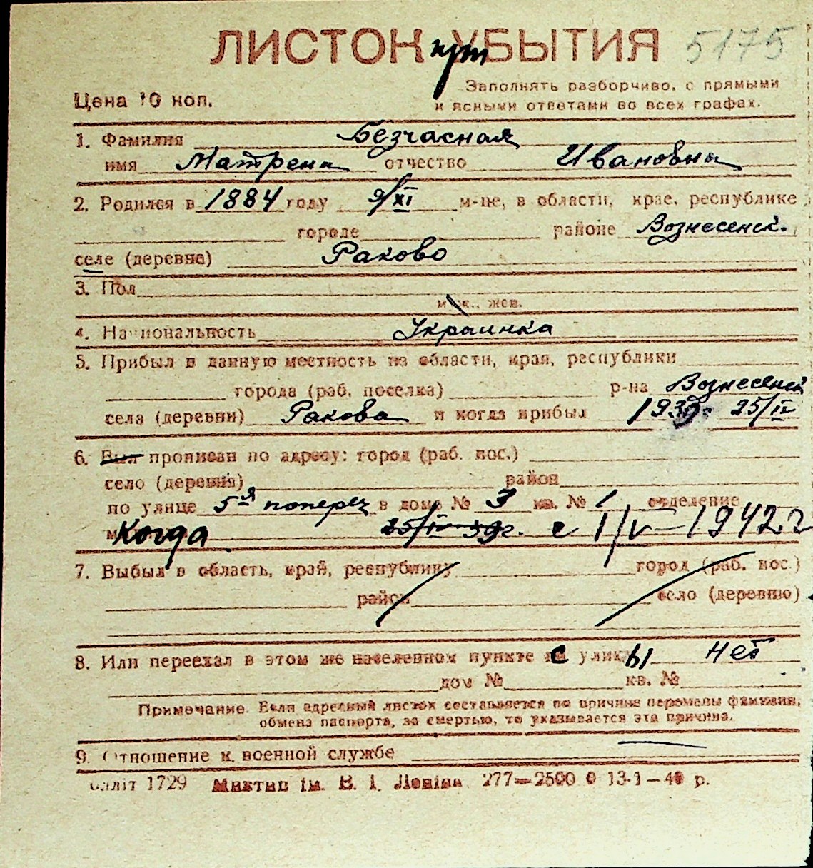 ◦ ◦ Перелік карток на осіб, які мешкали у м. Миколаїв у період окупації 1941–1944 років