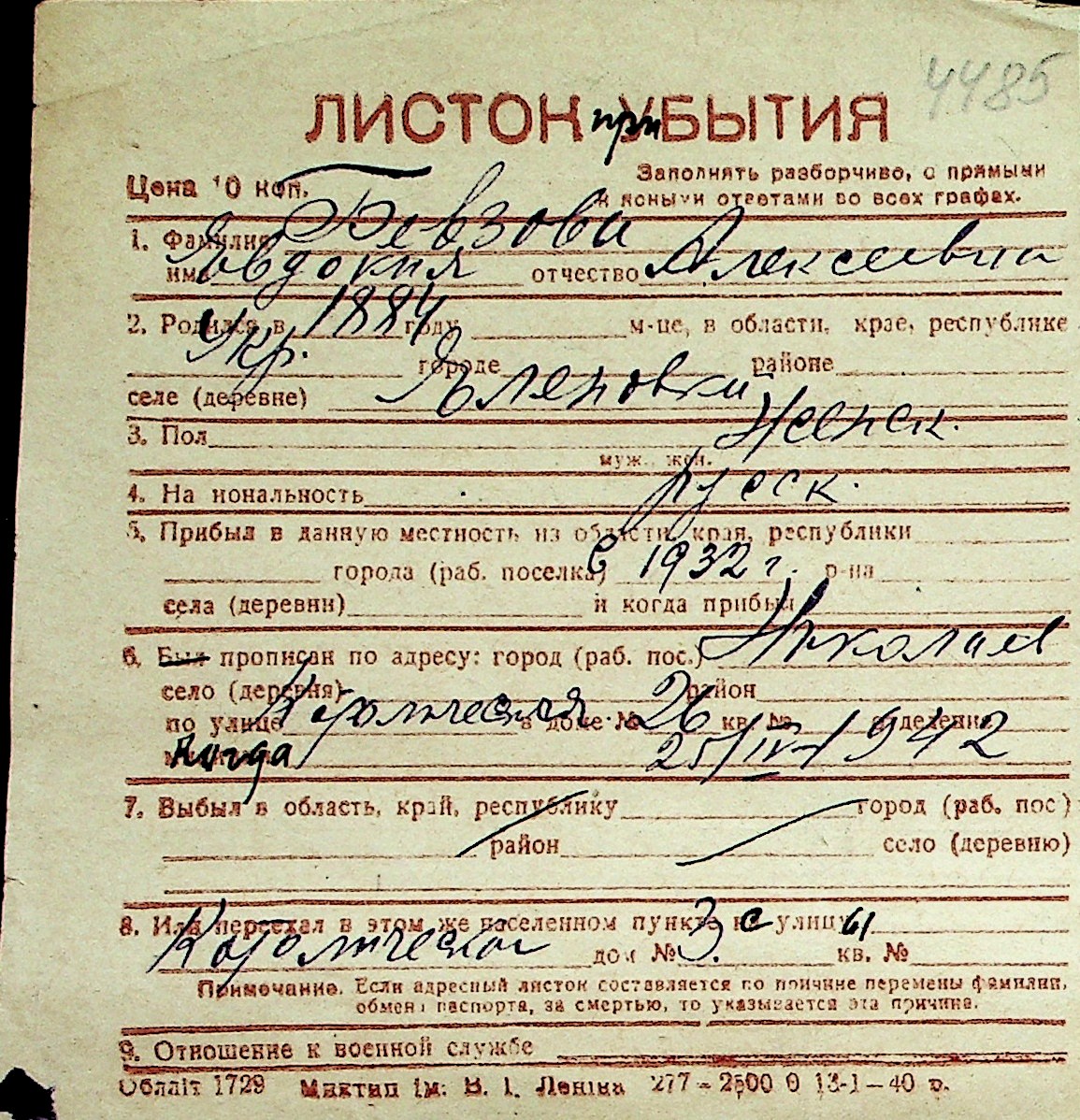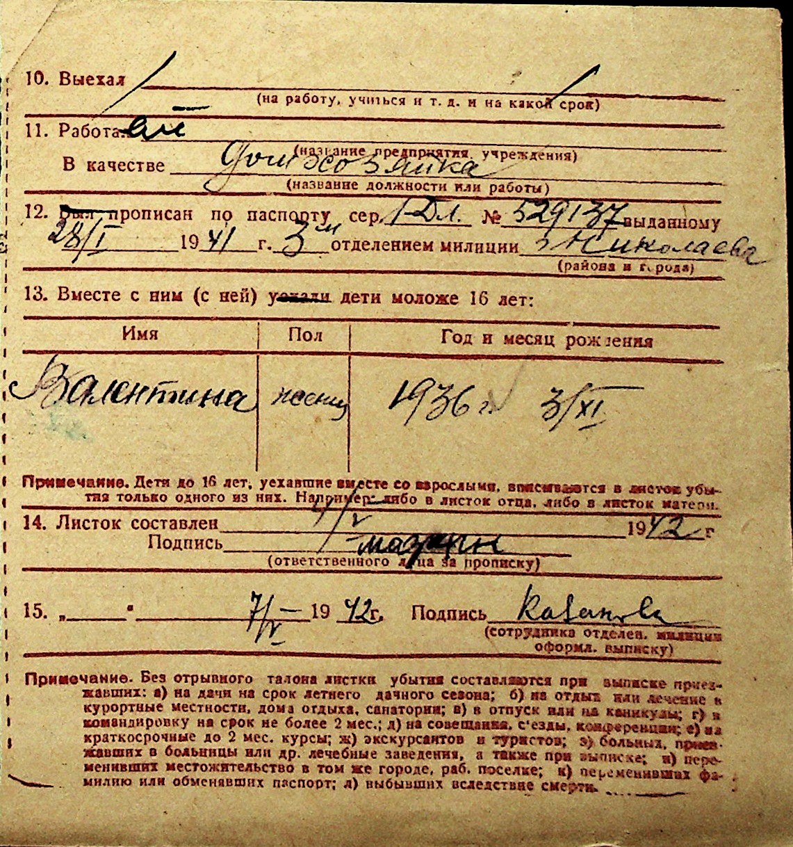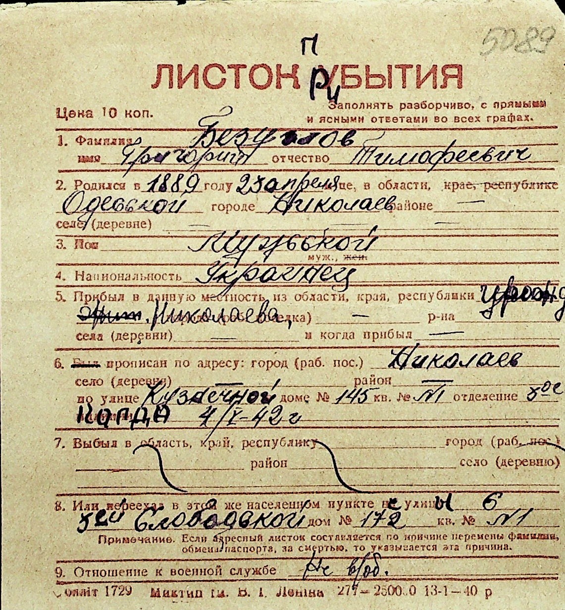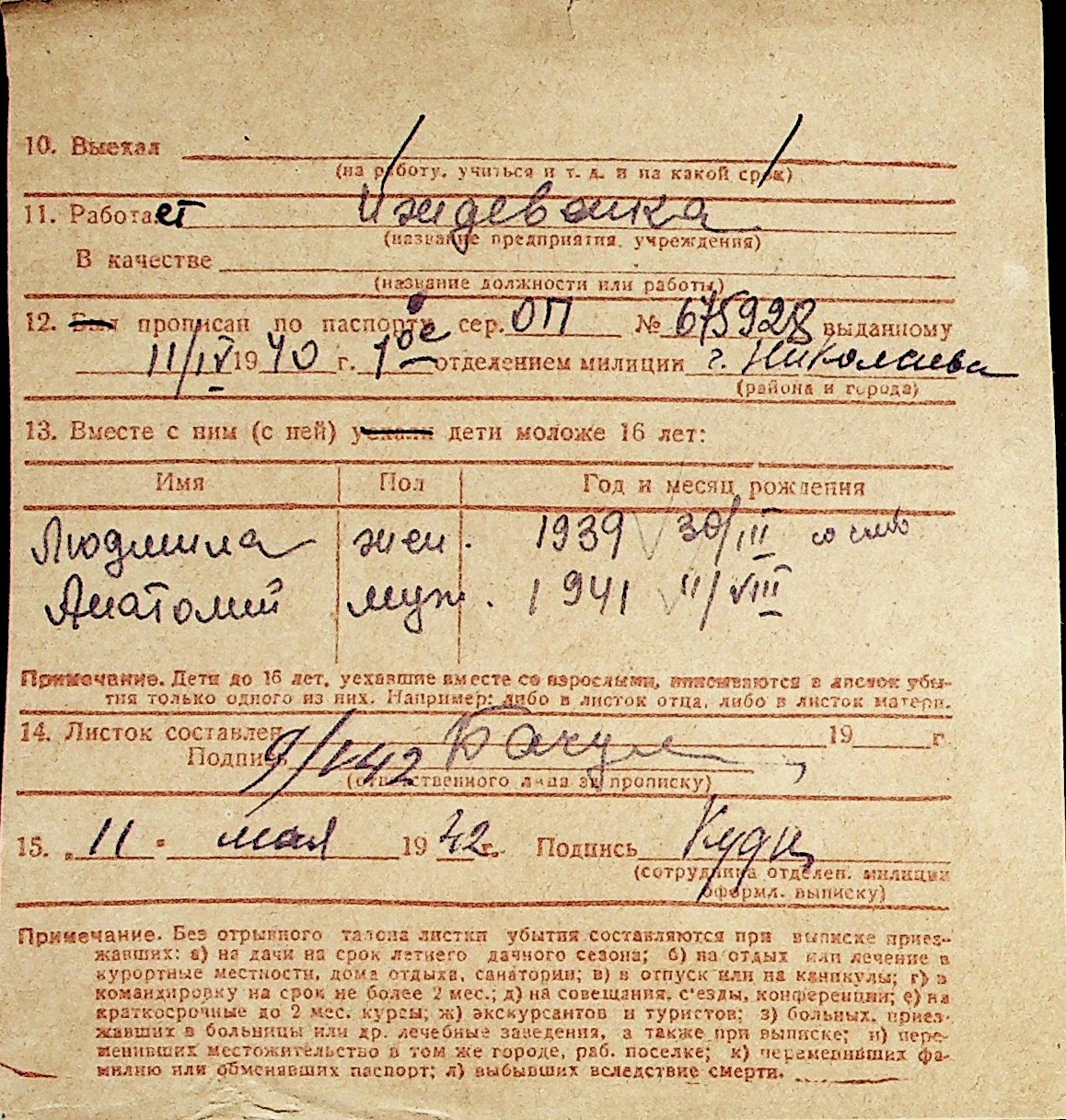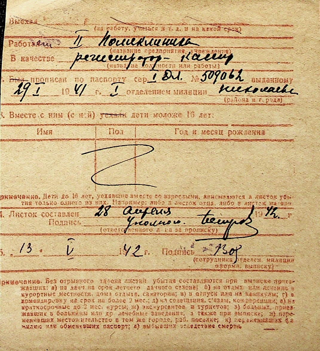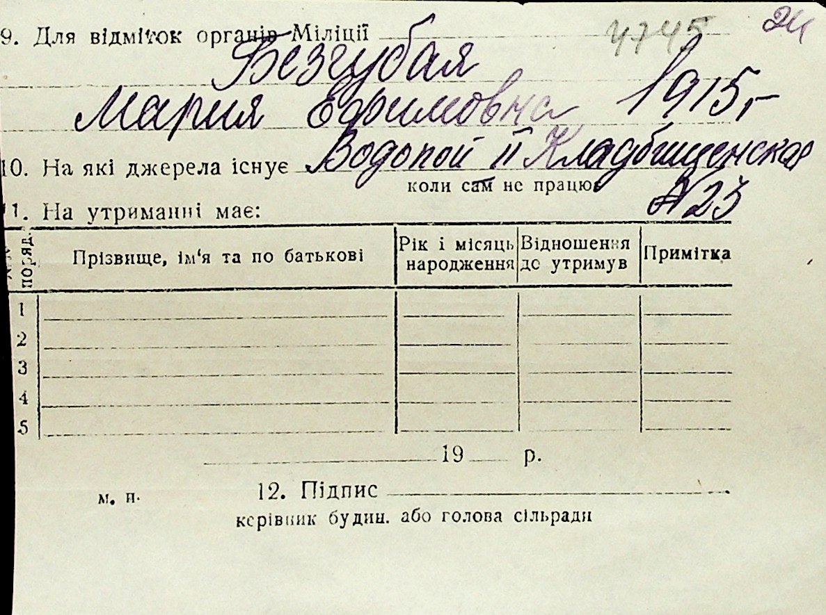 ◦ ◦ Перелік карток на осіб, які мешкали у м. Миколаїв у період окупації 1941–1944 років