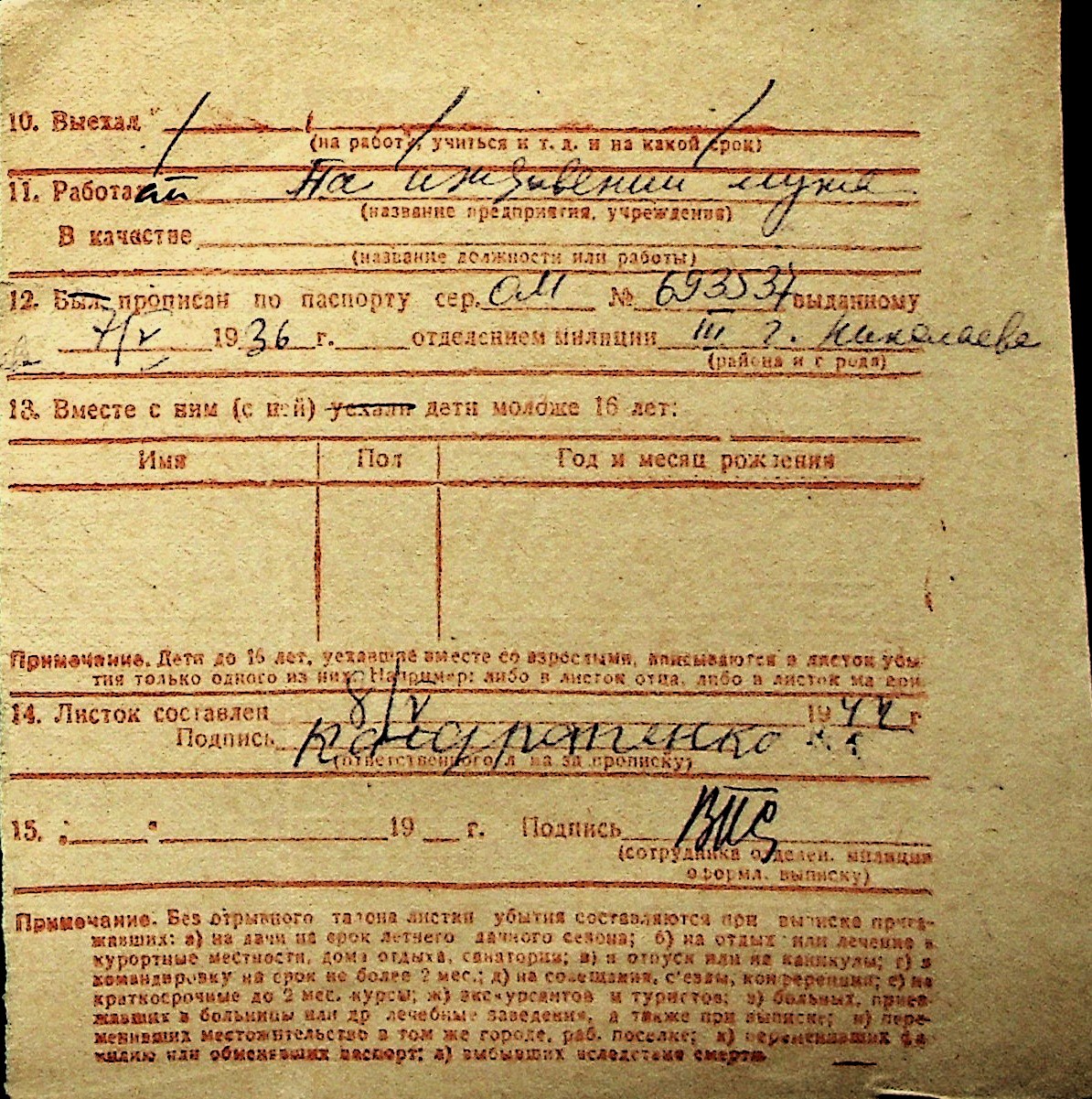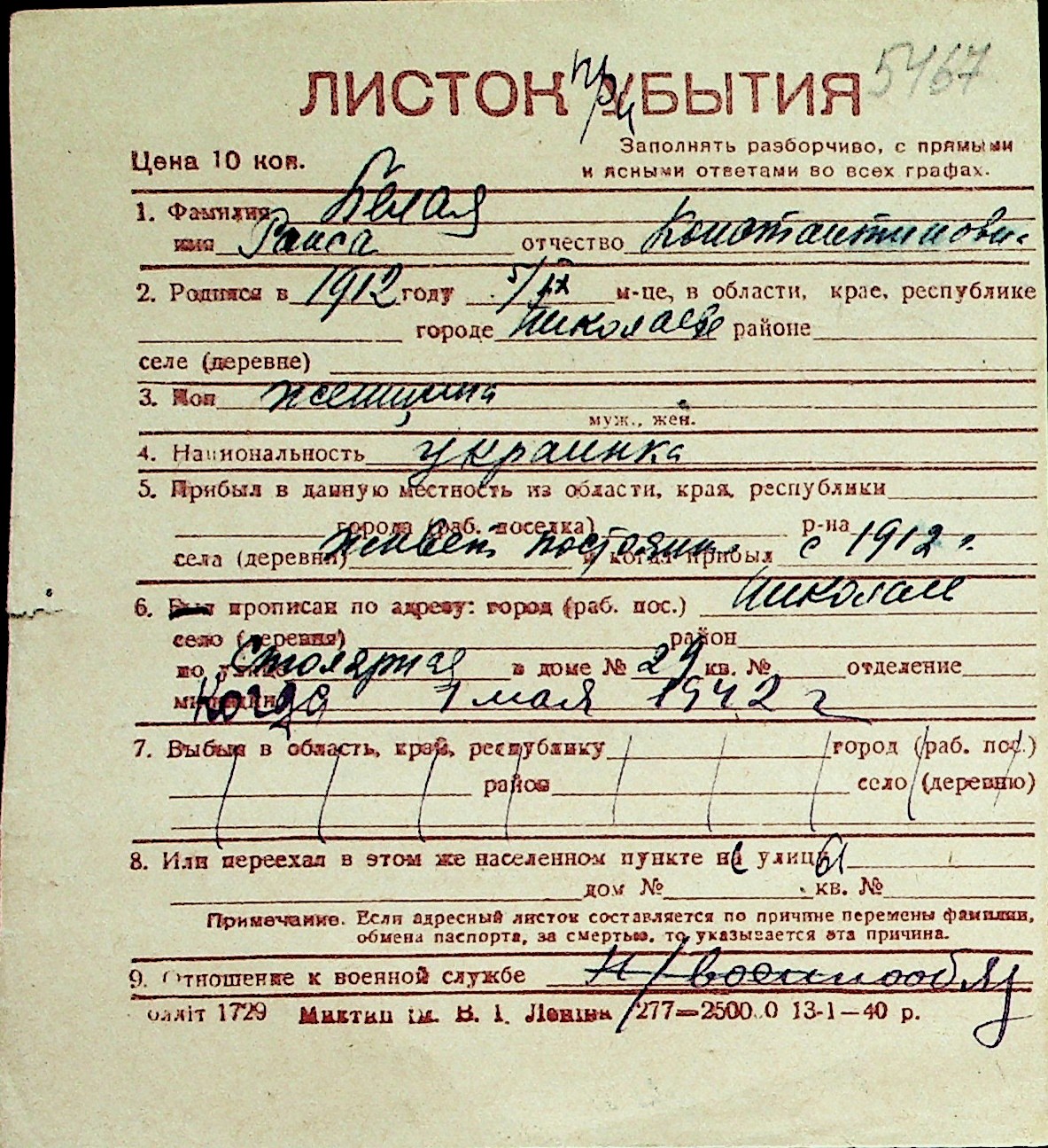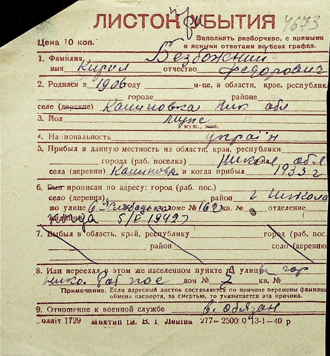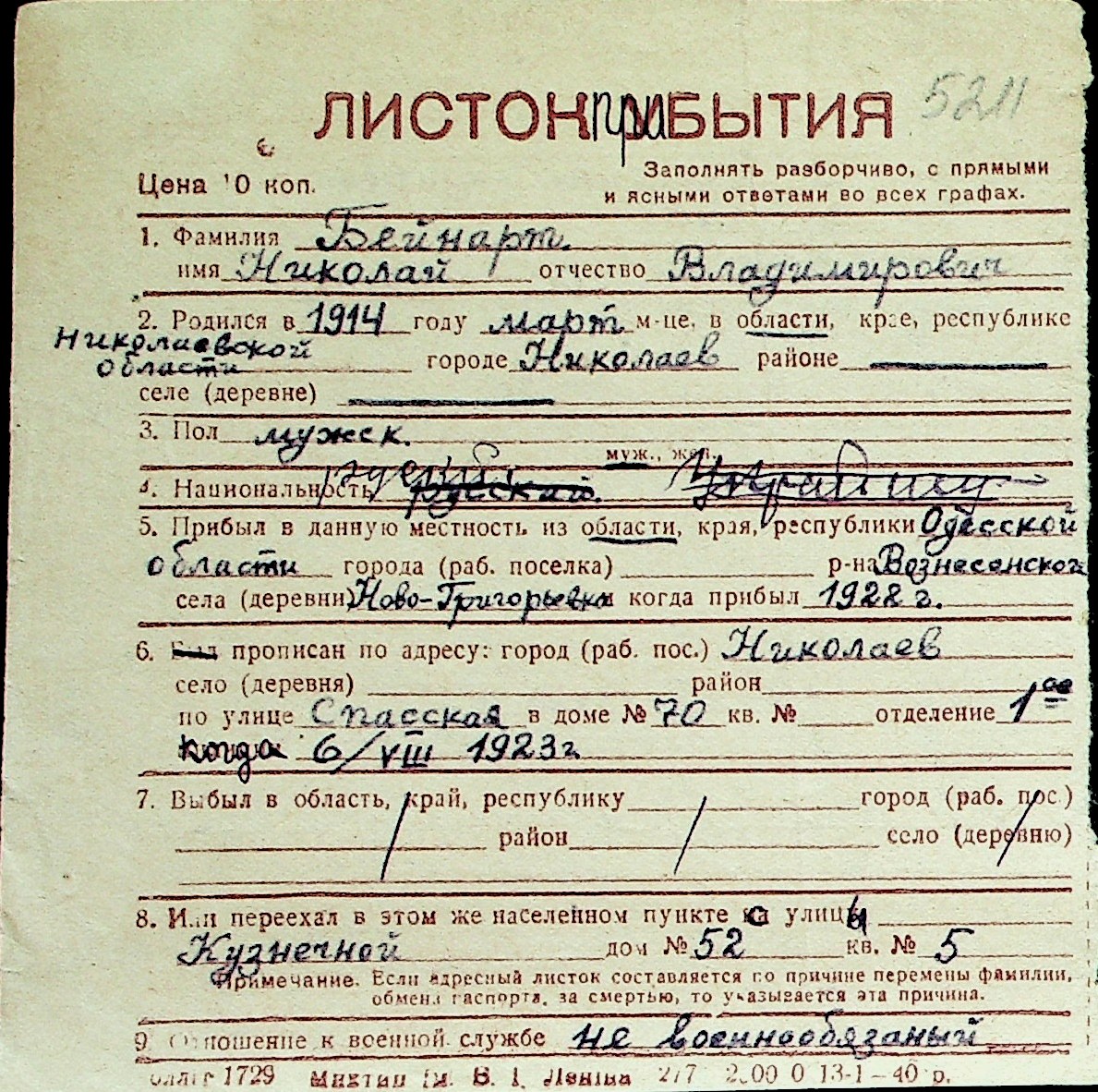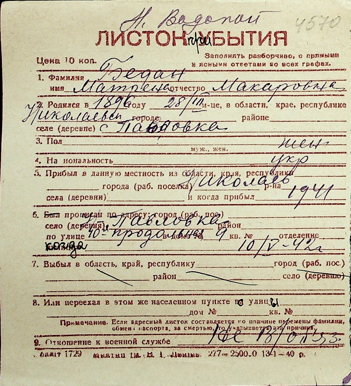 ◦ ◦ Перелік карток на осіб, які мешкали у м. Миколаїв у період окупації 1941–1944 років