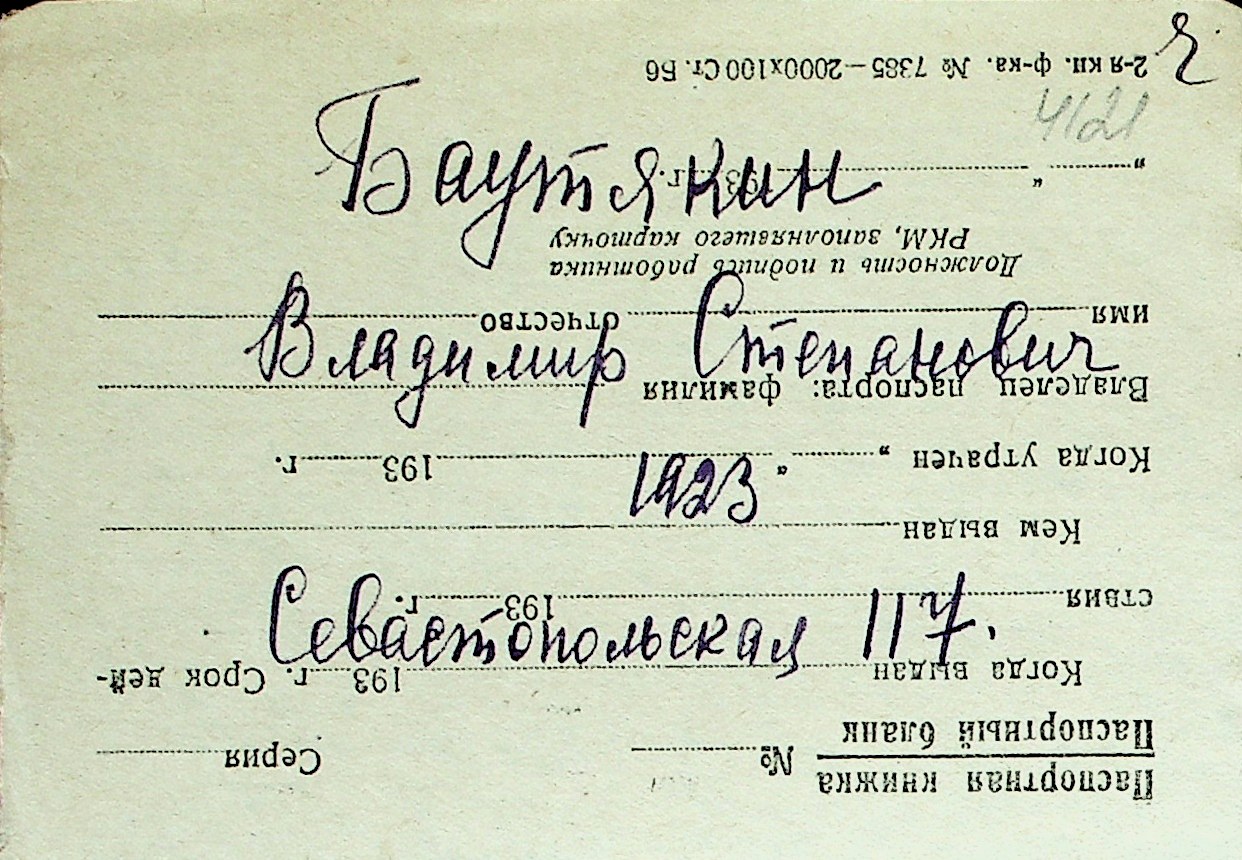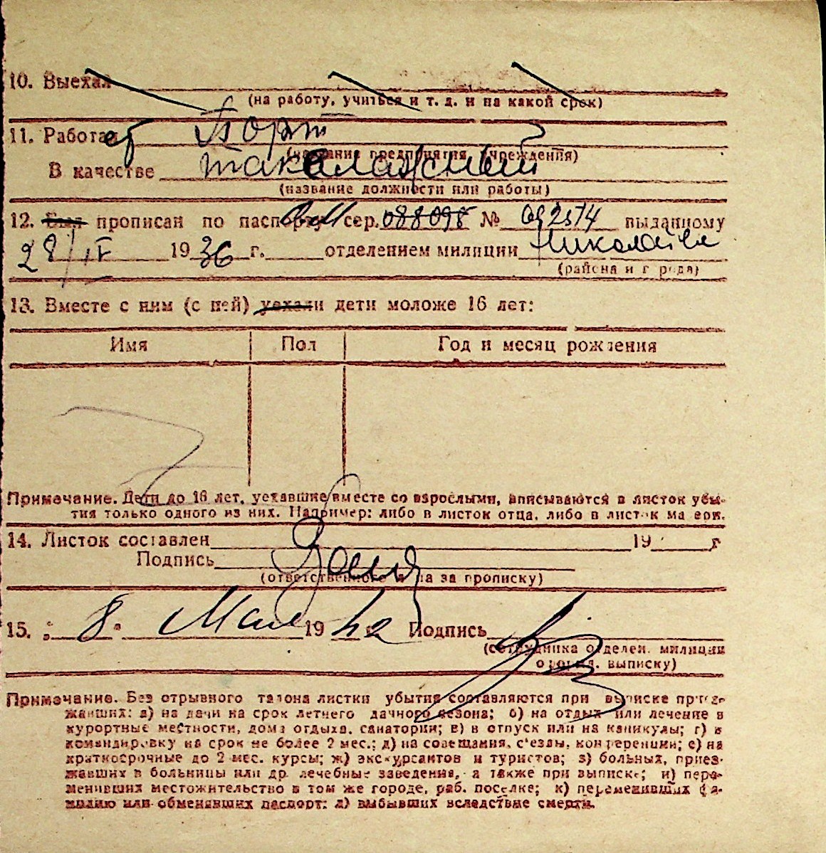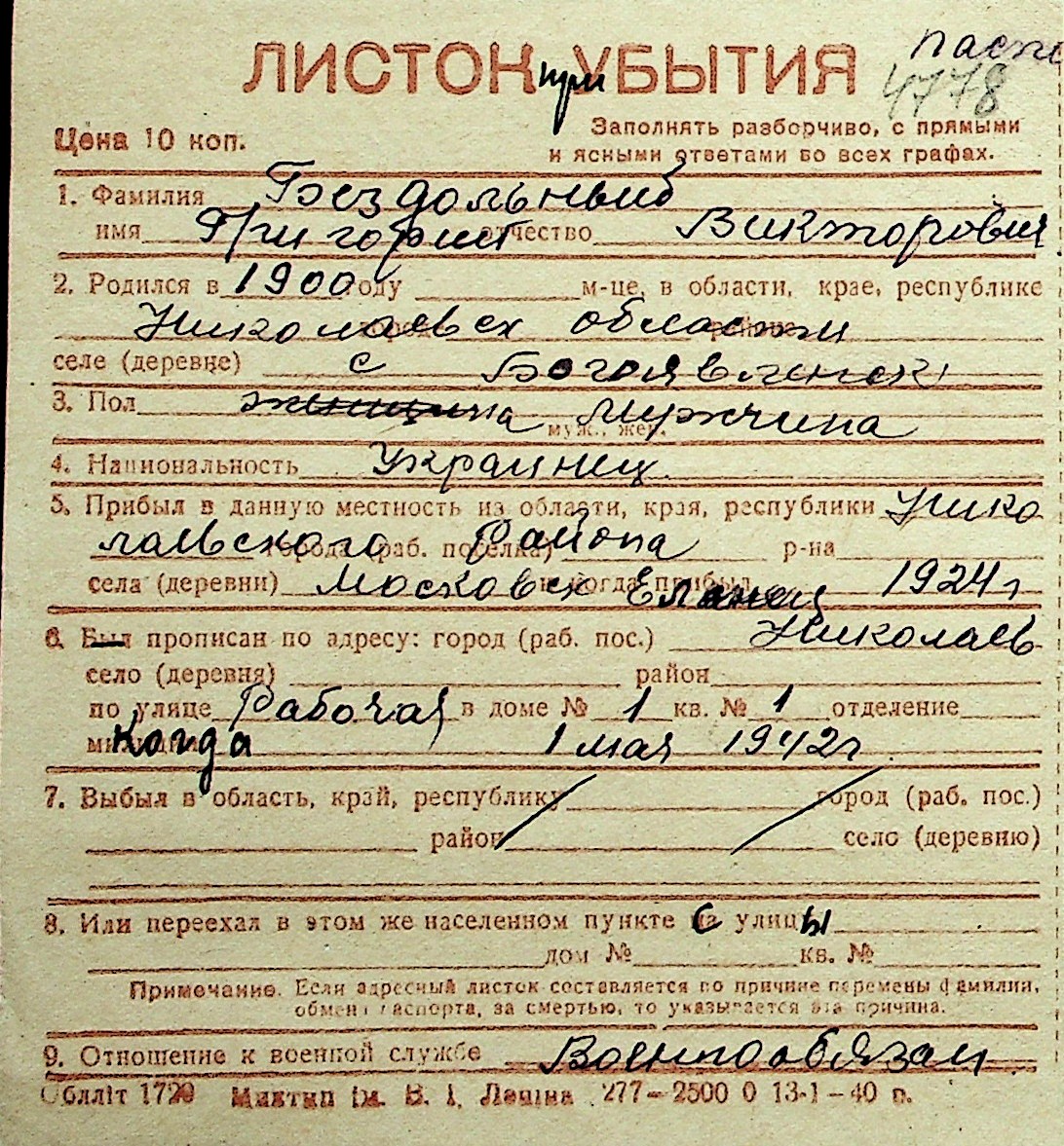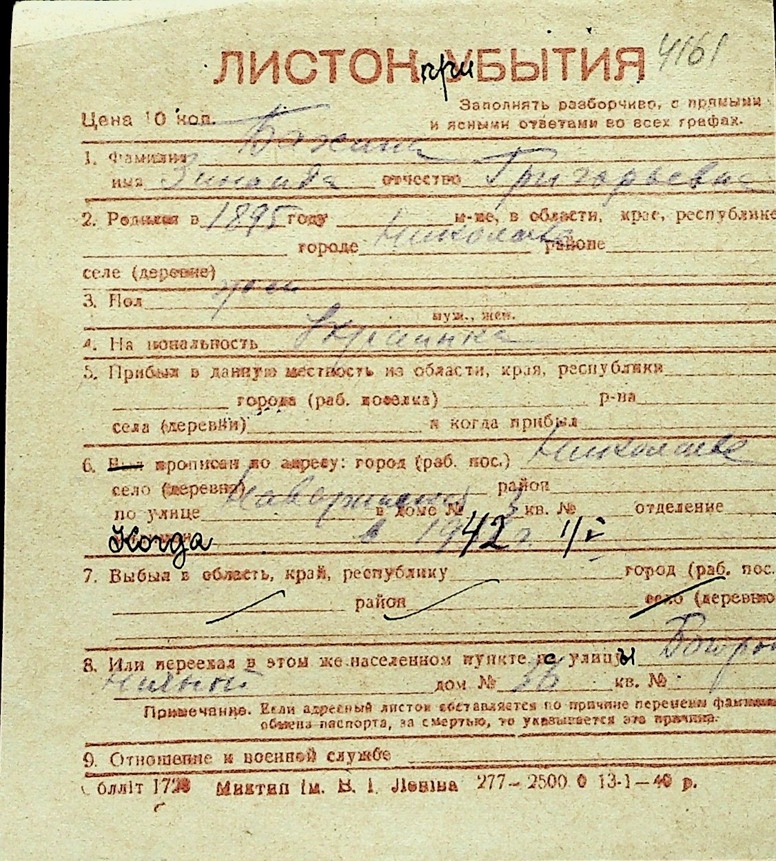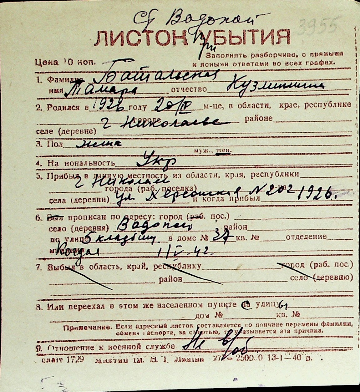 ◦ ◦ Перелік карток на осіб, які мешкали у м. Миколаїв у період окупації 1941–1944 років