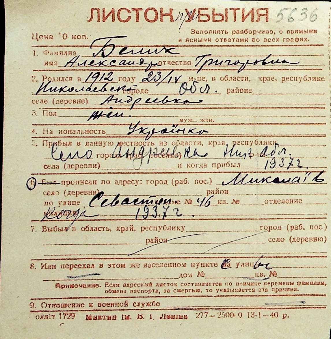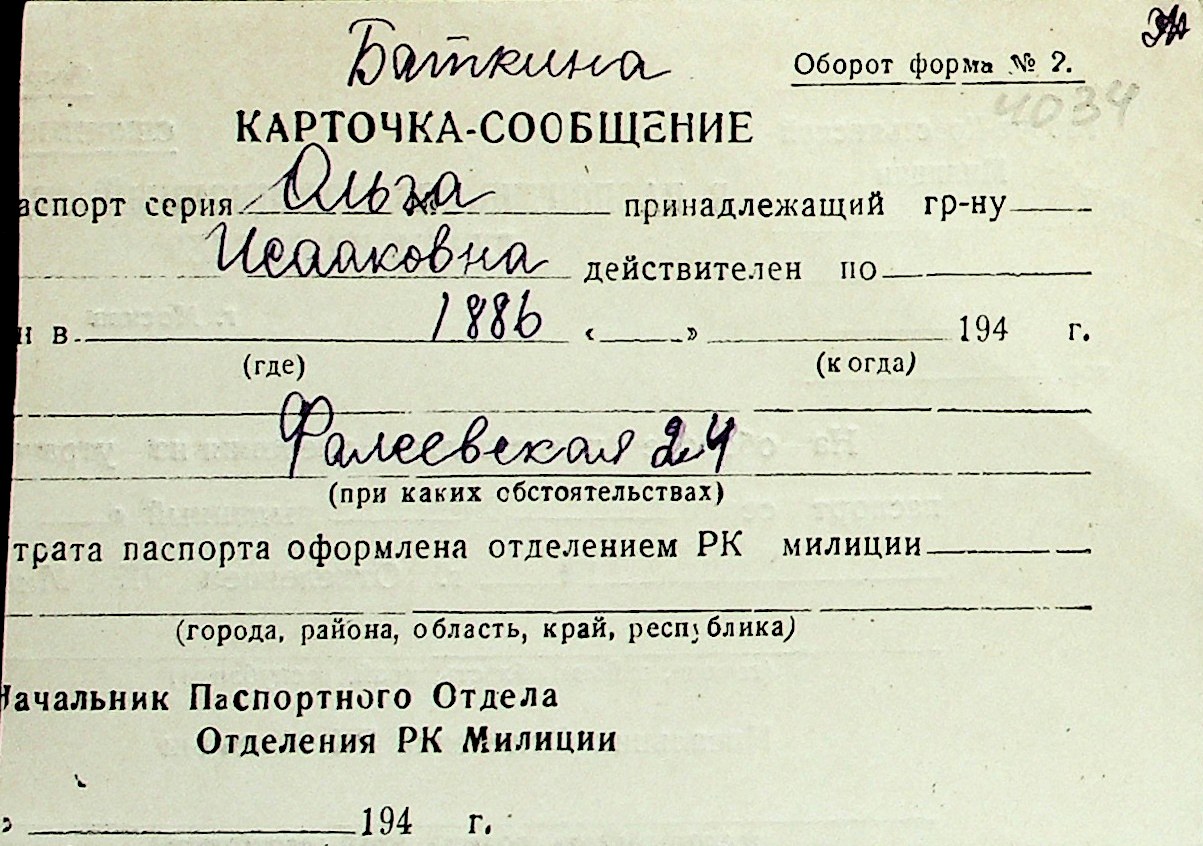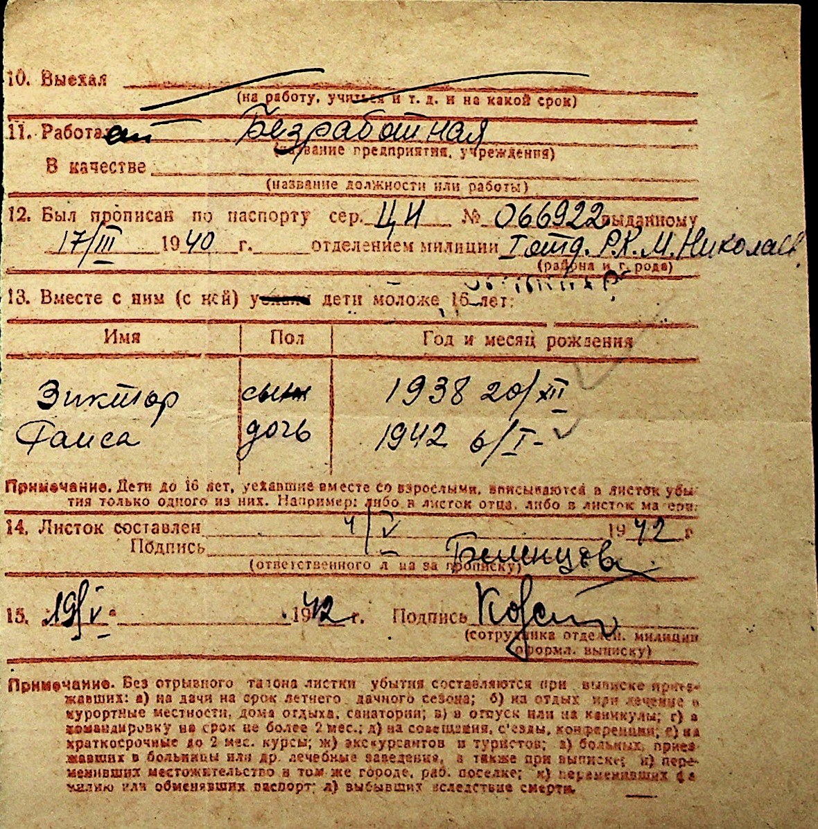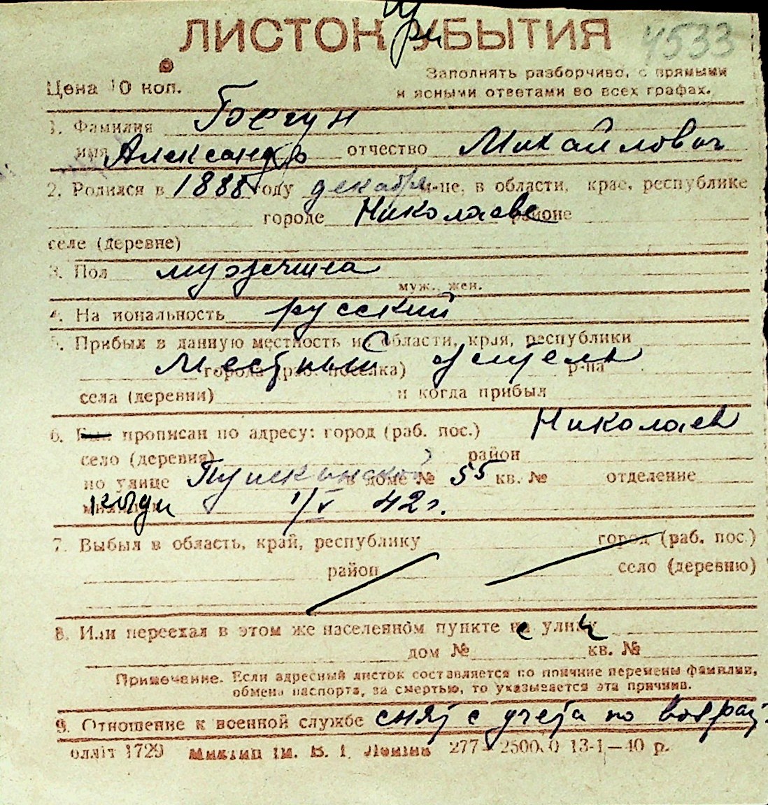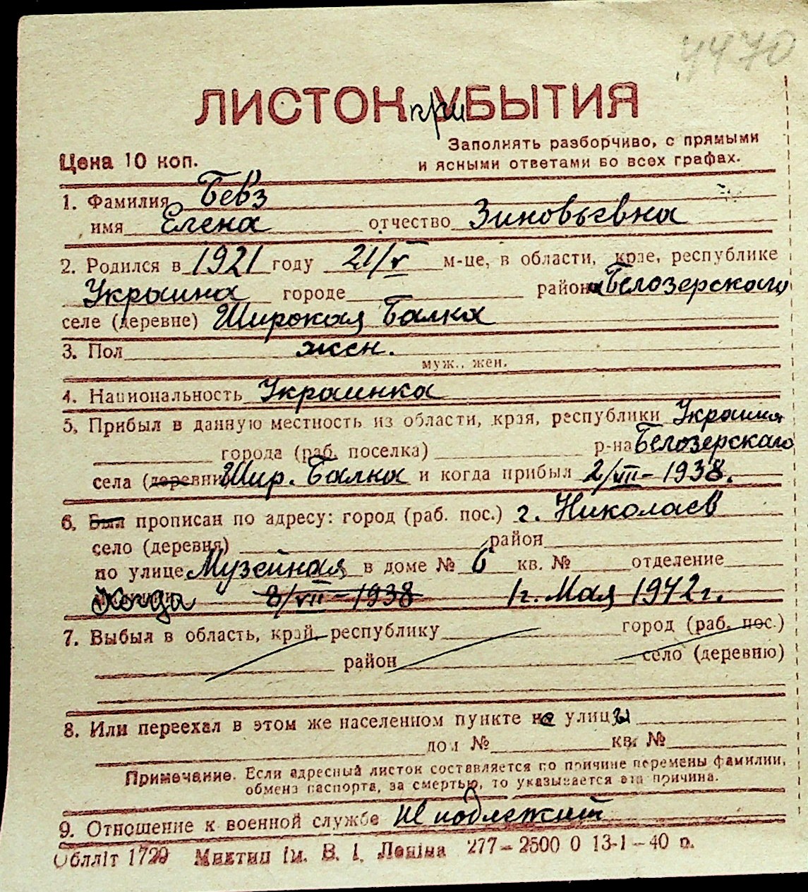 ◦ ◦ Перелік карток на осіб, які мешкали у м. Миколаїв у період окупації 1941–1944 років
