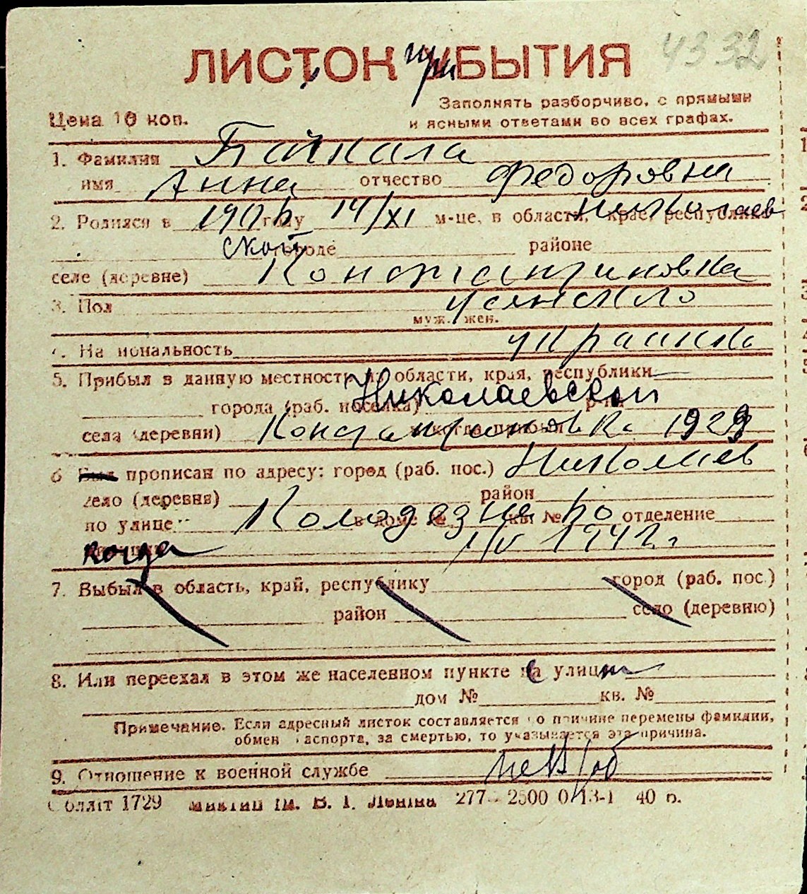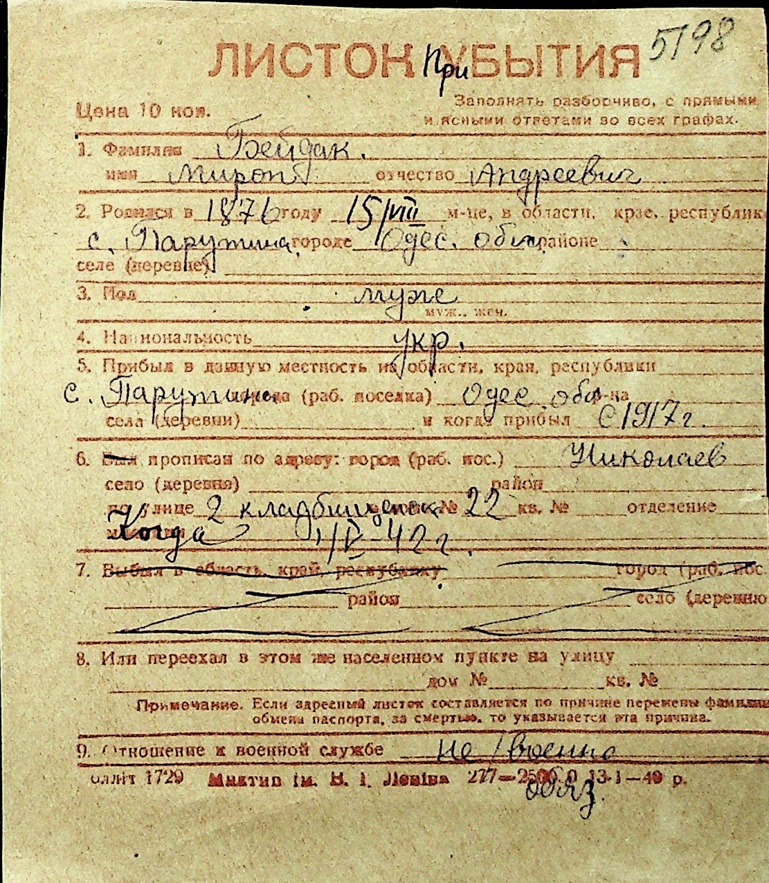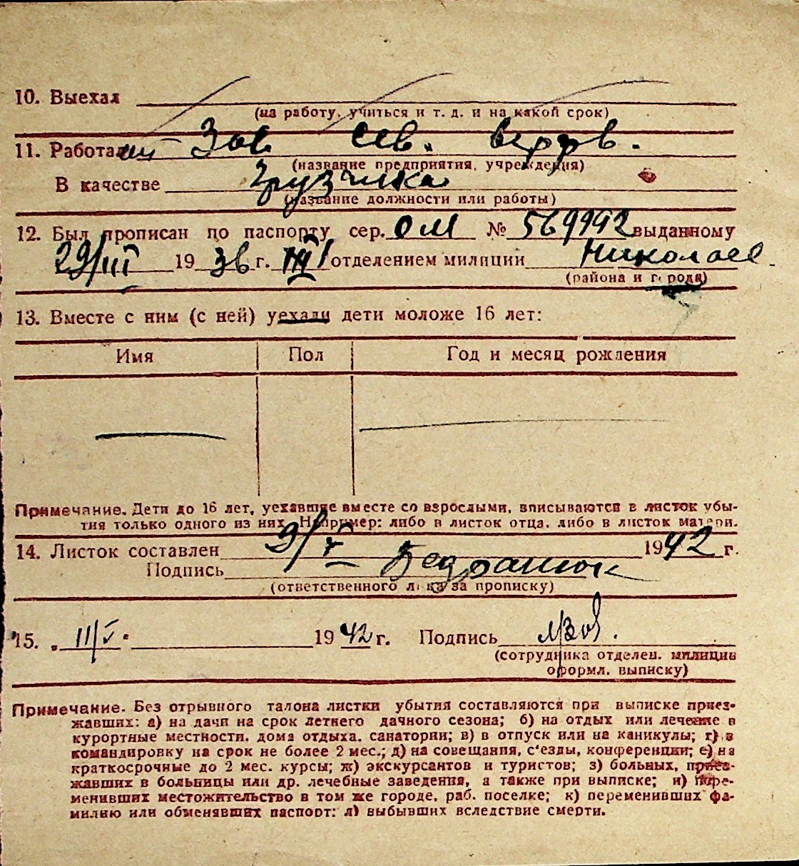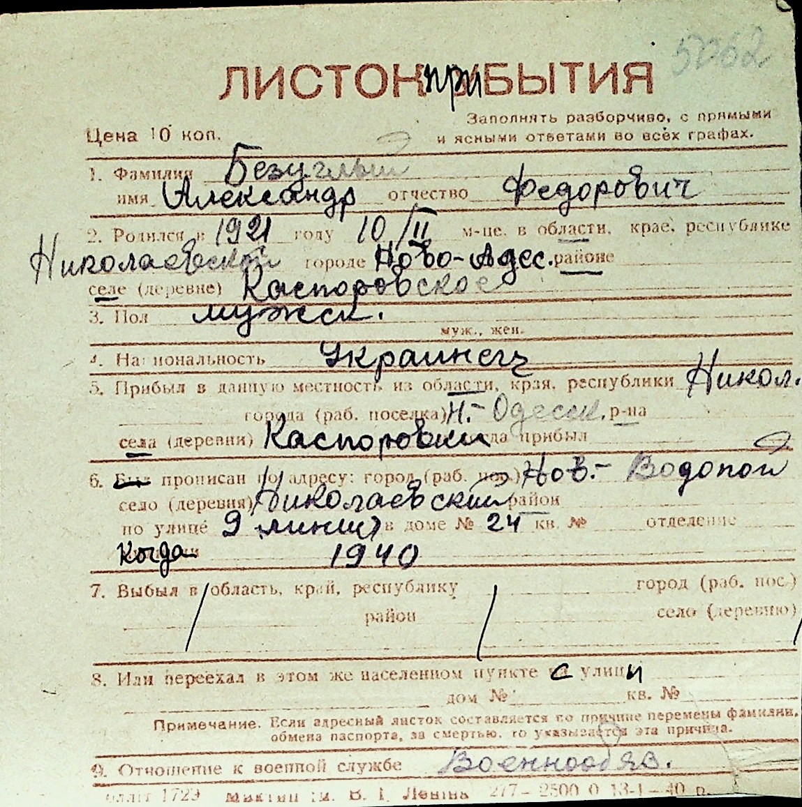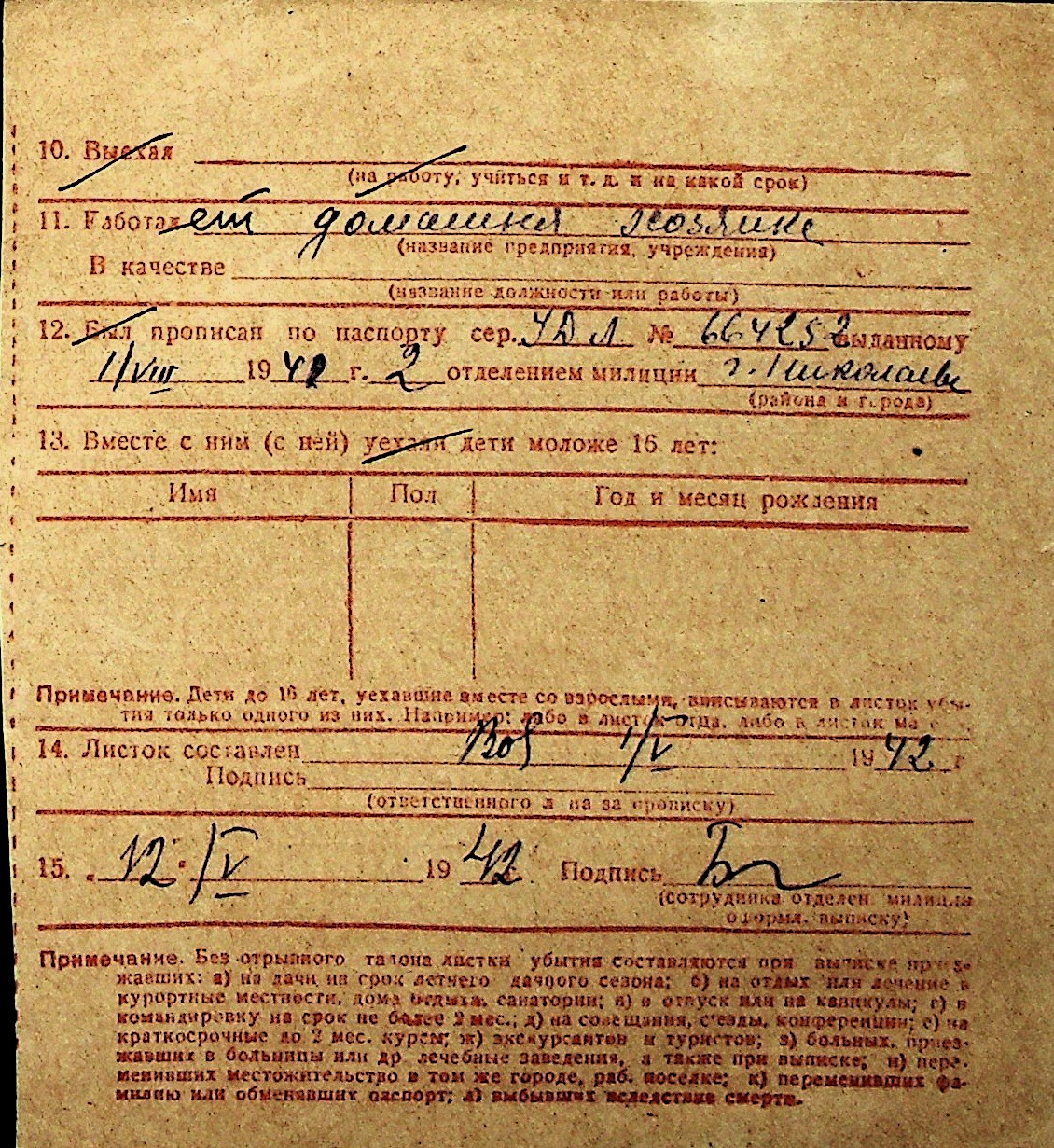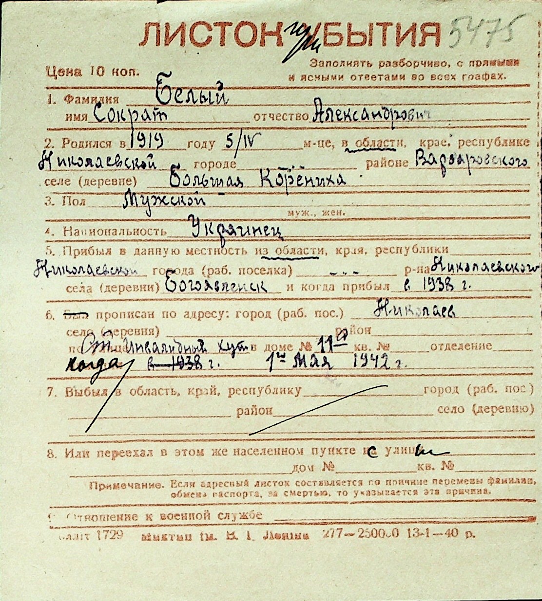 ◦ ◦ Перелік карток на осіб, які мешкали у м. Миколаїв у період окупації 1941–1944 років