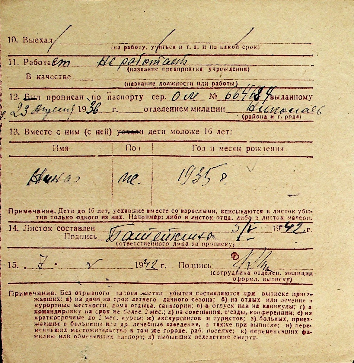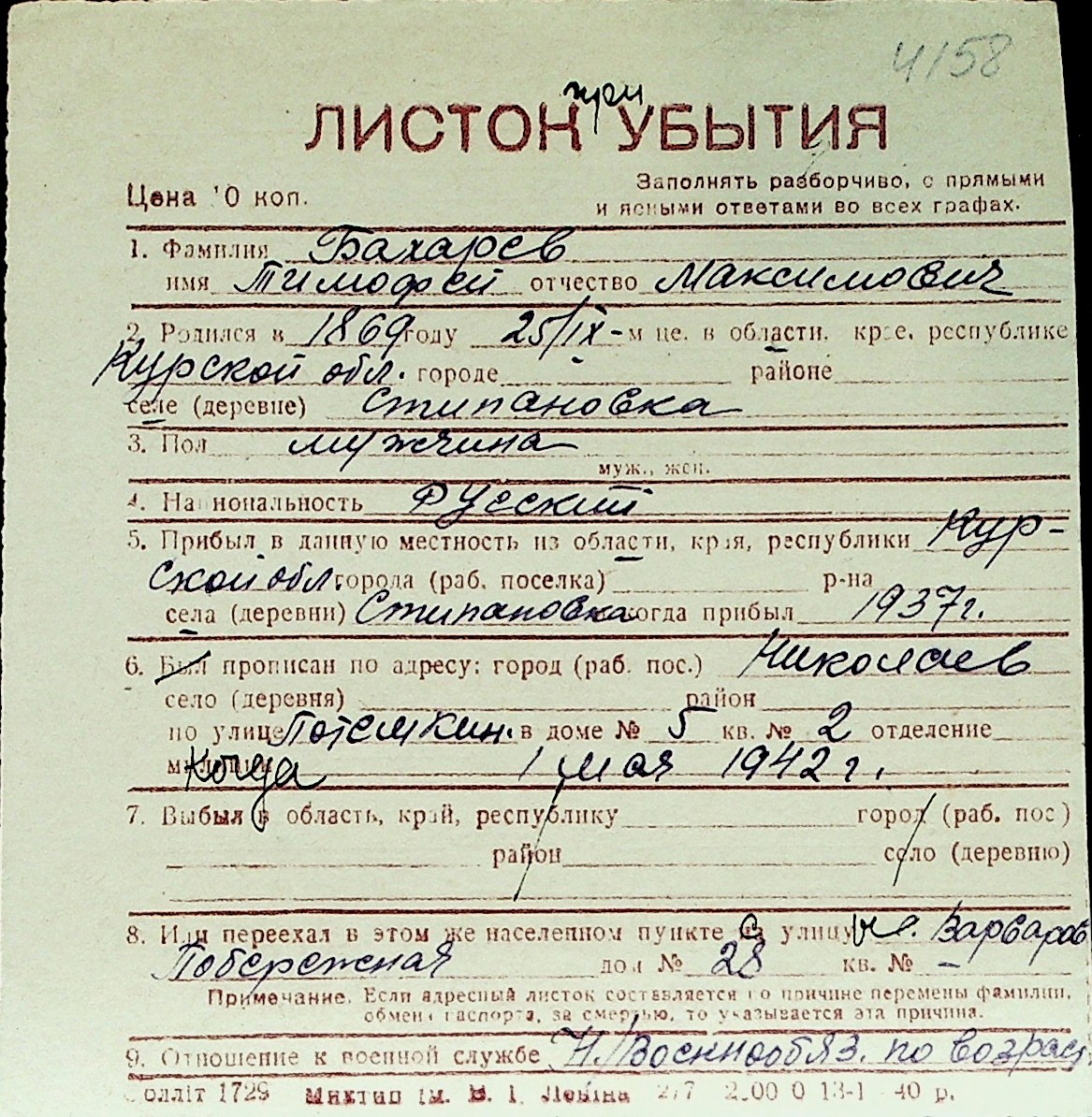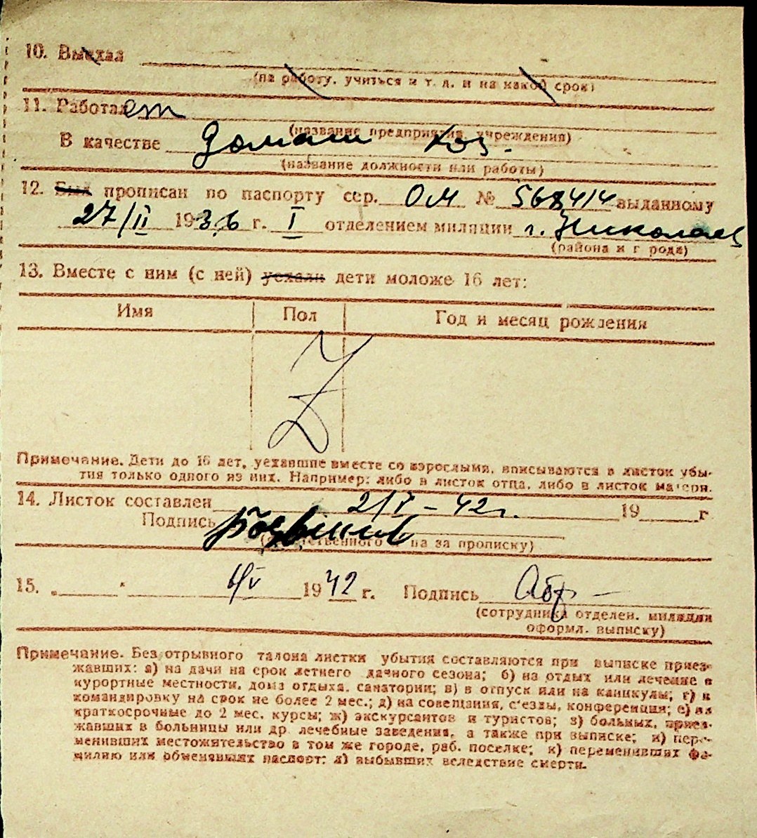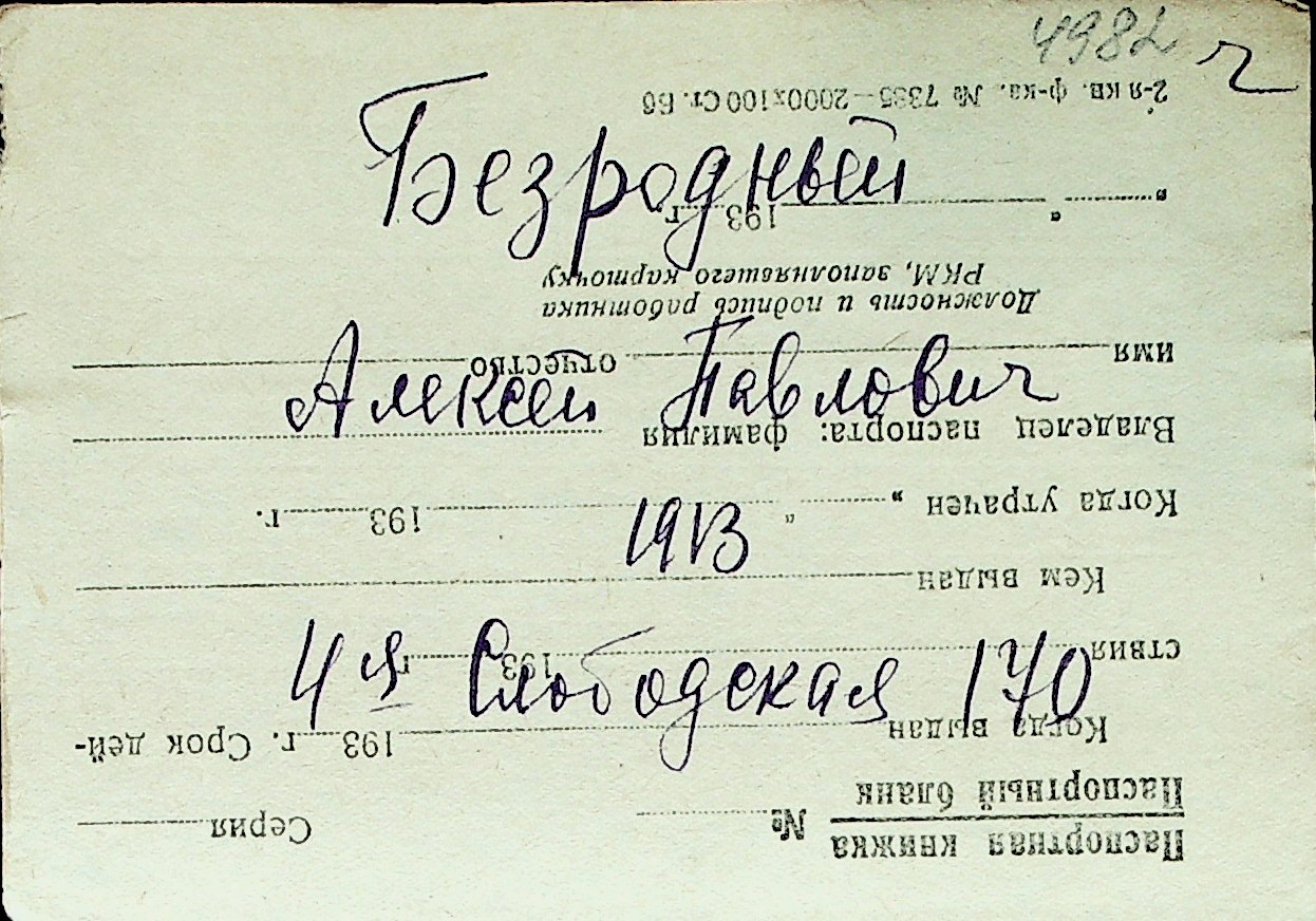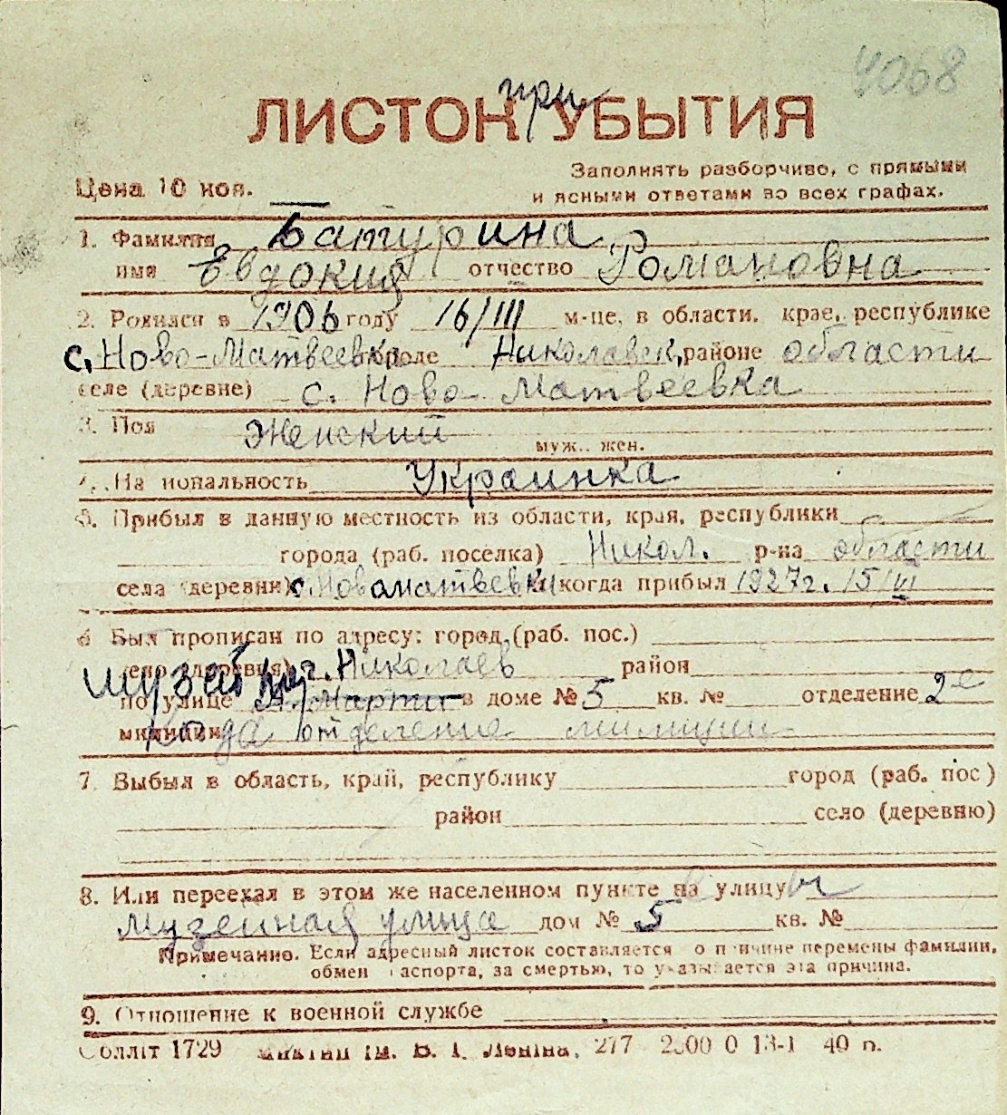◦ ◦ Перелік карток на осіб, які мешкали у м. Миколаїв у період окупації 1941–1944 років