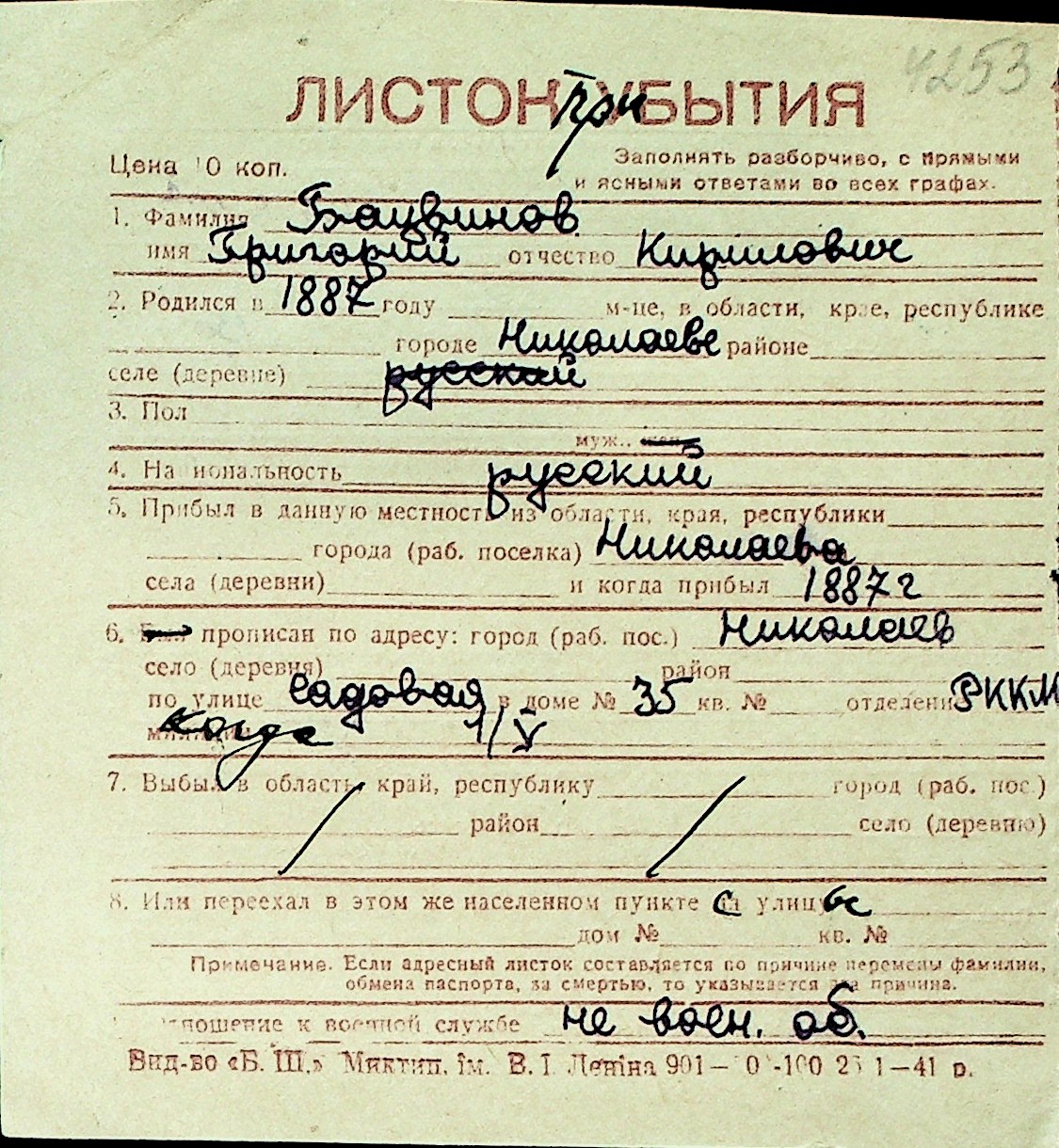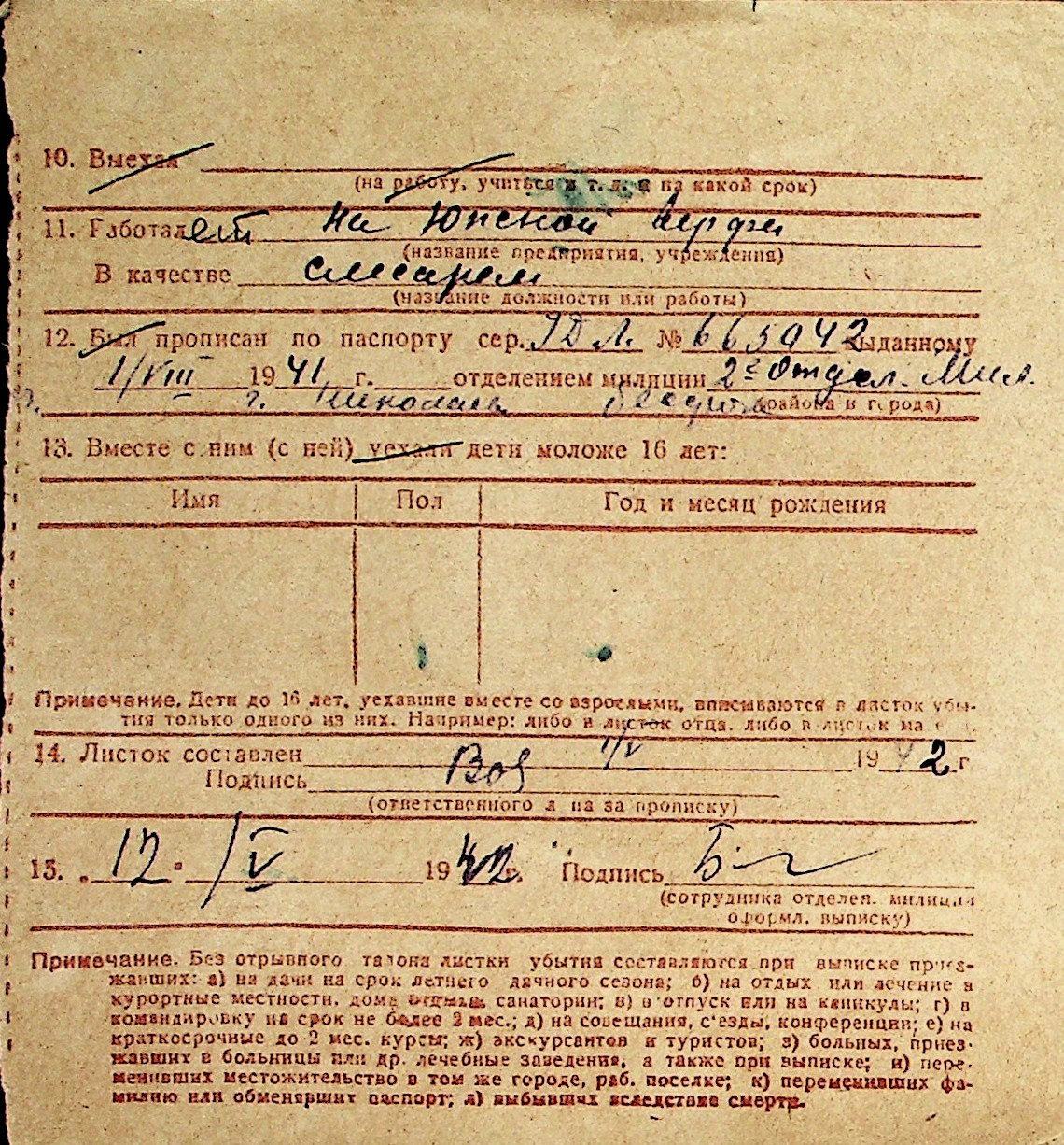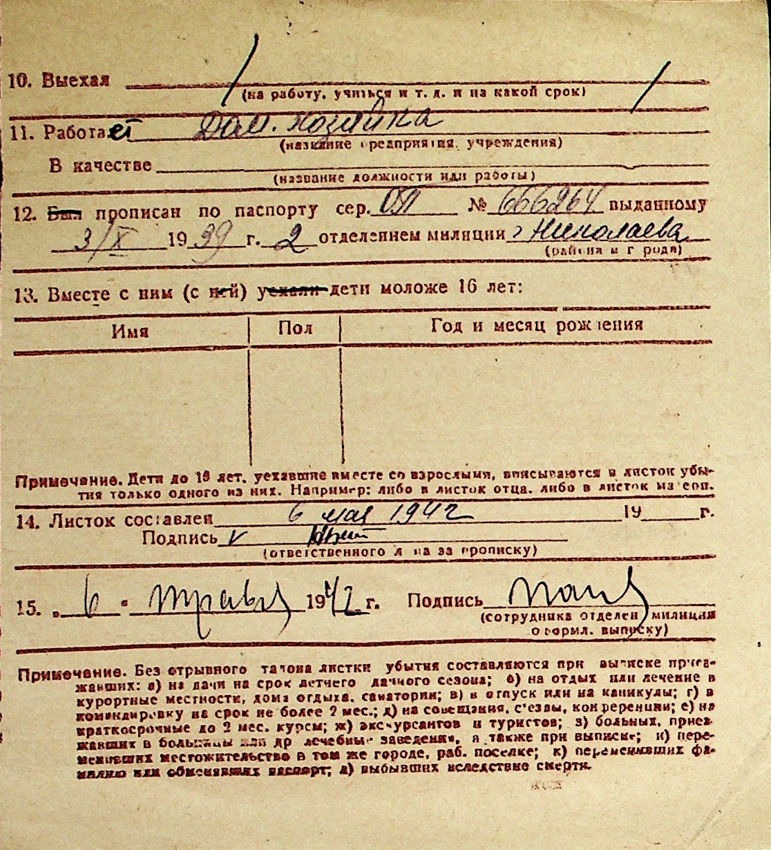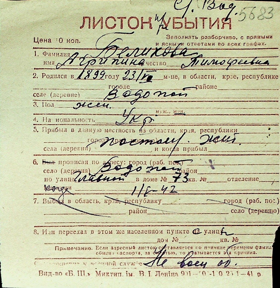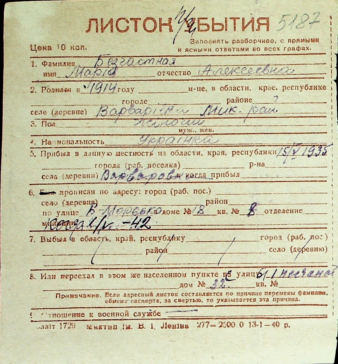 ◦ ◦ Перелік карток на осіб, які мешкали у м. Миколаїв у період окупації 1941–1944 років