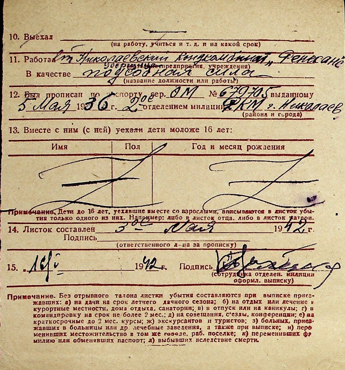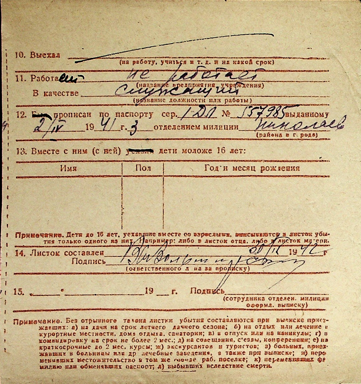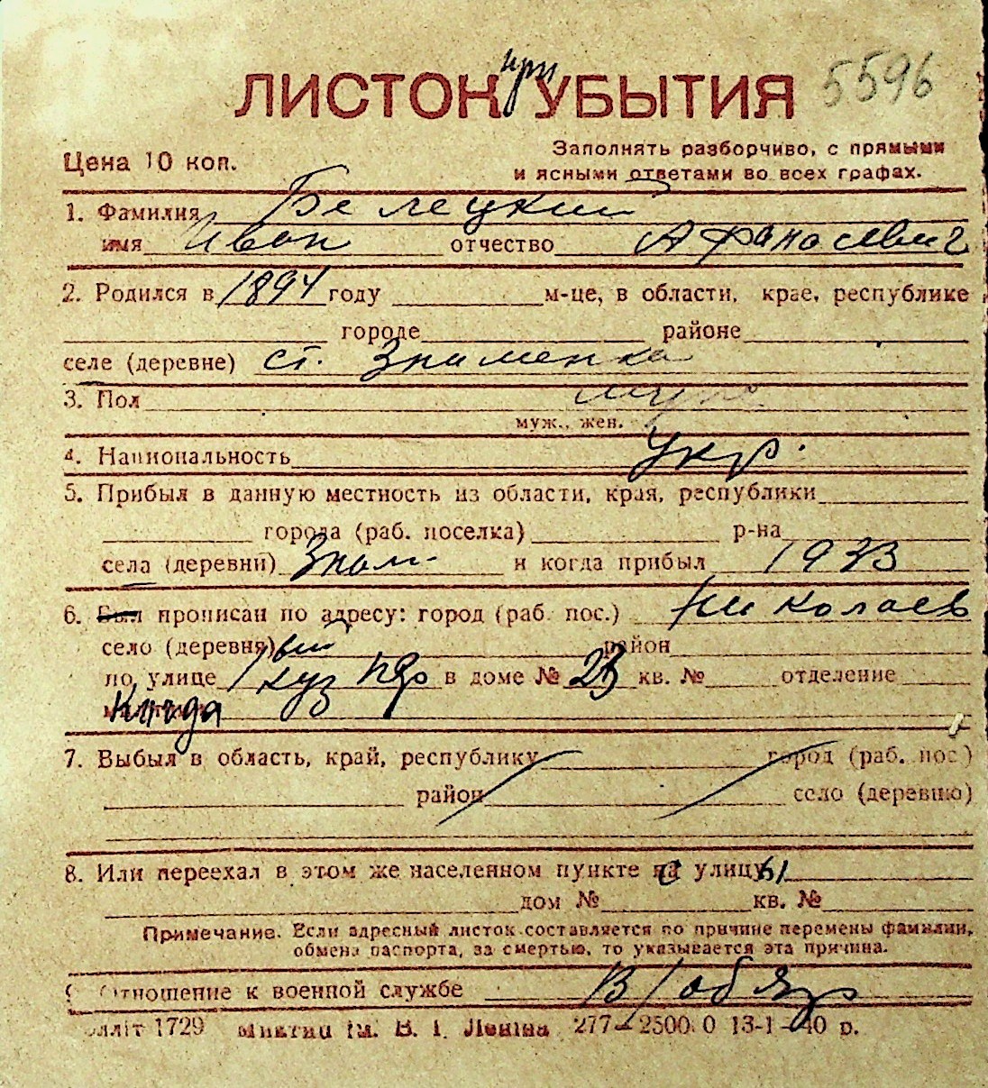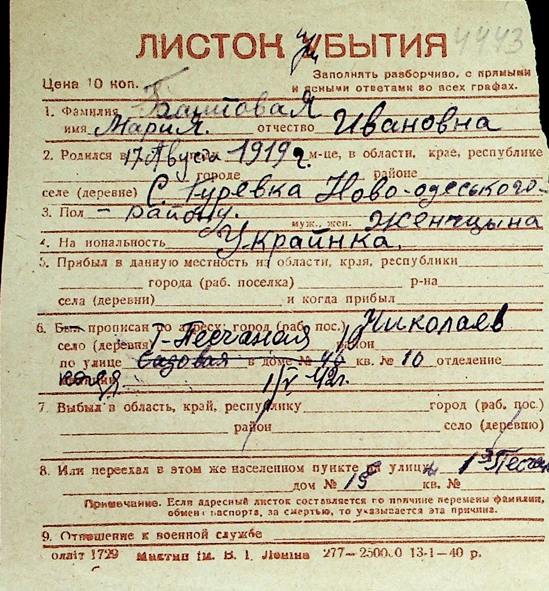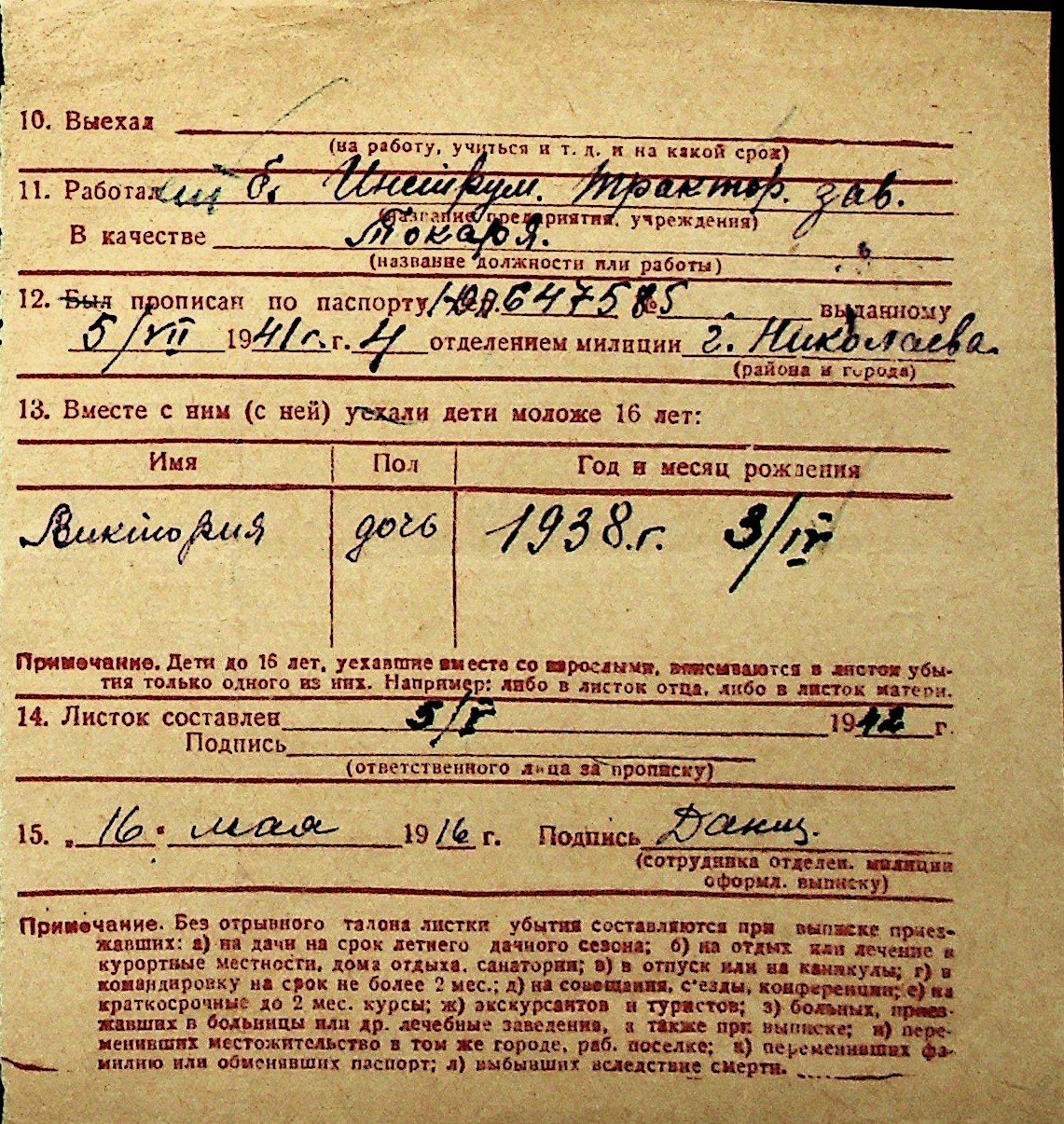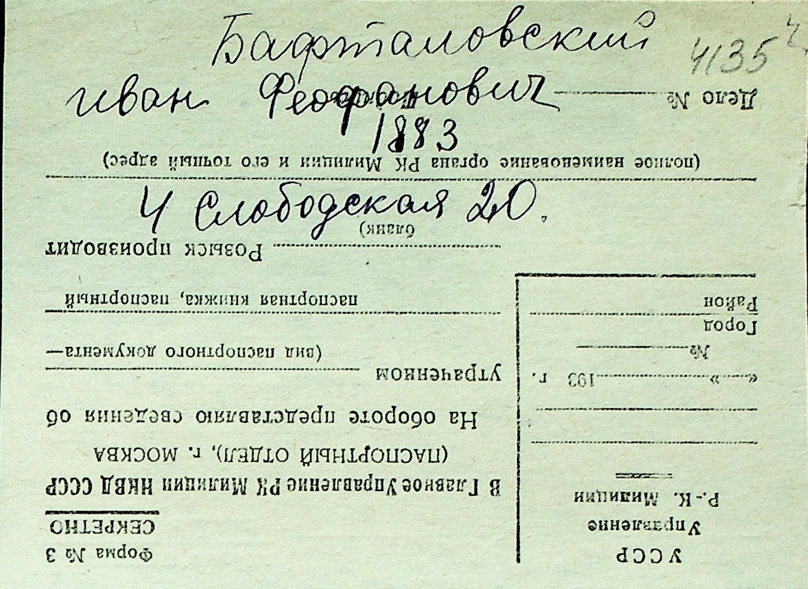 ◦ ◦ Перелік карток на осіб, які мешкали у м. Миколаїв у період окупації 1941–1944 років