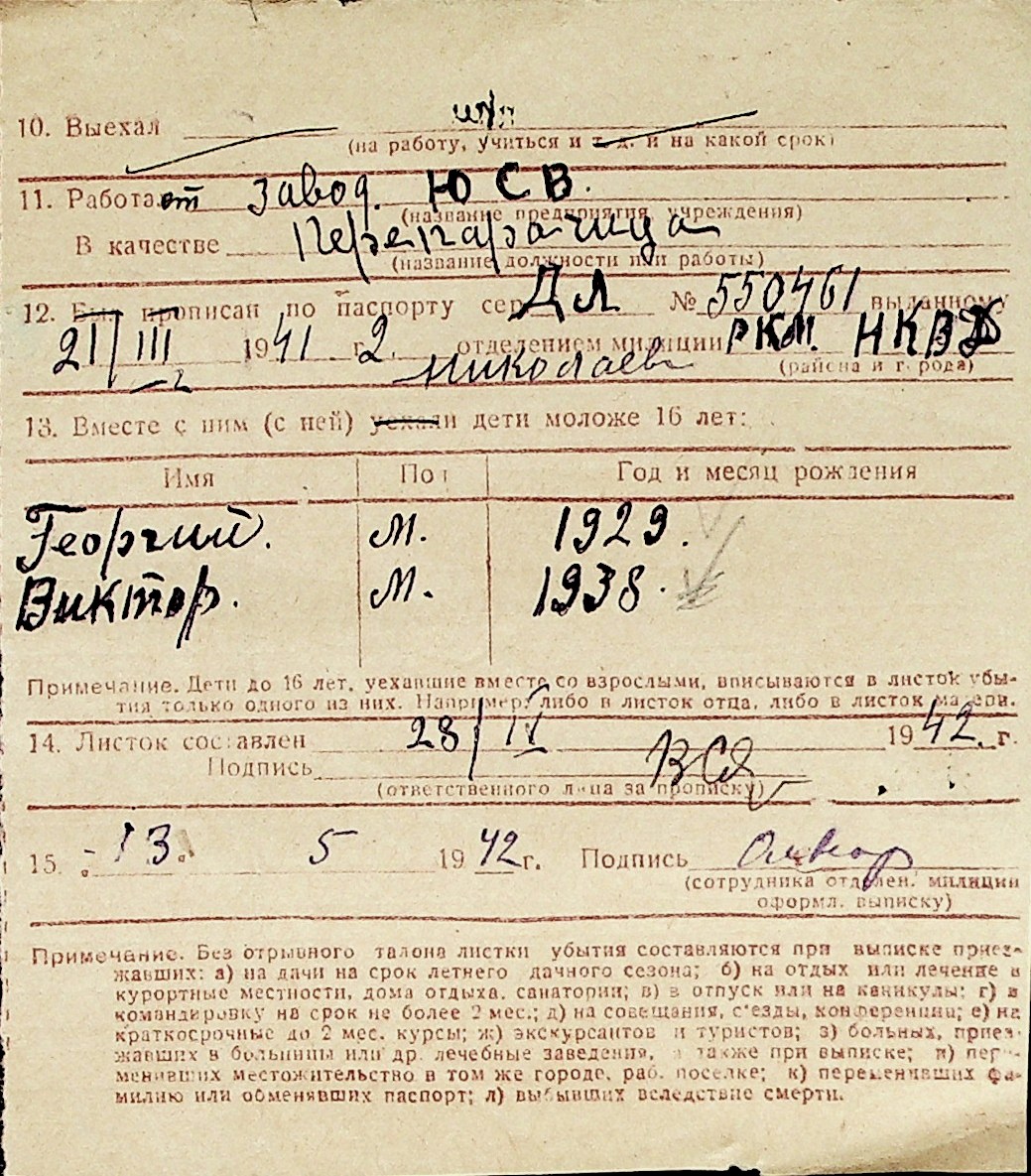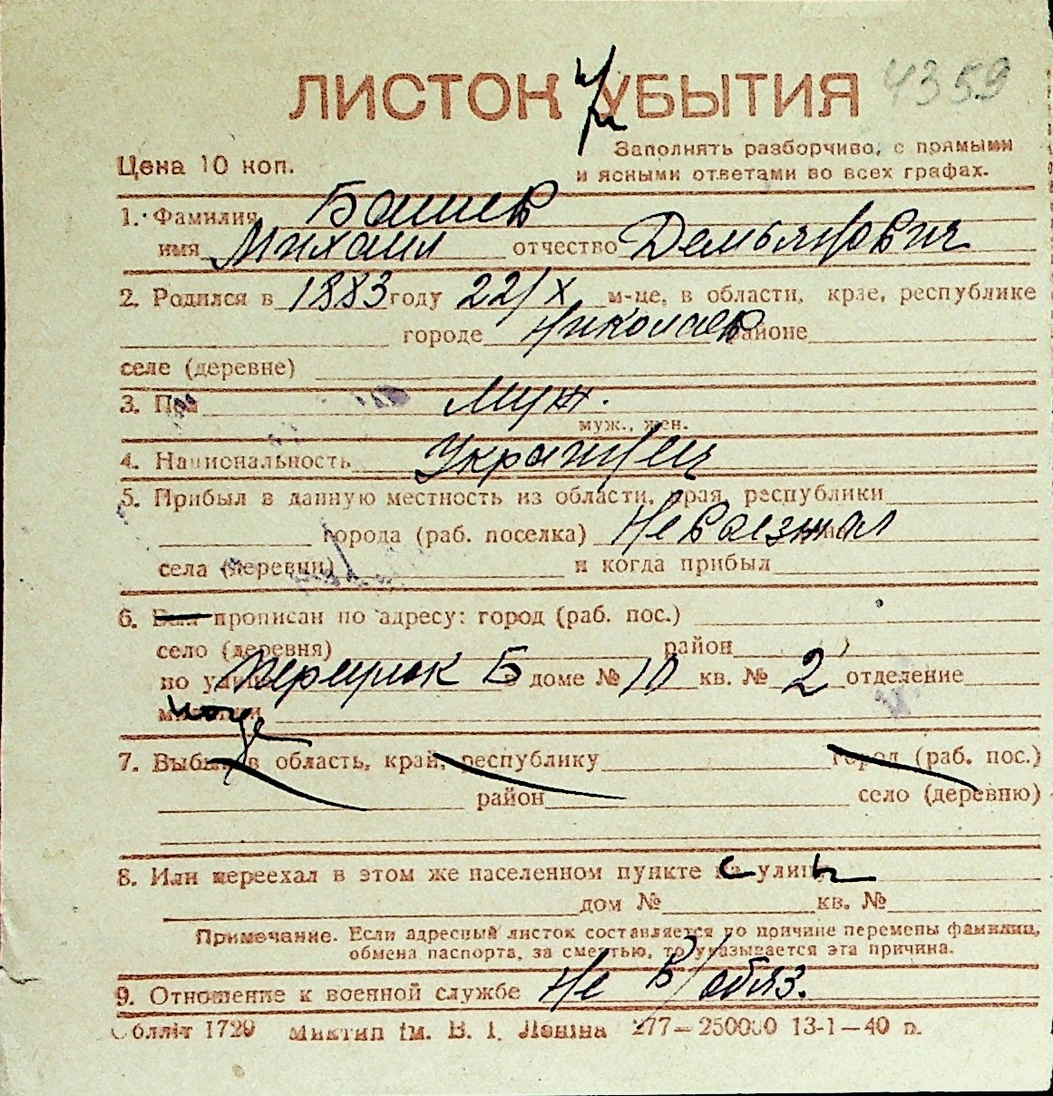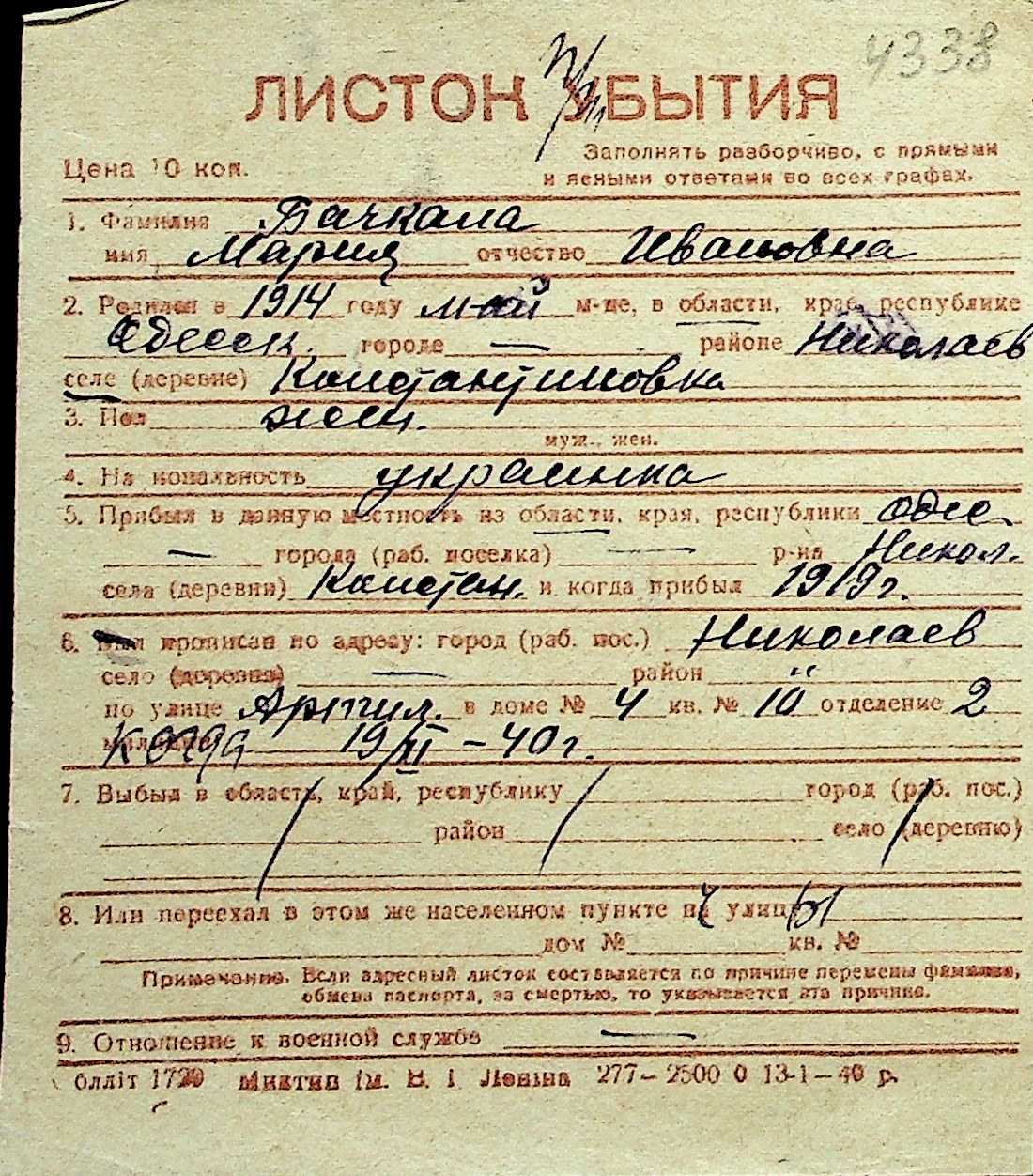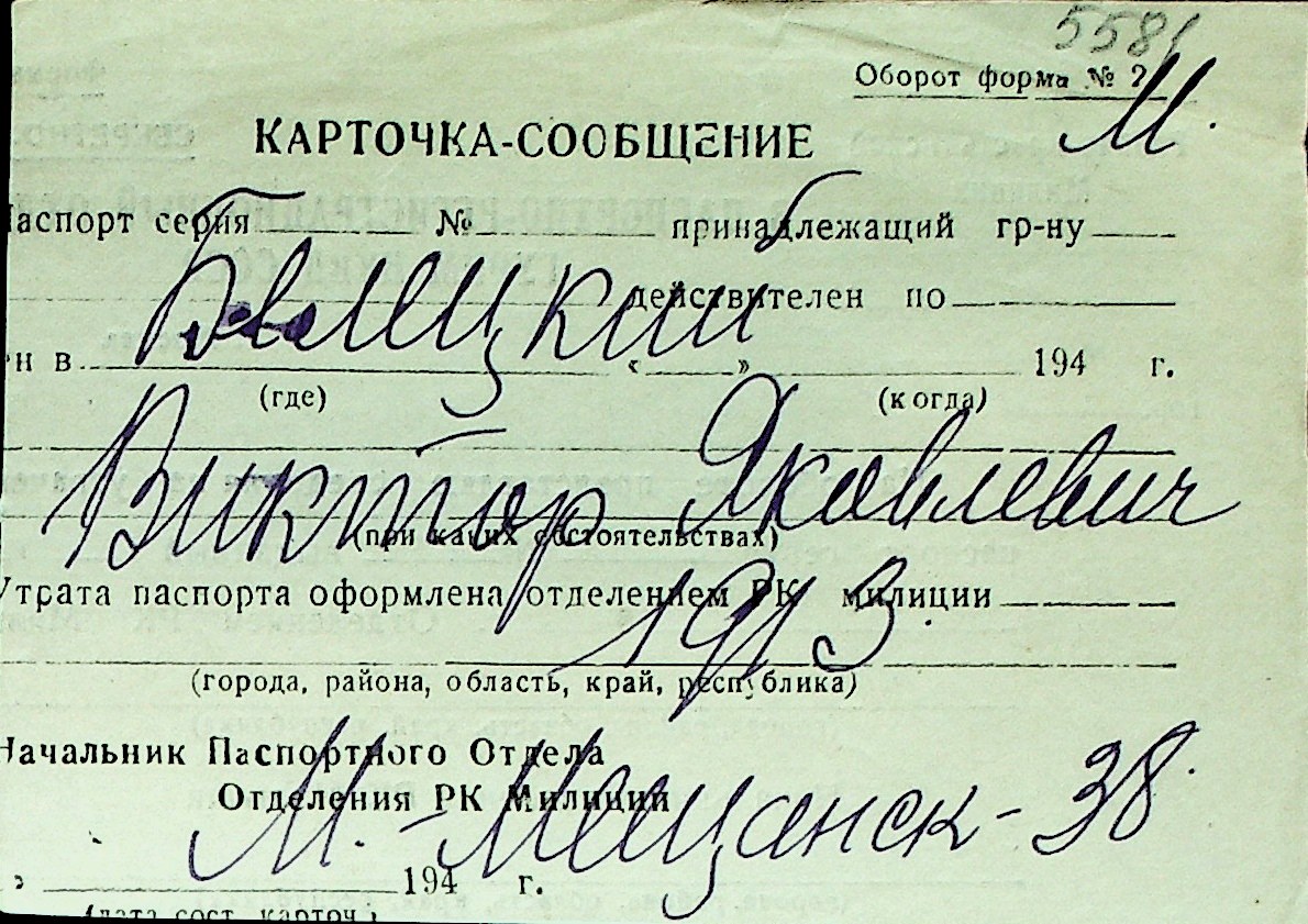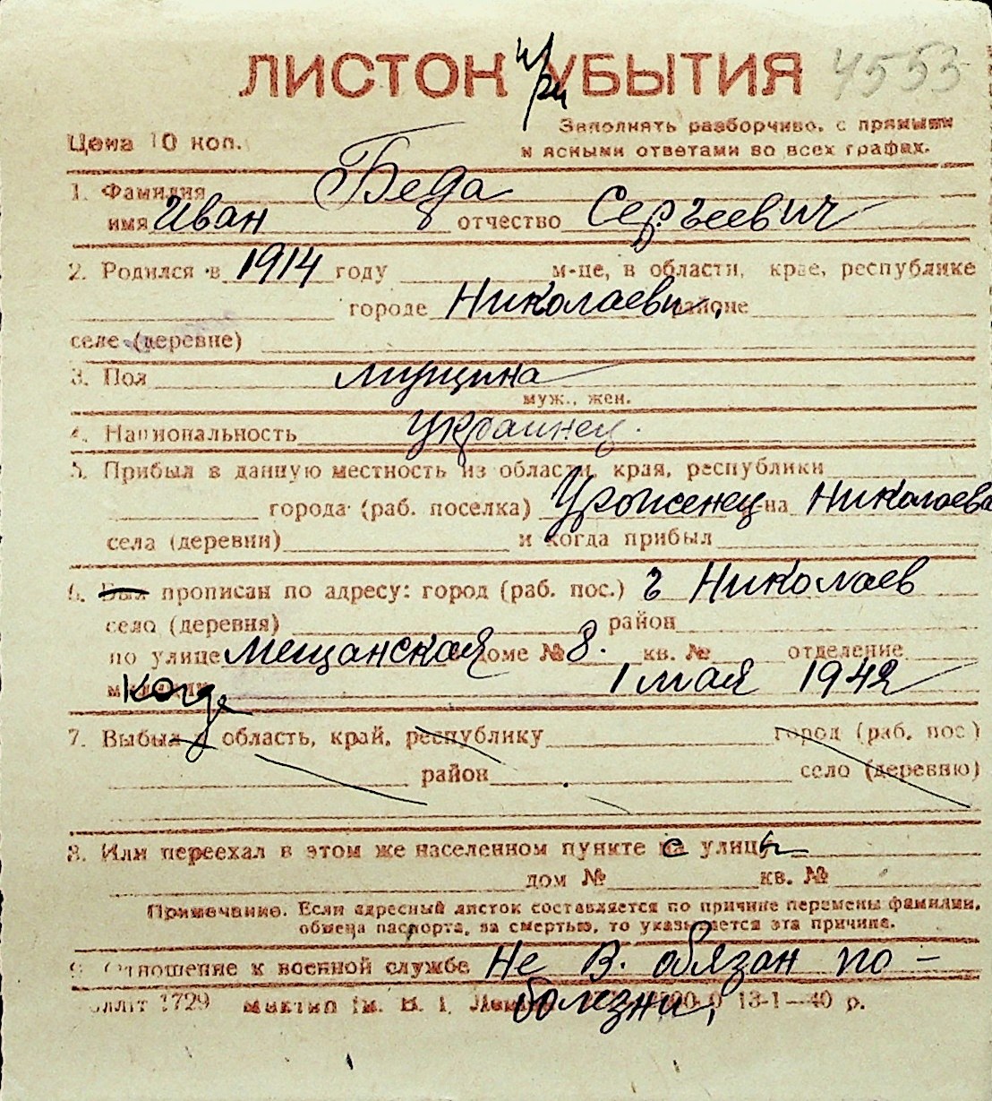 ◦ ◦ Перелік карток на осіб, які мешкали у м. Миколаїв у період окупації 1941–1944 років