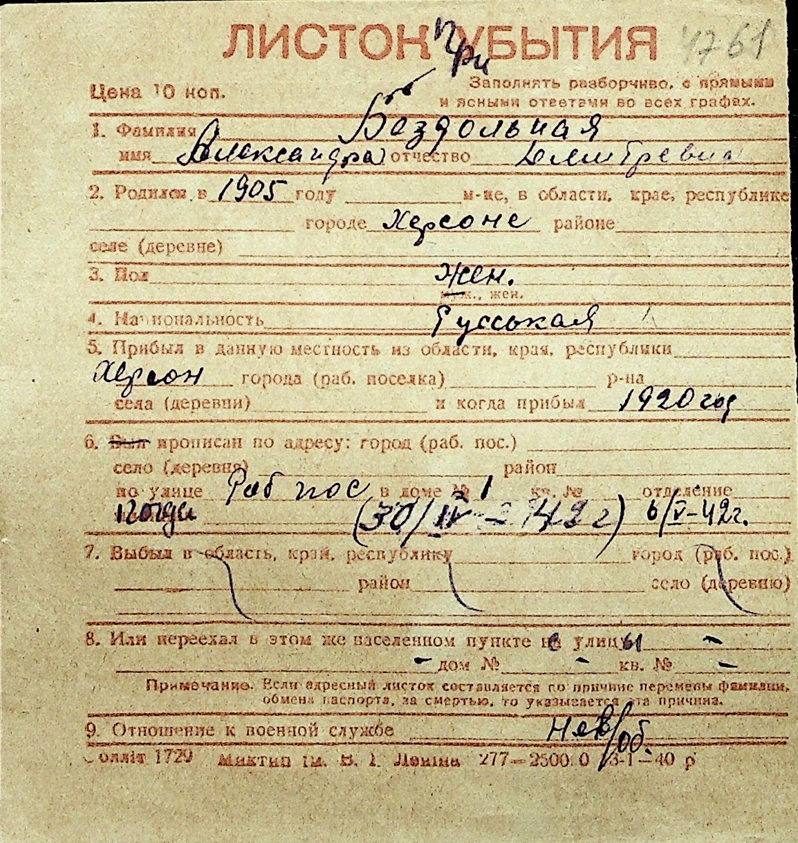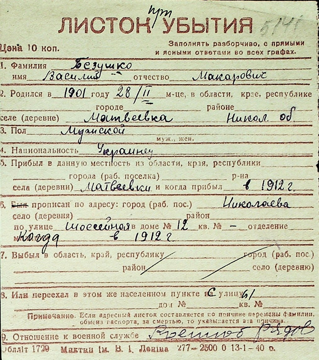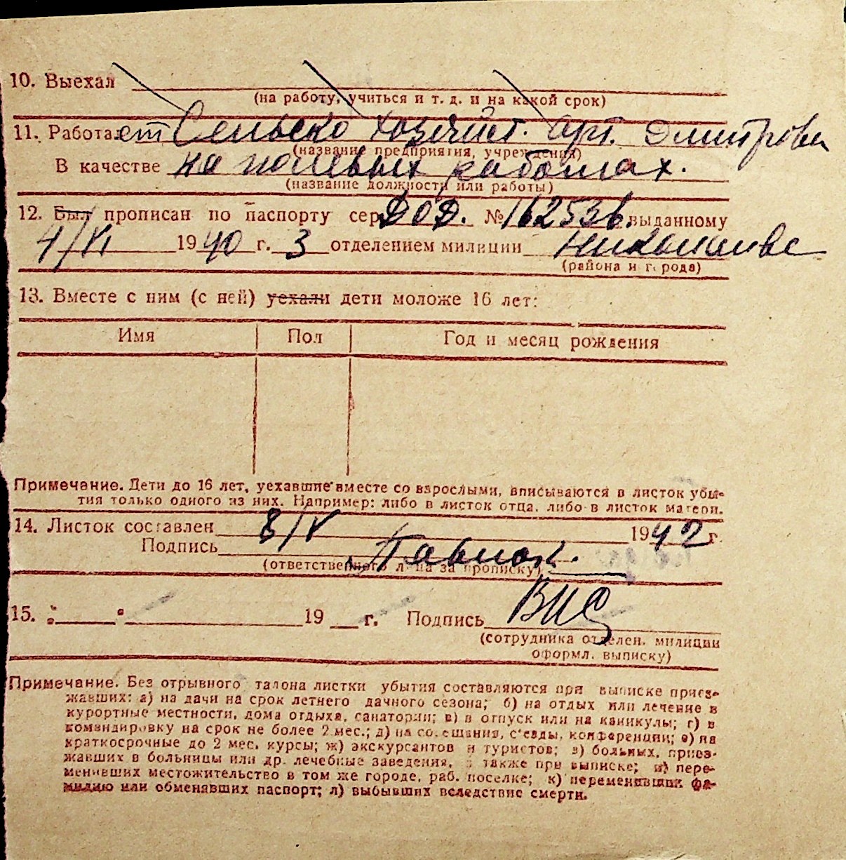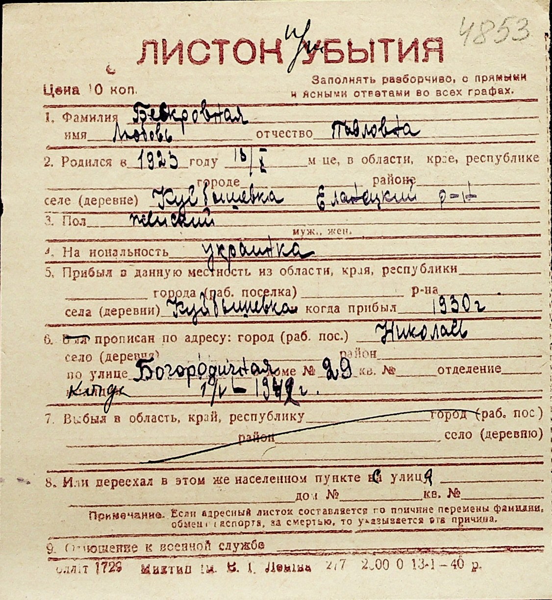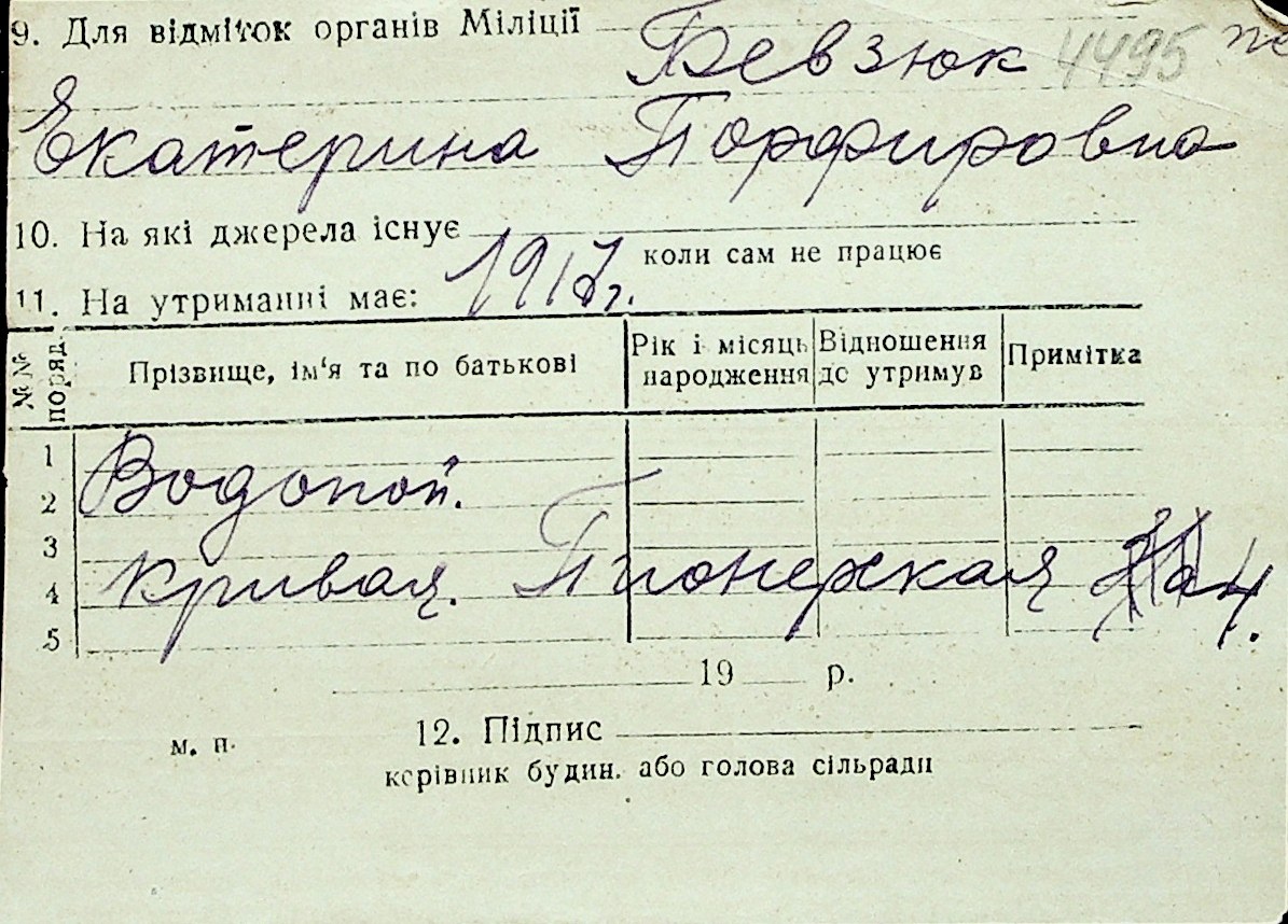 ◦ ◦ Перелік карток на осіб, які мешкали у м. Миколаїв у період окупації 1941–1944 років