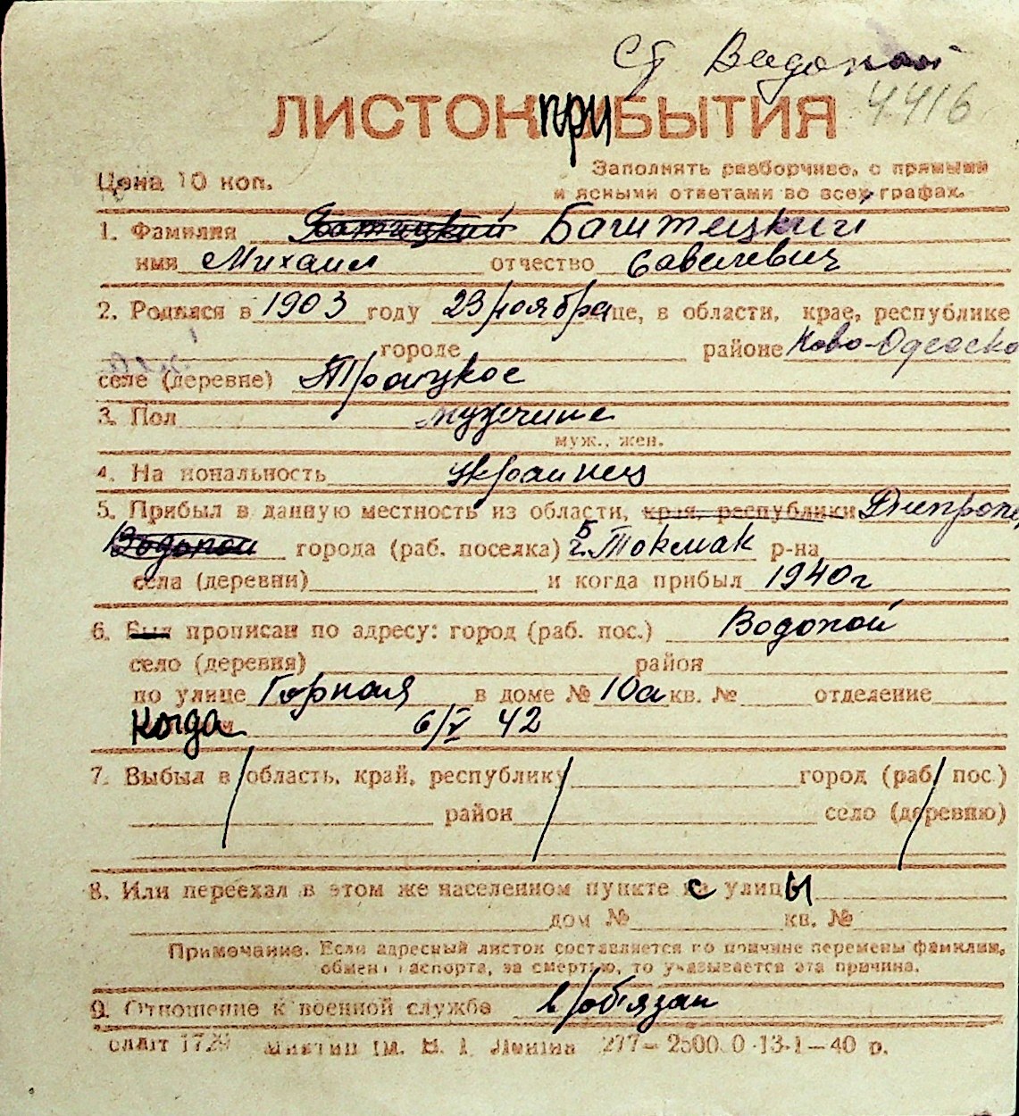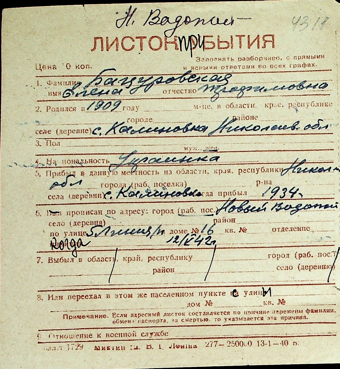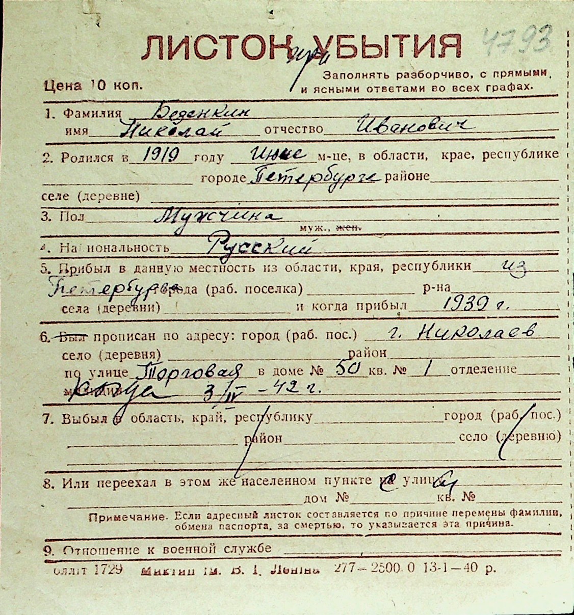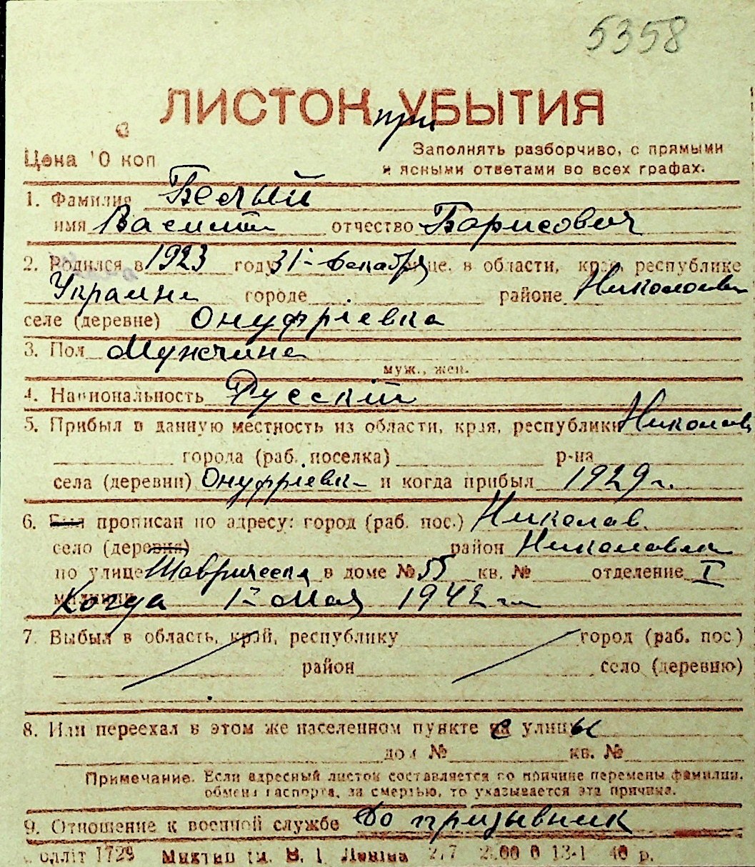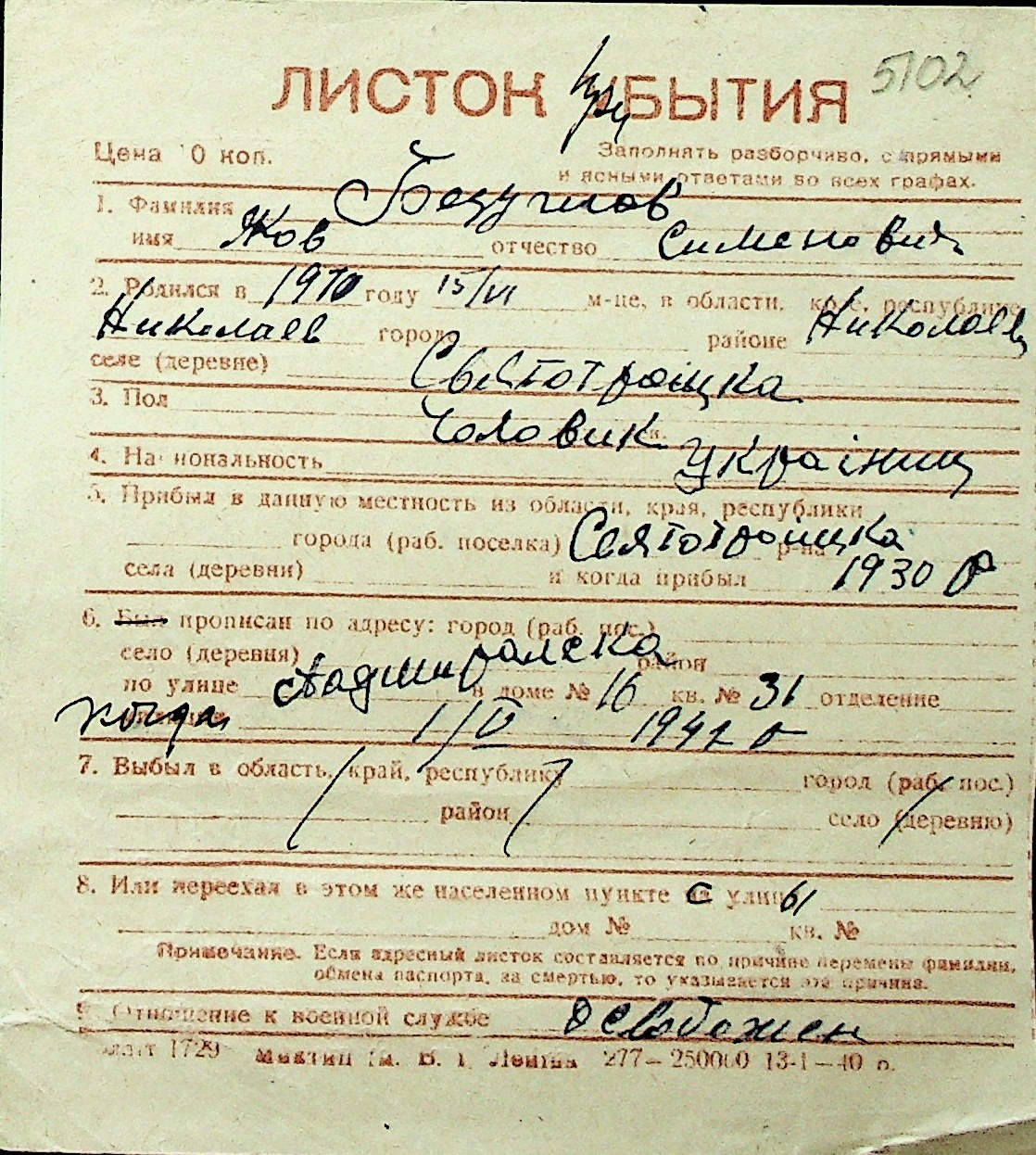 ◦ ◦ Перелік карток на осіб, які мешкали у м. Миколаїв у період окупації 1941–1944 років