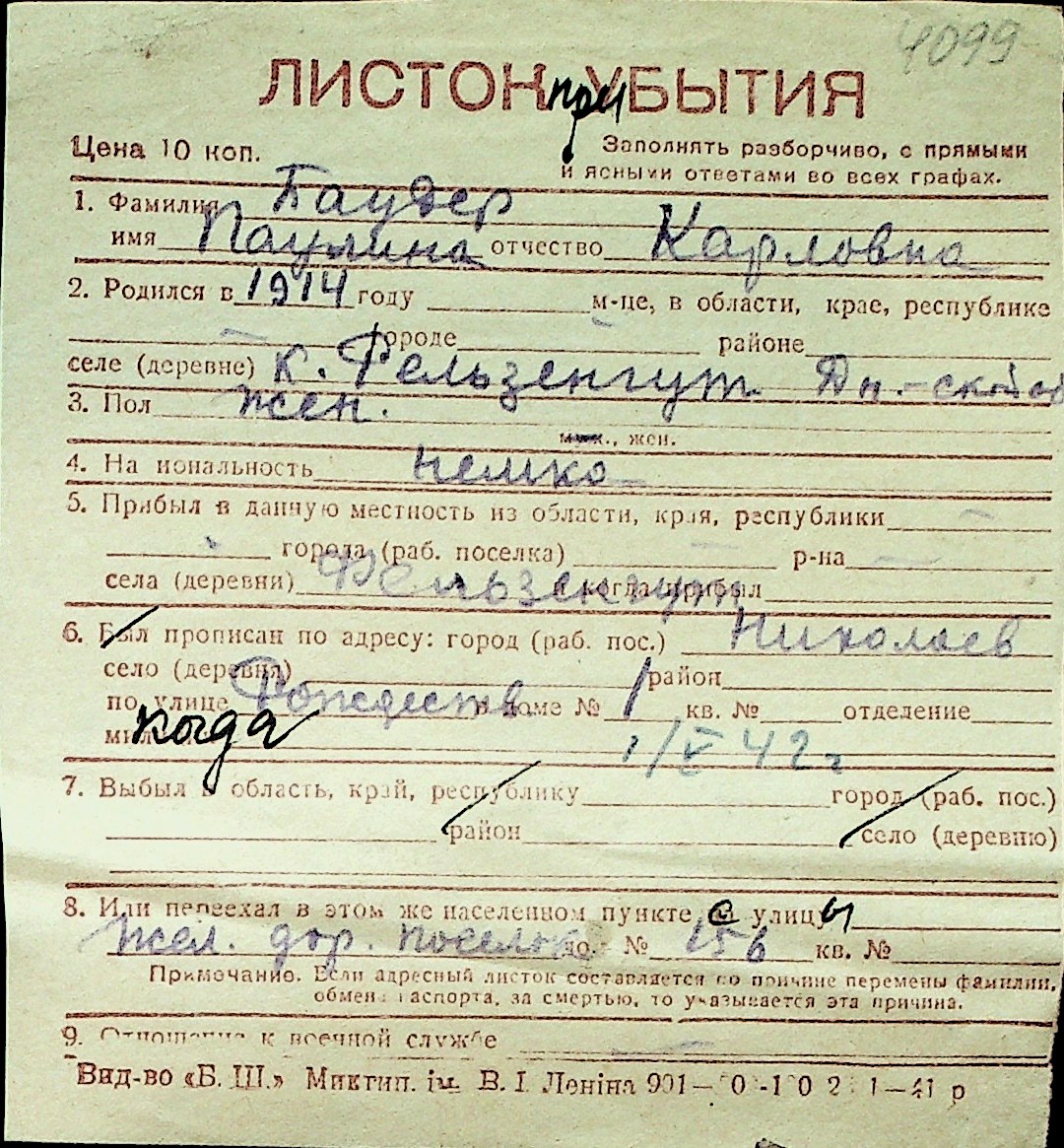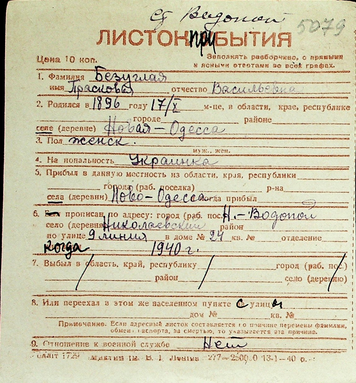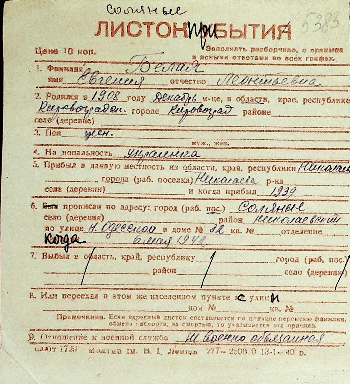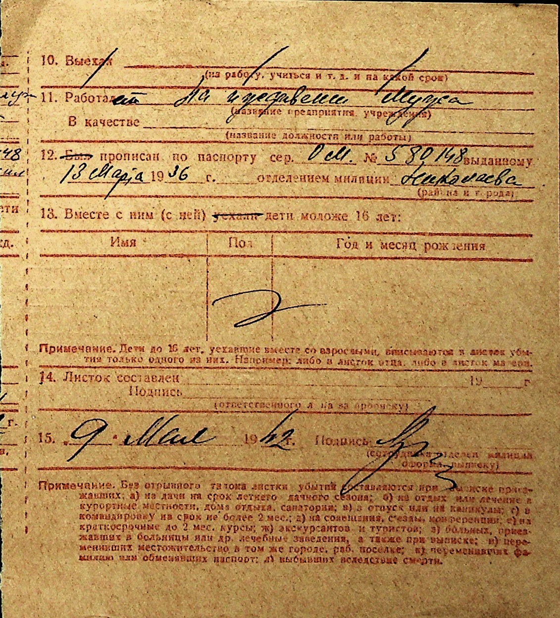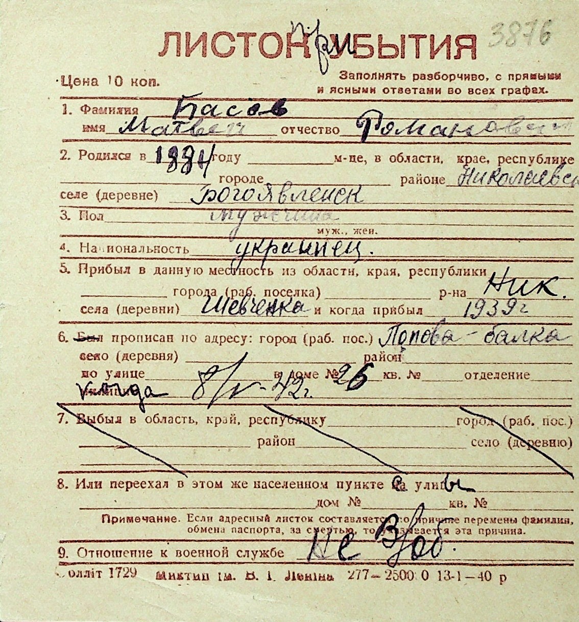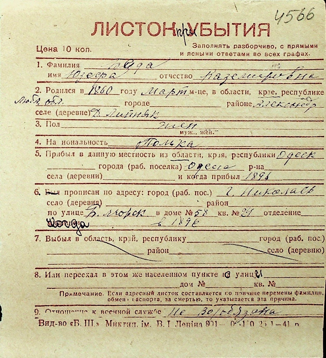 ◦ ◦ Перелік карток на осіб, які мешкали у м. Миколаїв у період окупації 1941–1944 років
