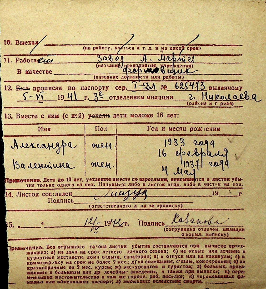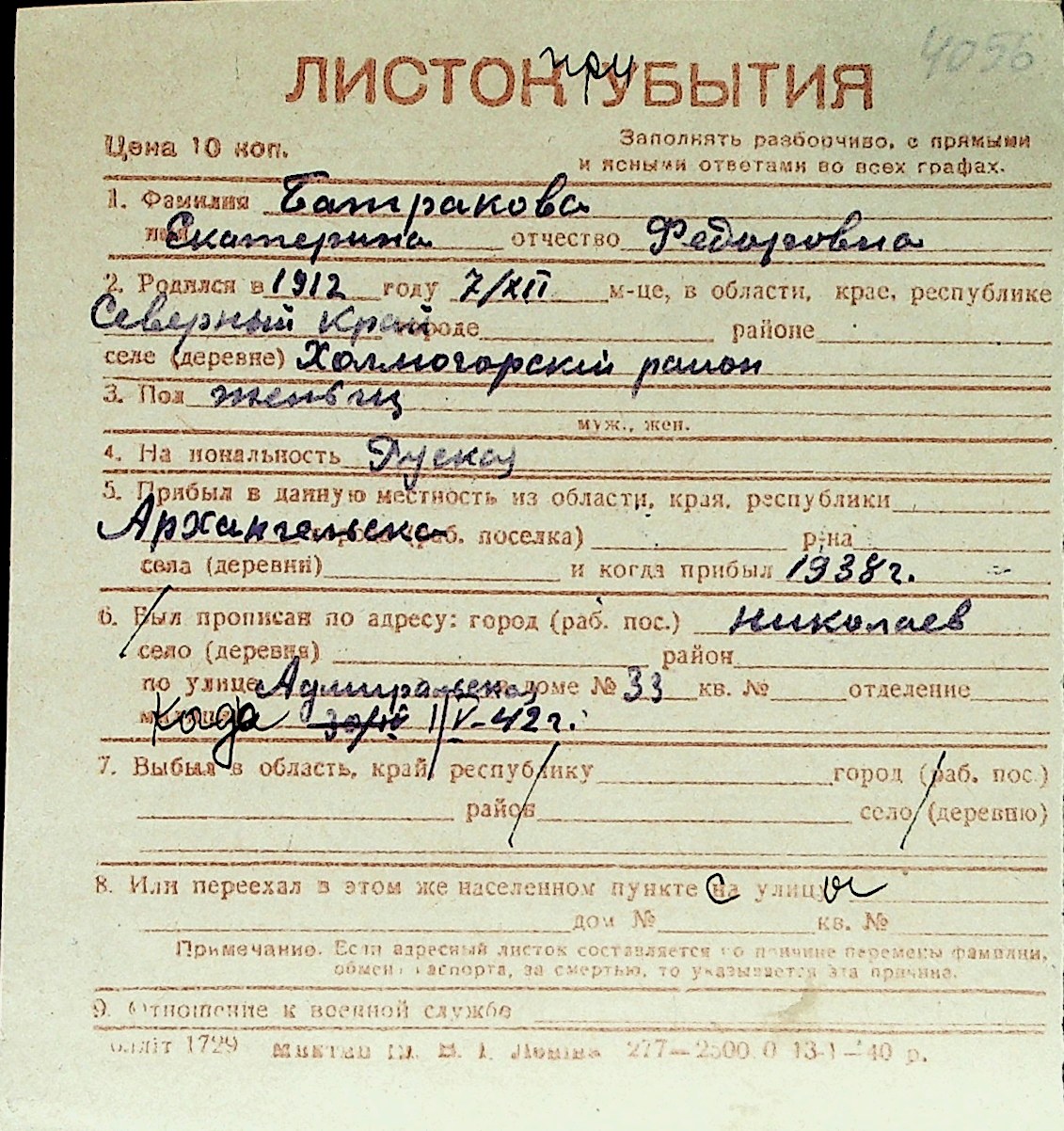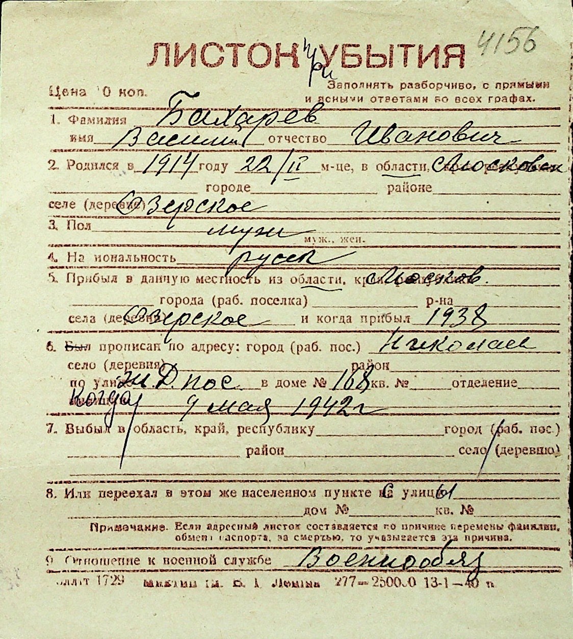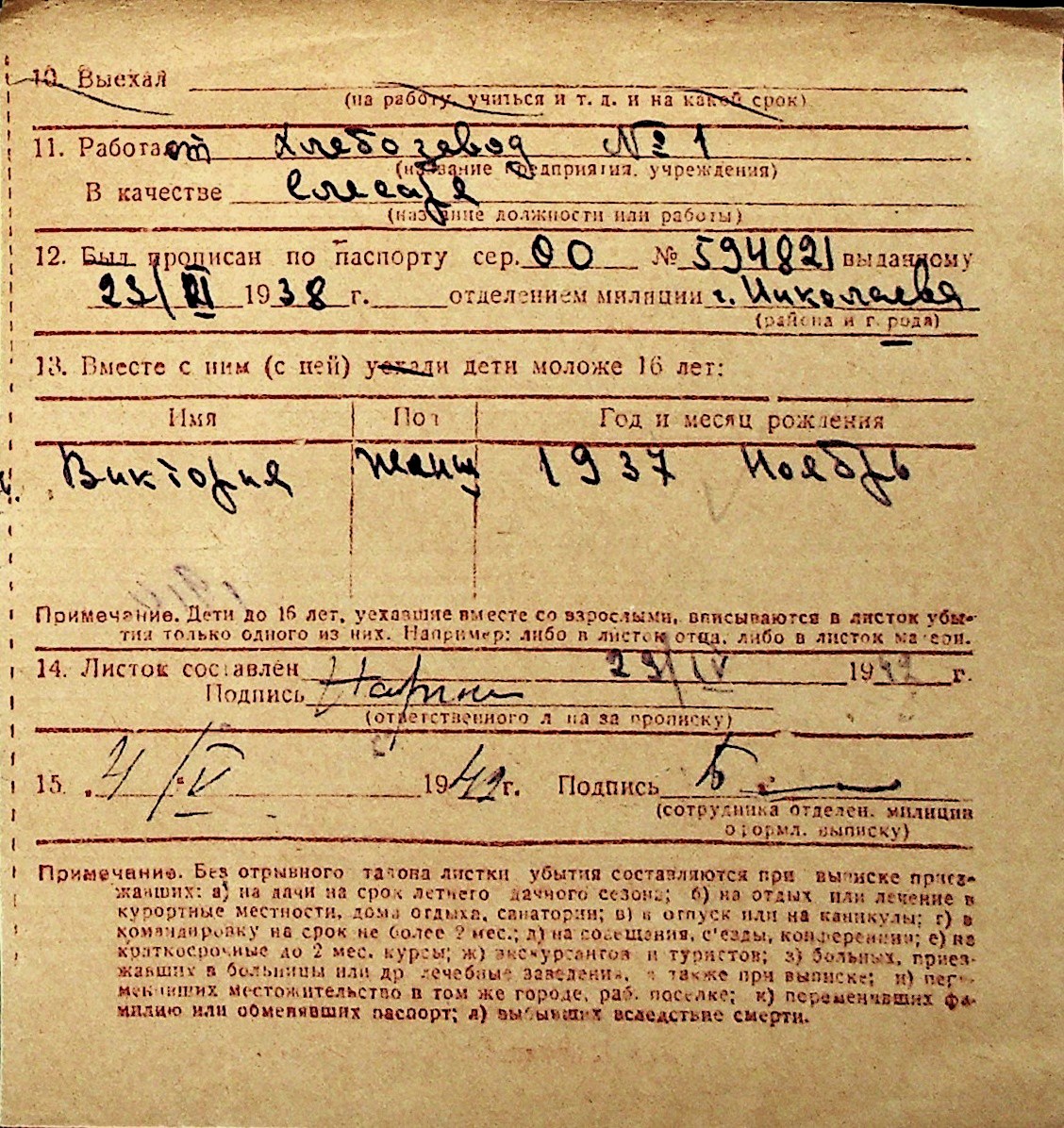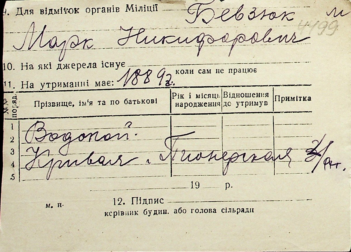 ◦ ◦ Перелік карток на осіб, які мешкали у м. Миколаїв у період окупації 1941–1944 років