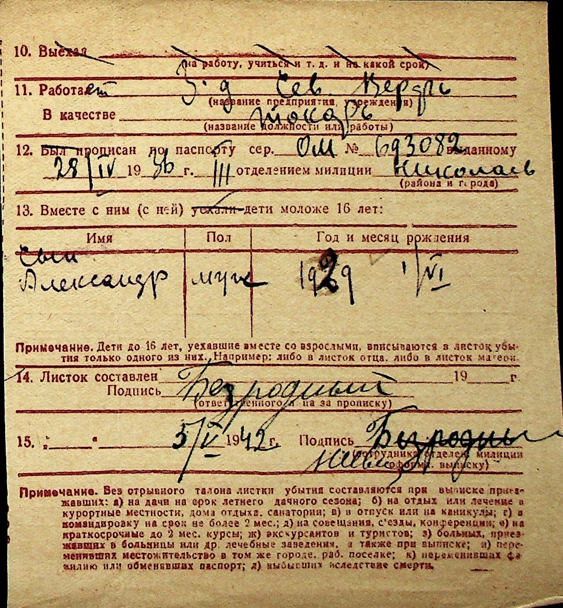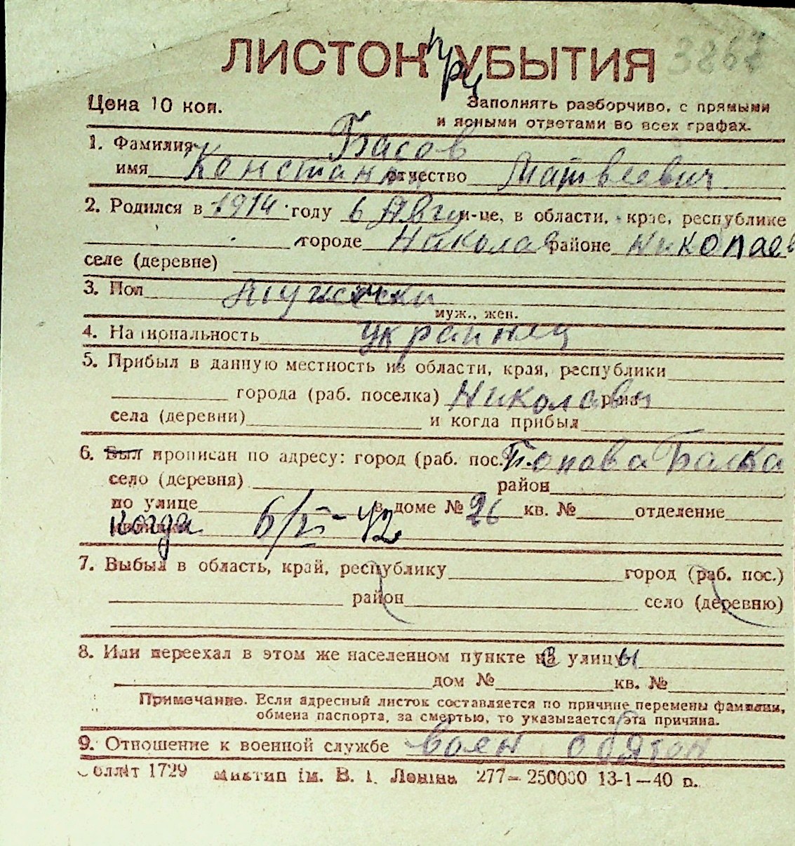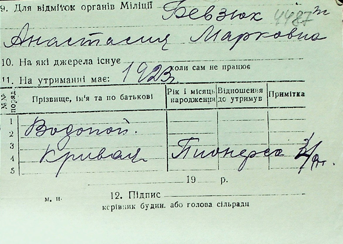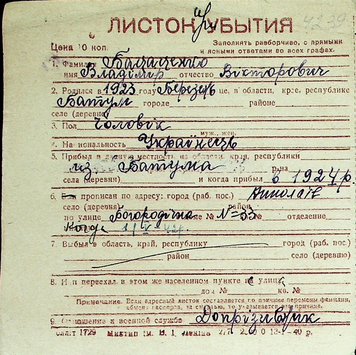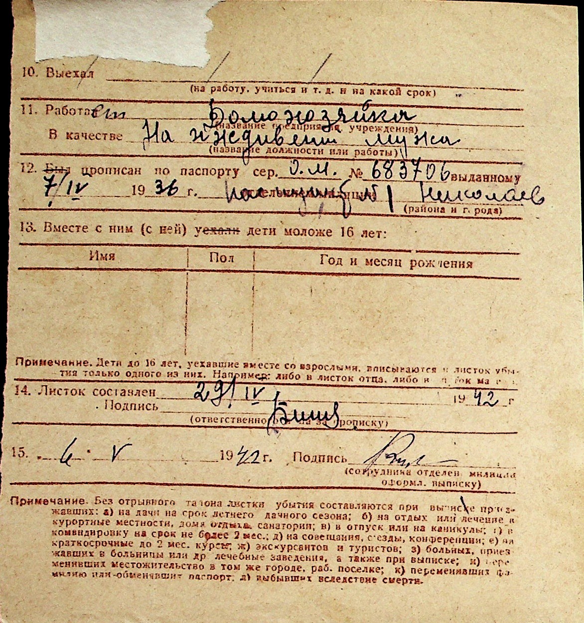 ◦ ◦ Перелік карток на осіб, які мешкали у м. Миколаїв у період окупації 1941–1944 років