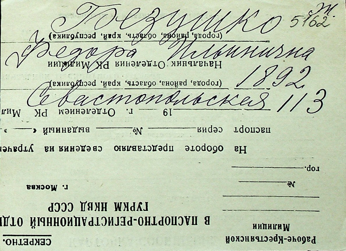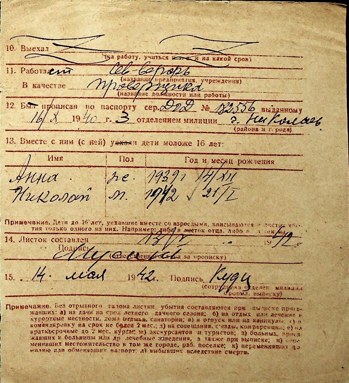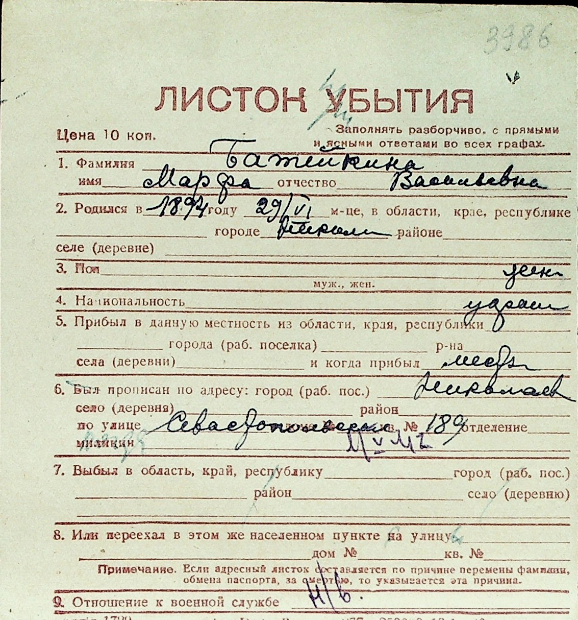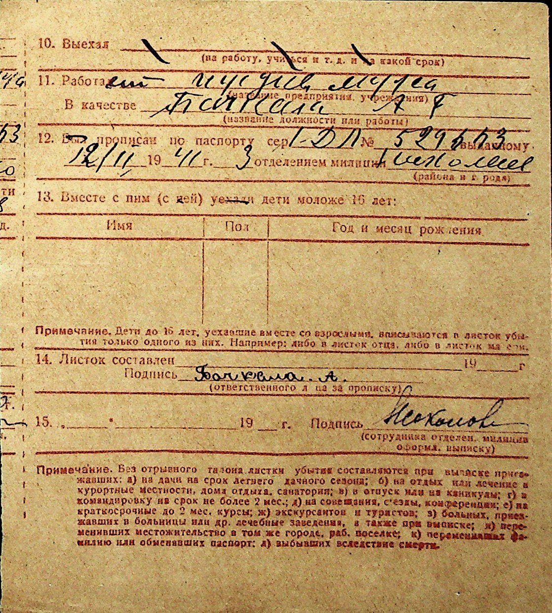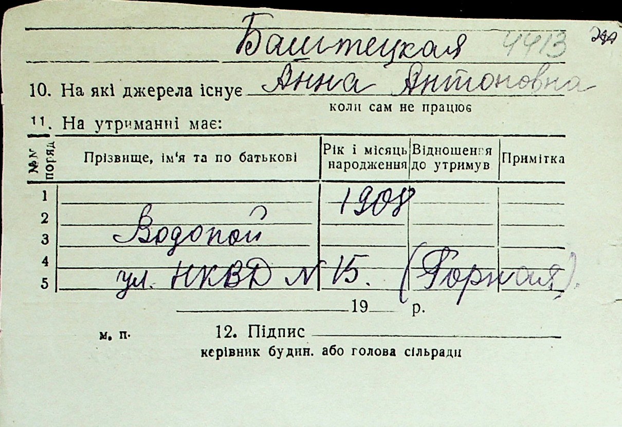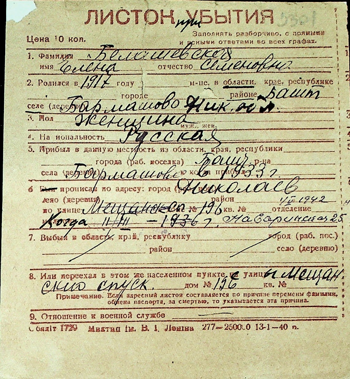 ◦ ◦ Перелік карток на осіб, які мешкали у м. Миколаїв у період окупації 1941–1944 років