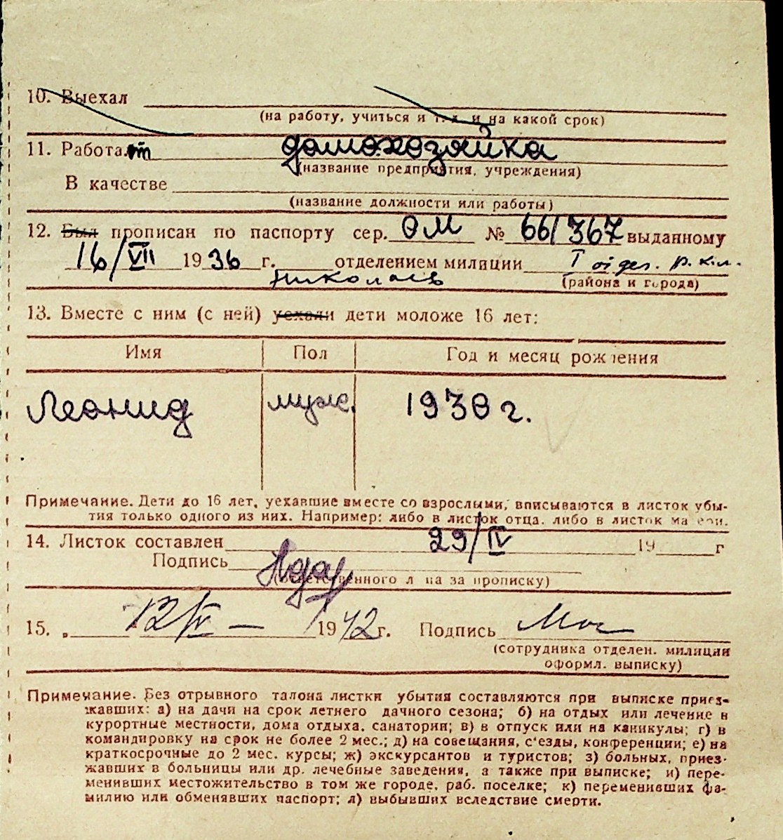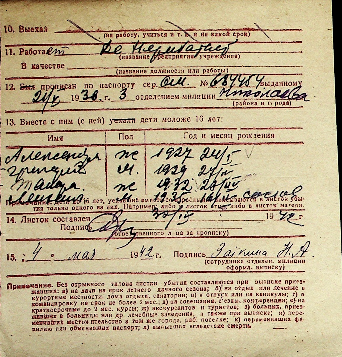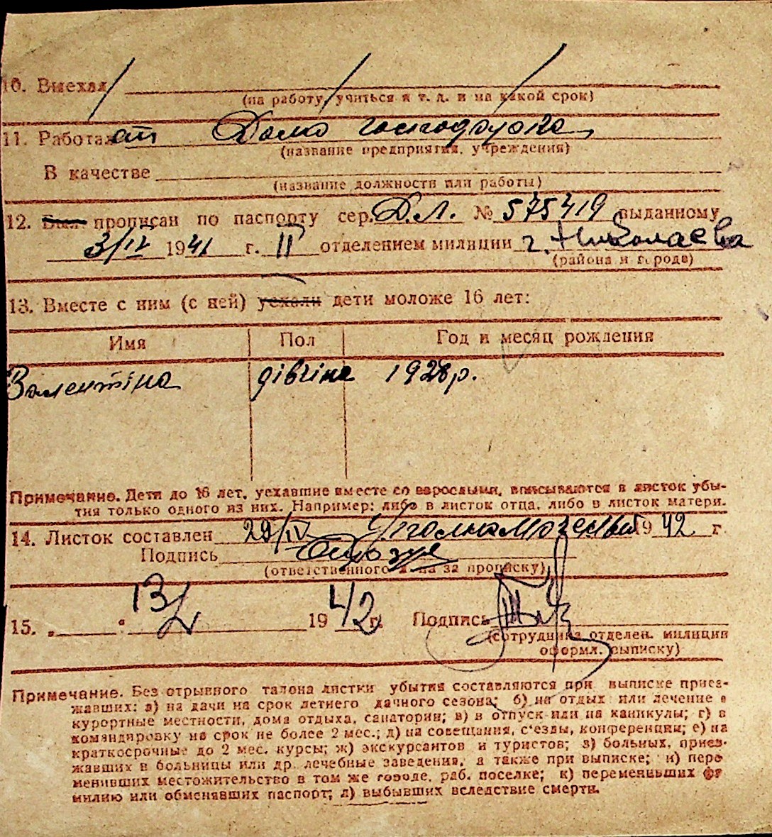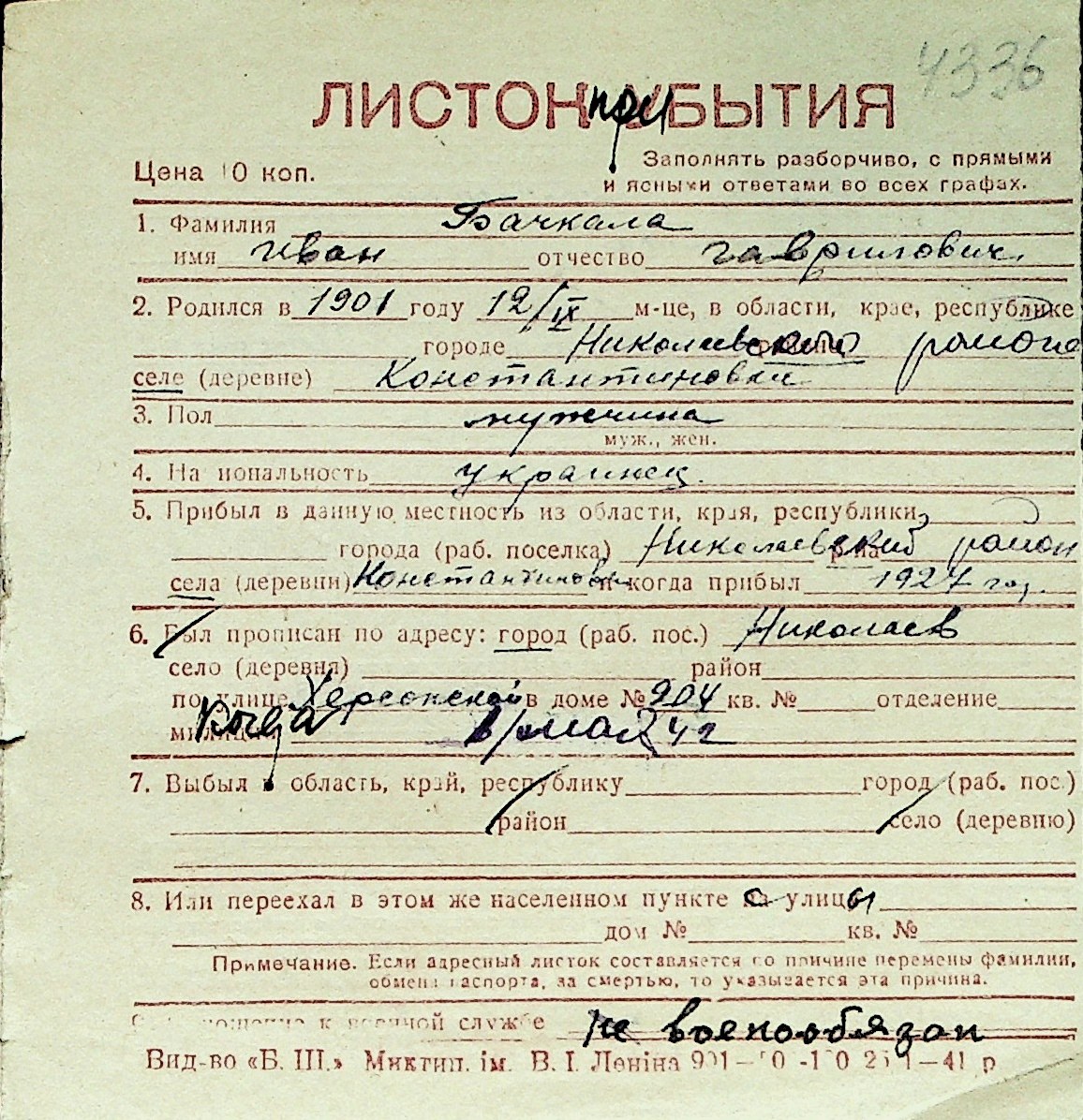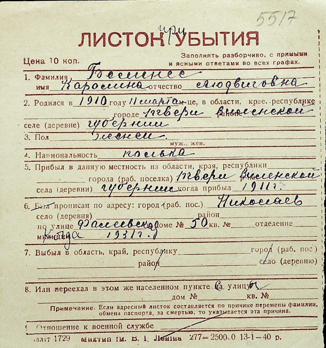 ◦ ◦ Перелік карток на осіб, які мешкали у м. Миколаїв у період окупації 1941–1944 років