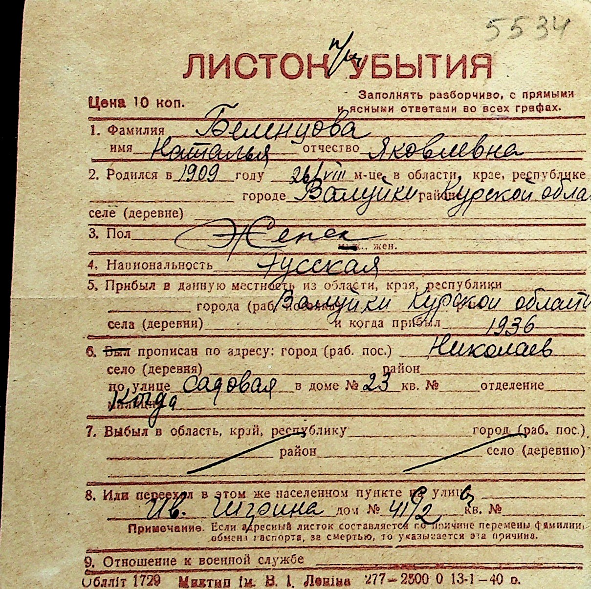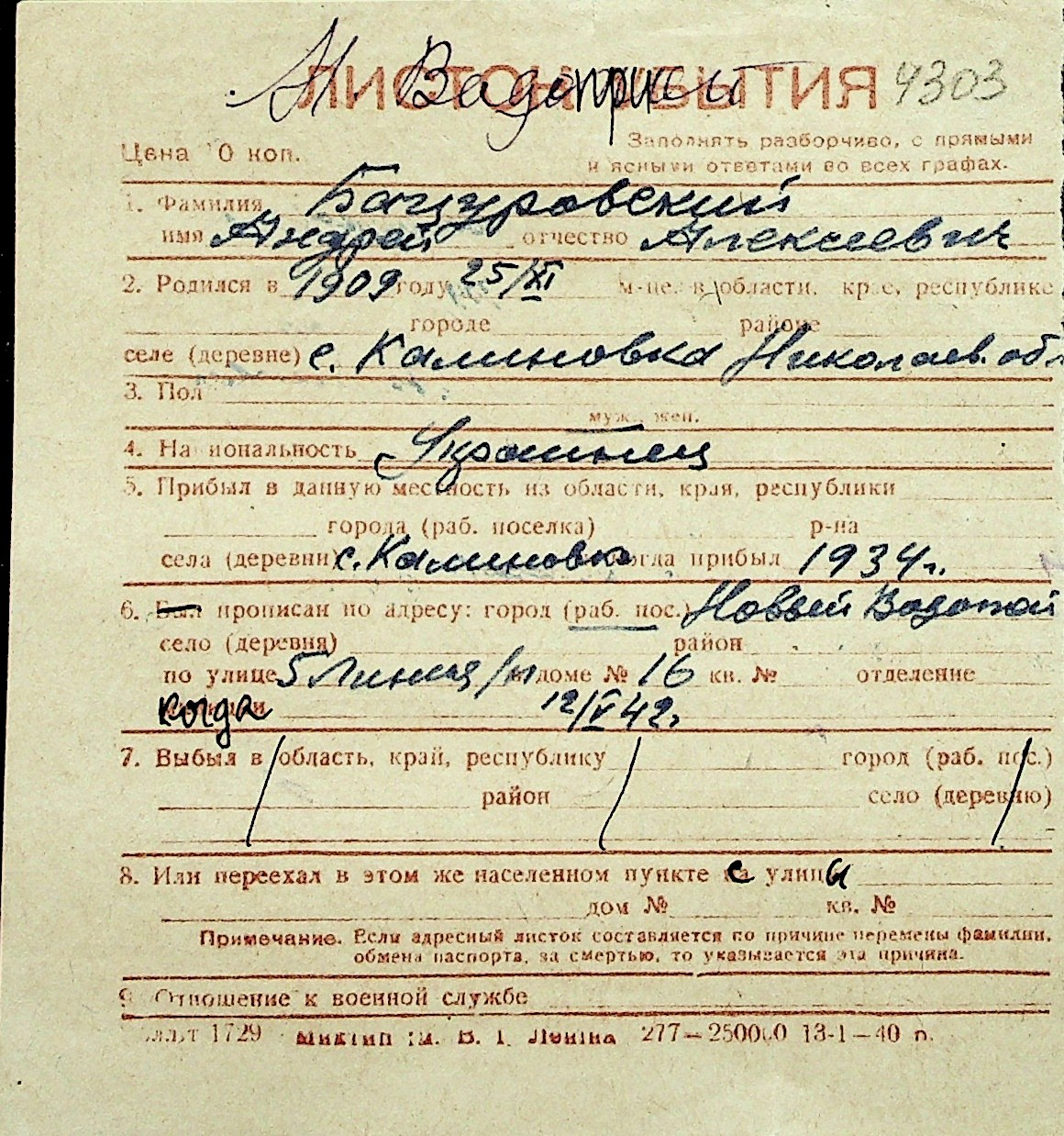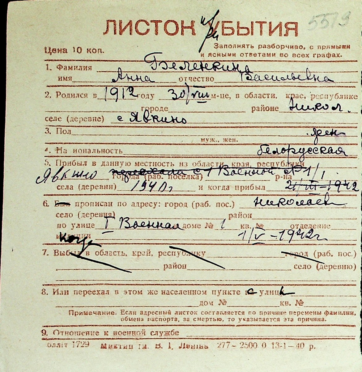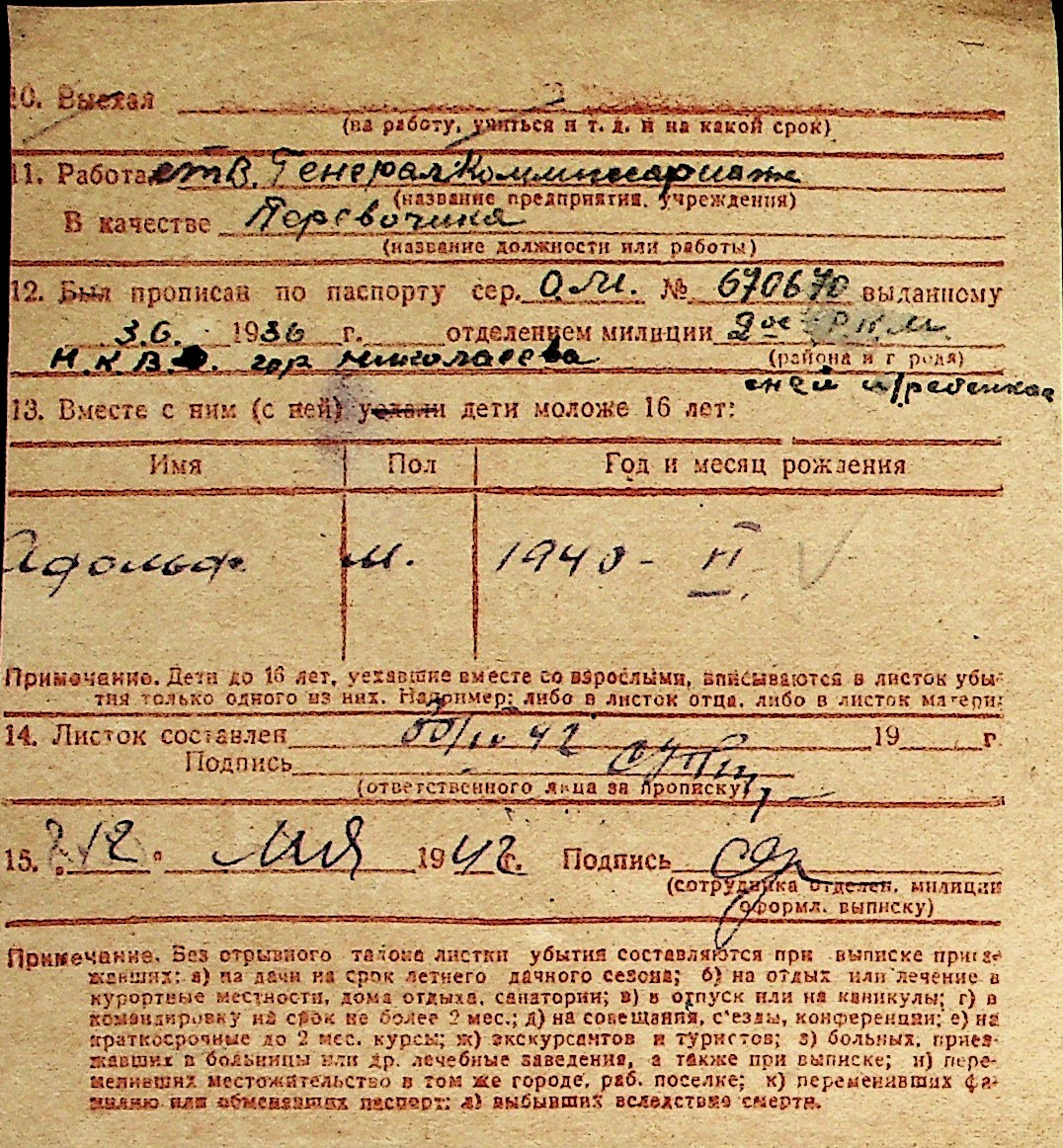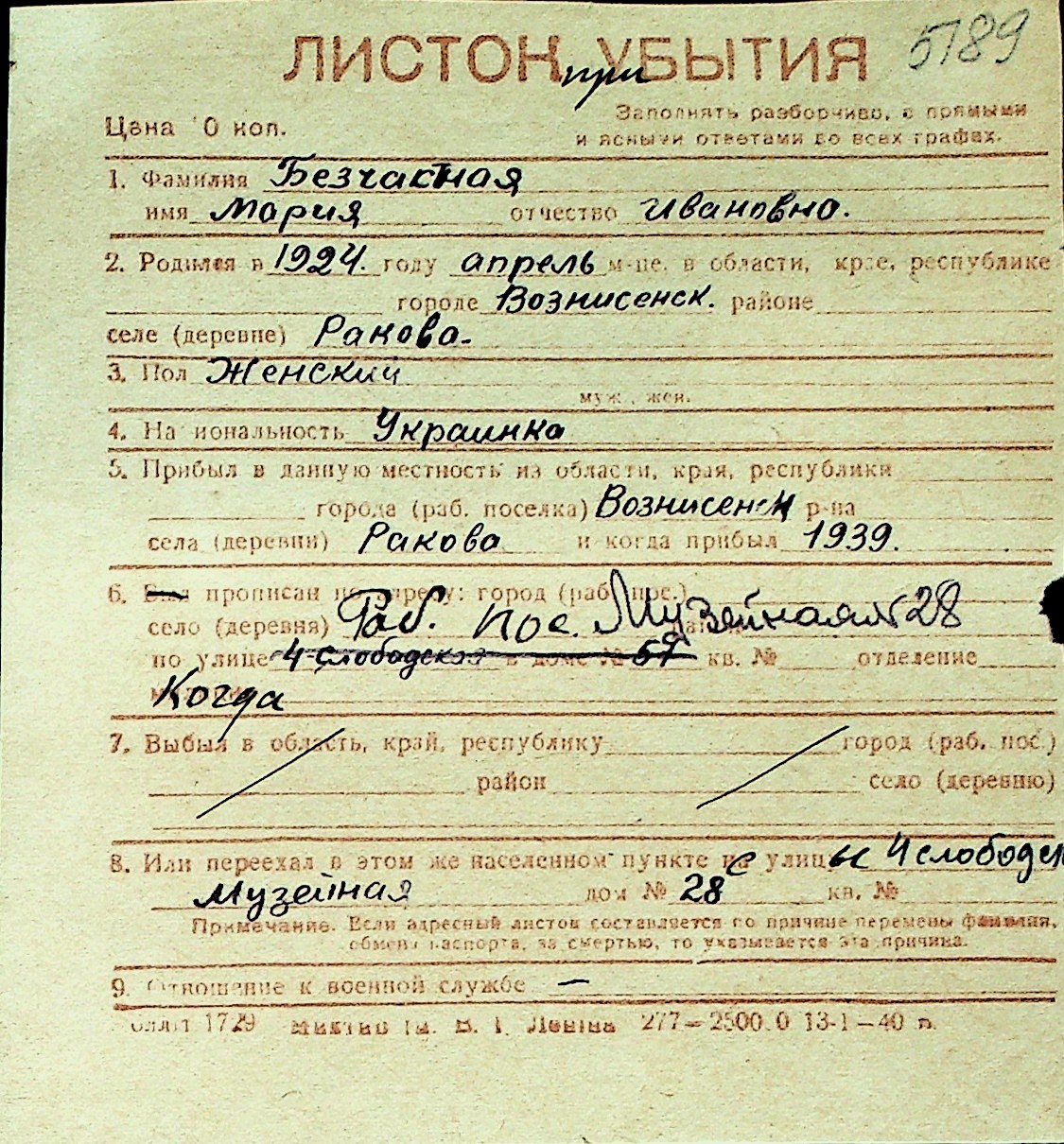 ◦ ◦ Перелік карток на осіб, які мешкали у м. Миколаїв у період окупації 1941–1944 років