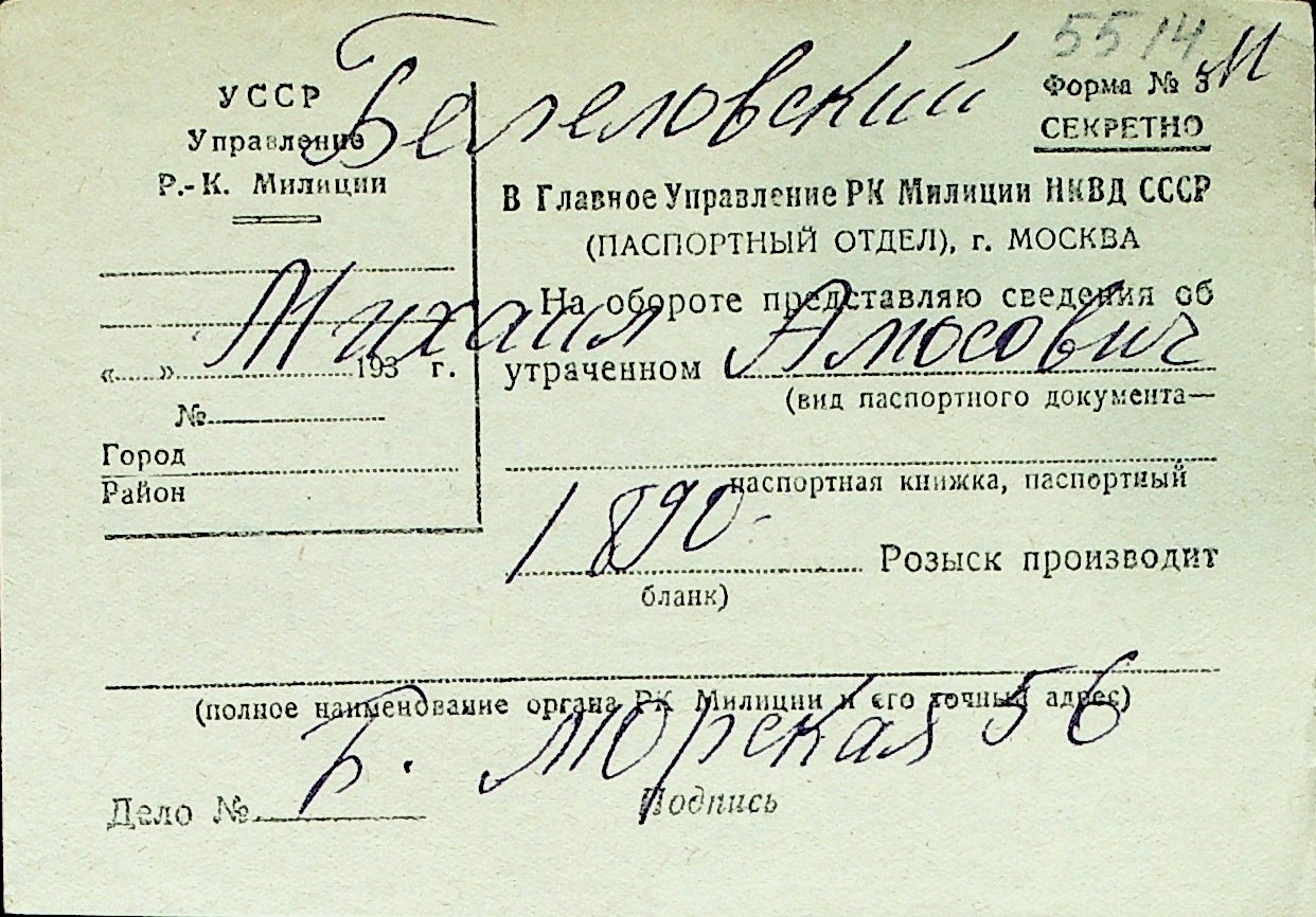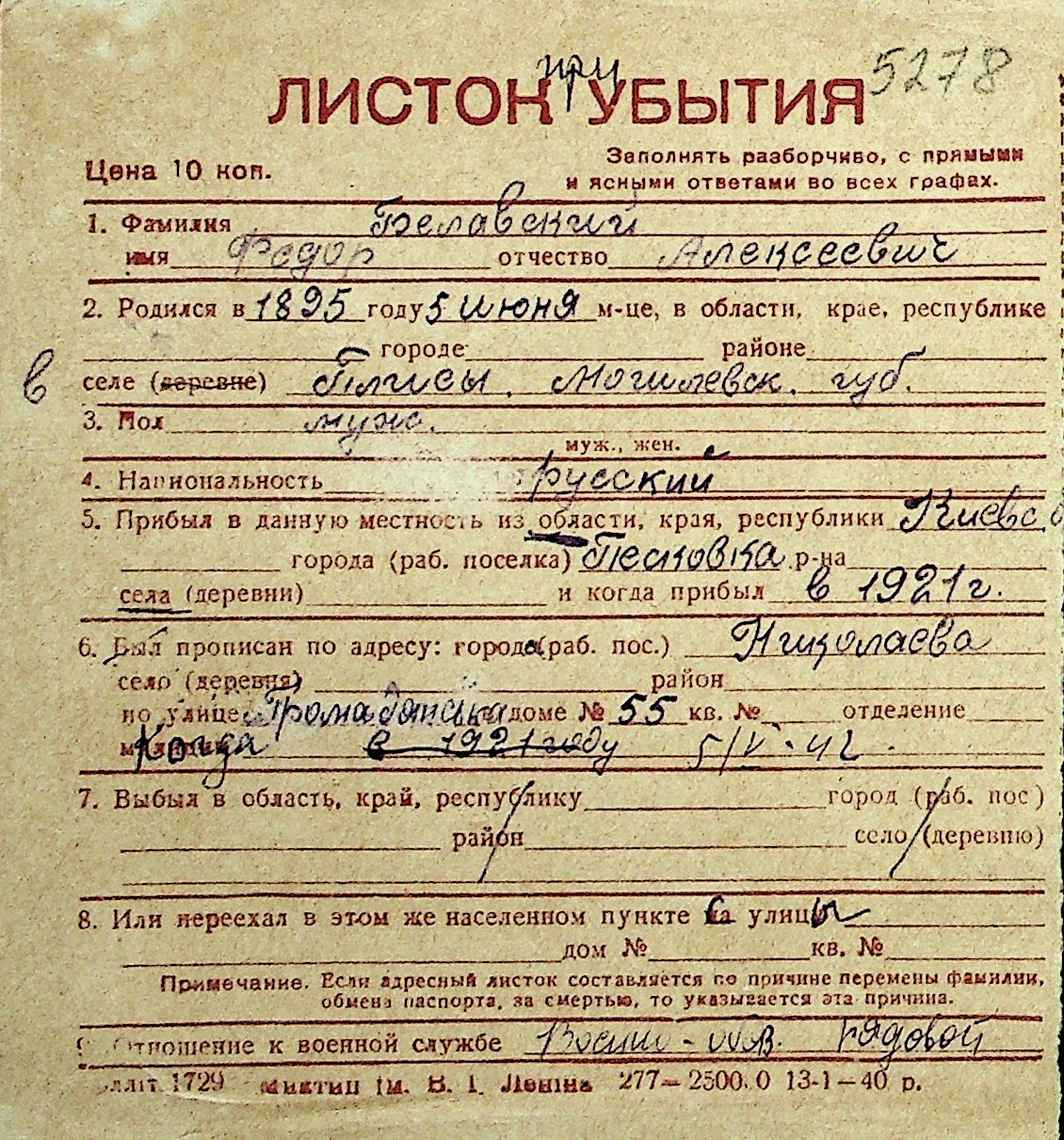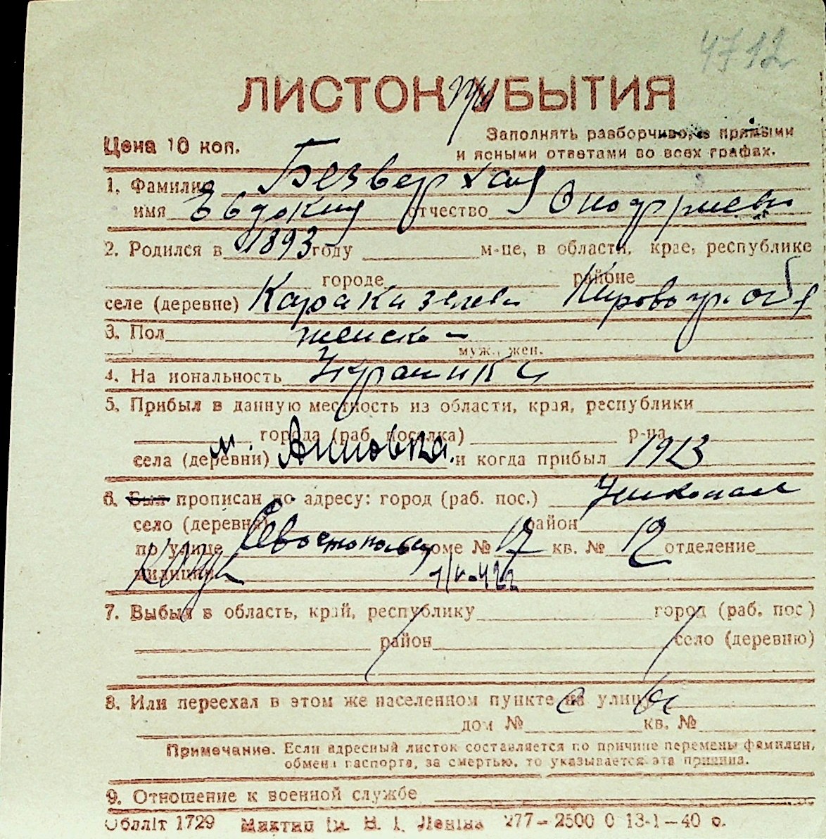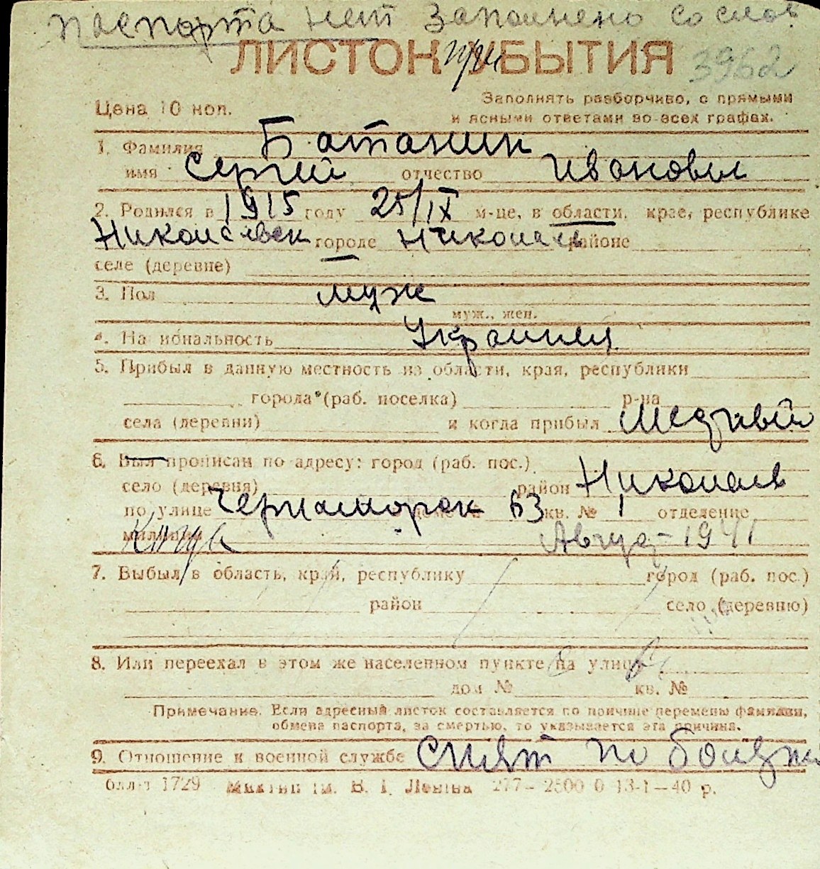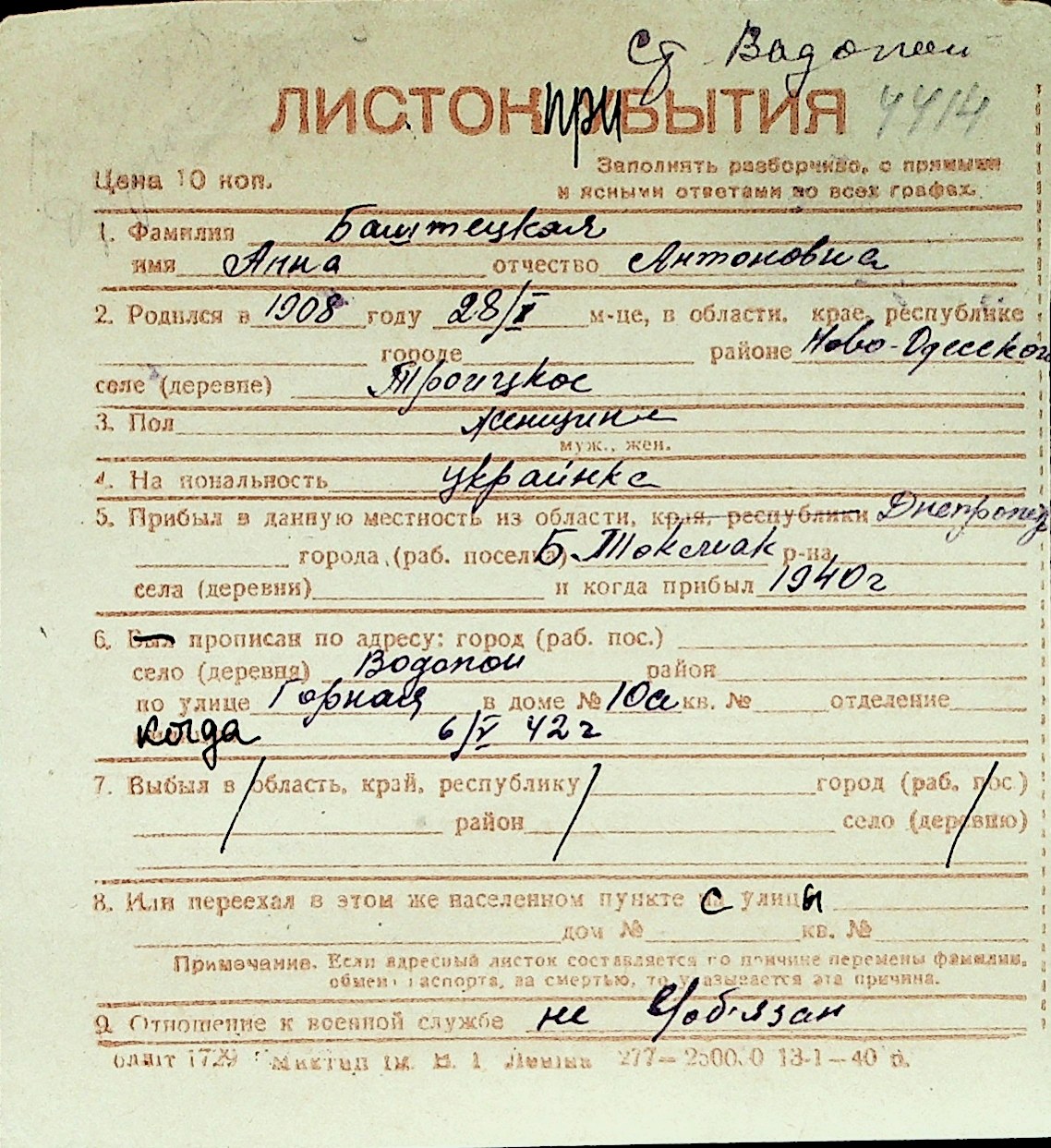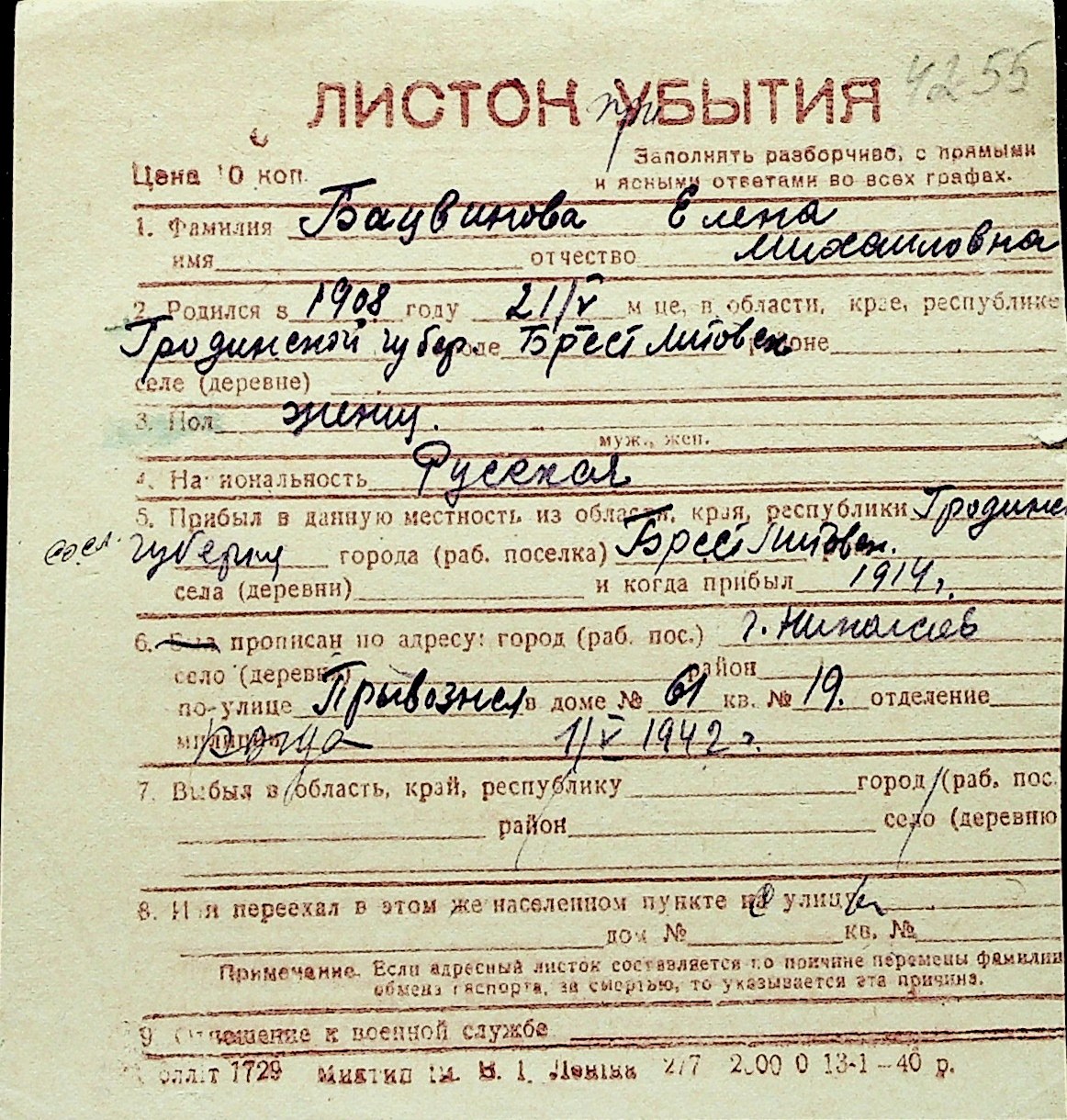 ◦ ◦ Перелік карток на осіб, які мешкали у м. Миколаїв у період окупації 1941–1944 років