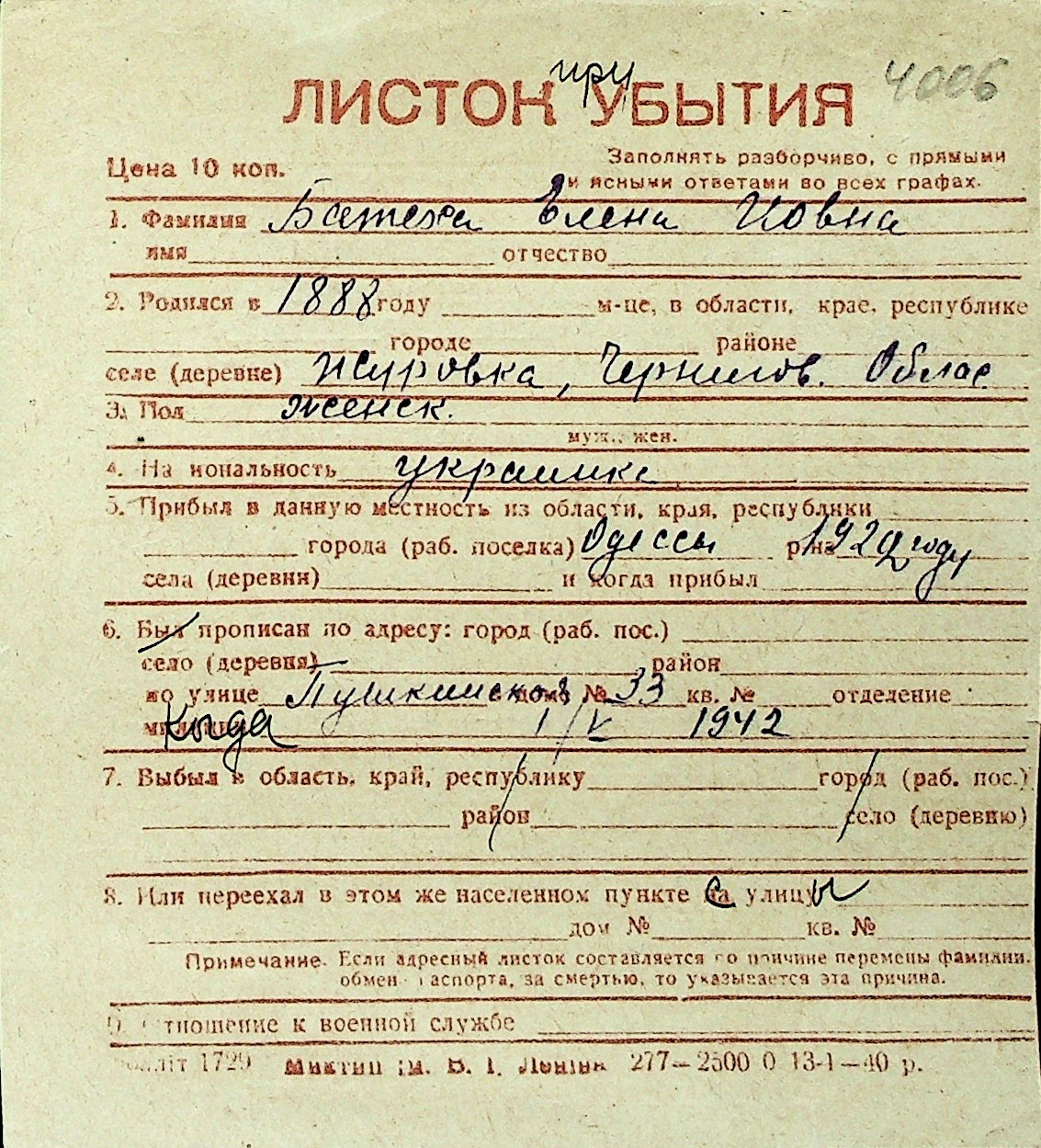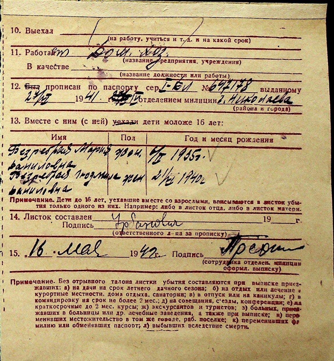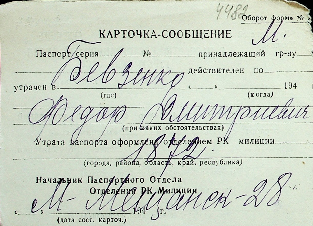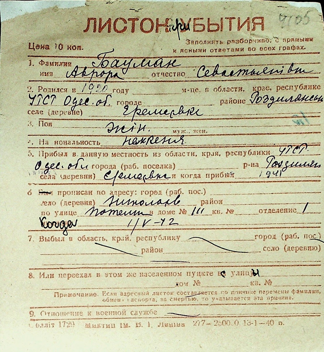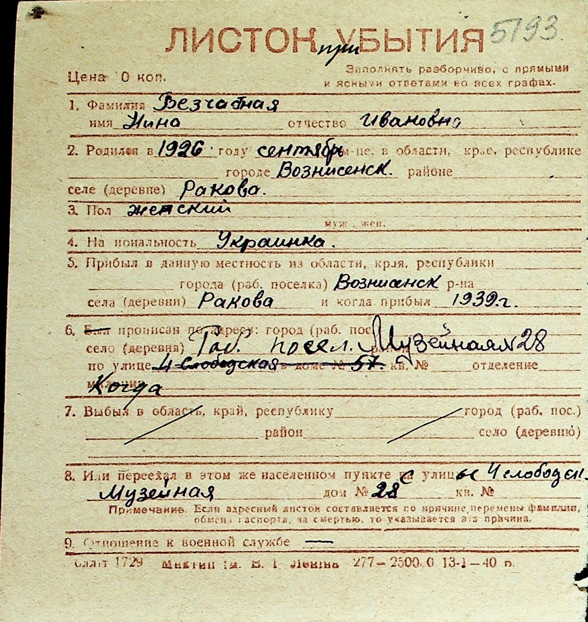 ◦ ◦ Перелік карток на осіб, які мешкали у м. Миколаїв у період окупації 1941–1944 років