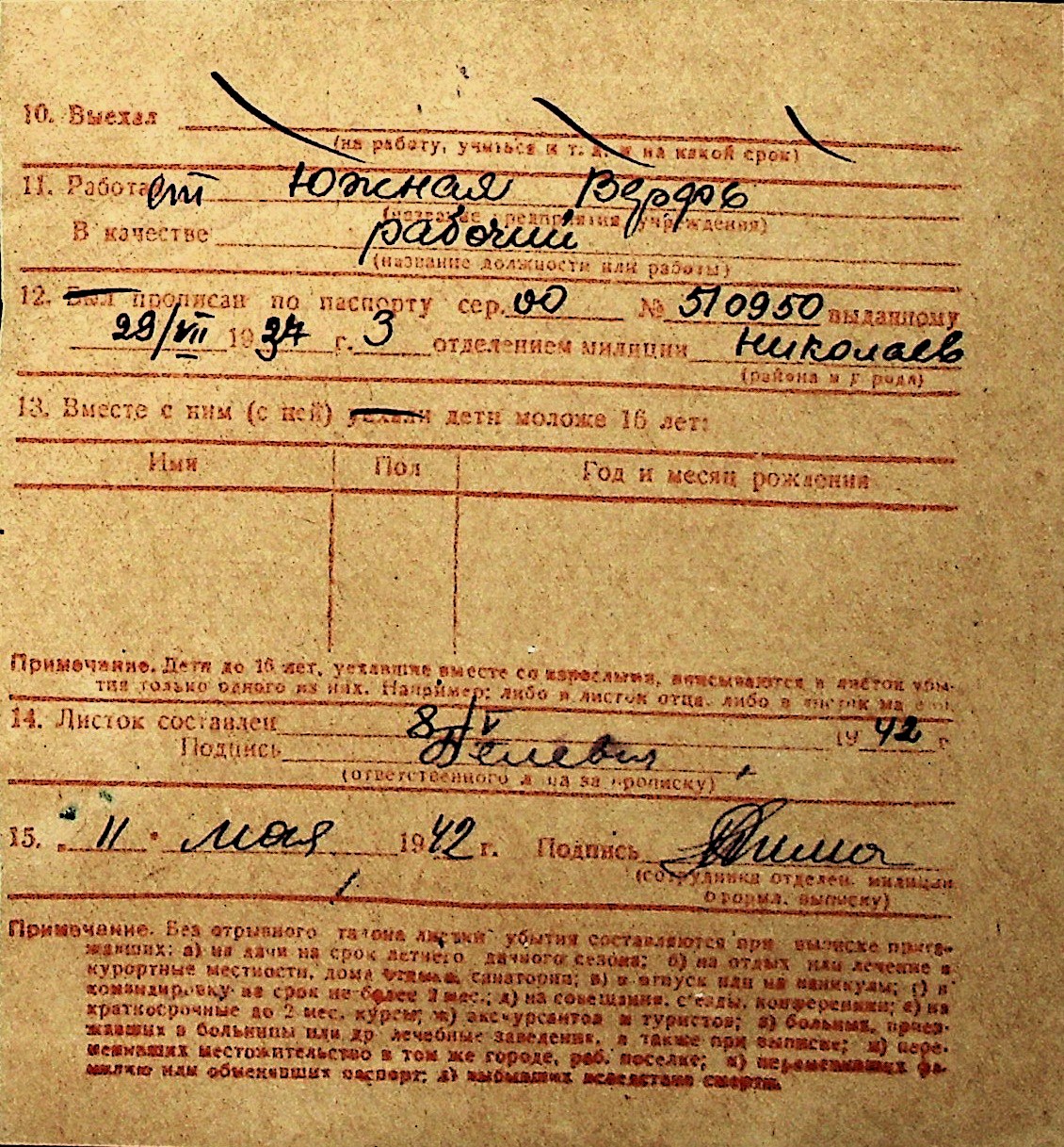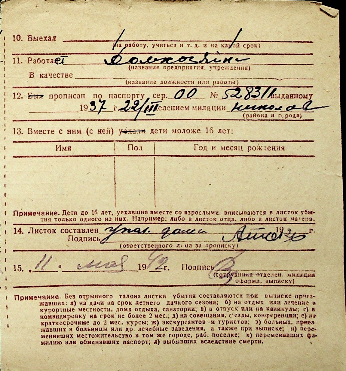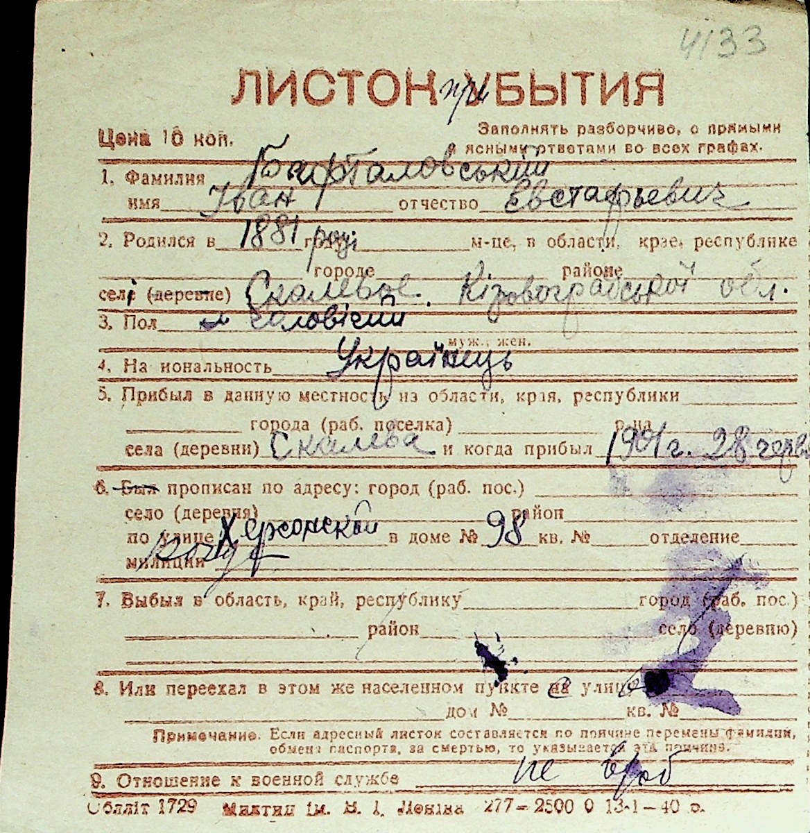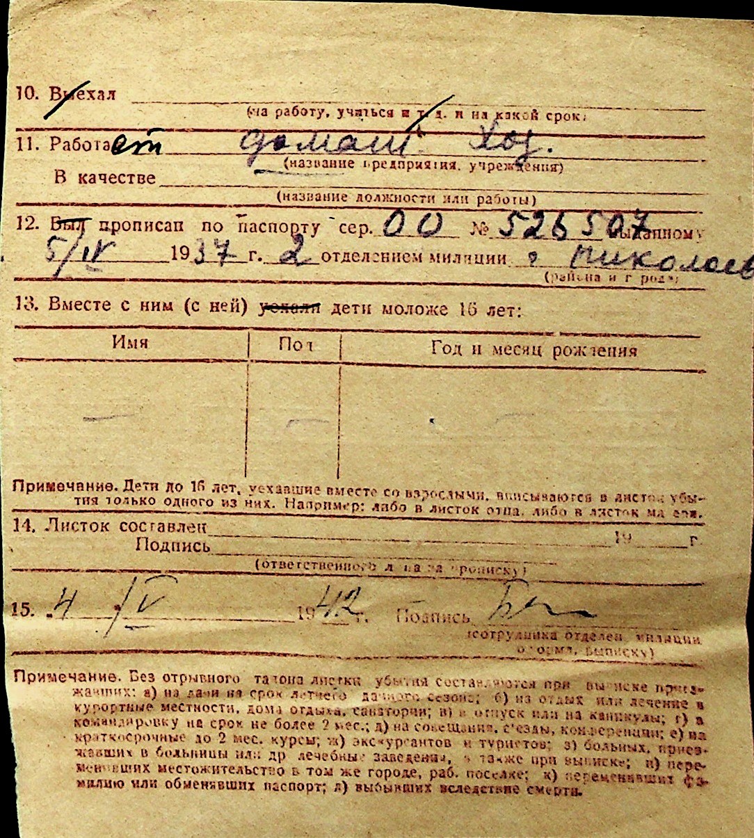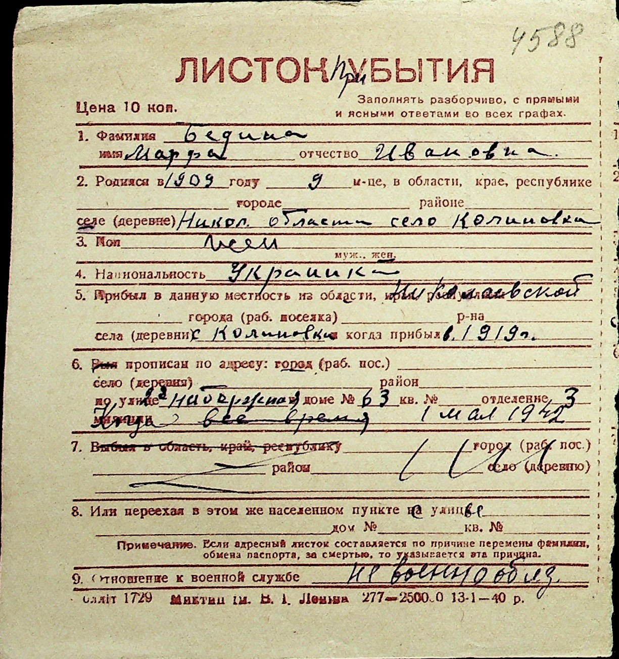 ◦ ◦ Перелік карток на осіб, які мешкали у м. Миколаїв у період окупації 1941–1944 років