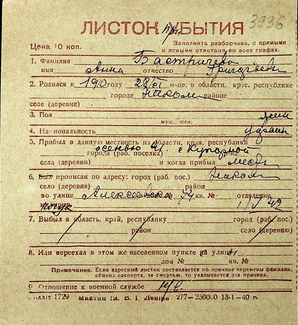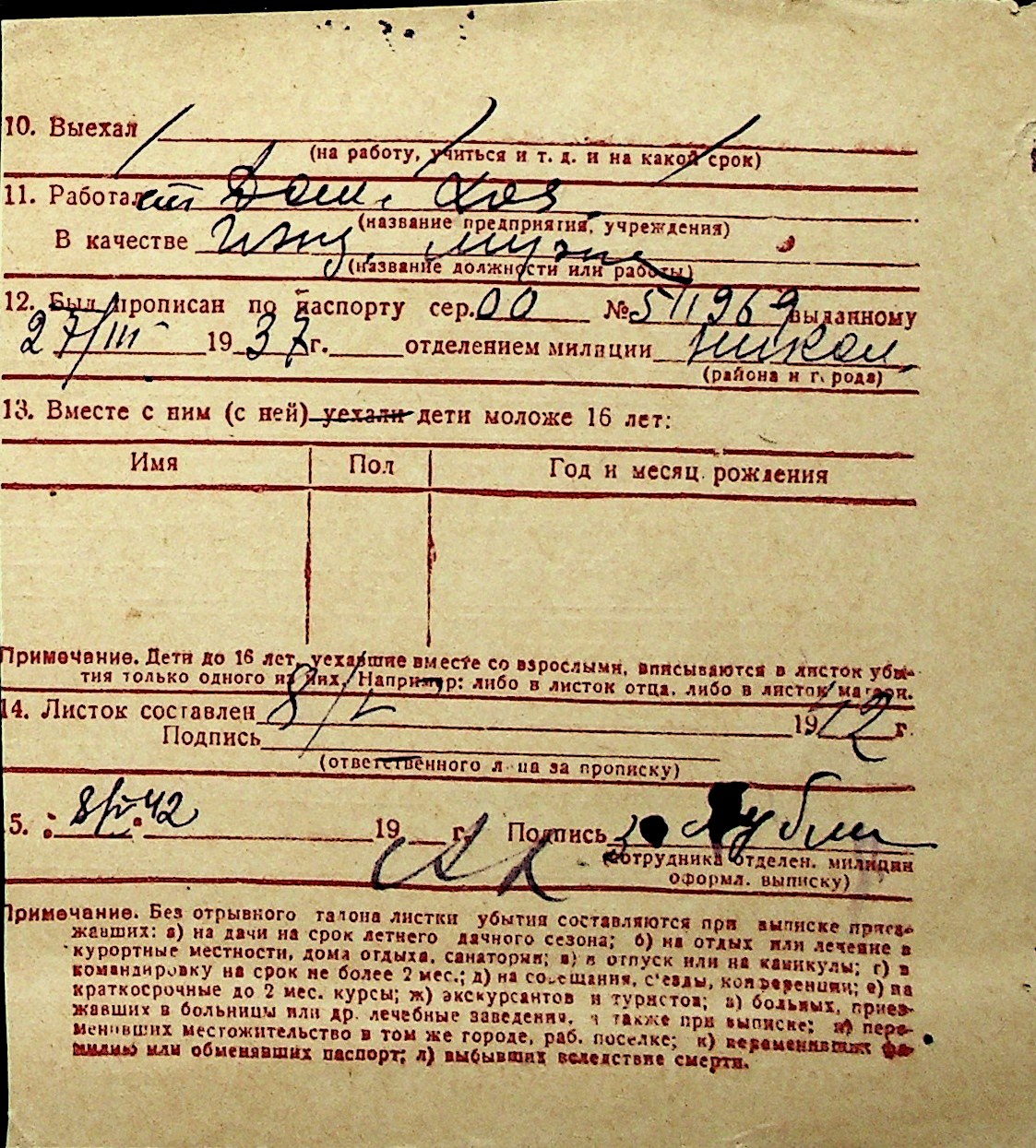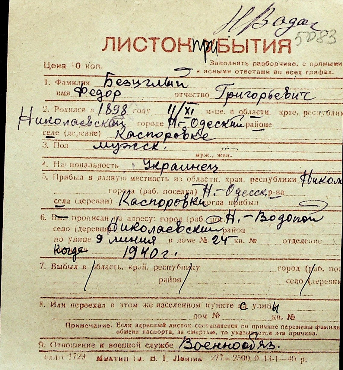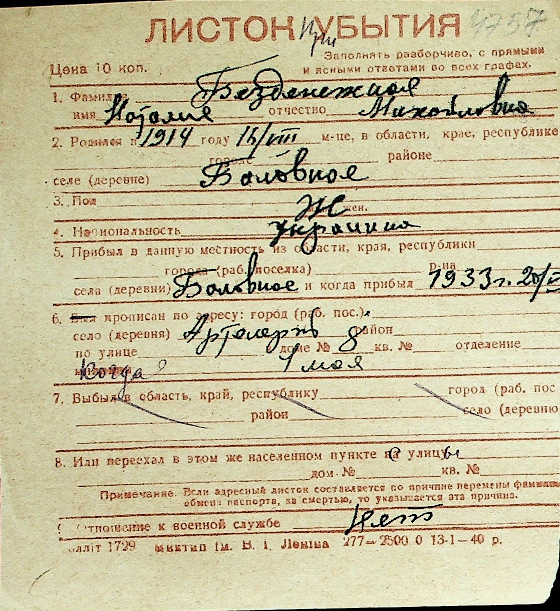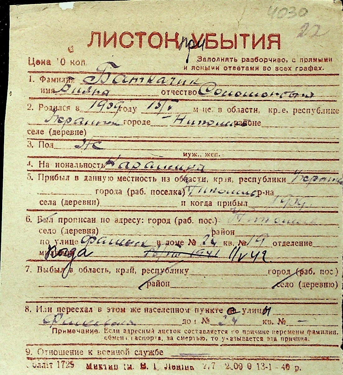 ◦ ◦ Перелік карток на осіб, які мешкали у м. Миколаїв у період окупації 1941–1944 років