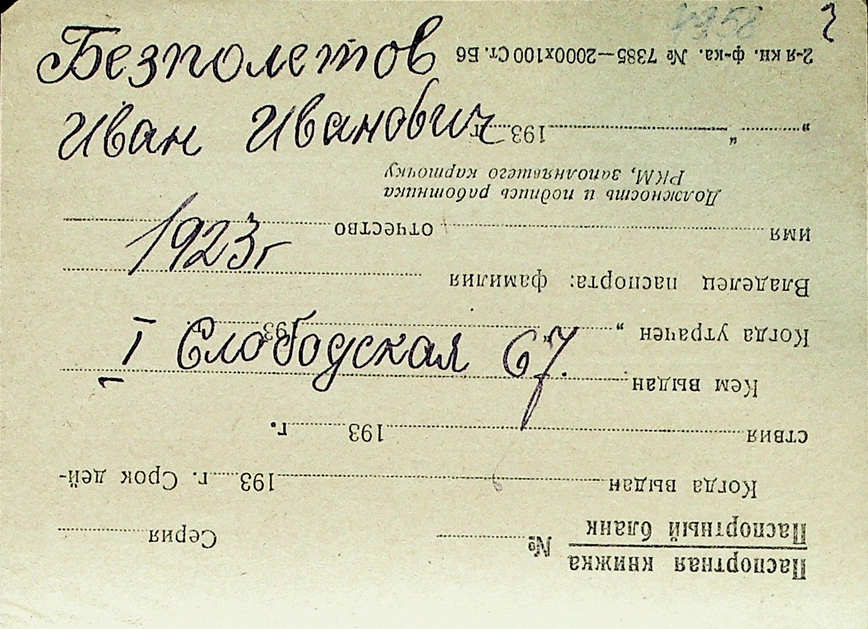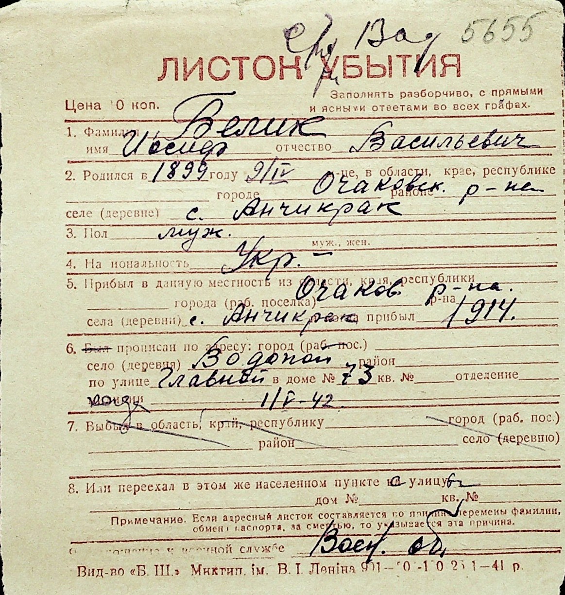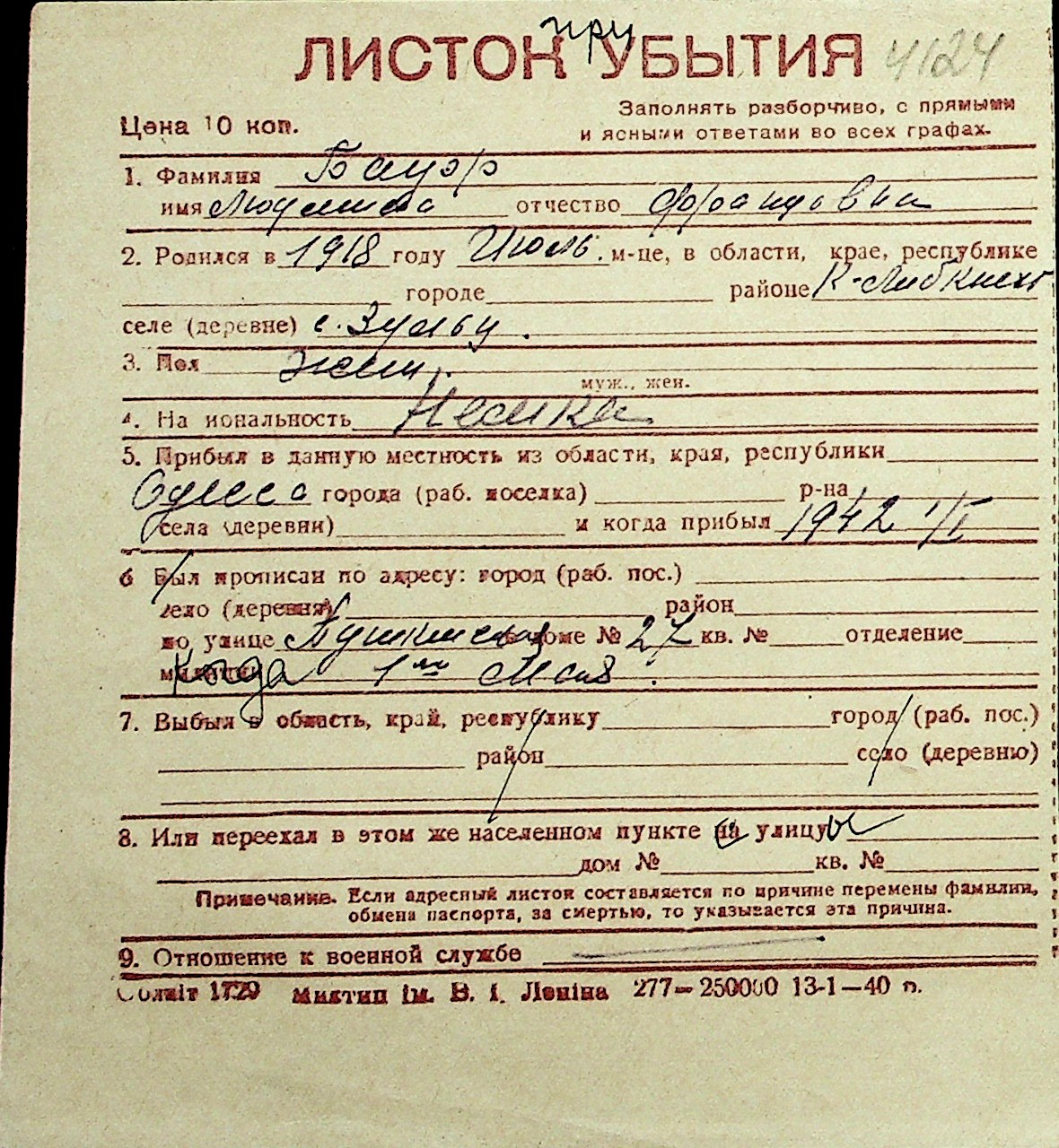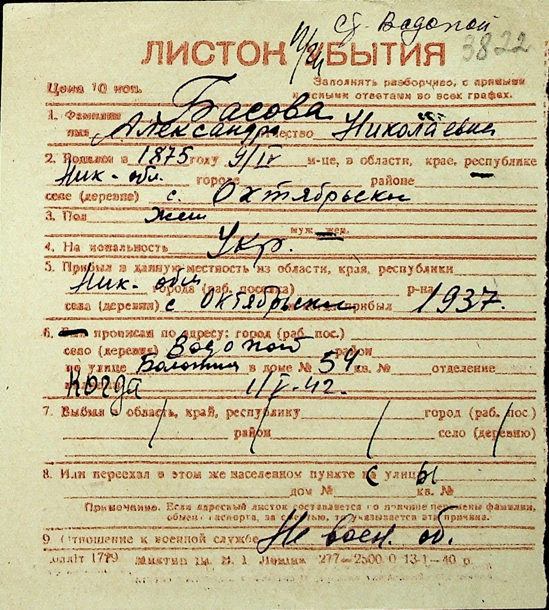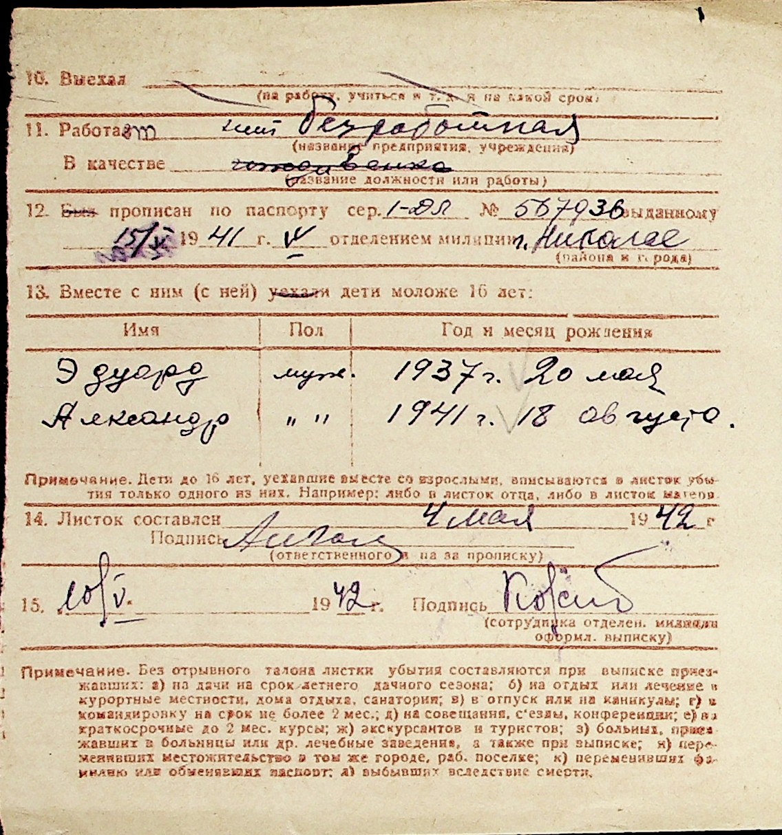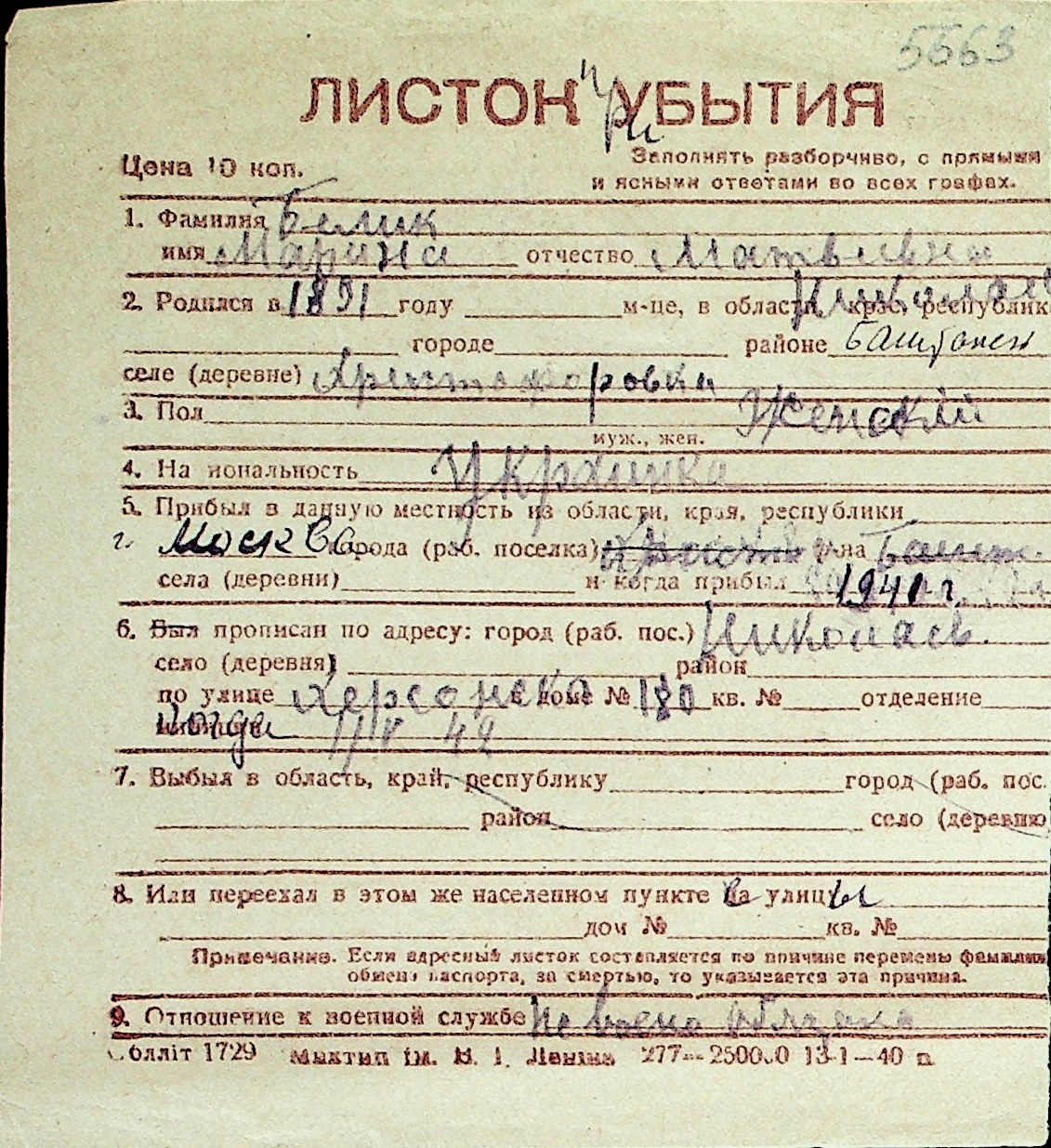 ◦ ◦ Перелік карток на осіб, які мешкали у м. Миколаїв у період окупації 1941–1944 років