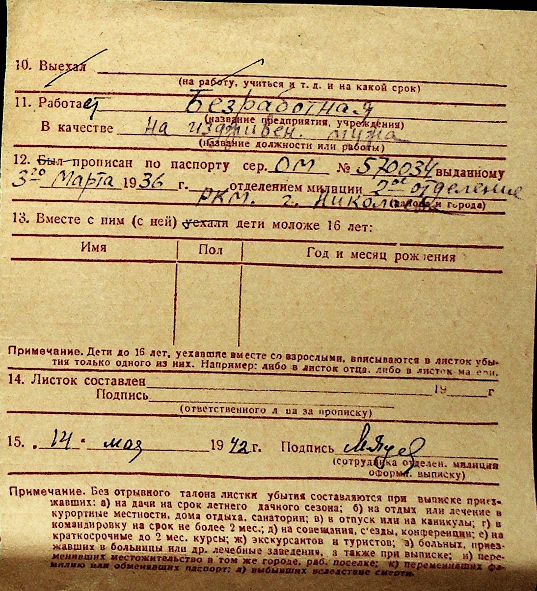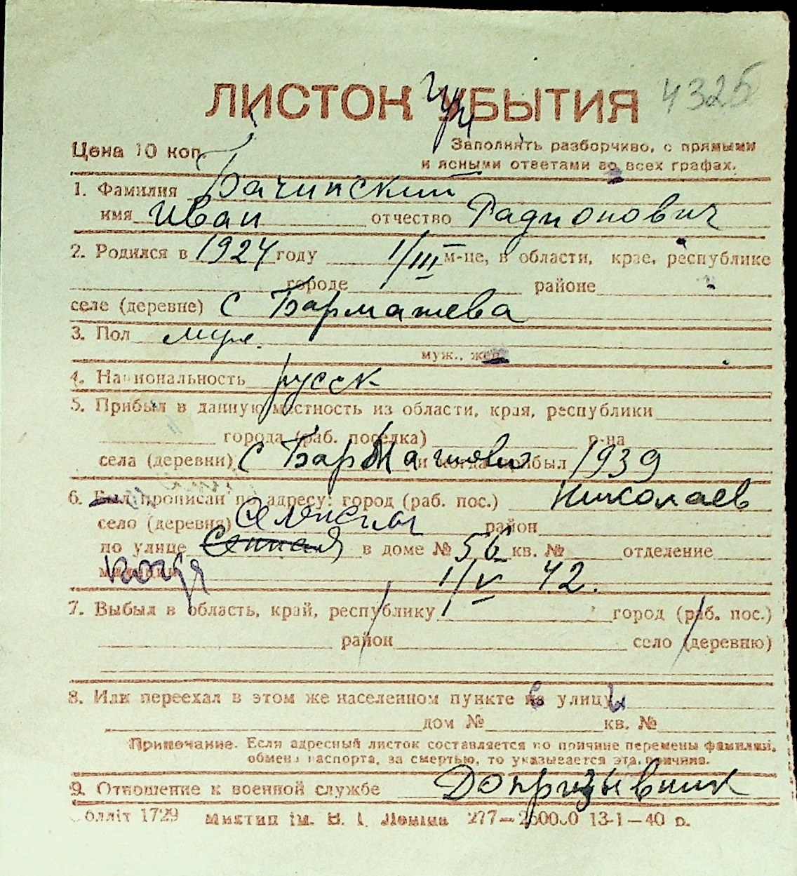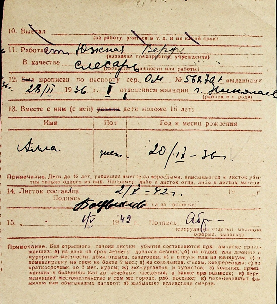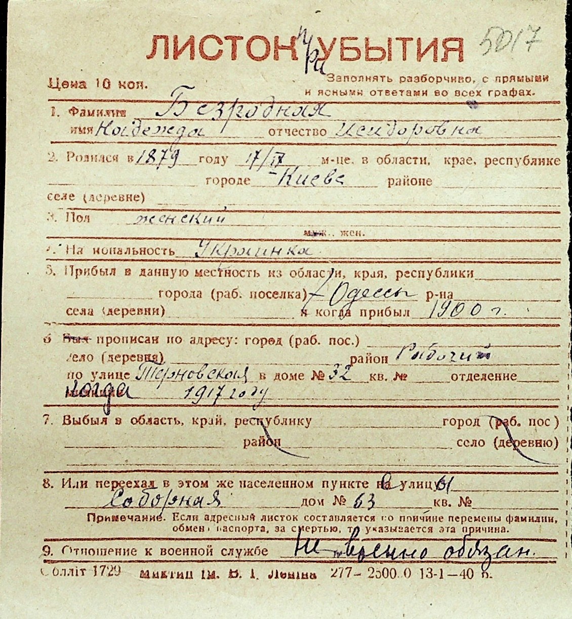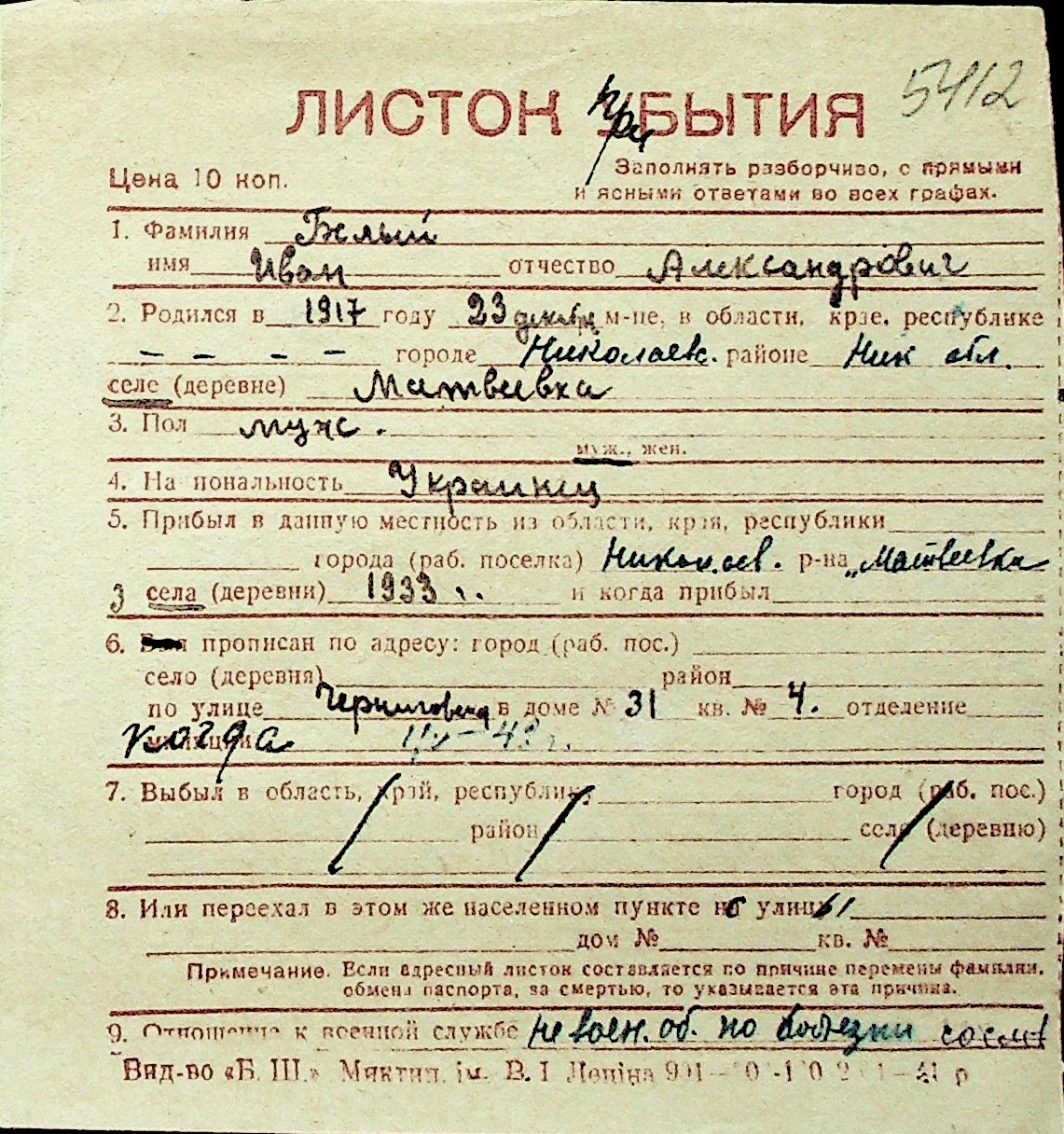 ◦ ◦ Перелік карток на осіб, які мешкали у м. Миколаїв у період окупації 1941–1944 років