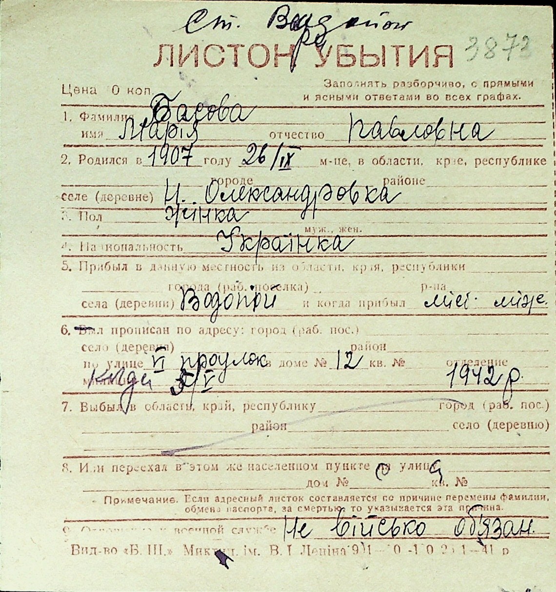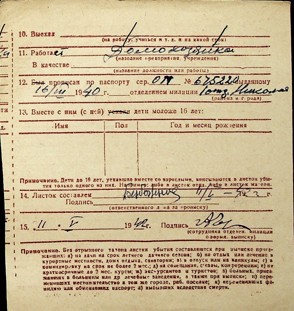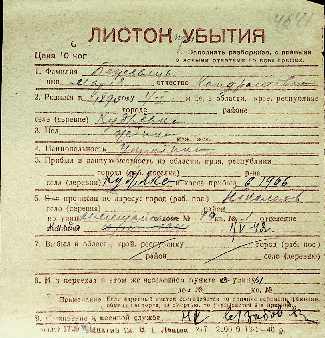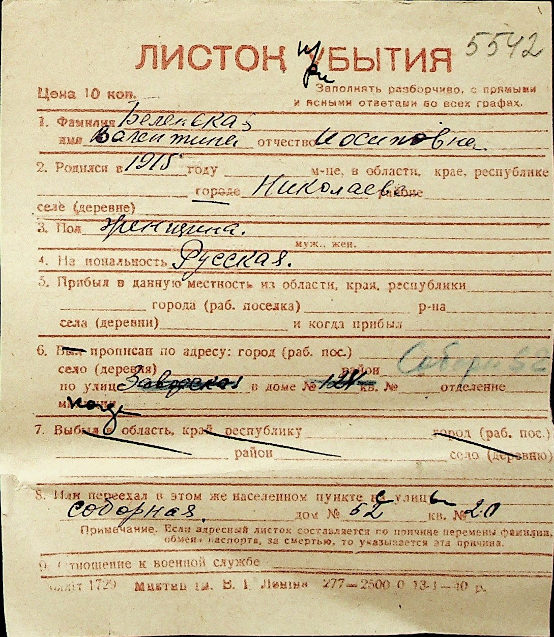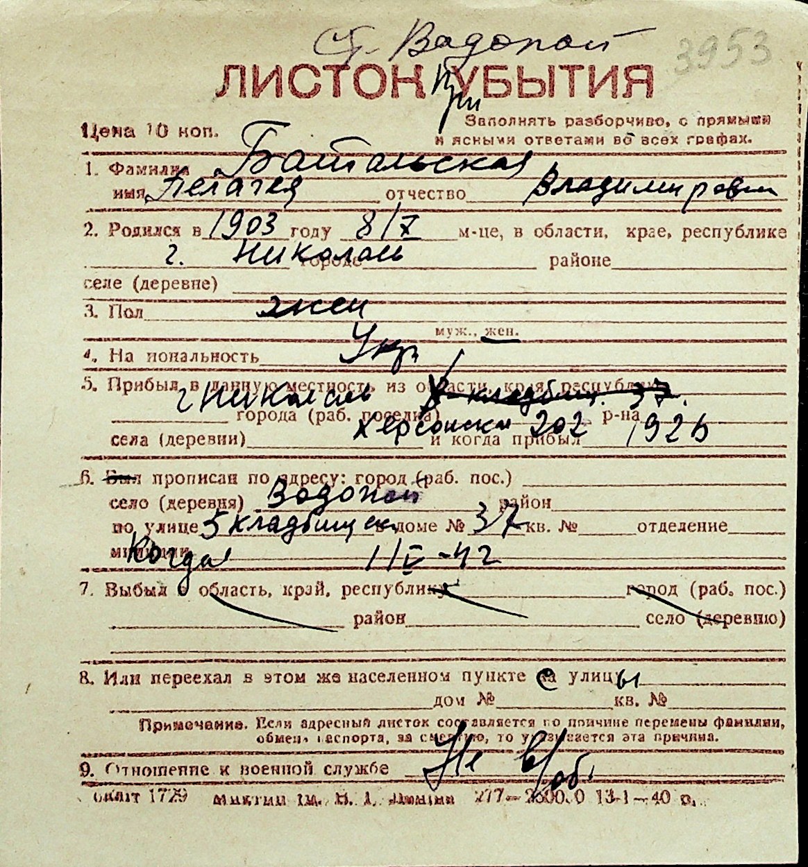 ◦ ◦ Перелік карток на осіб, які мешкали у м. Миколаїв у період окупації 1941–1944 років