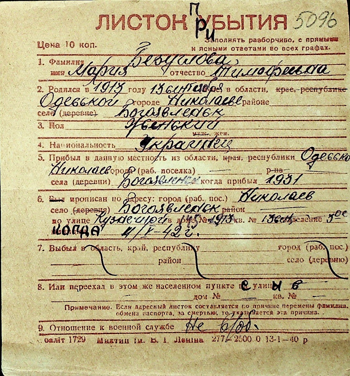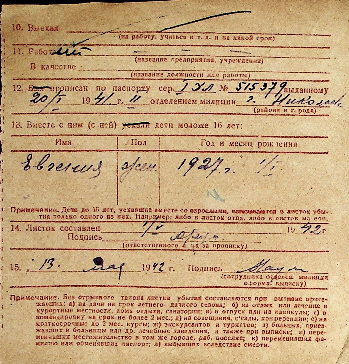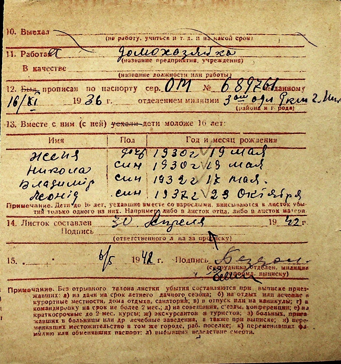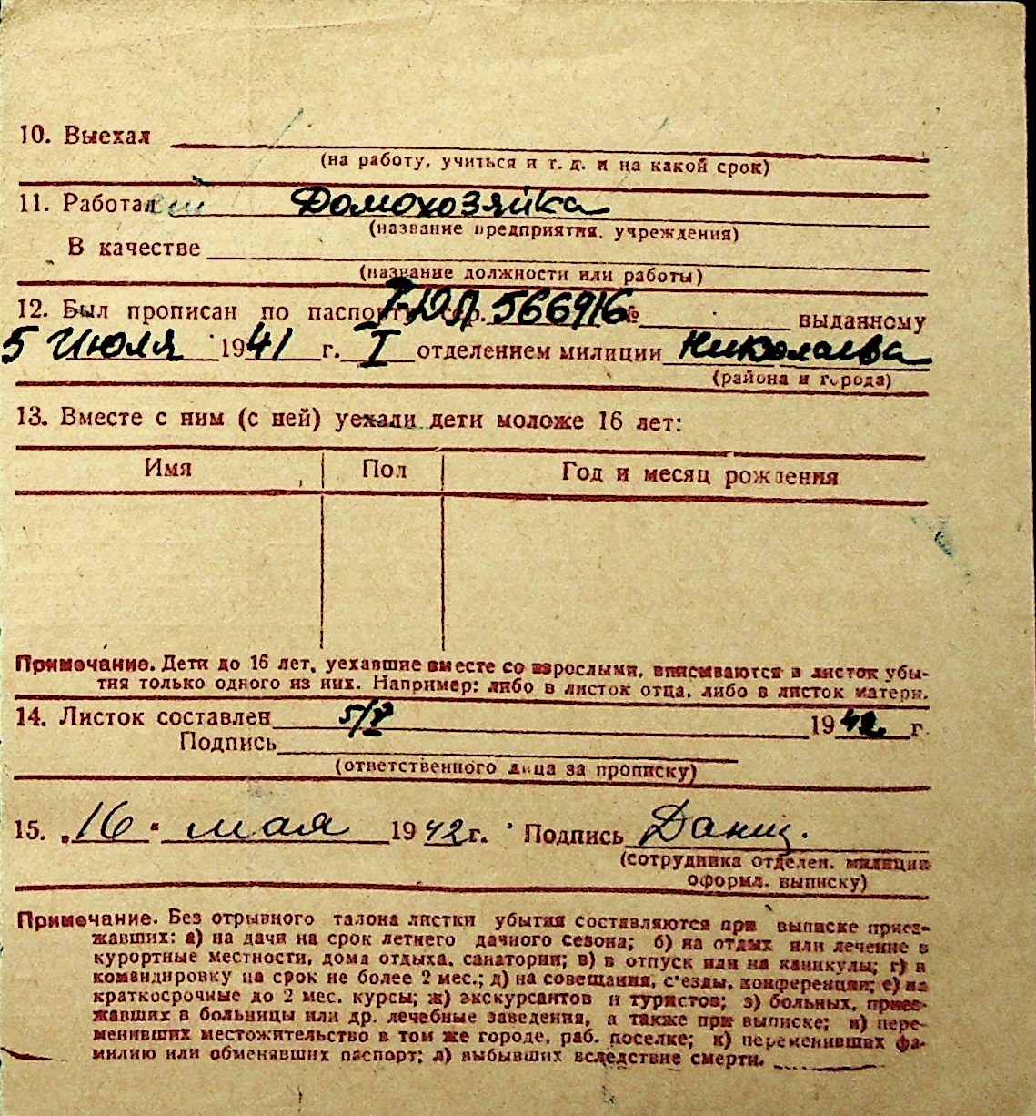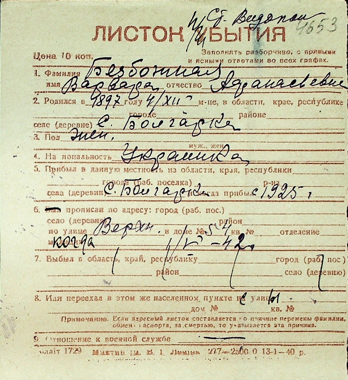 ◦ ◦ Перелік карток на осіб, які мешкали у м. Миколаїв у період окупації 1941–1944 років