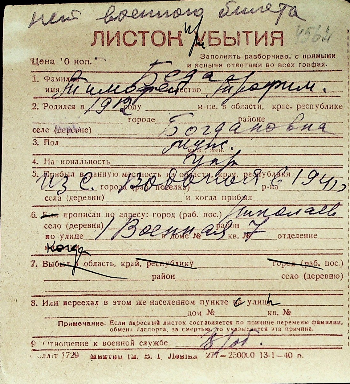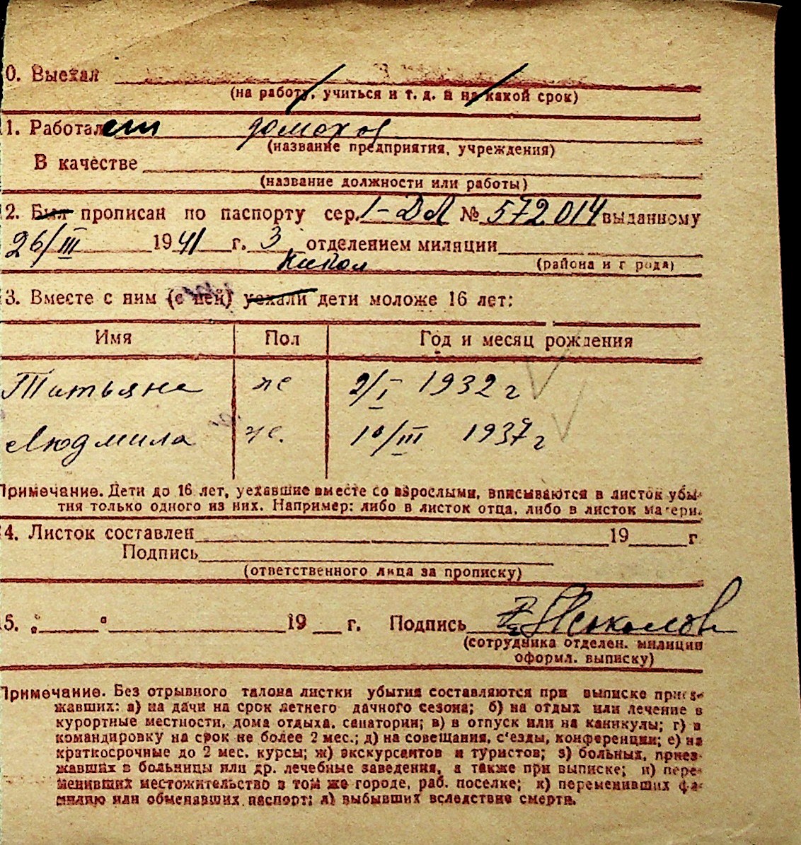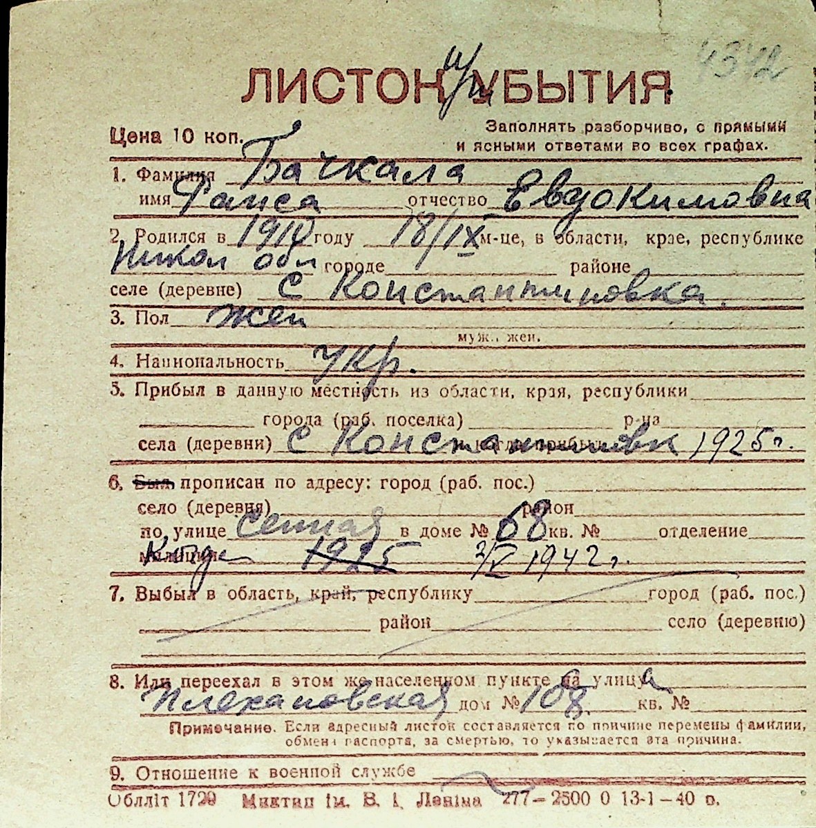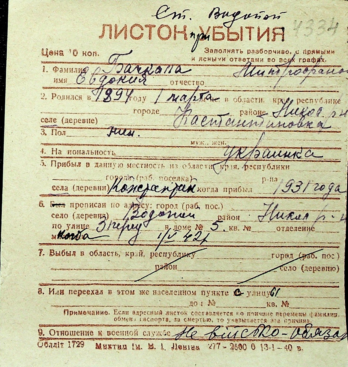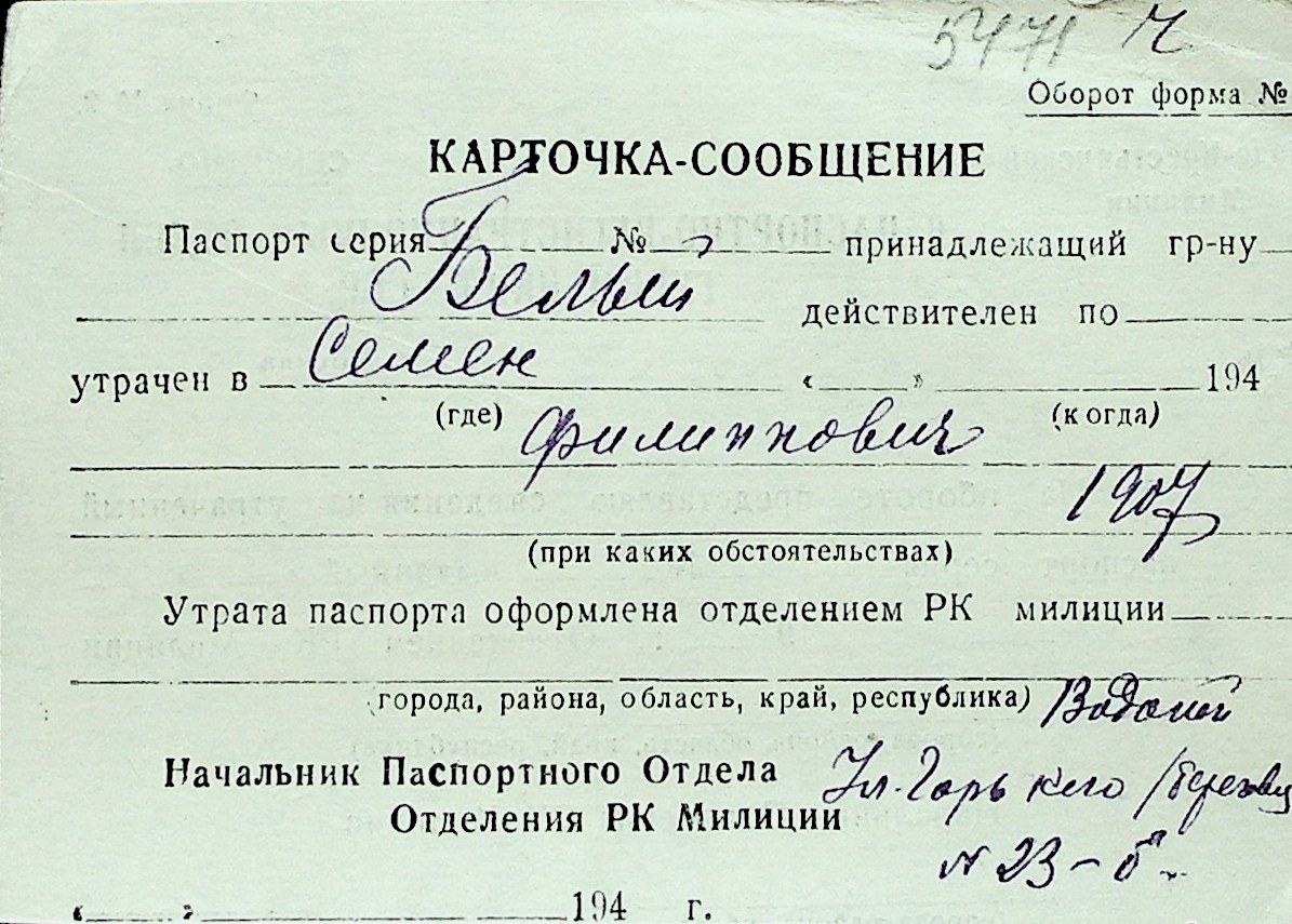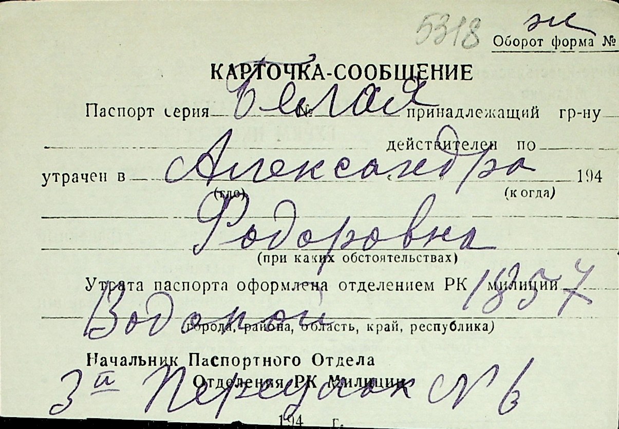 ◦ ◦ Перелік карток на осіб, які мешкали у м. Миколаїв у період окупації 1941–1944 років