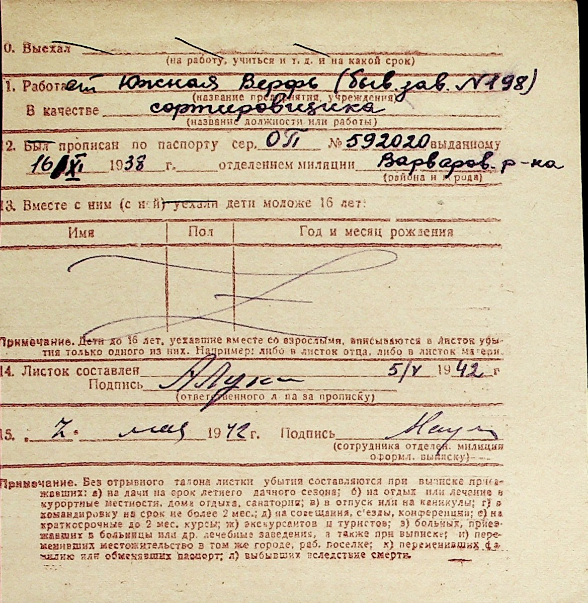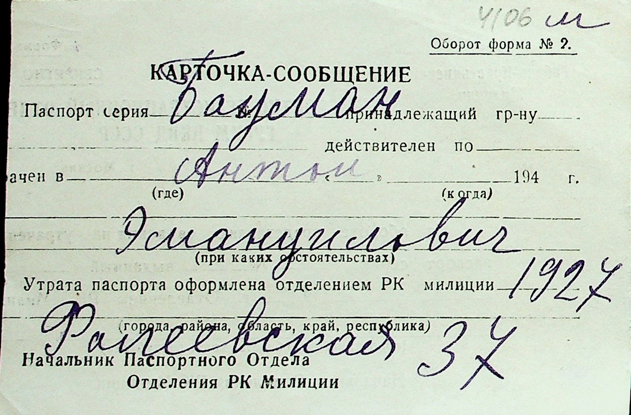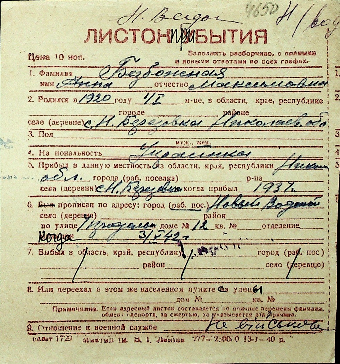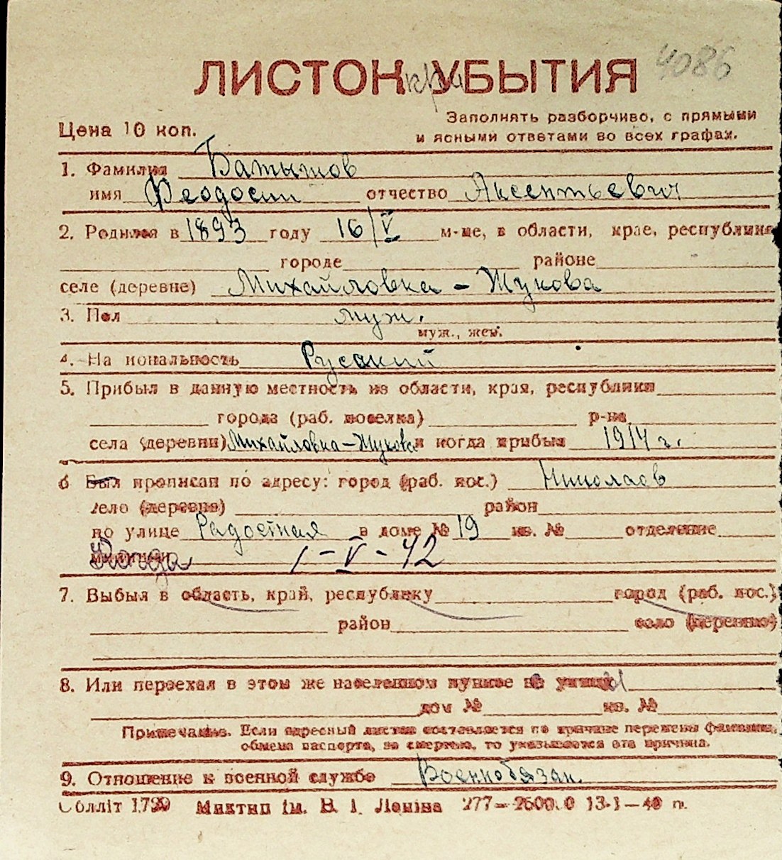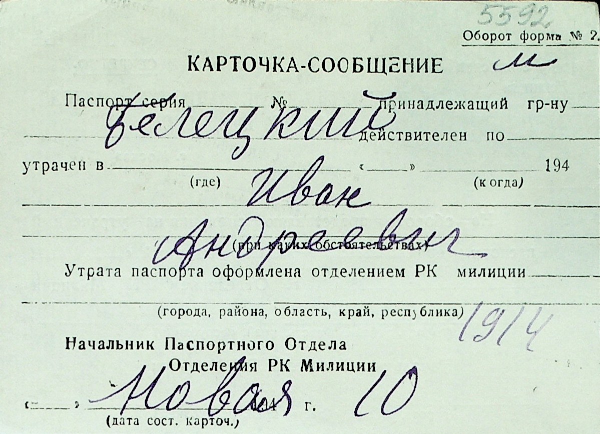 ◦ ◦ Перелік карток на осіб, які мешкали у м. Миколаїв у період окупації 1941–1944 років