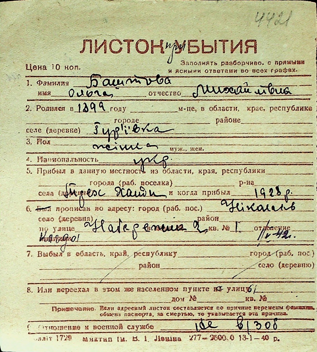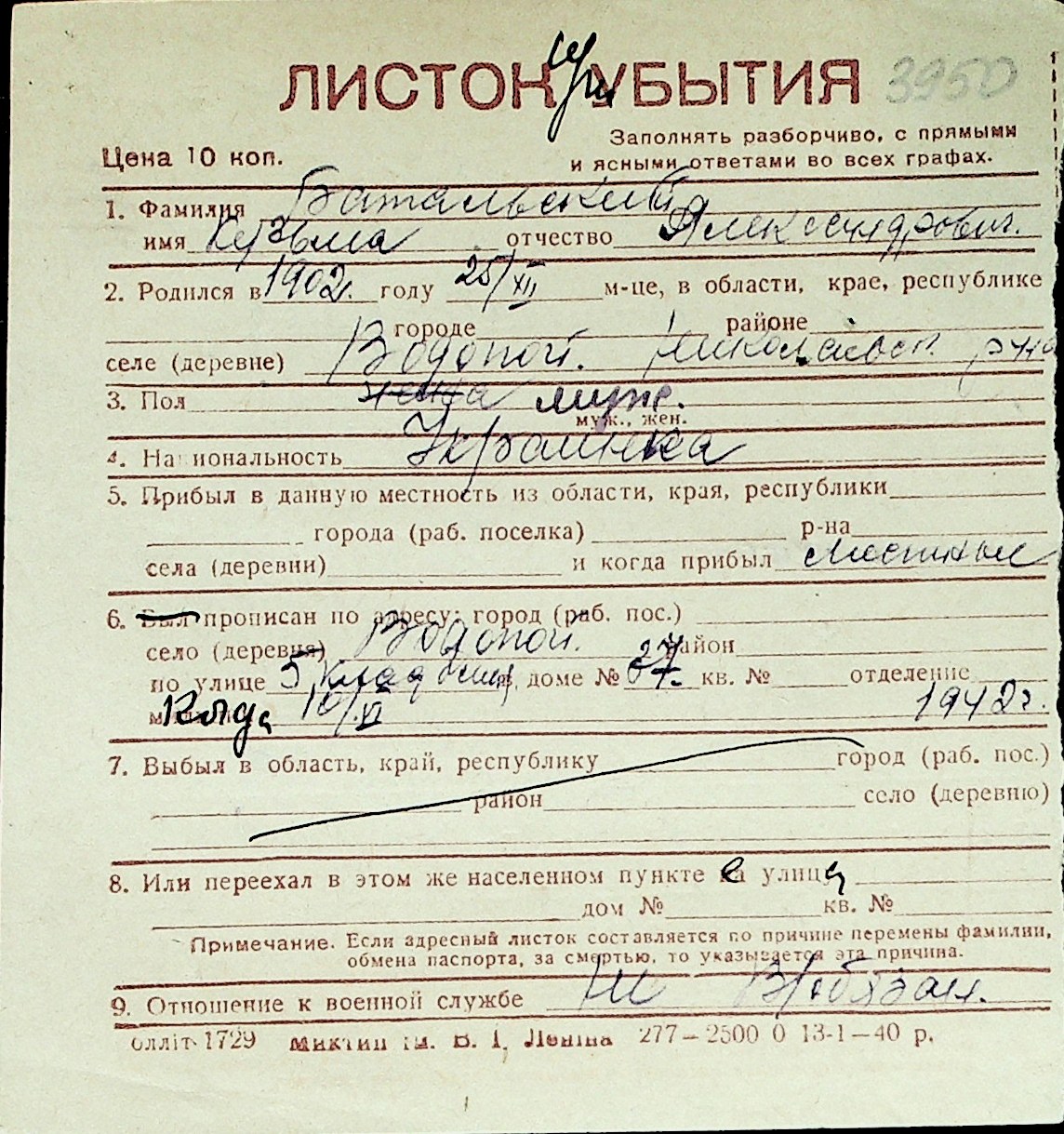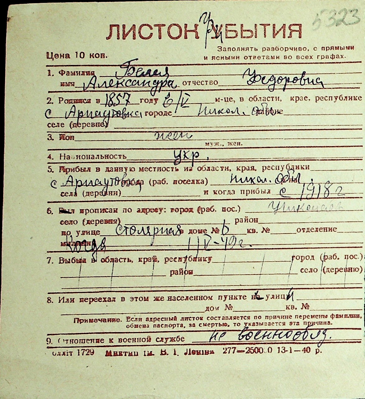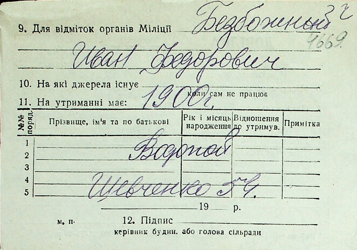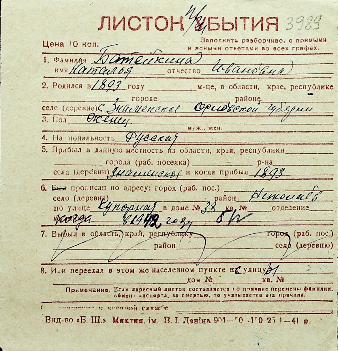 ◦ ◦ Перелік карток на осіб, які мешкали у м. Миколаїв у період окупації 1941–1944 років