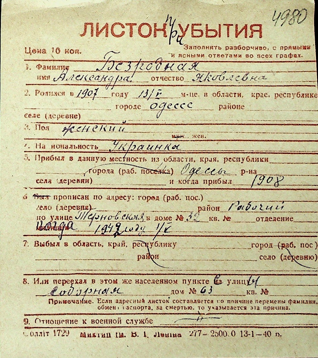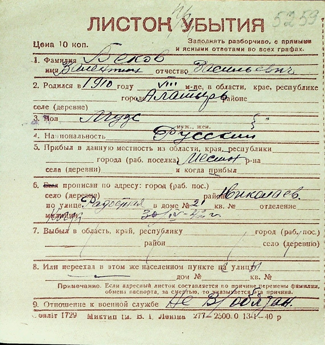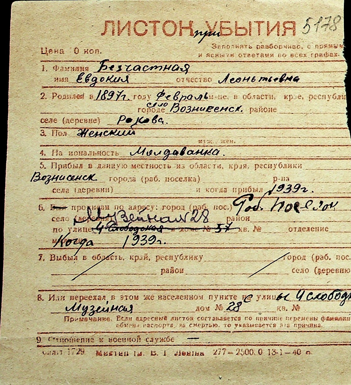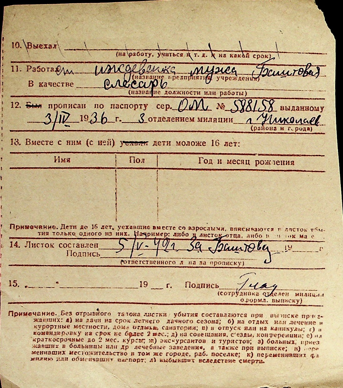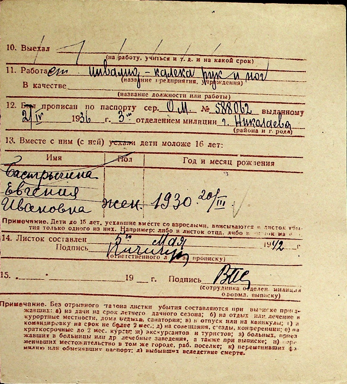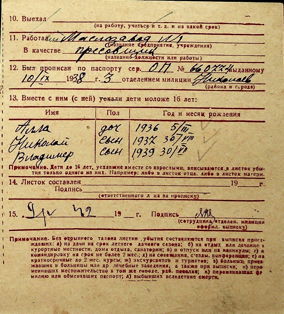◦ ◦ Перелік карток на осіб, які мешкали у м. Миколаїв у період окупації 1941–1944 років