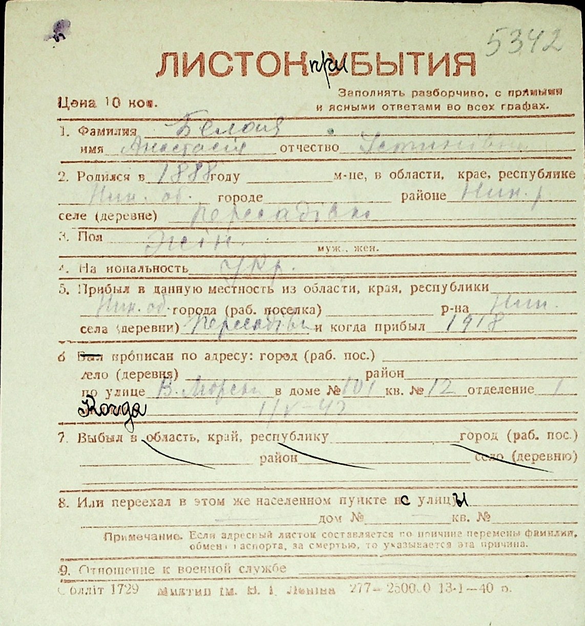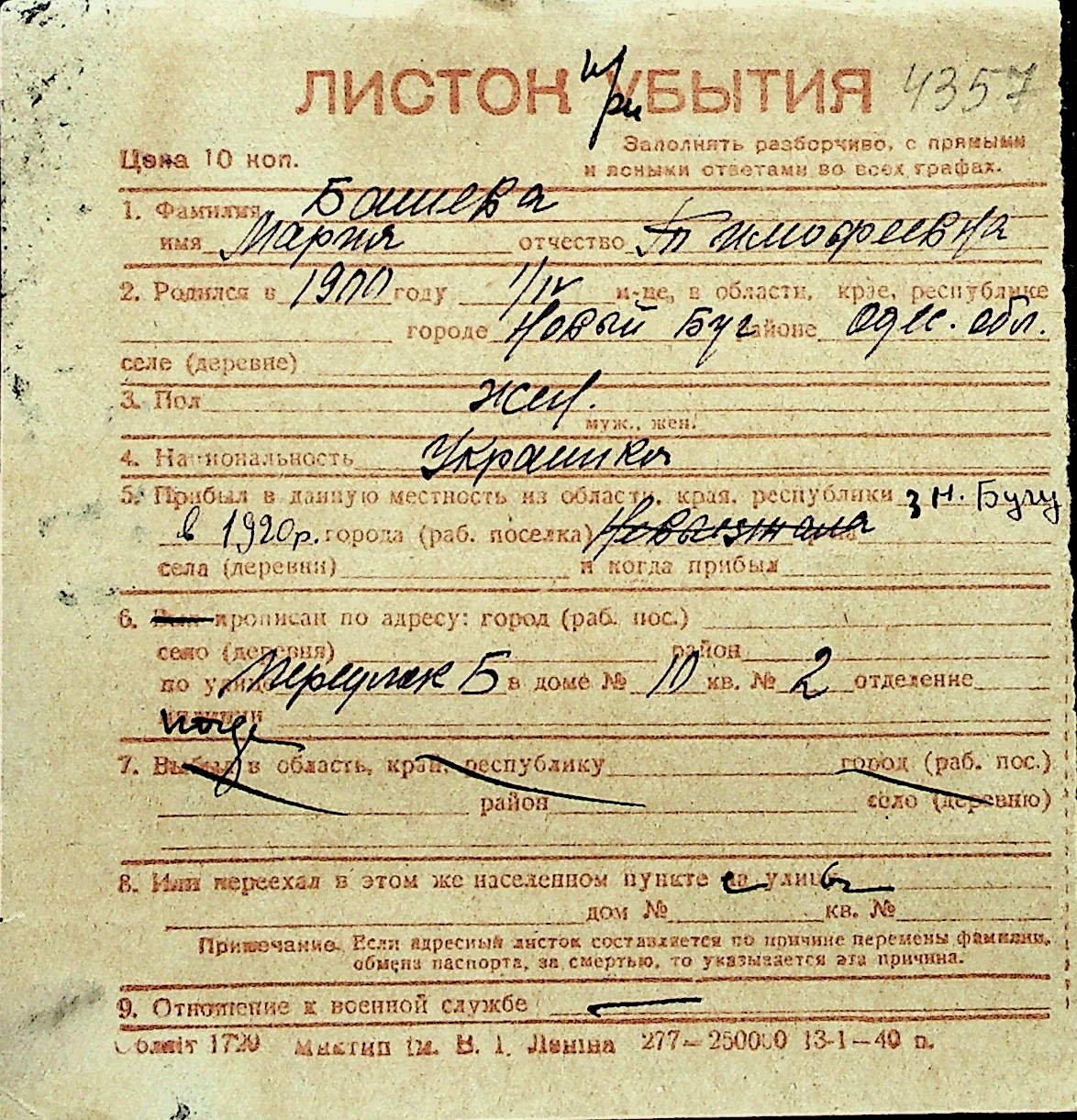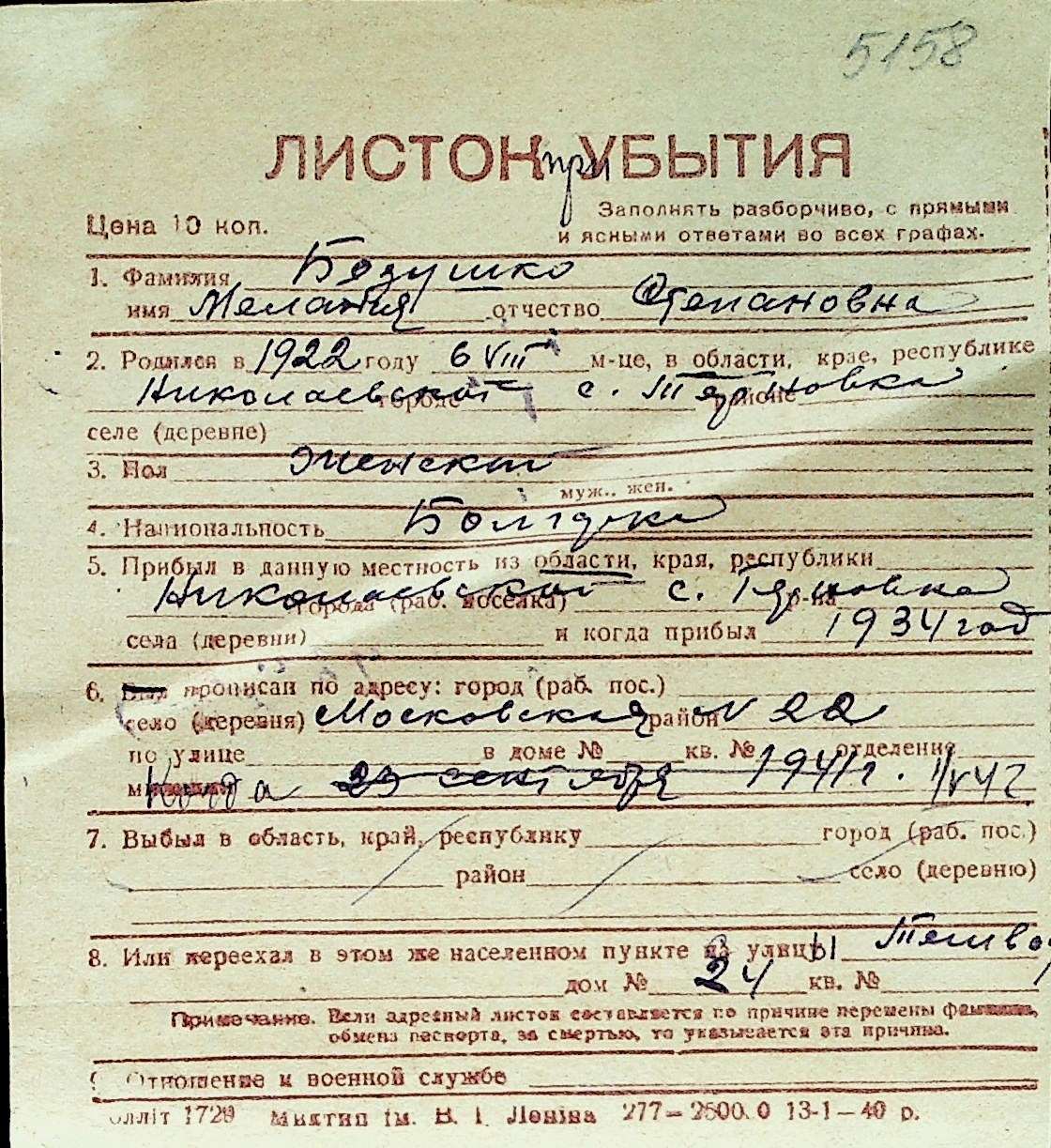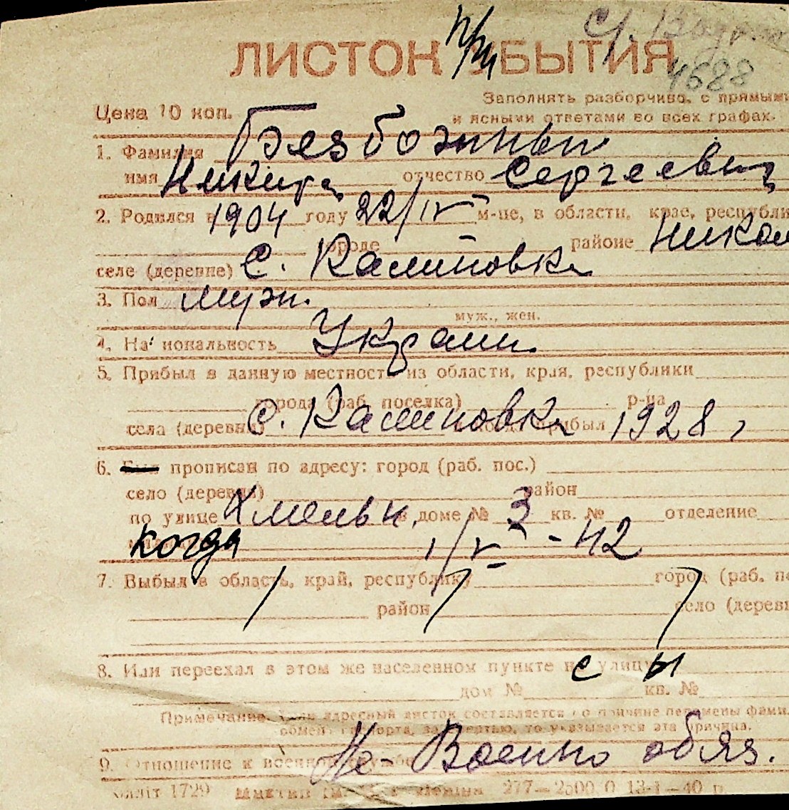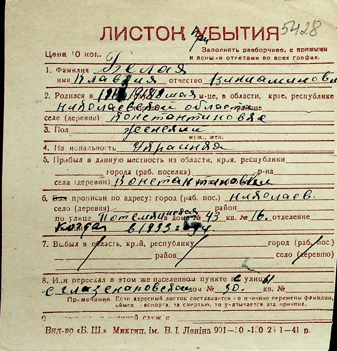 ◦ ◦ Перелік карток на осіб, які мешкали у м. Миколаїв у період окупації 1941–1944 років