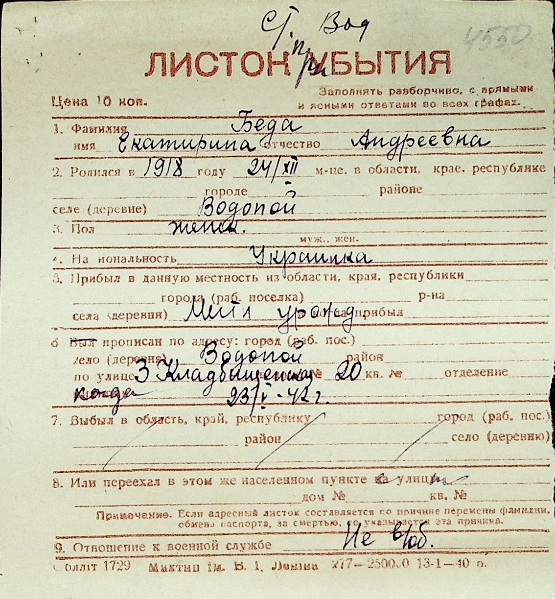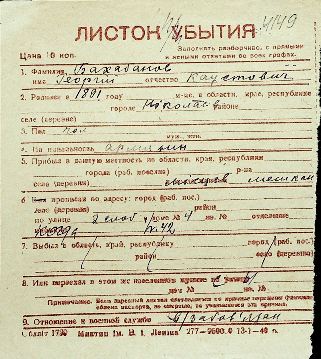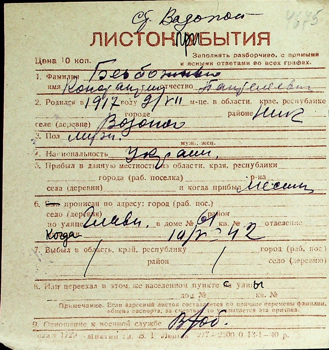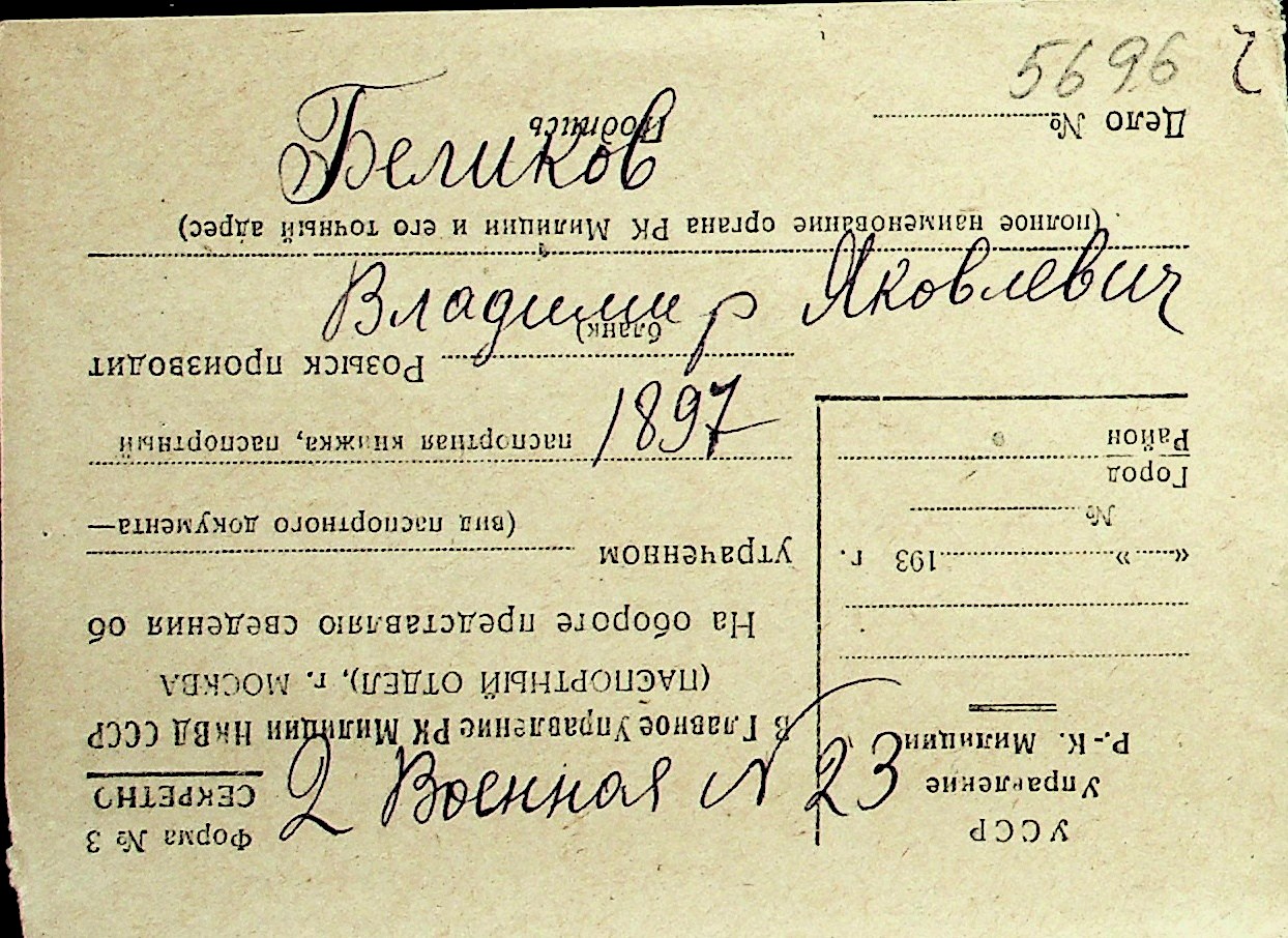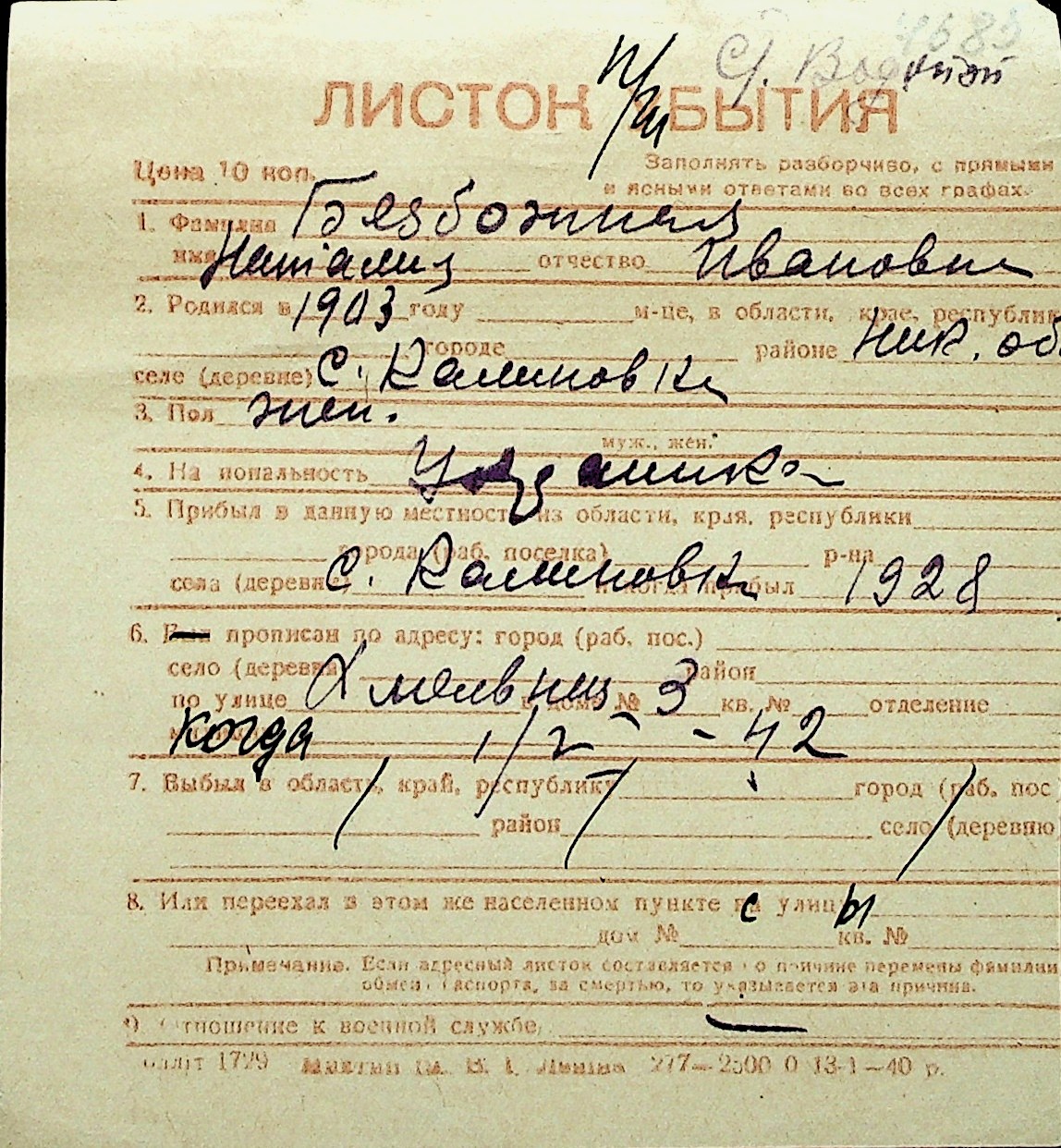 ◦ ◦ Перелік карток на осіб, які мешкали у м. Миколаїв у період окупації 1941–1944 років