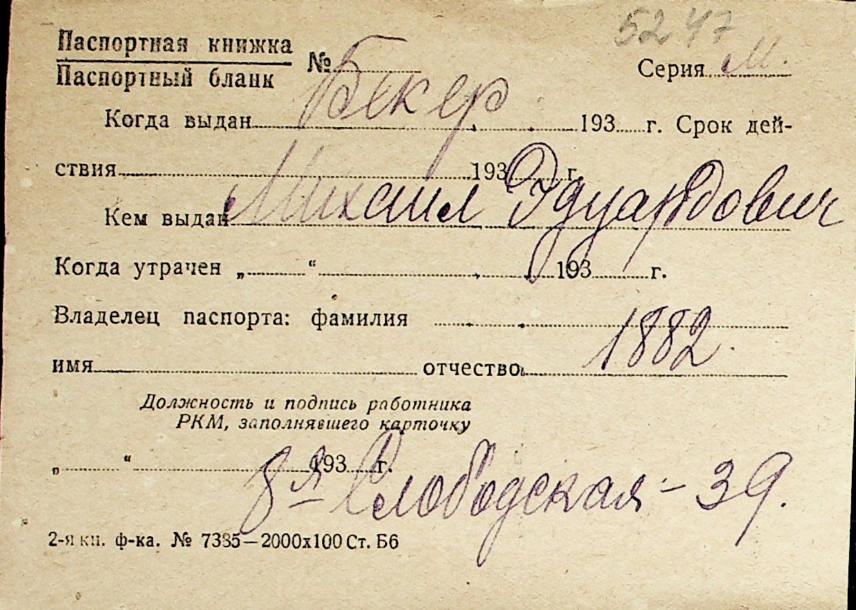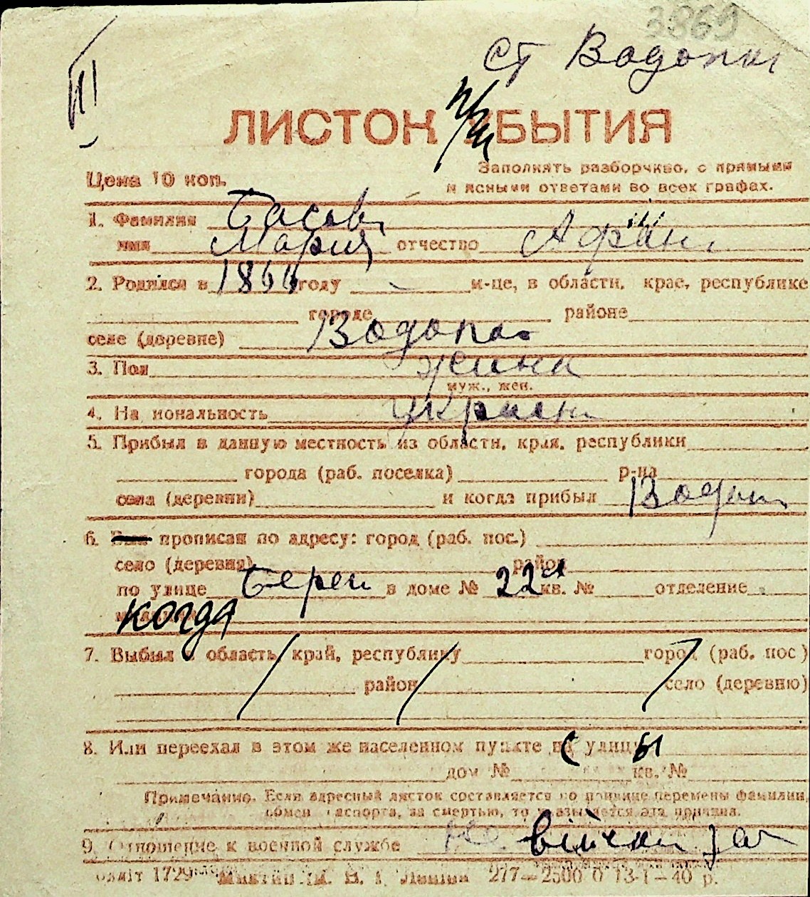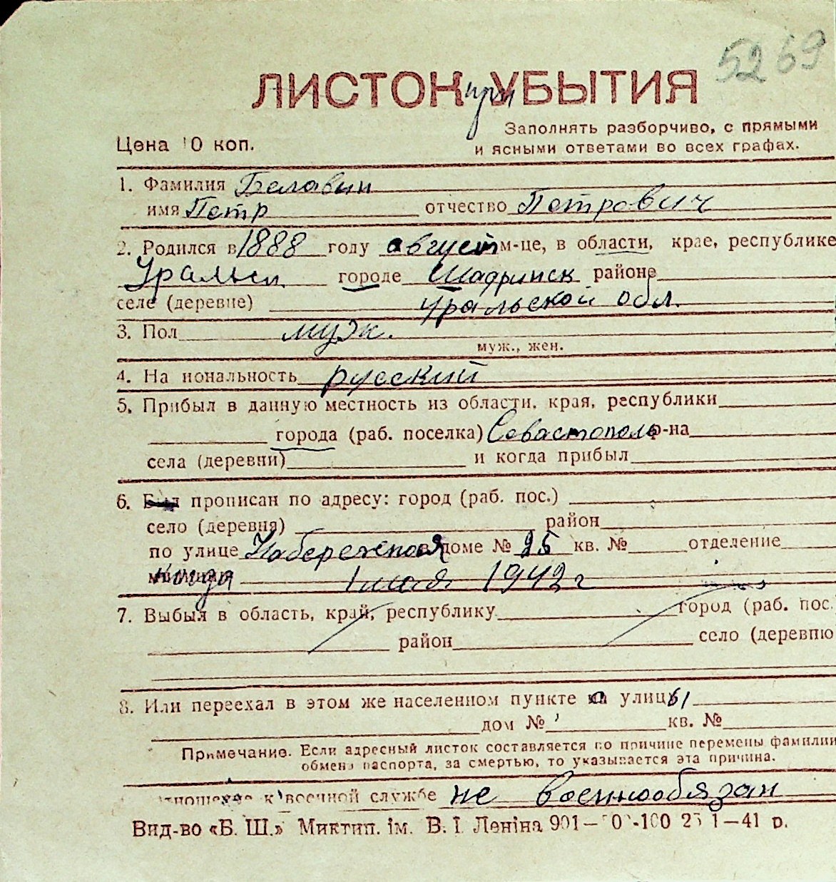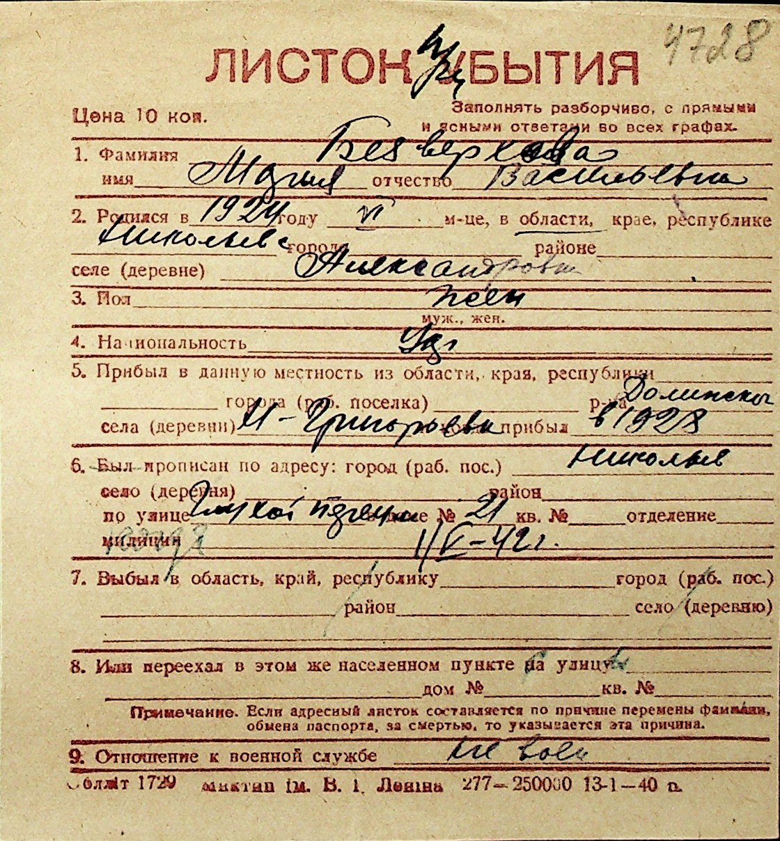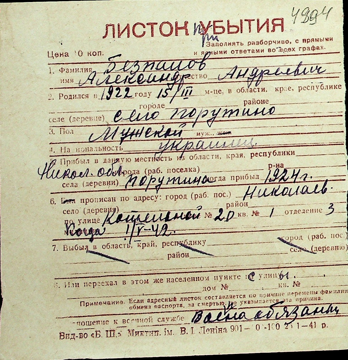 ◦ ◦ Перелік карток на осіб, які мешкали у м. Миколаїв у період окупації 1941–1944 років