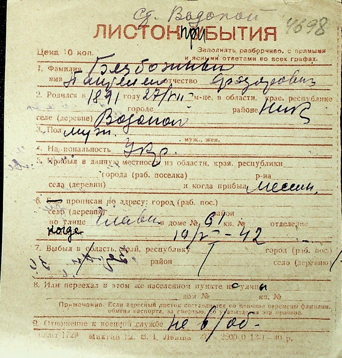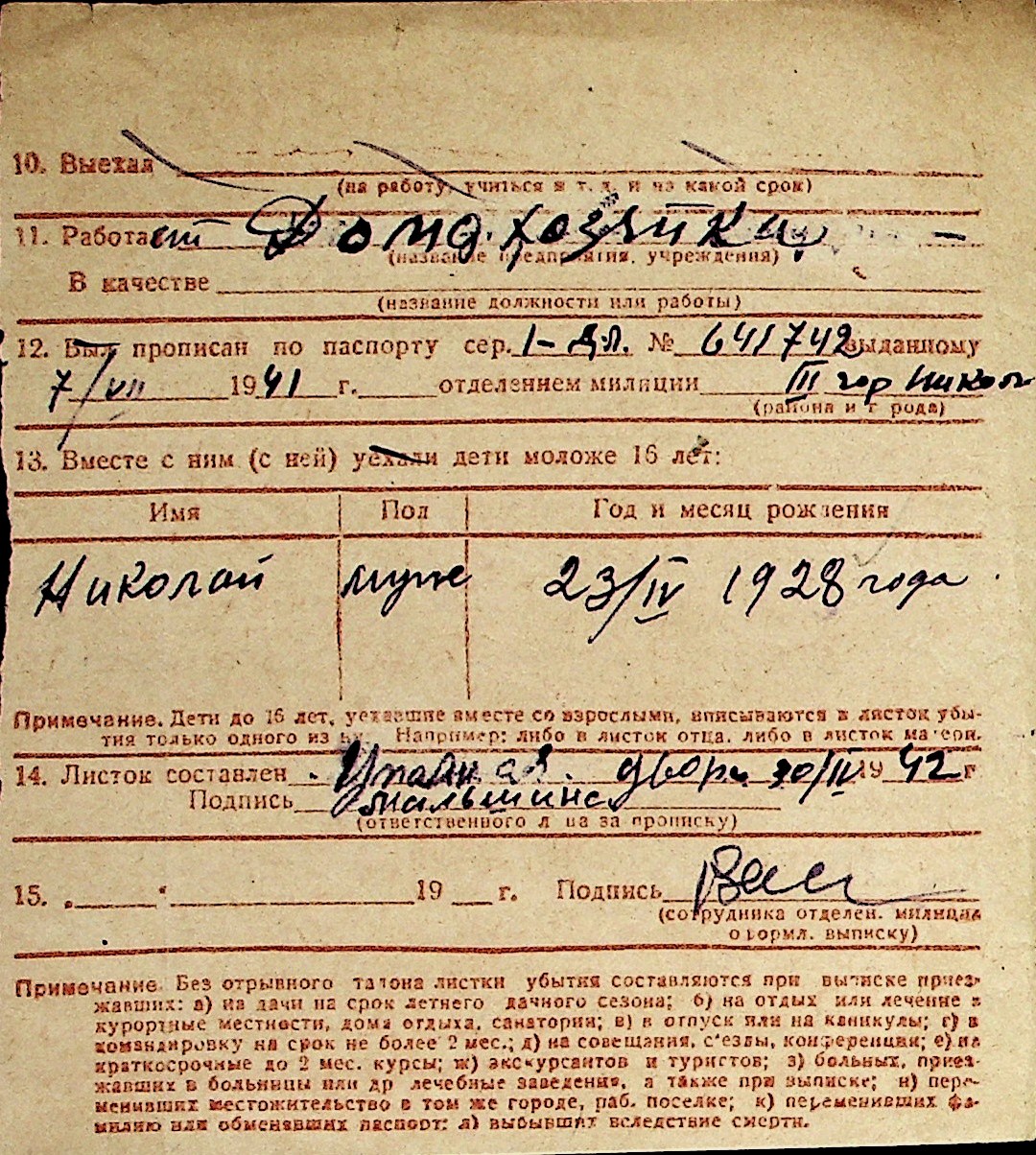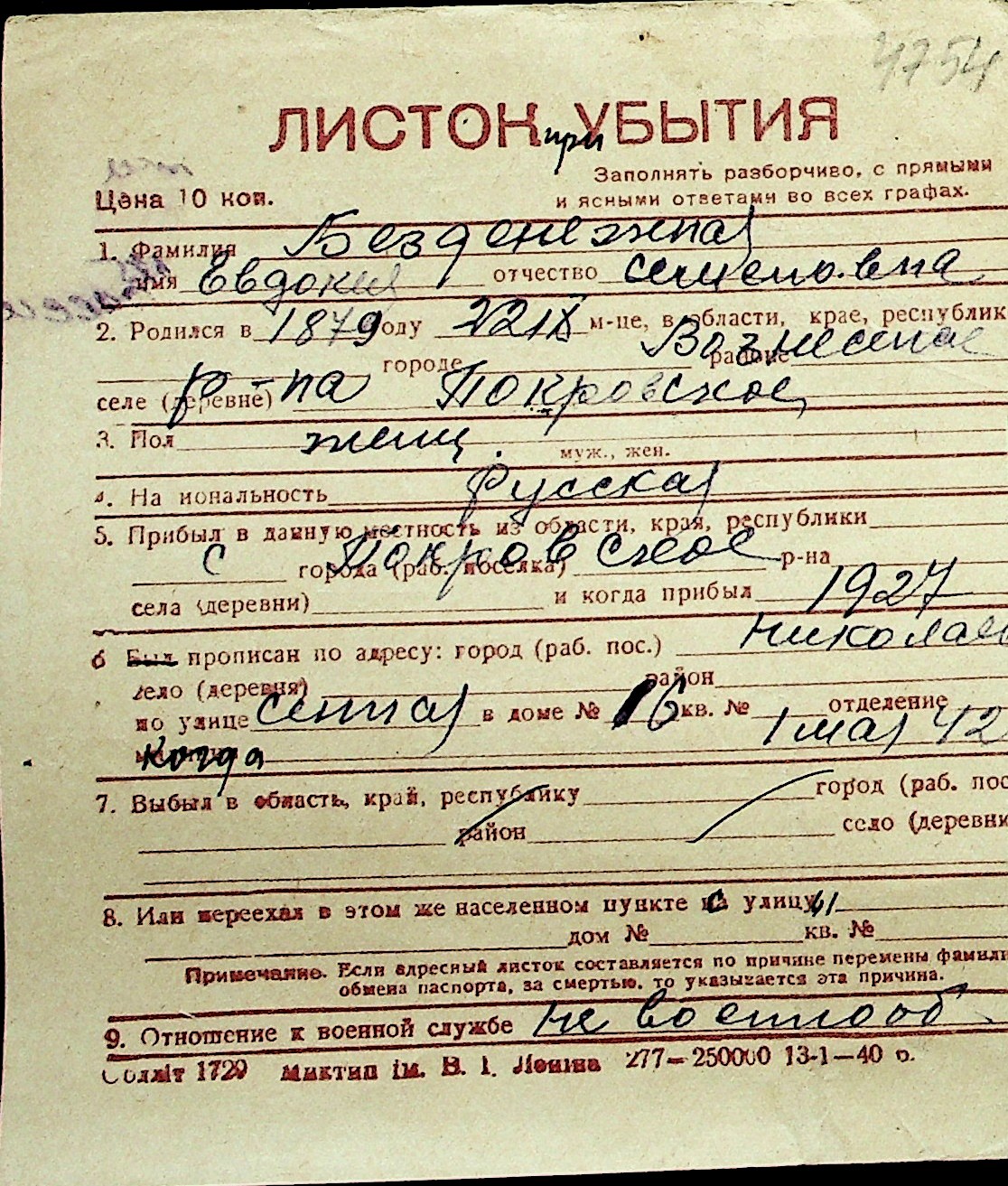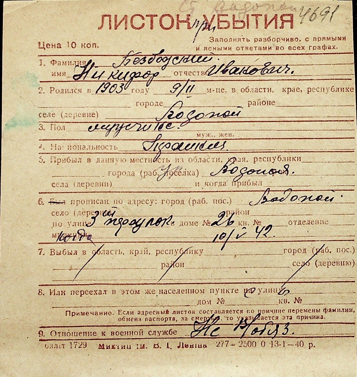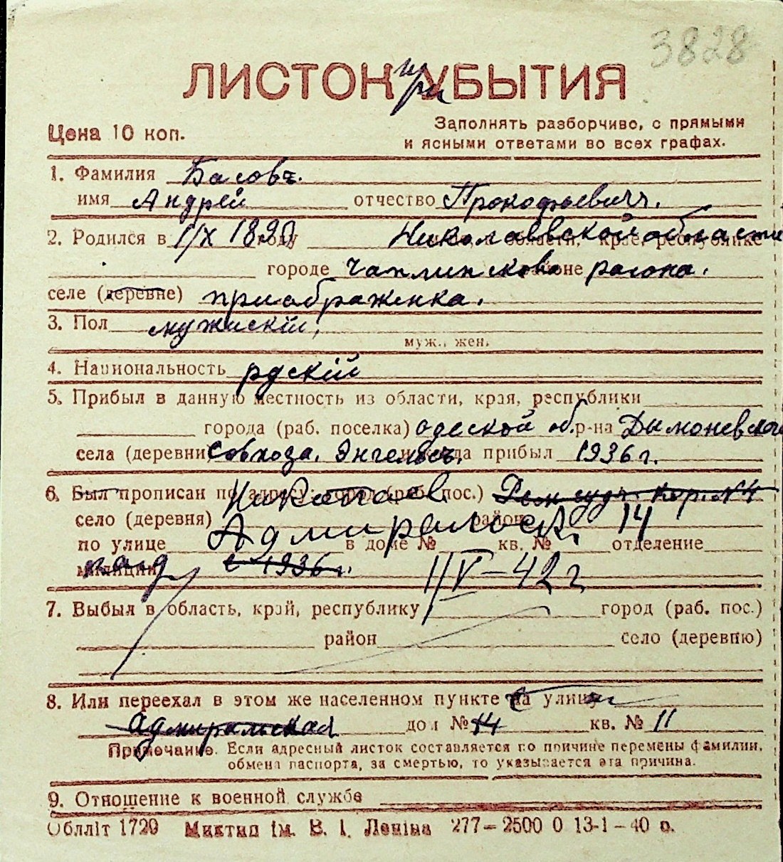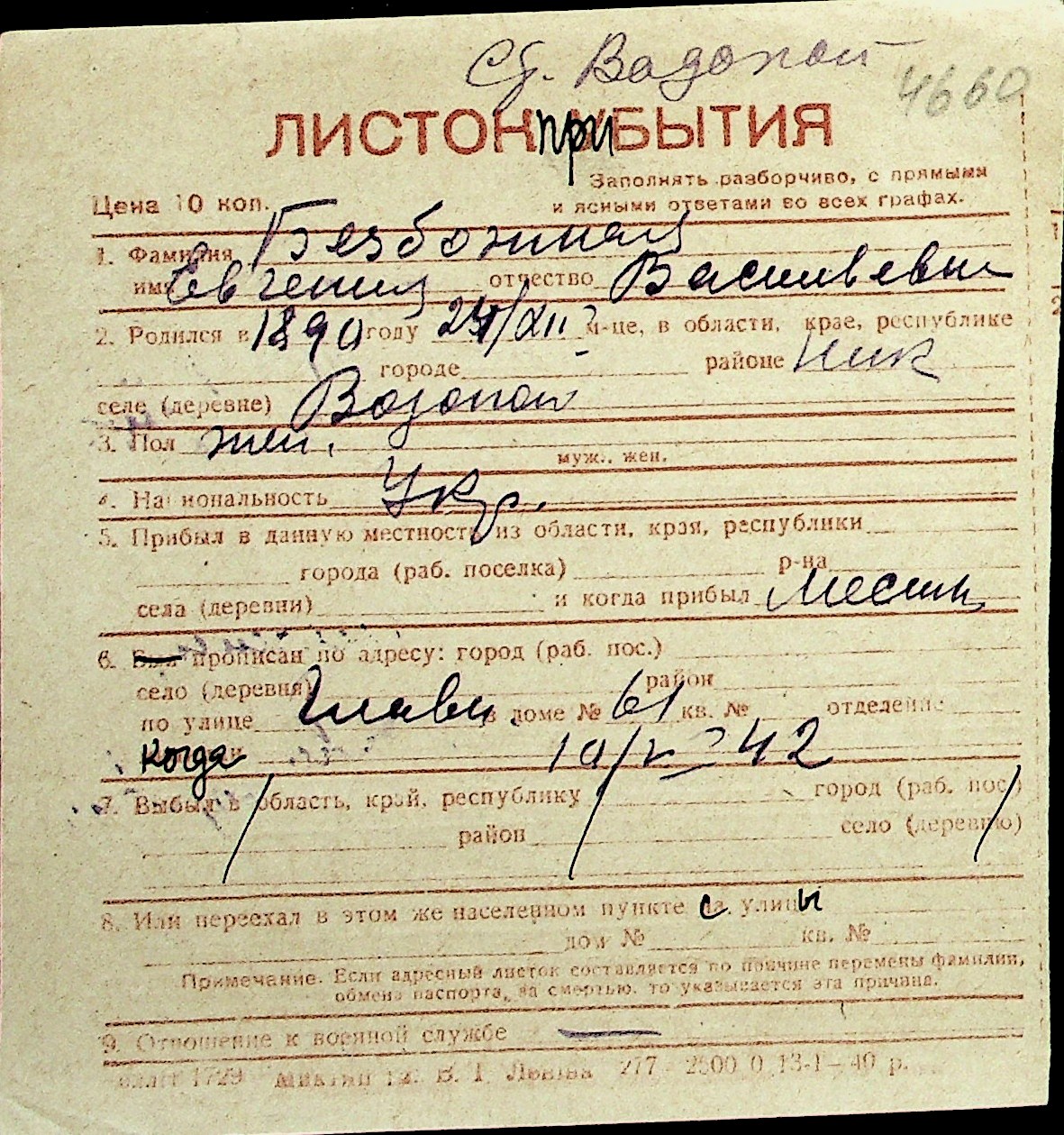◦ ◦ Перелік карток на осіб, які мешкали у м. Миколаїв у період окупації 1941–1944 років