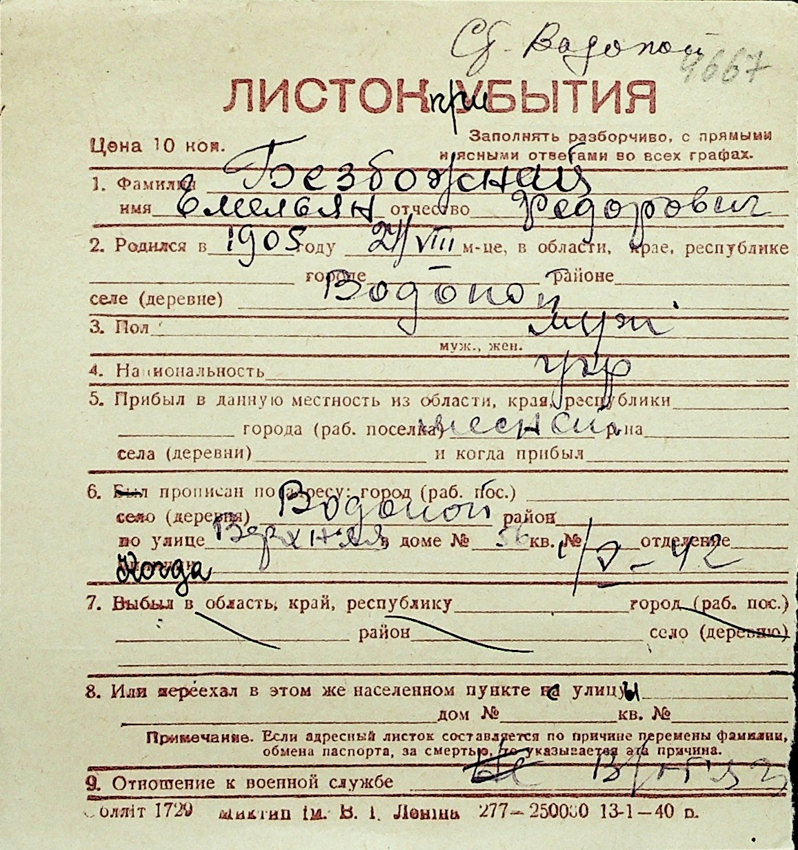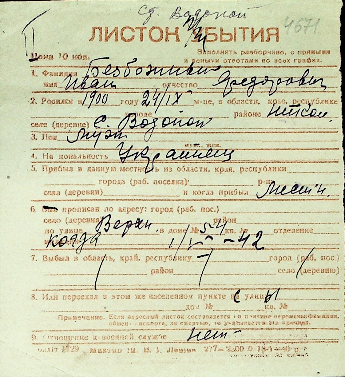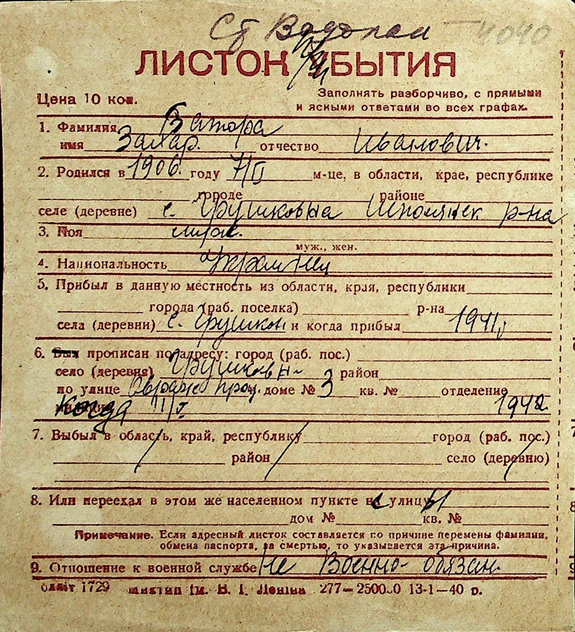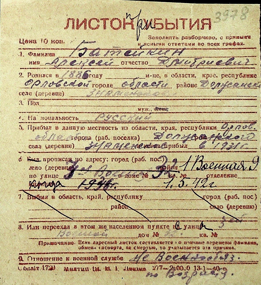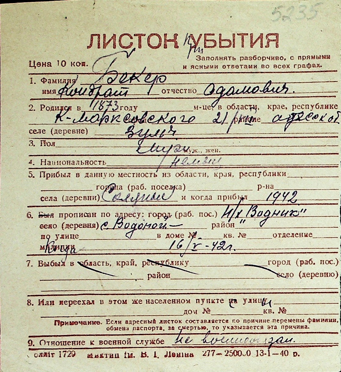 ◦ ◦ Перелік карток на осіб, які мешкали у м. Миколаїв у період окупації 1941–1944 років
