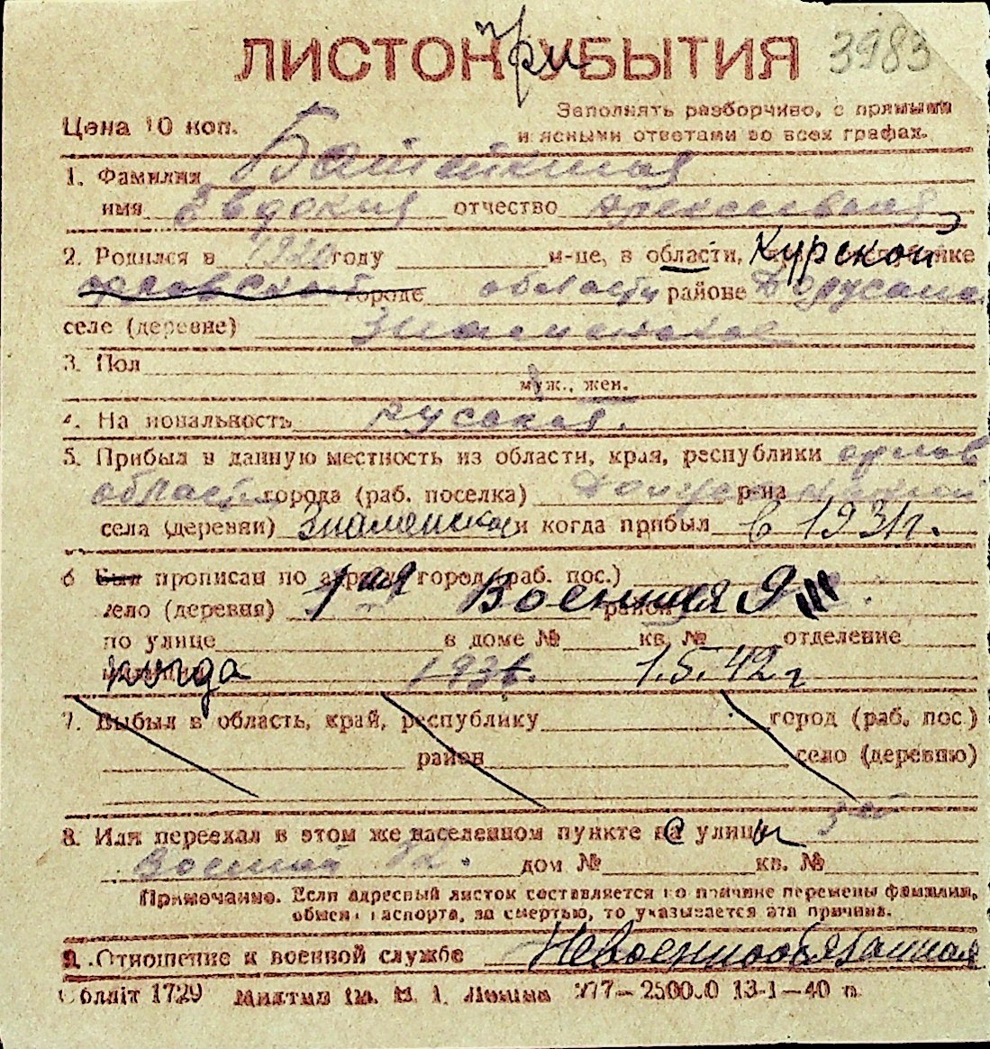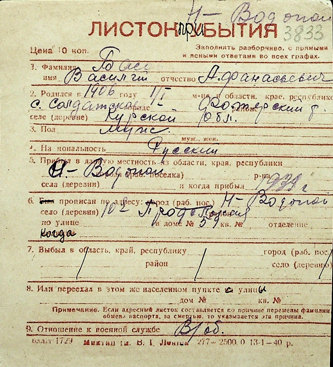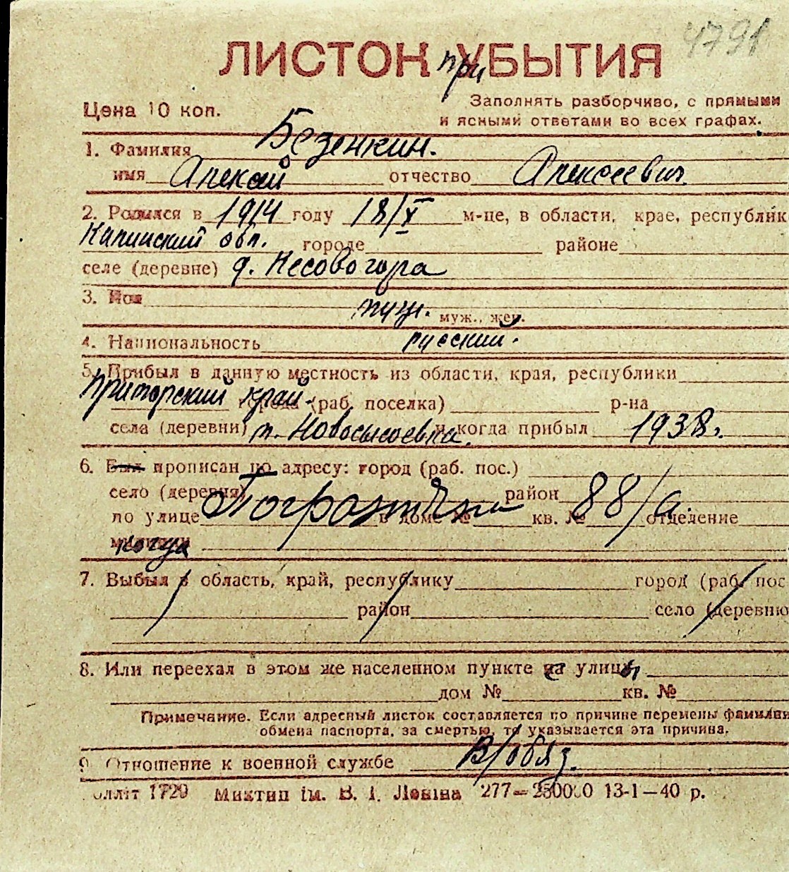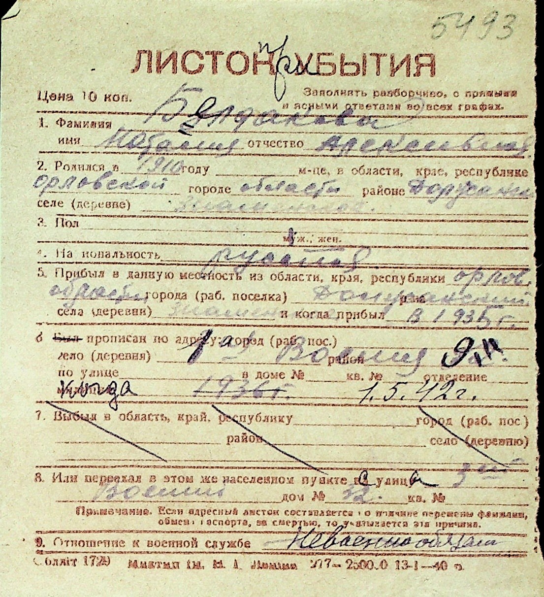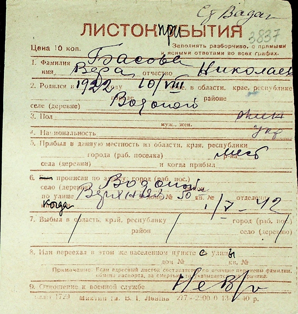 ◦ ◦ Перелік карток на осіб, які мешкали у м. Миколаїв у період окупації 1941–1944 років