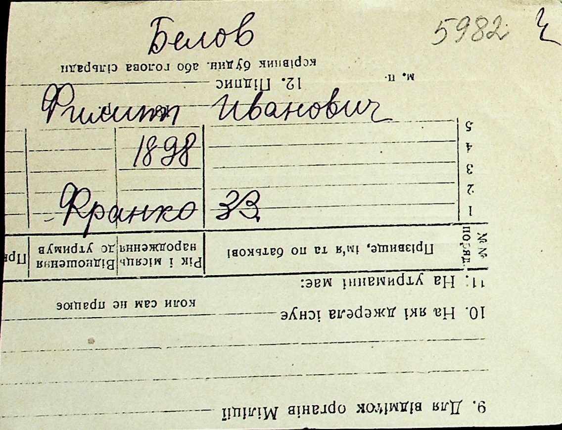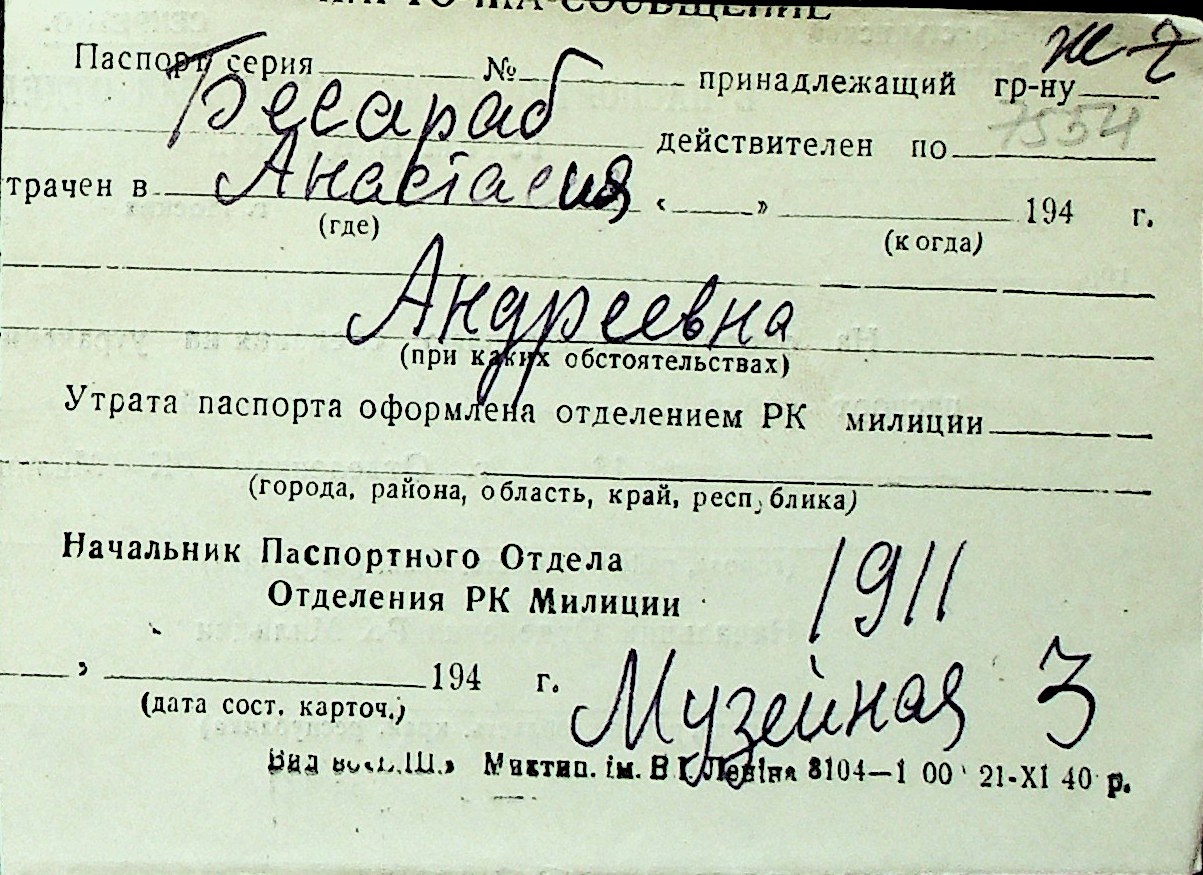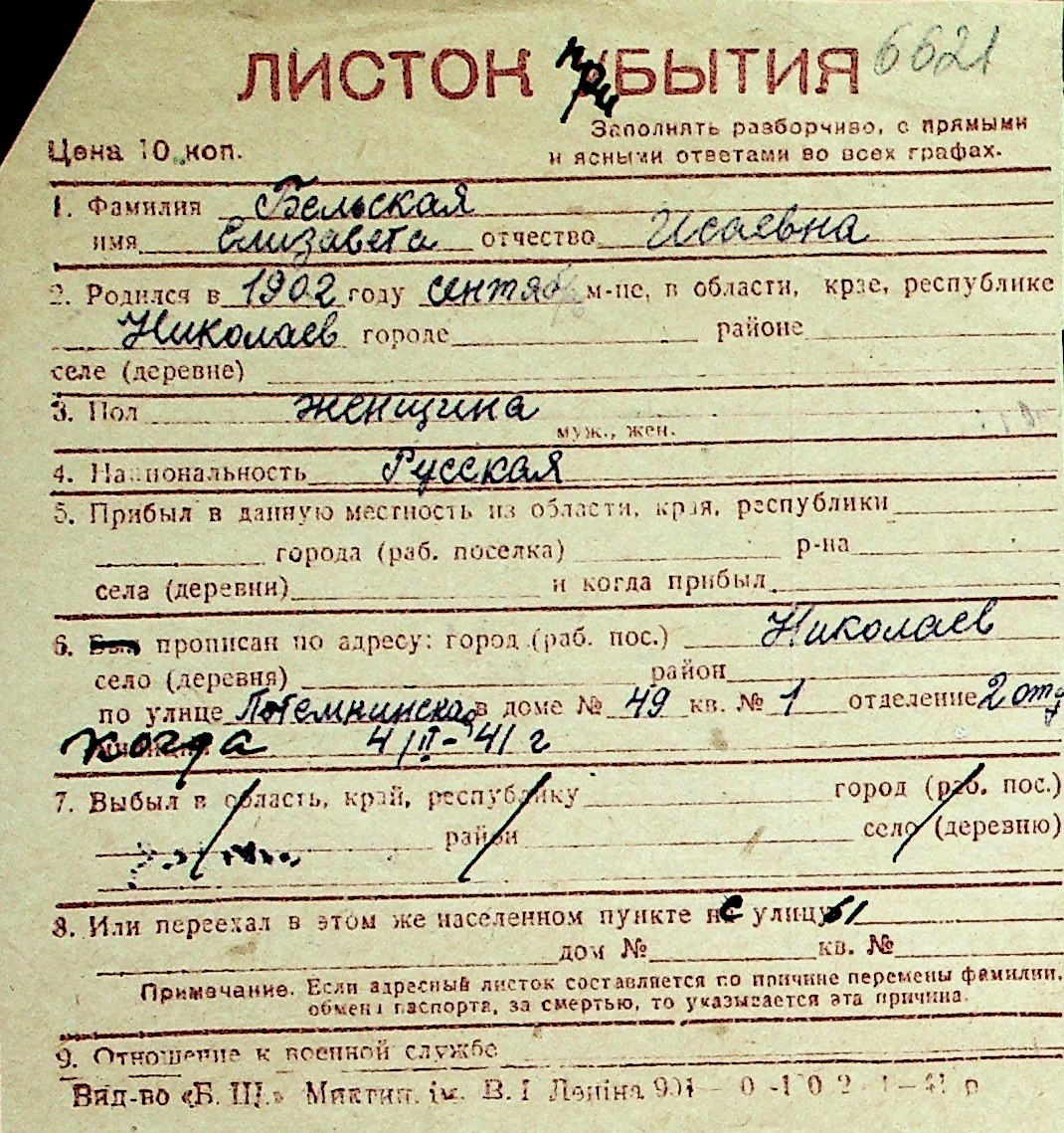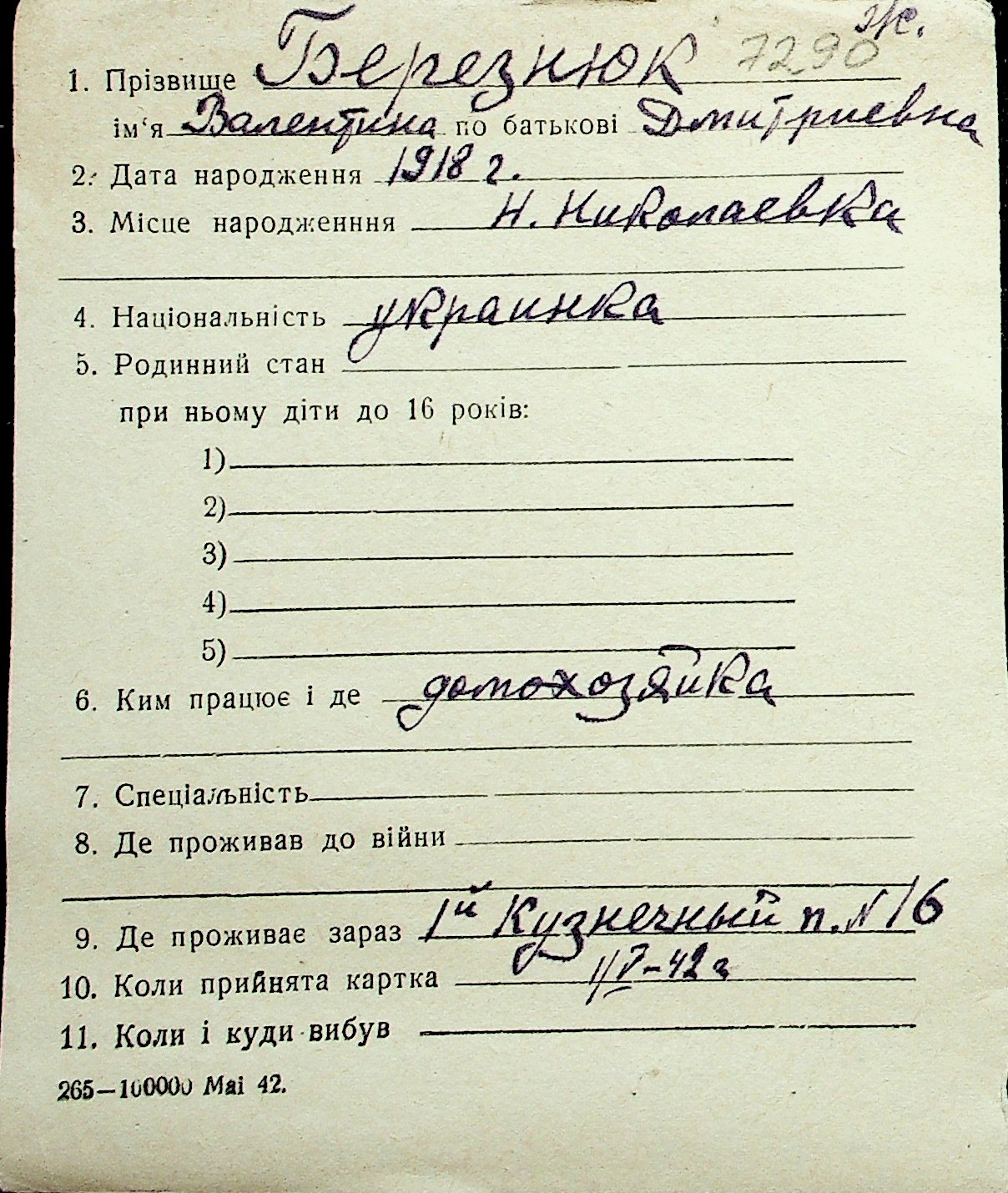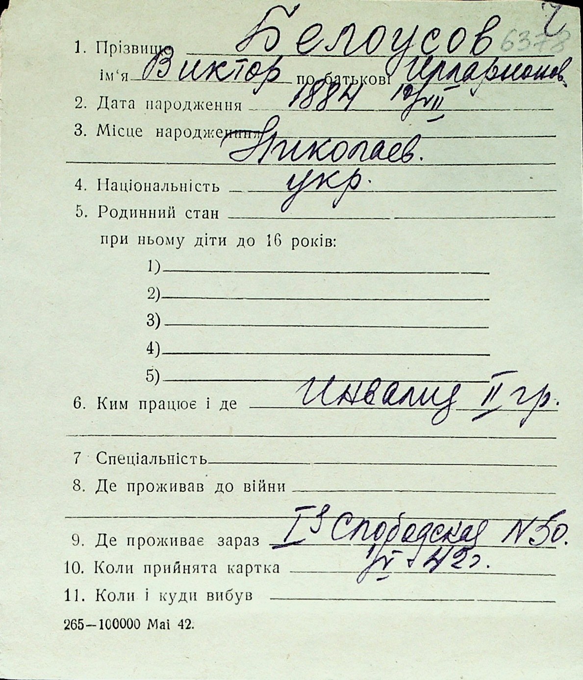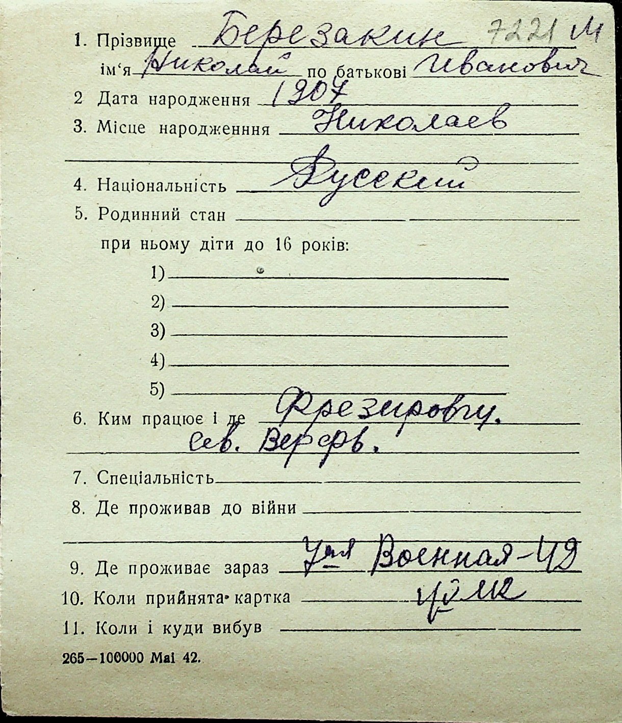 ◦ ◦ Перелік карток на осіб, які мешкали у м. Миколаїв у період окупації 1941–1944 років