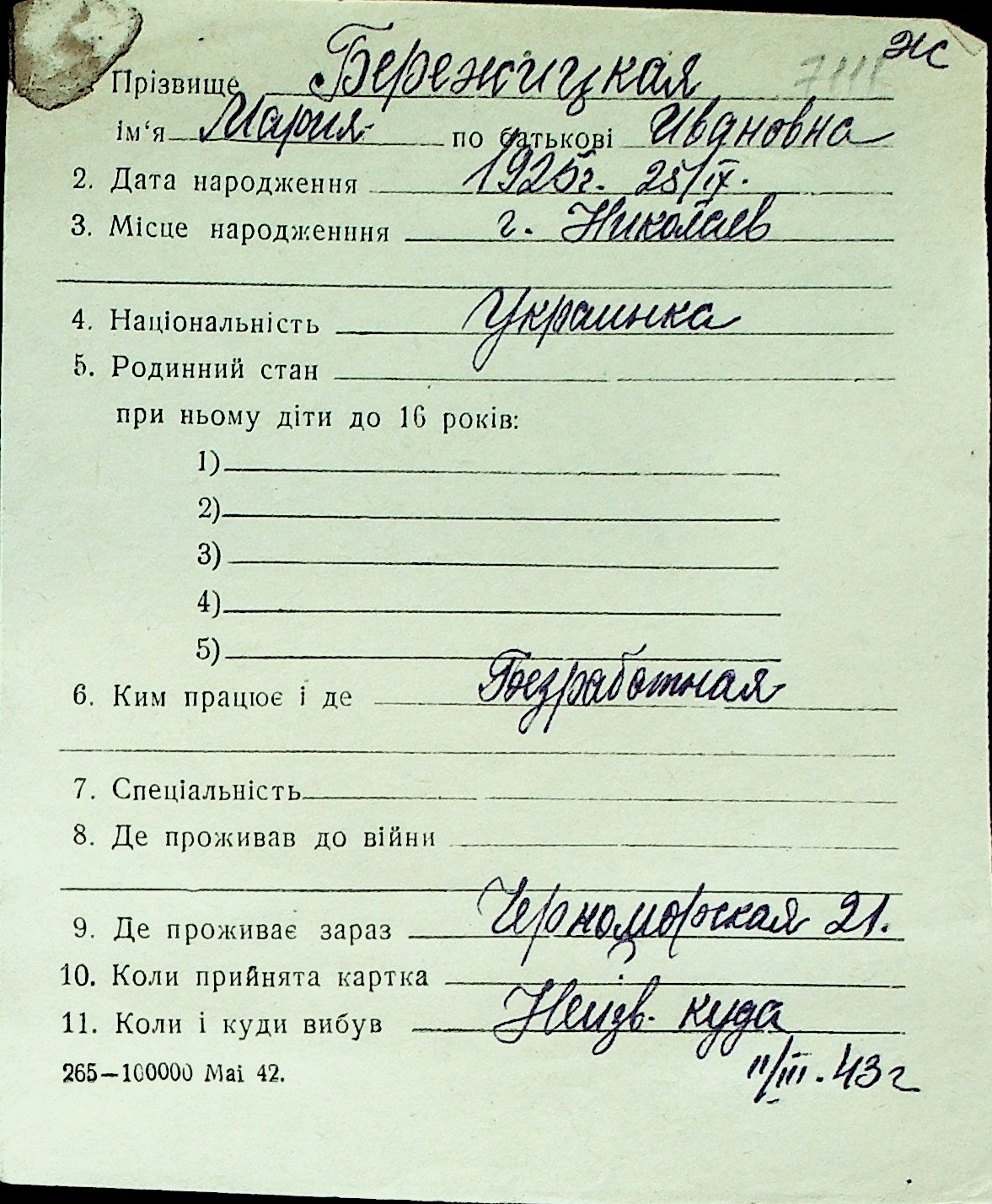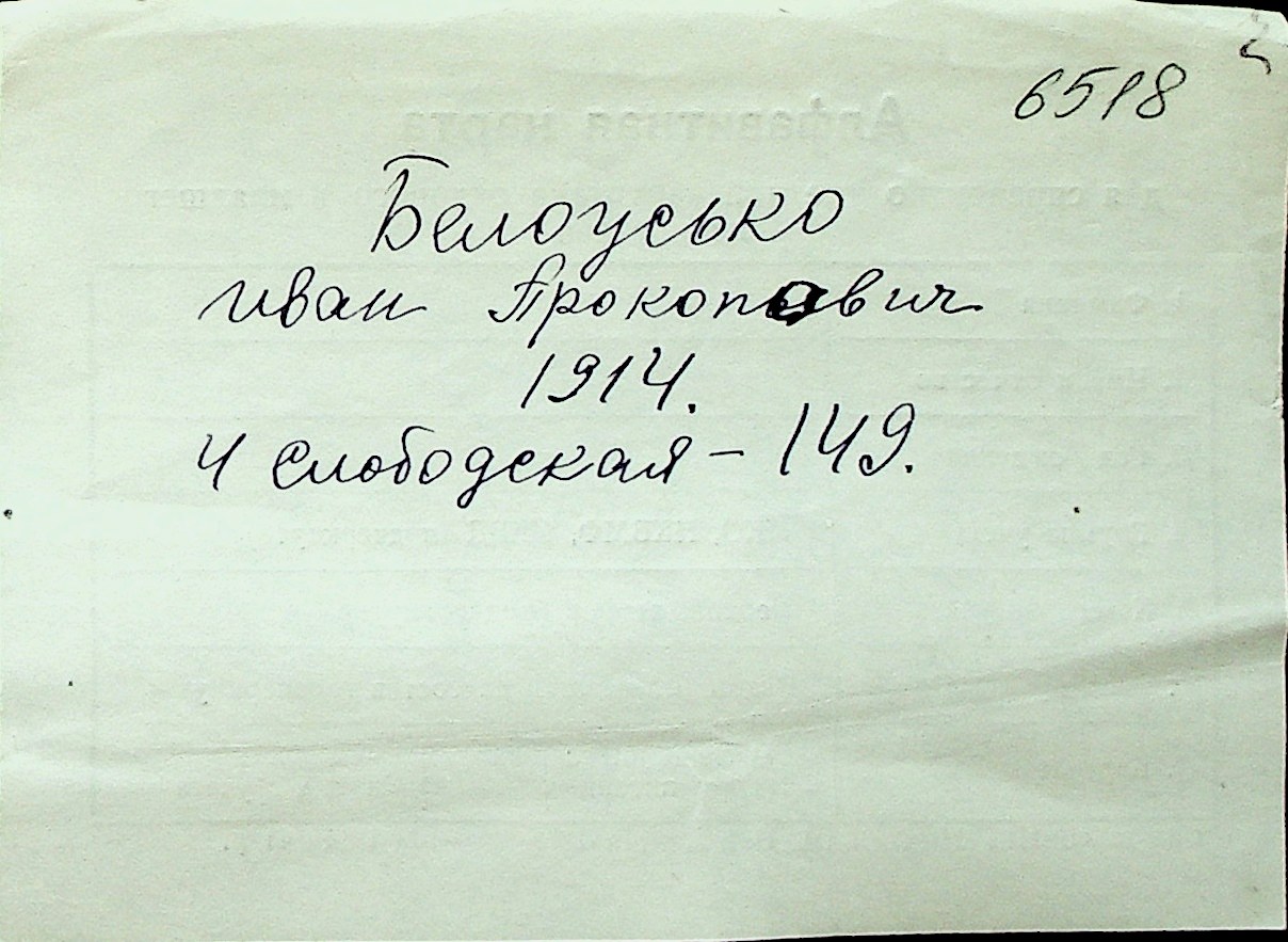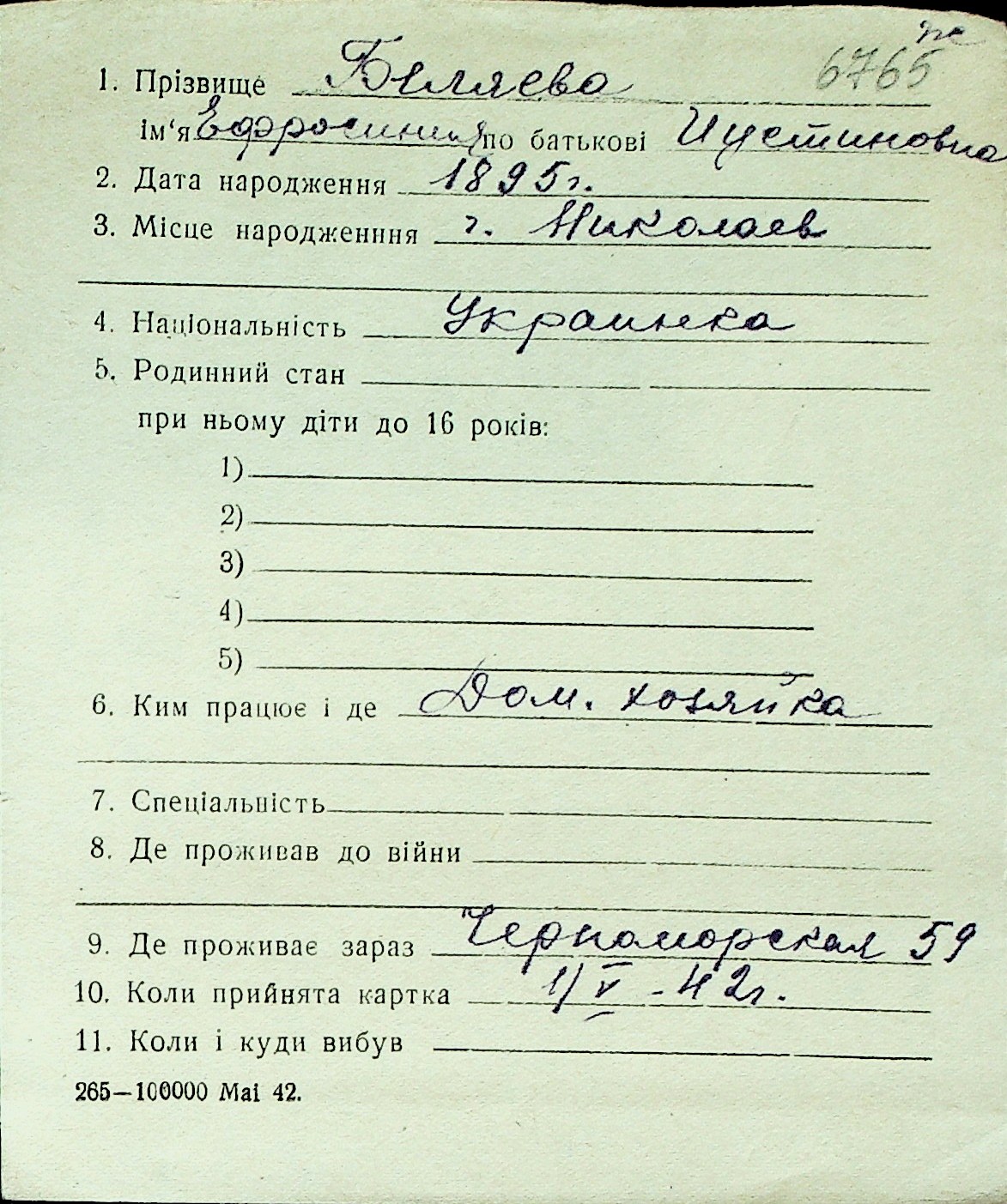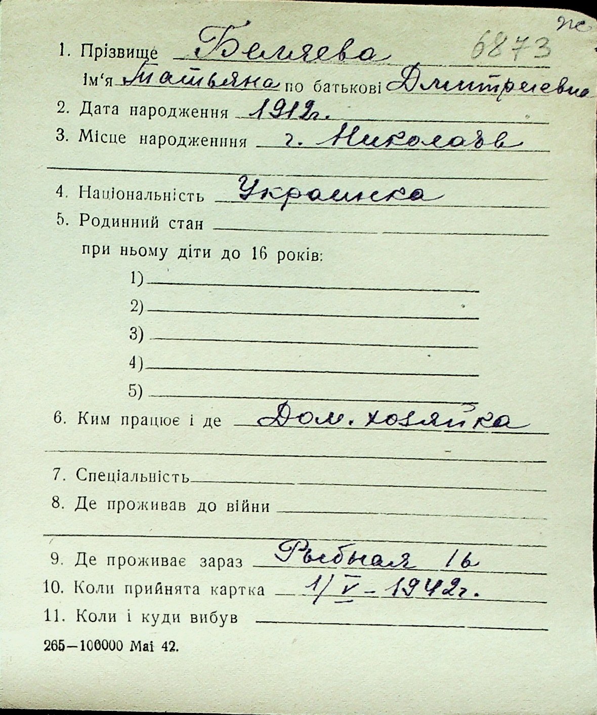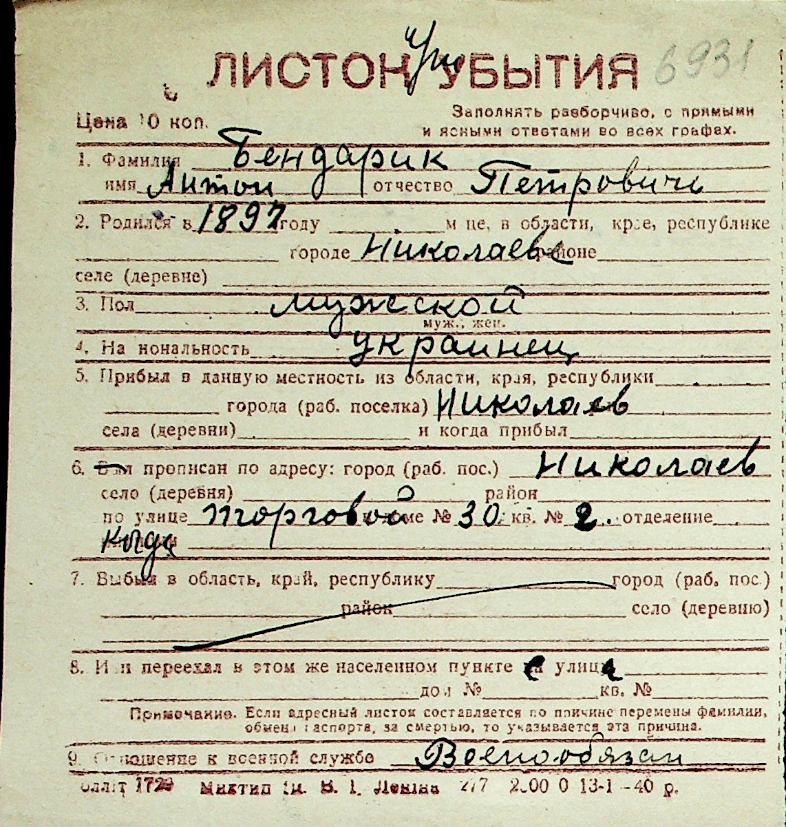 ◦ ◦ Перелік карток на осіб, які мешкали у м. Миколаїв у період окупації 1941–1944 років