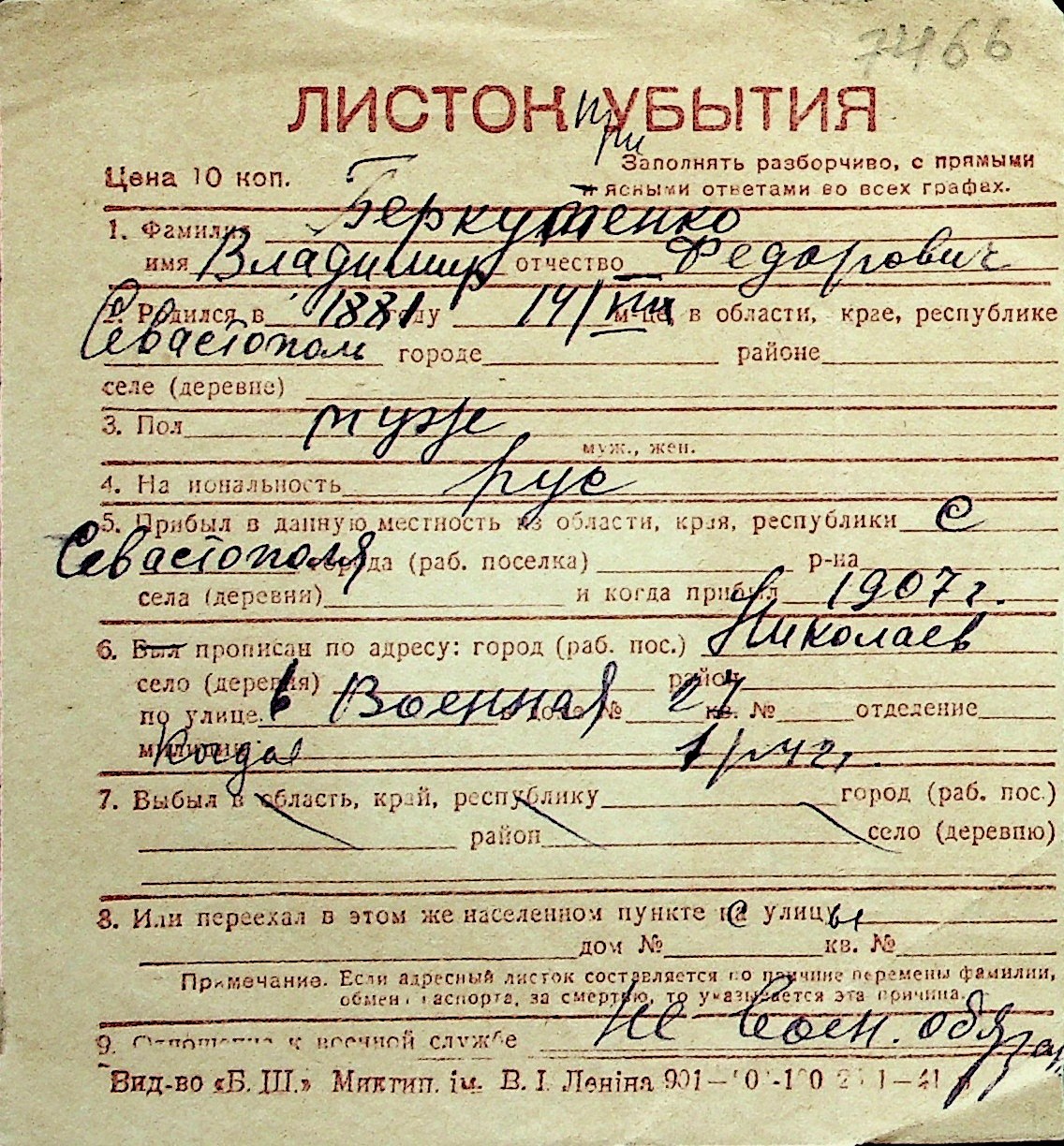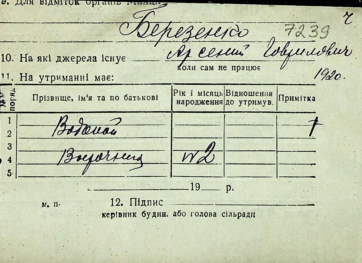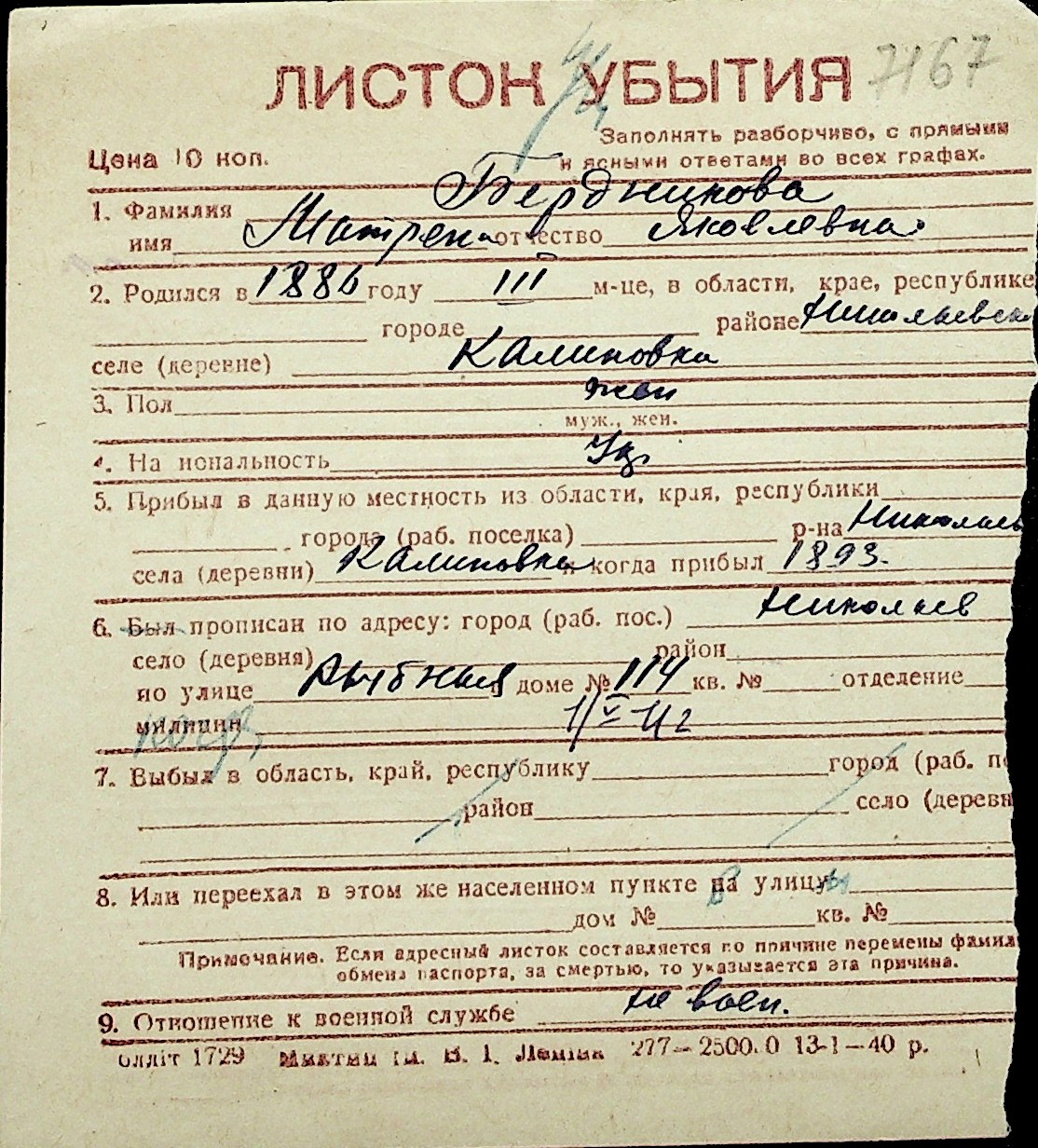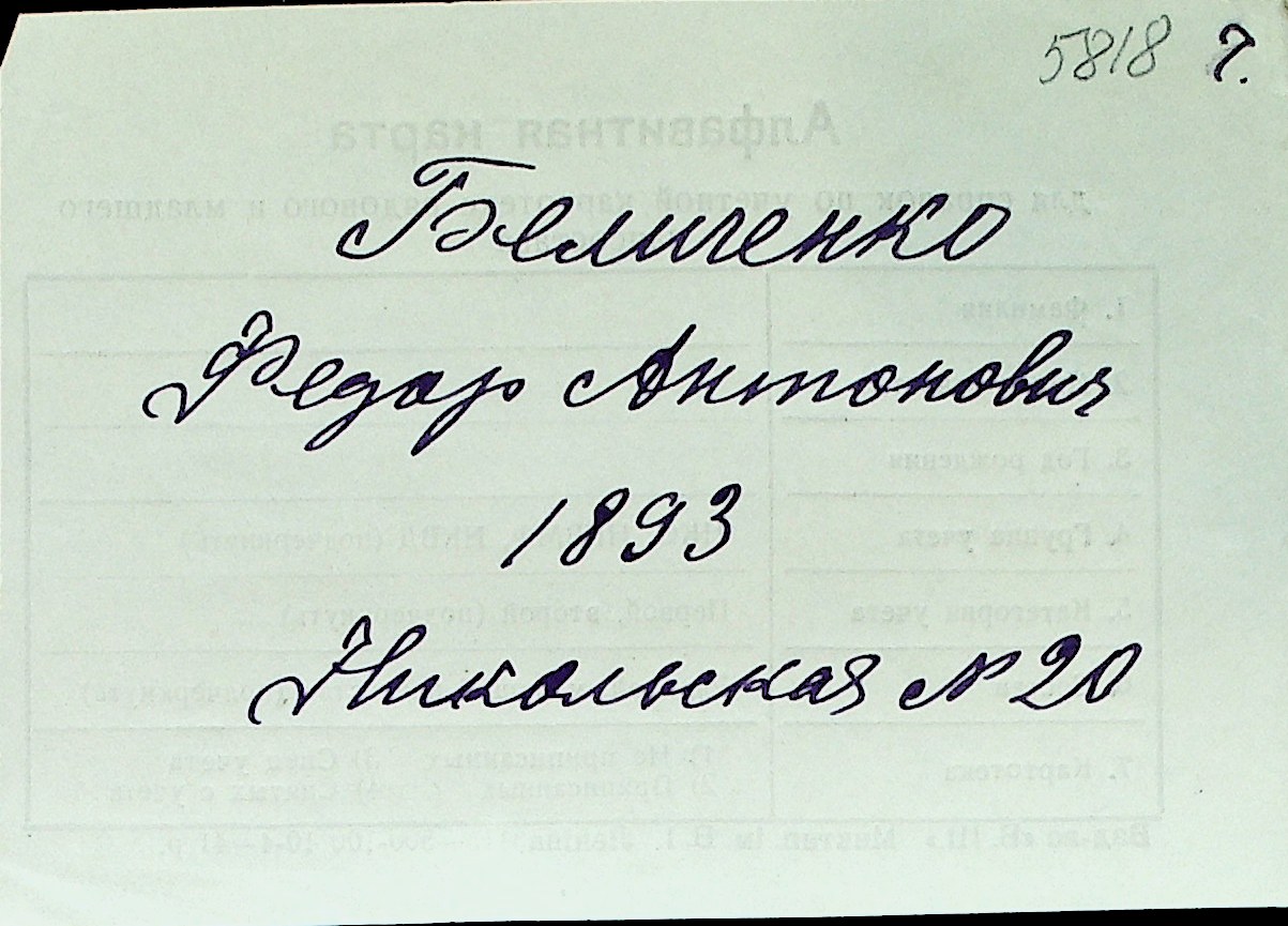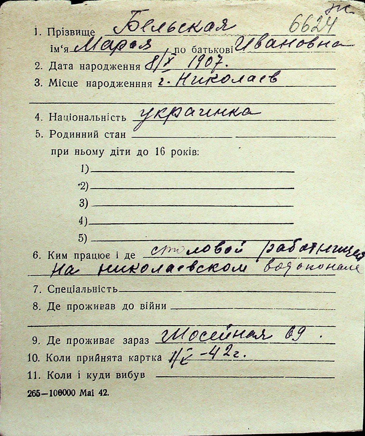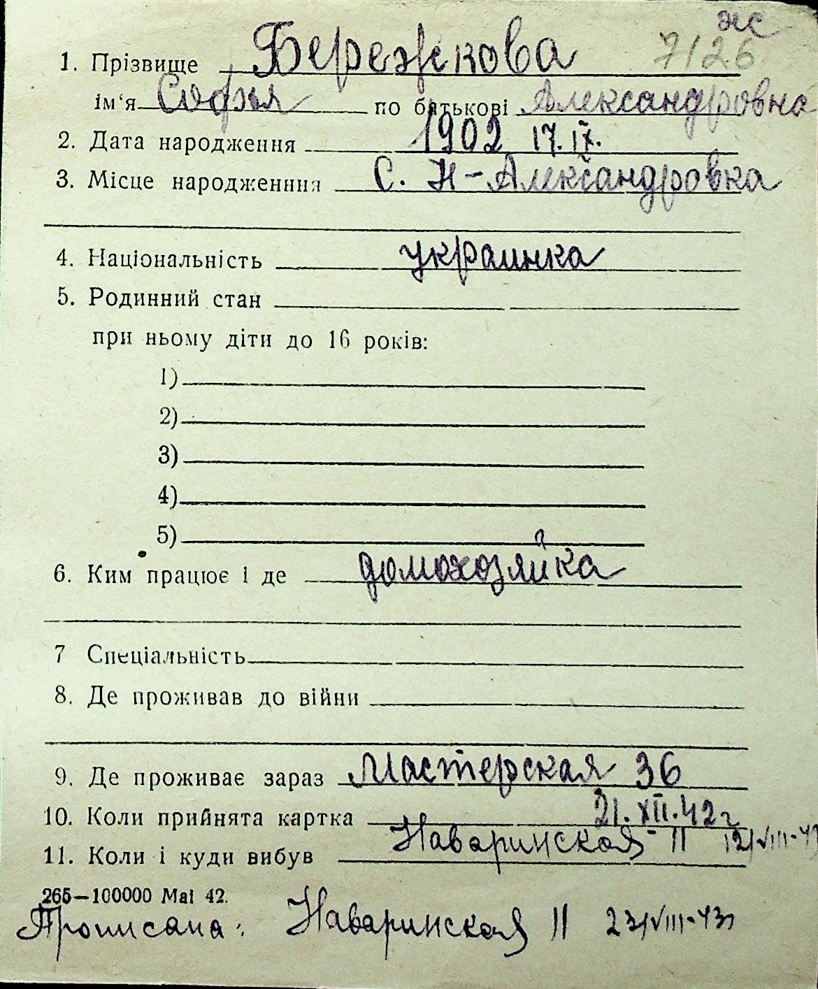 ◦ ◦ Перелік карток на осіб, які мешкали у м. Миколаїв у період окупації 1941–1944 років