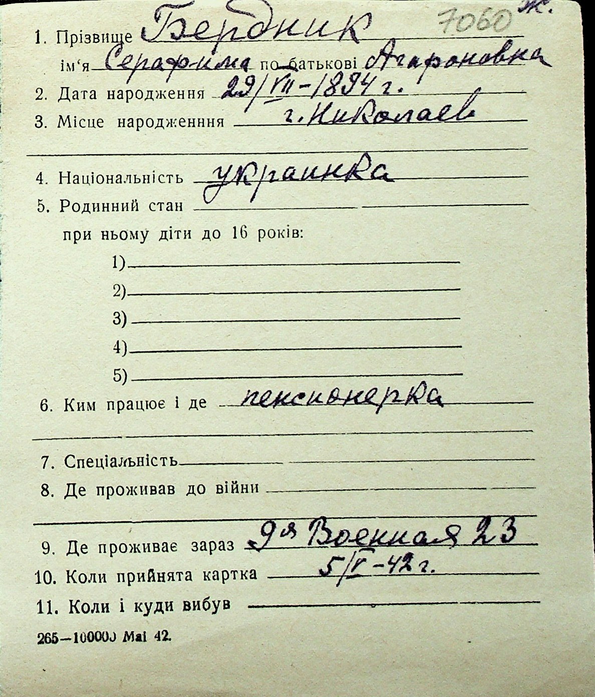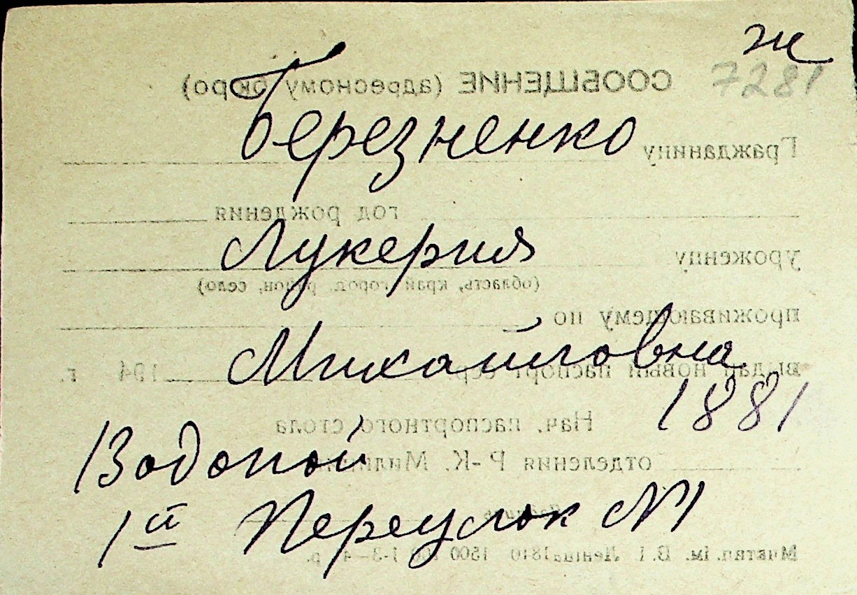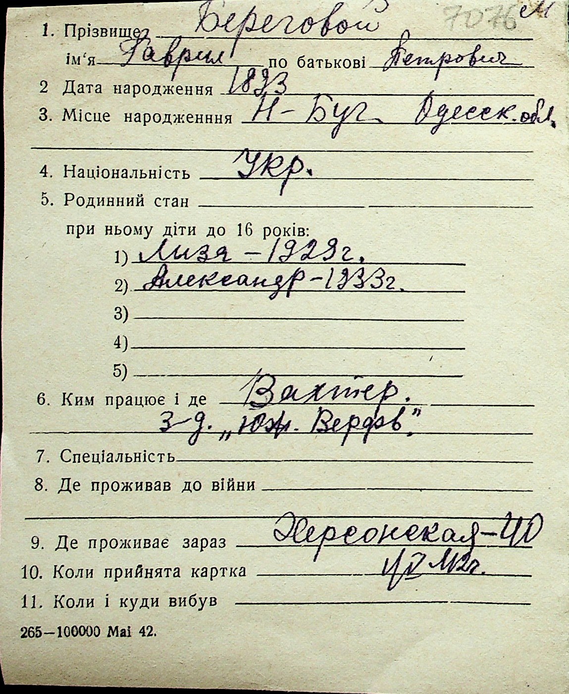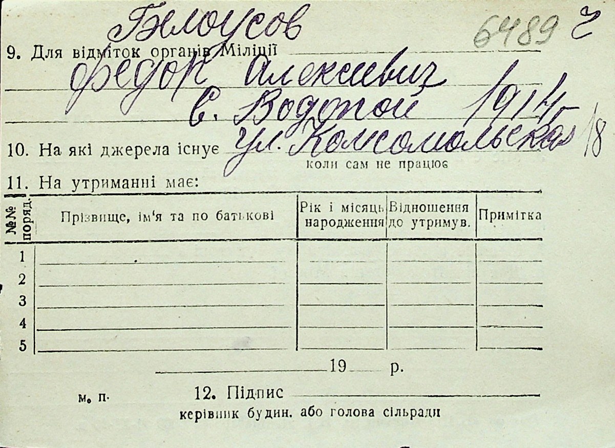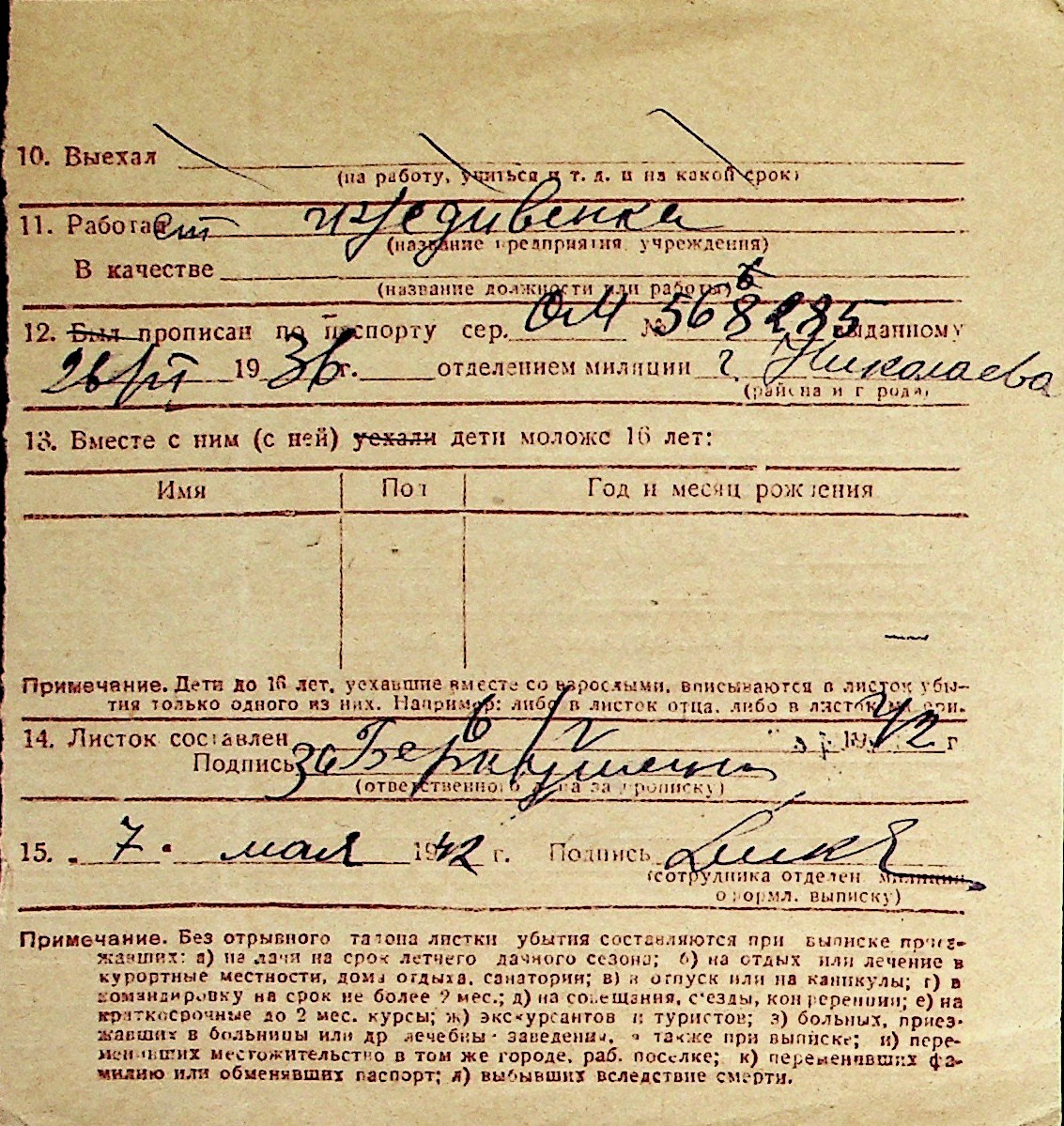 ◦ ◦ Перелік карток на осіб, які мешкали у м. Миколаїв у період окупації 1941–1944 років