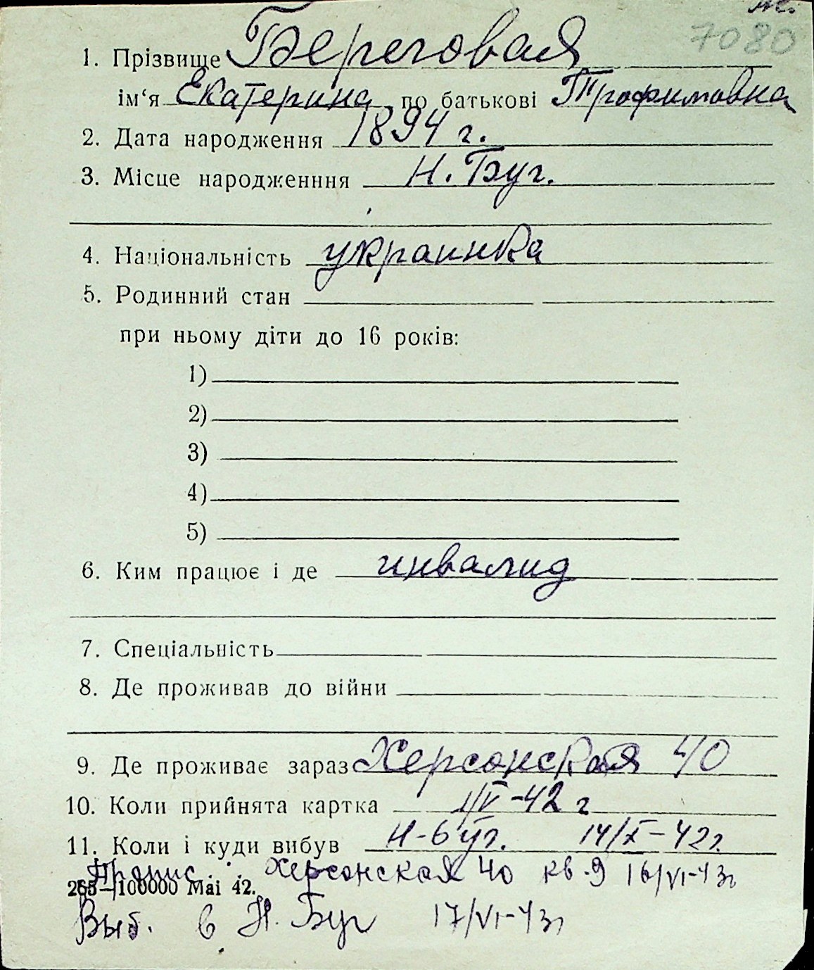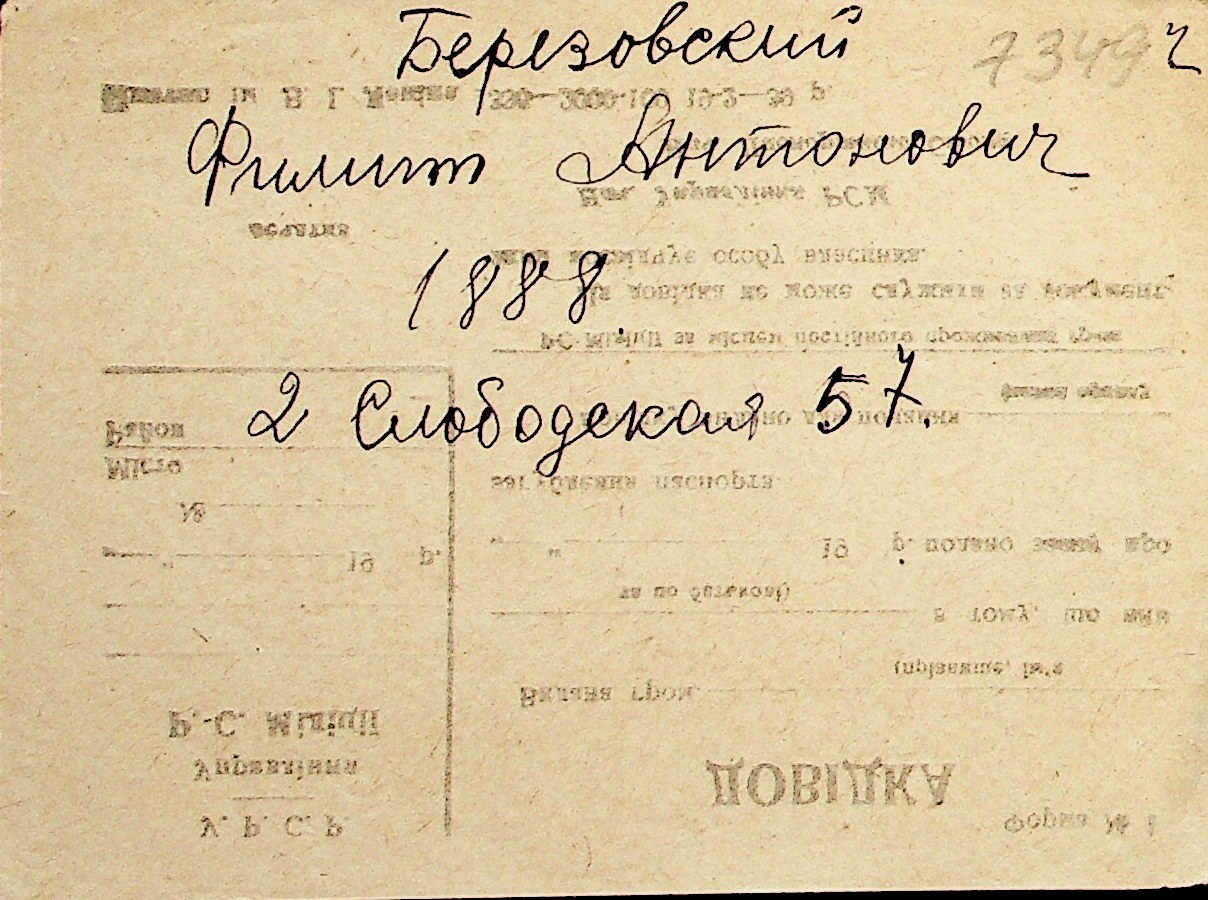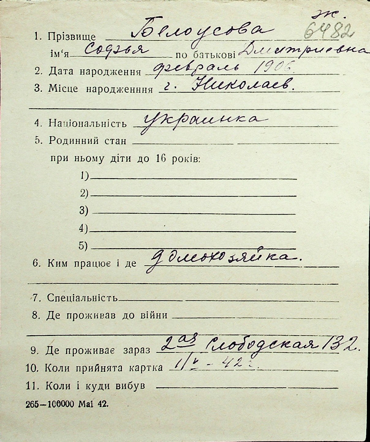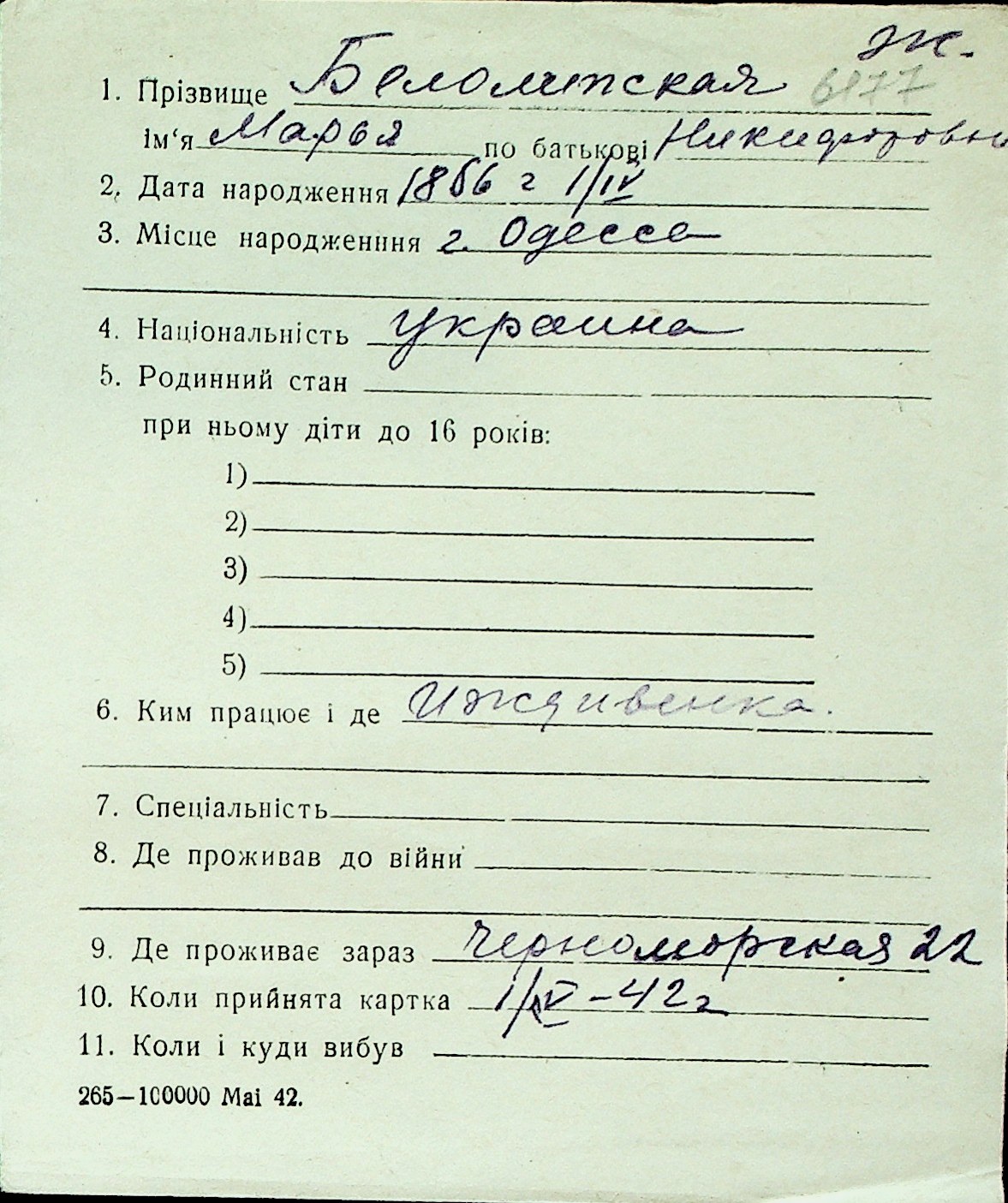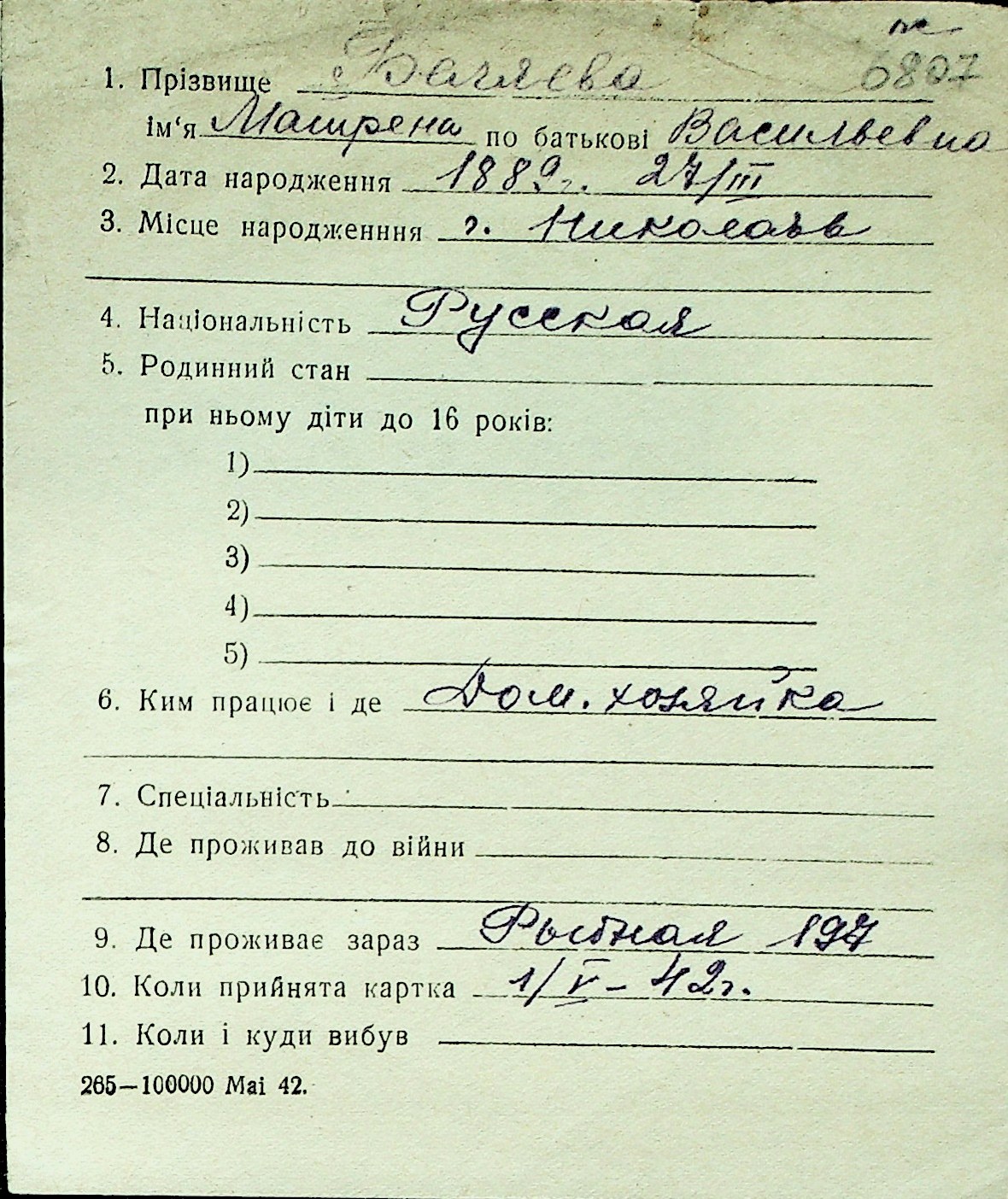 ◦ ◦ Перелік карток на осіб, які мешкали у м. Миколаїв у період окупації 1941–1944 років