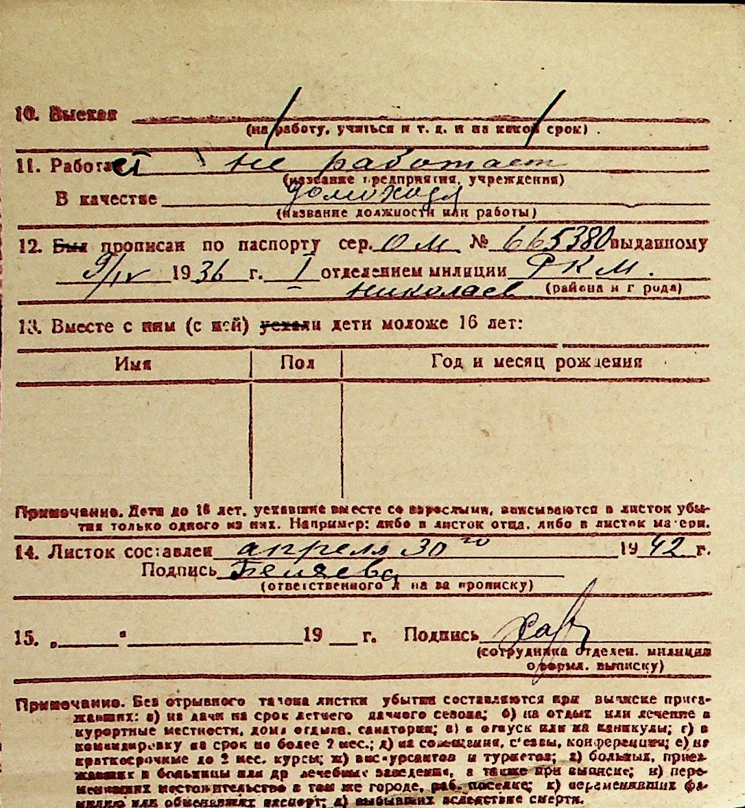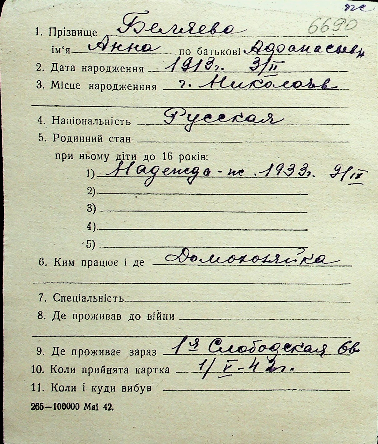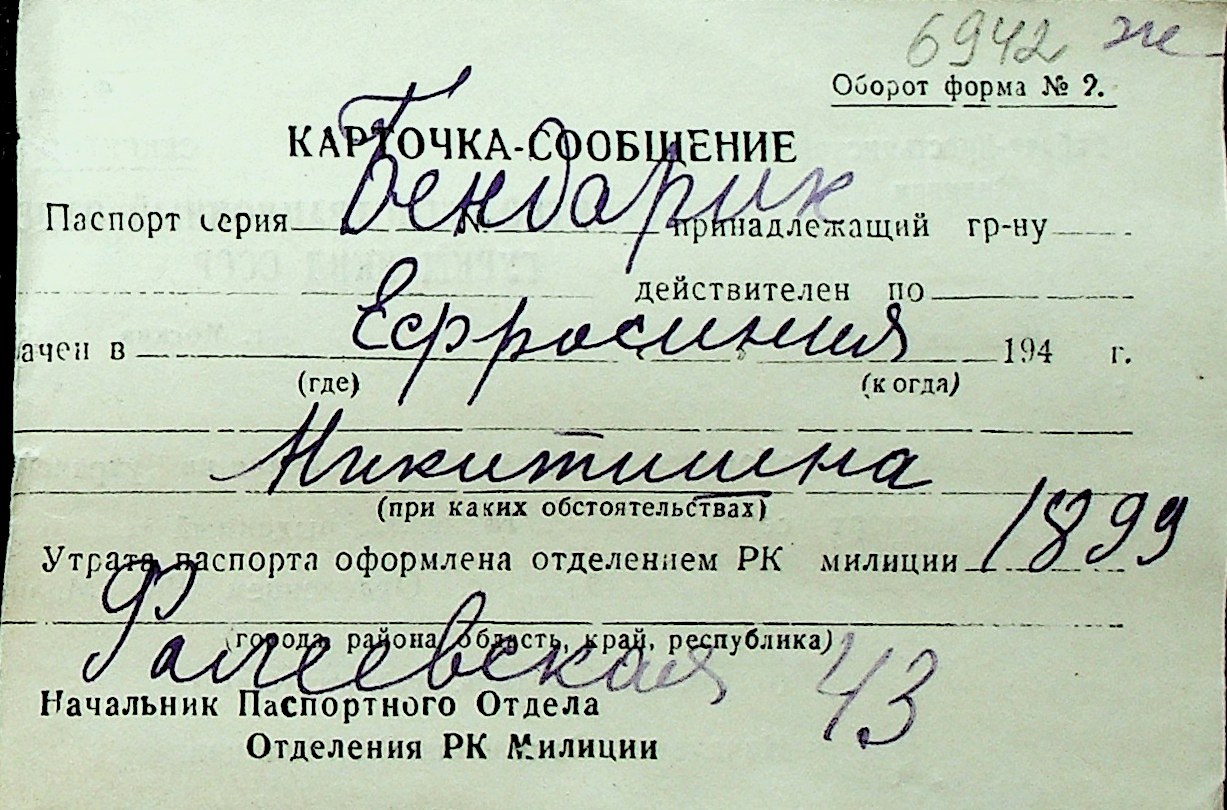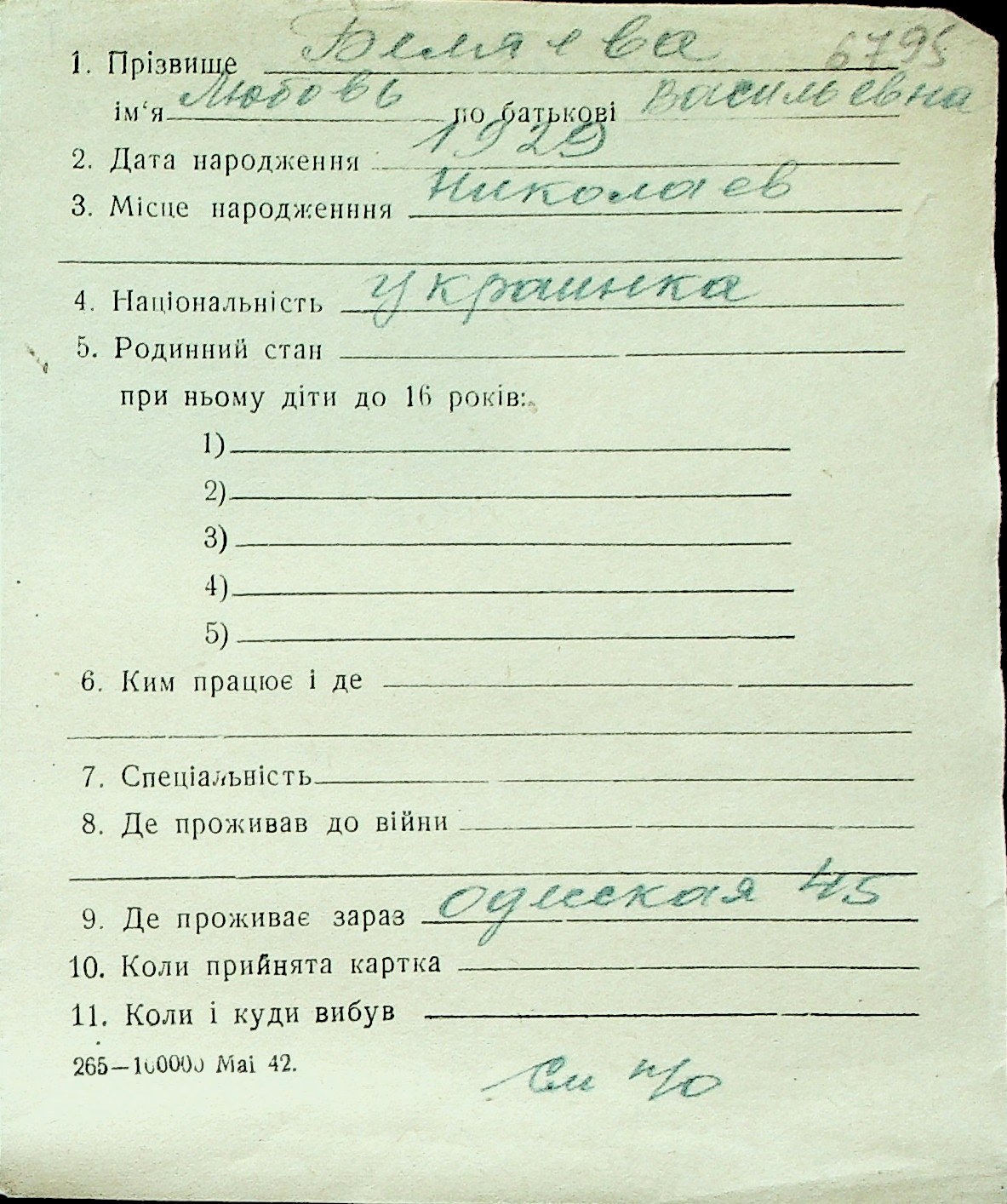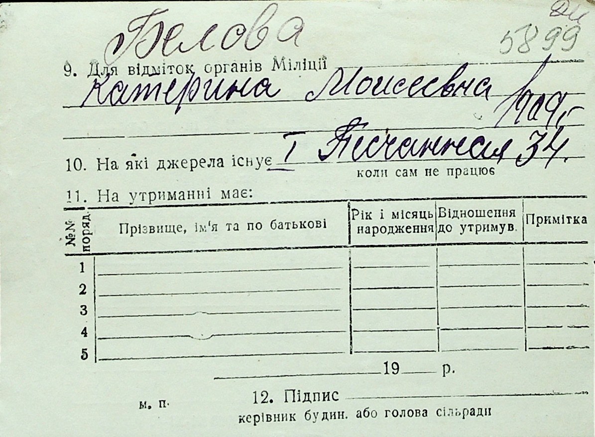 ◦ ◦ Перелік карток на осіб, які мешкали у м. Миколаїв у період окупації 1941–1944 років