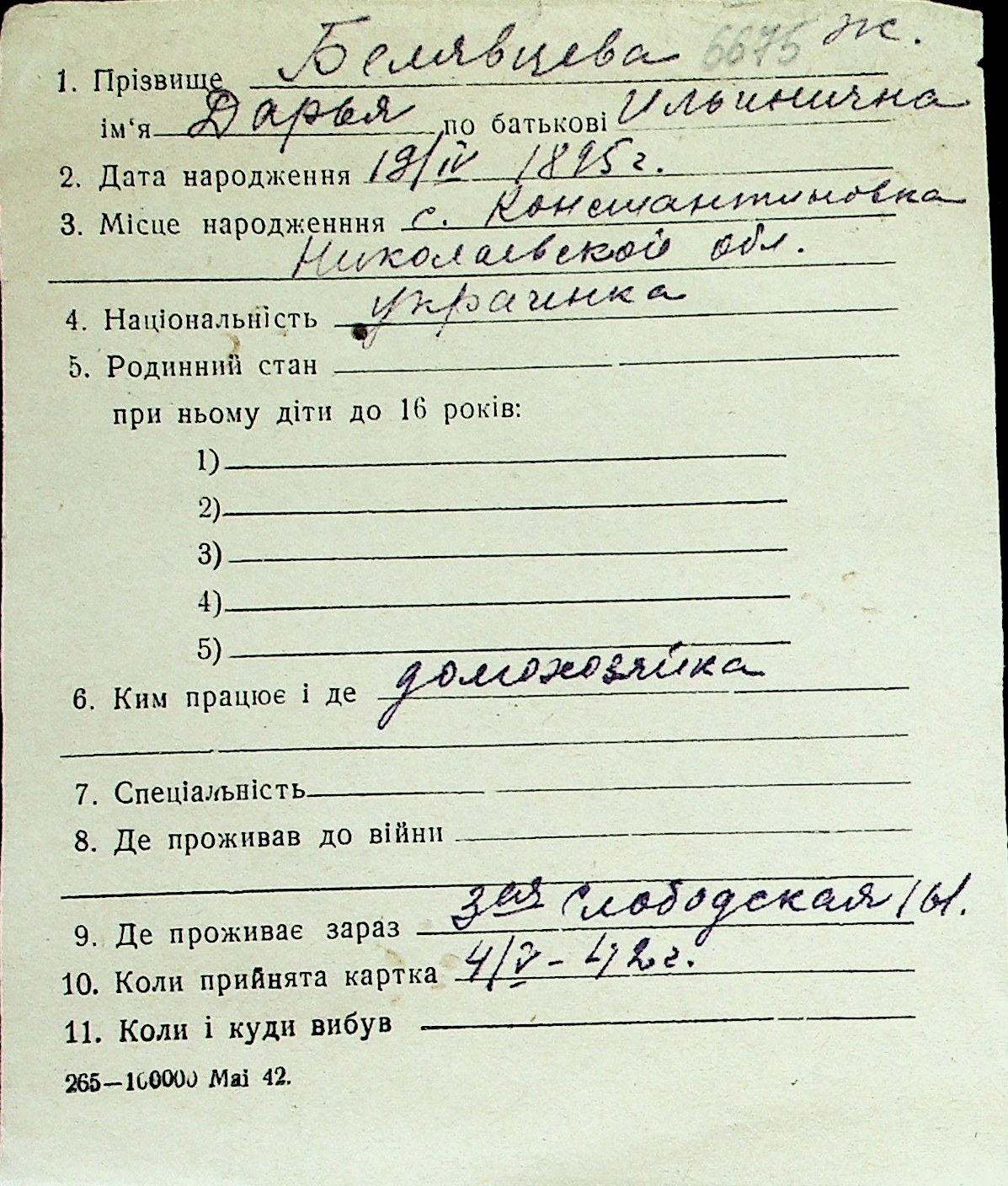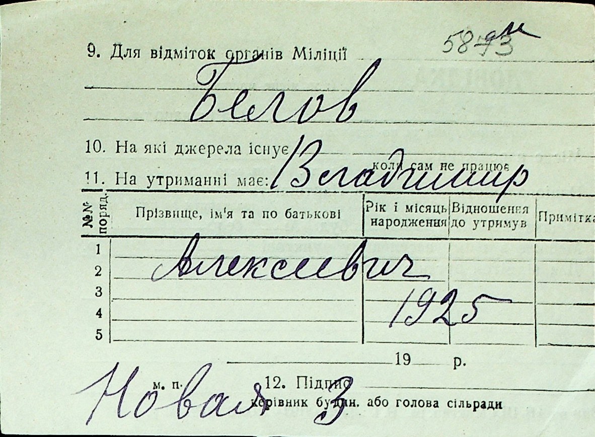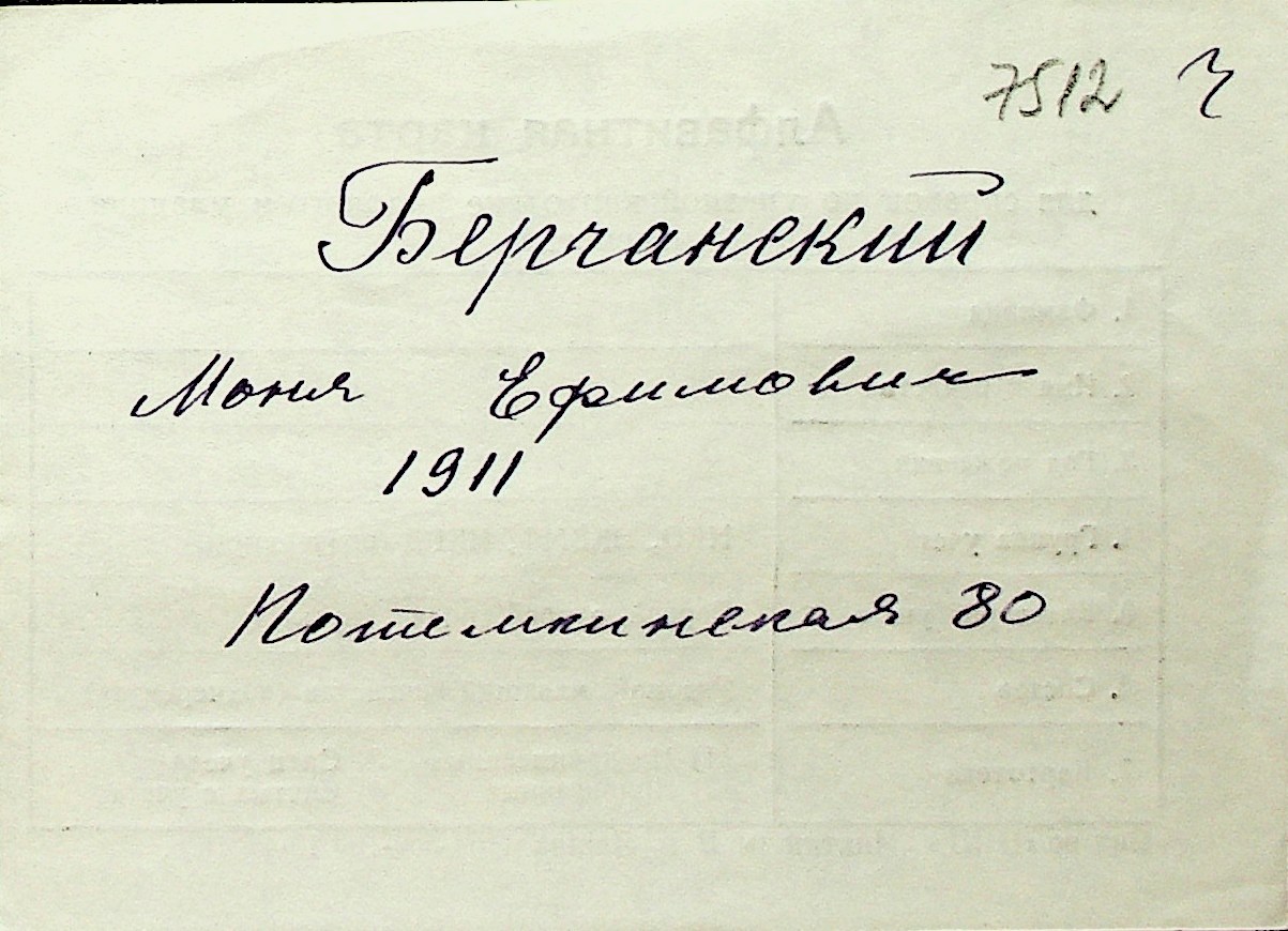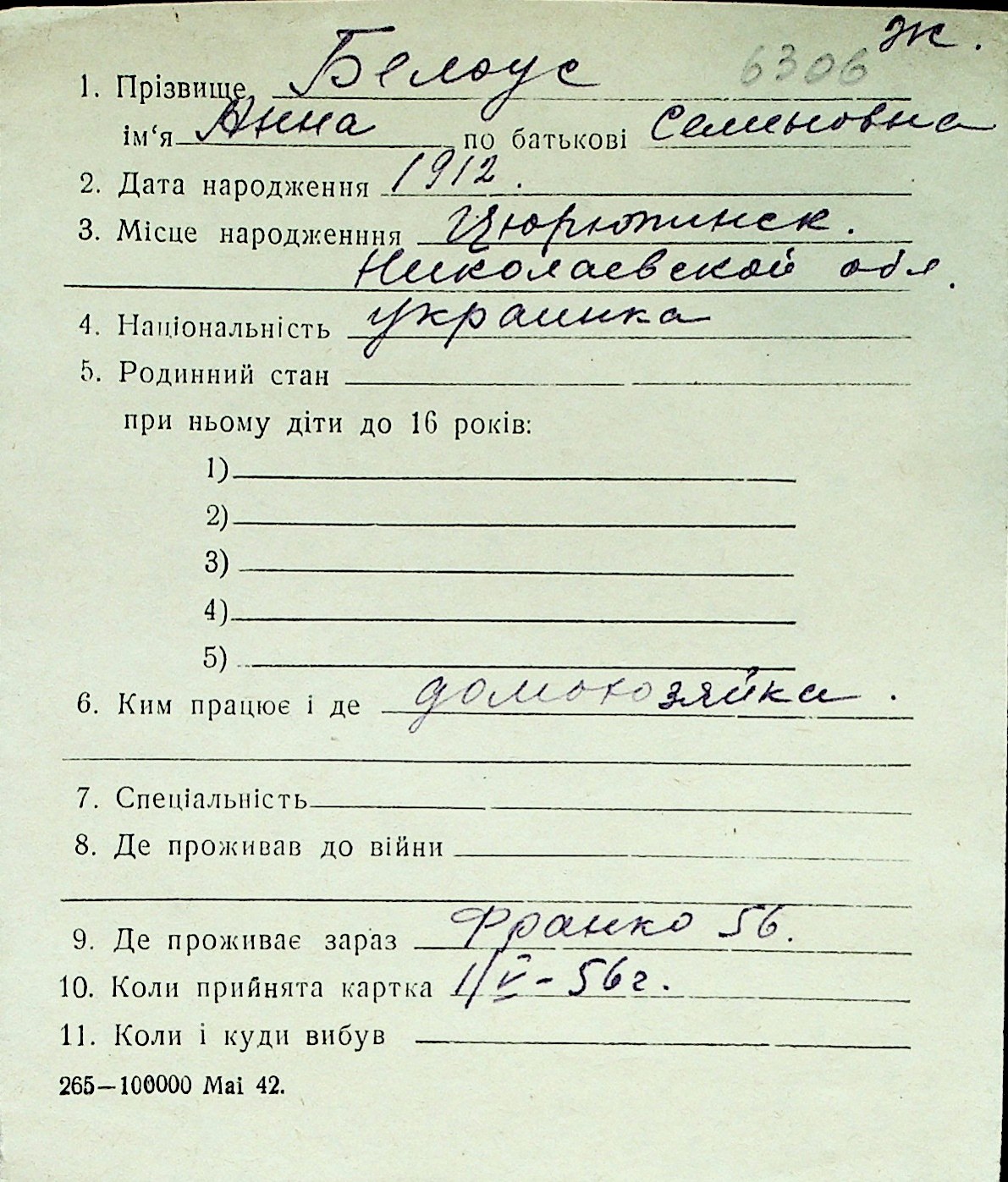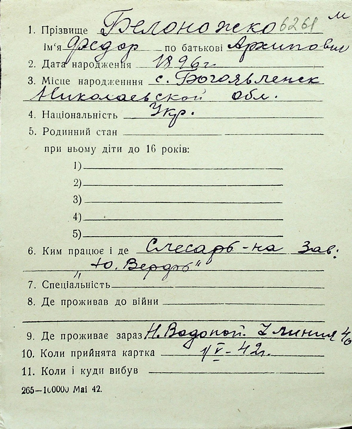 ◦ ◦ Перелік карток на осіб, які мешкали у м. Миколаїв у період окупації 1941–1944 років