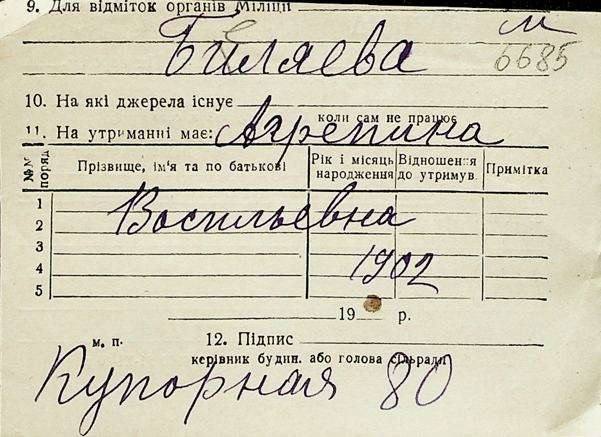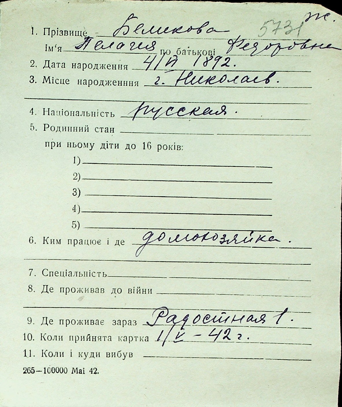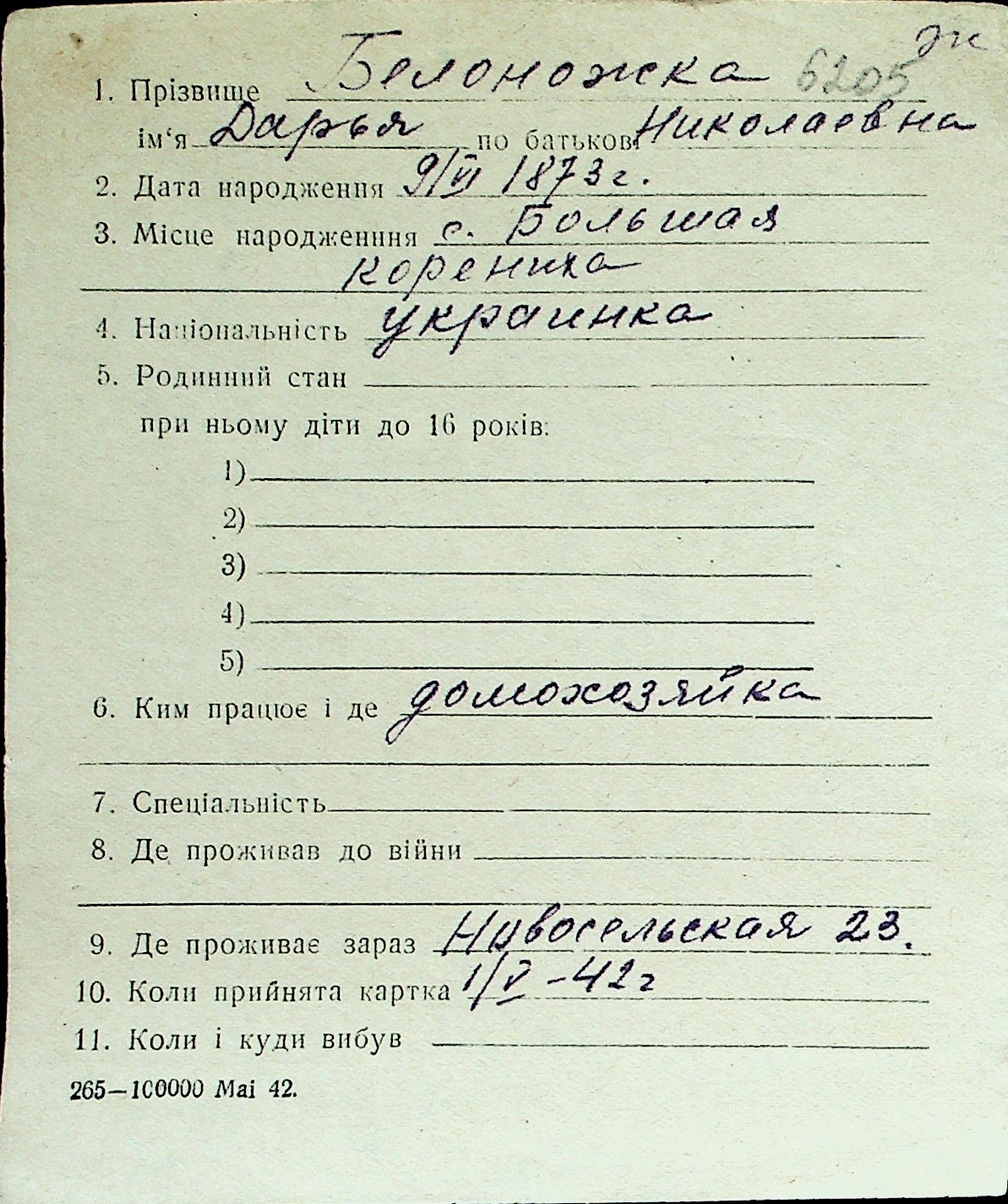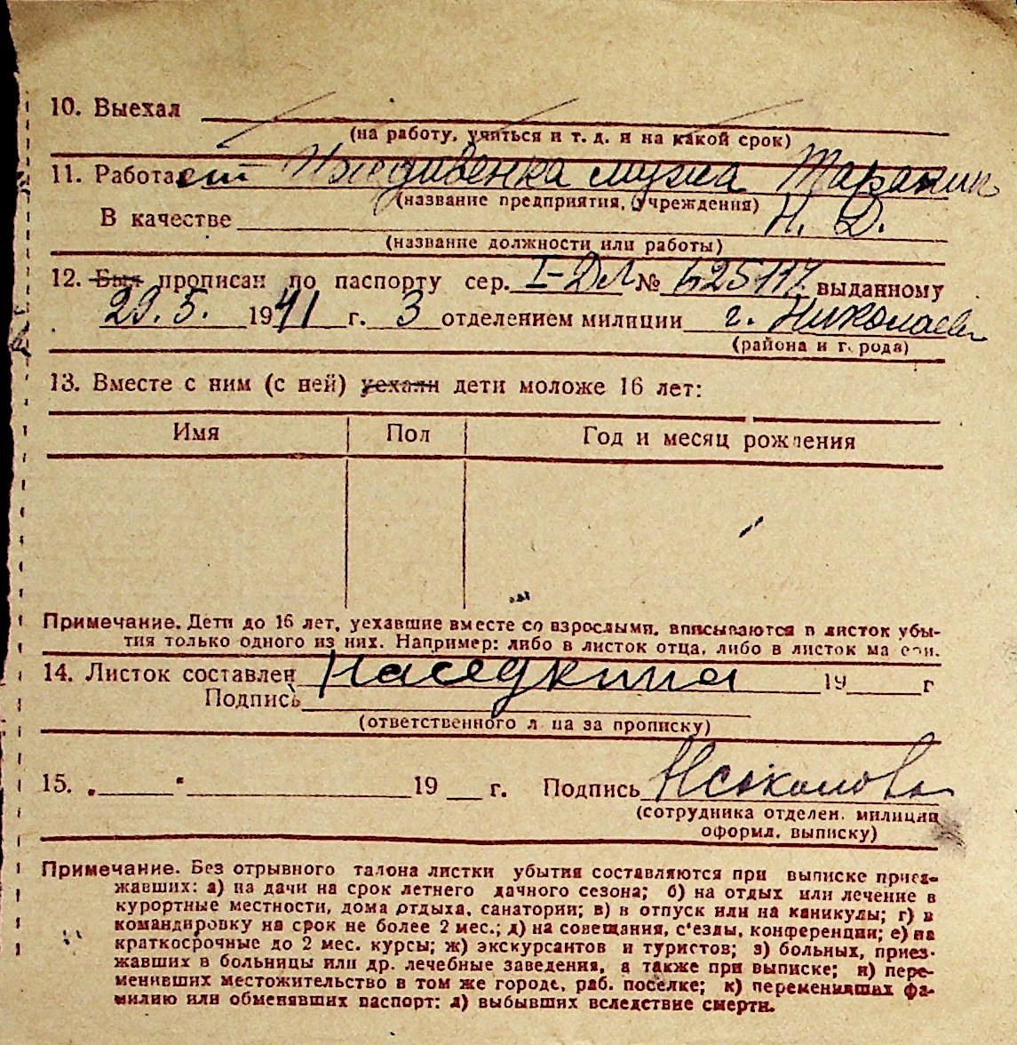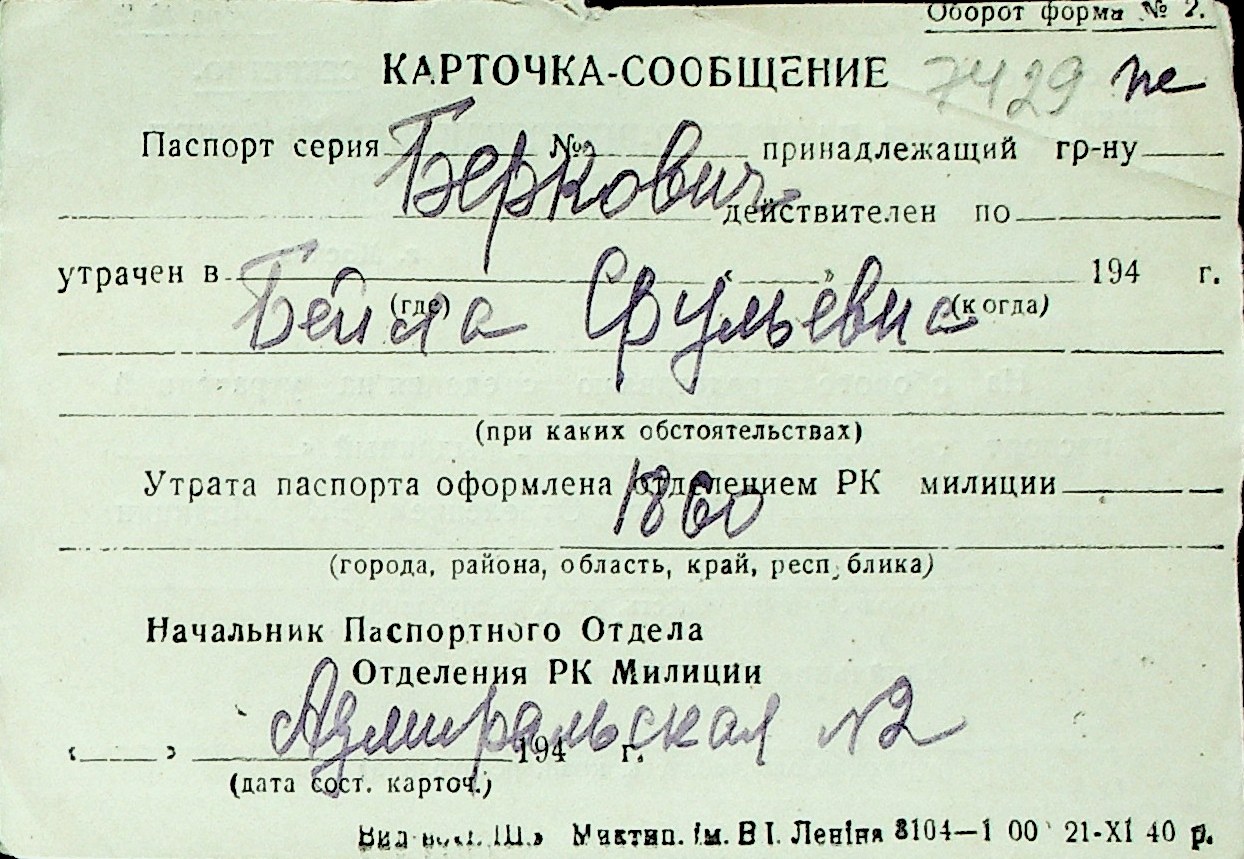 ◦ ◦ Перелік карток на осіб, які мешкали у м. Миколаїв у період окупації 1941–1944 років