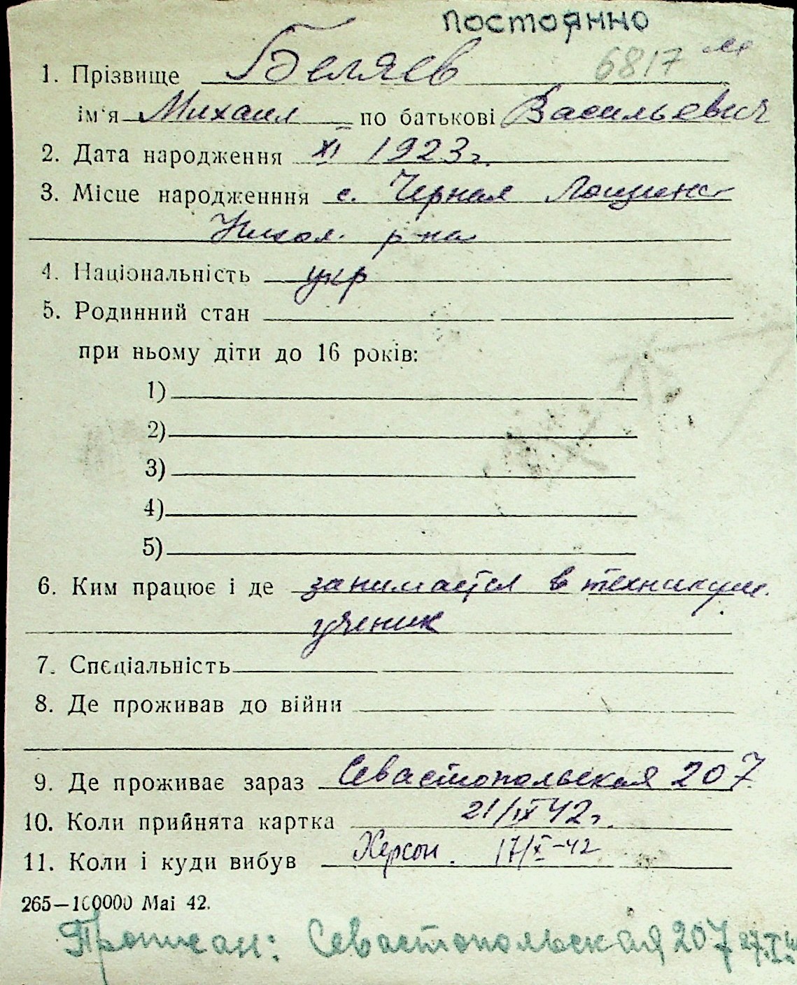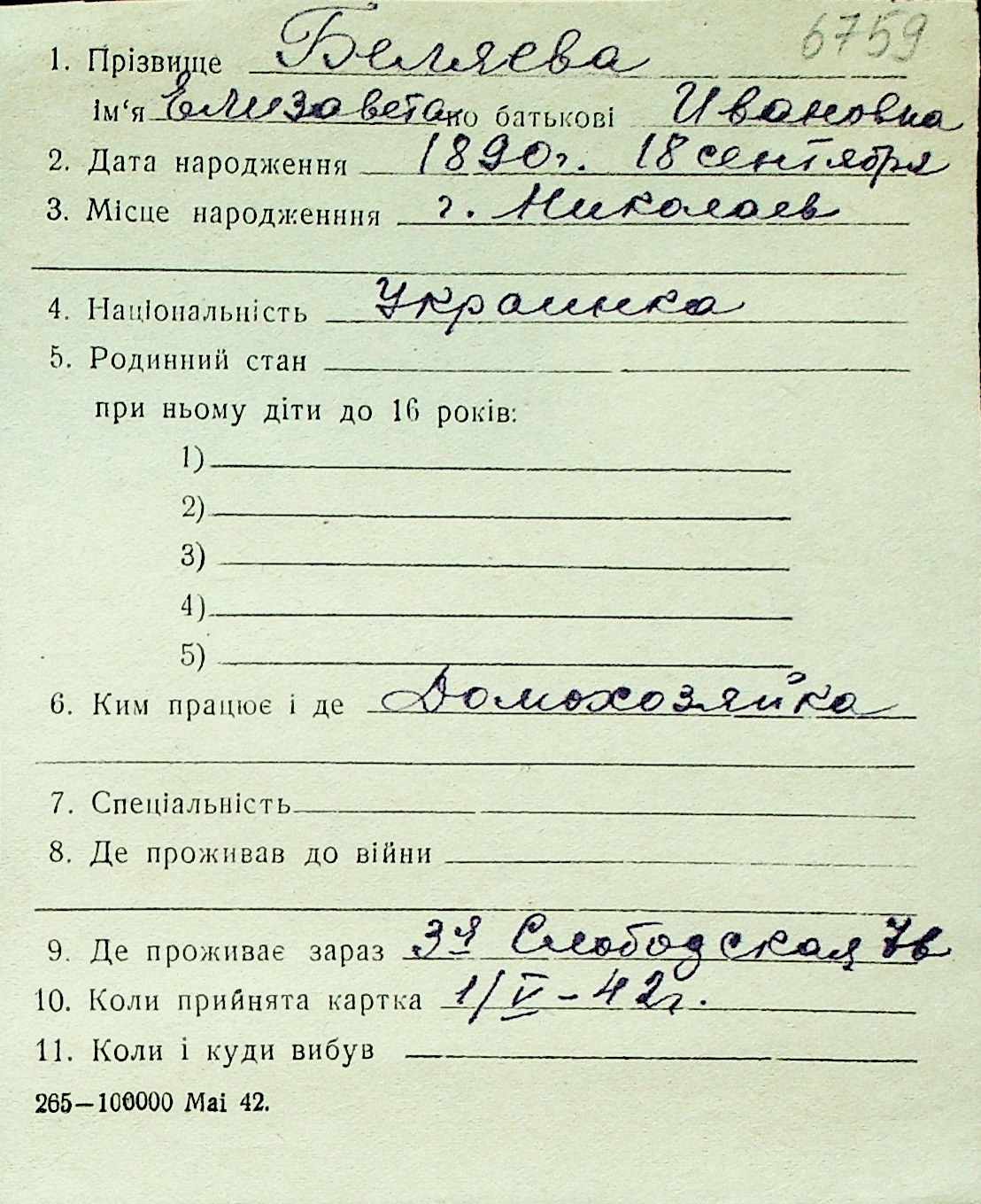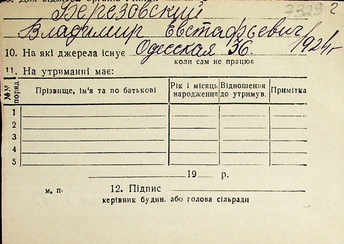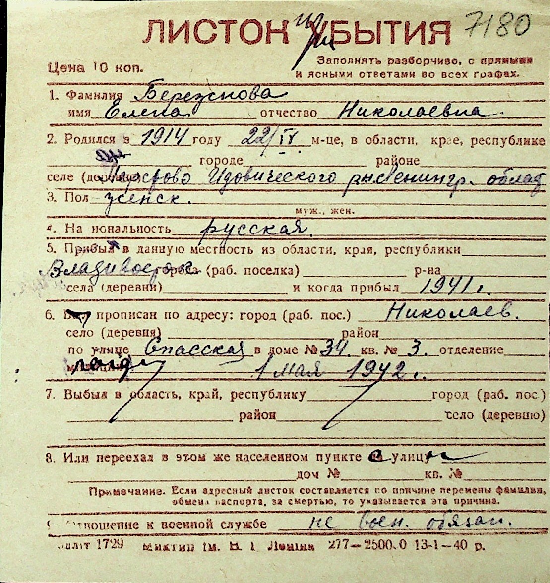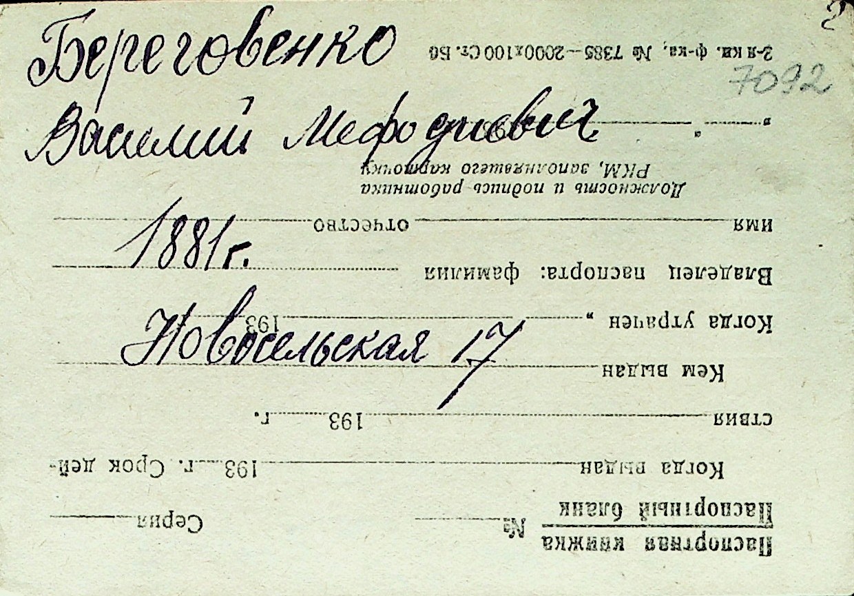 ◦ ◦ Перелік карток на осіб, які мешкали у м. Миколаїв у період окупації 1941–1944 років