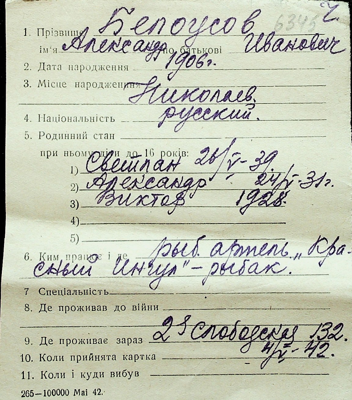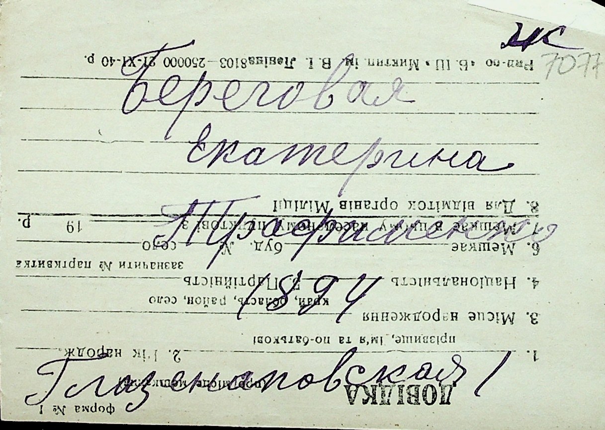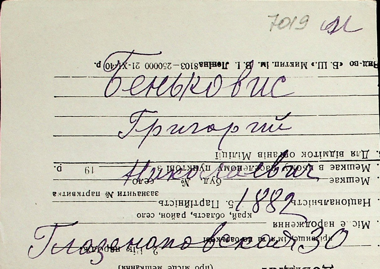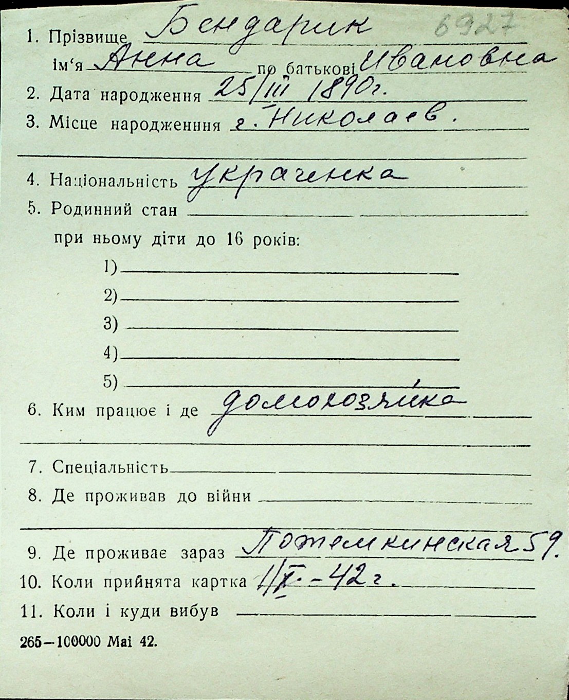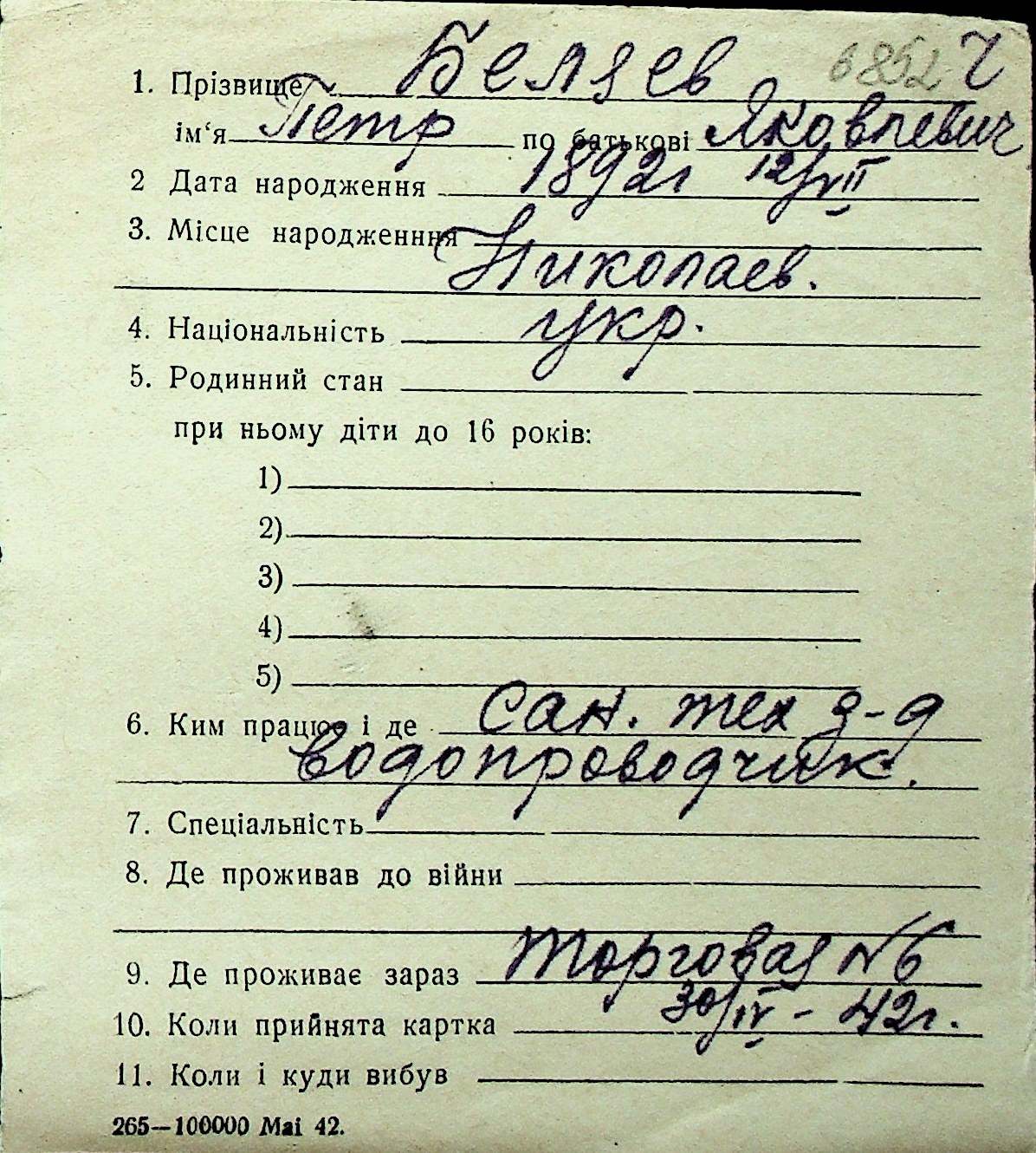 ◦ ◦ Перелік карток на осіб, які мешкали у м. Миколаїв у період окупації 1941–1944 років