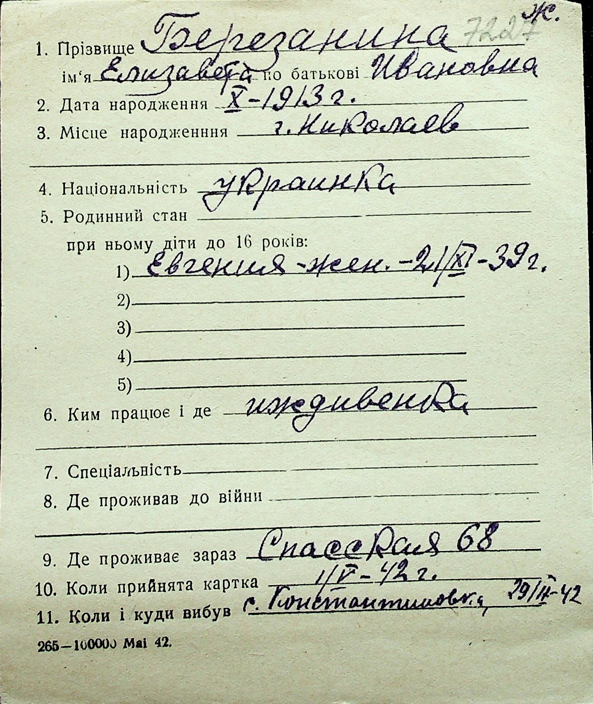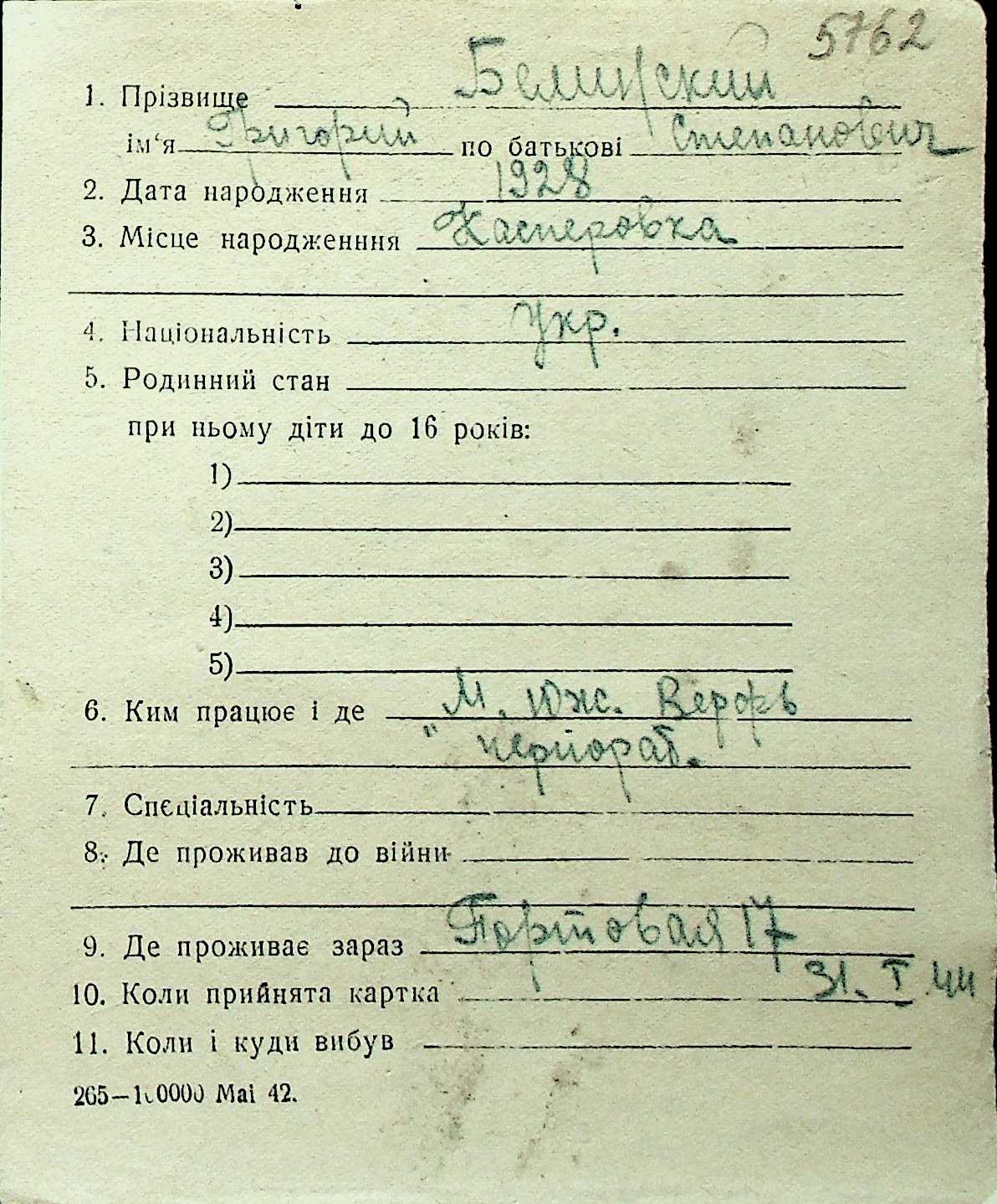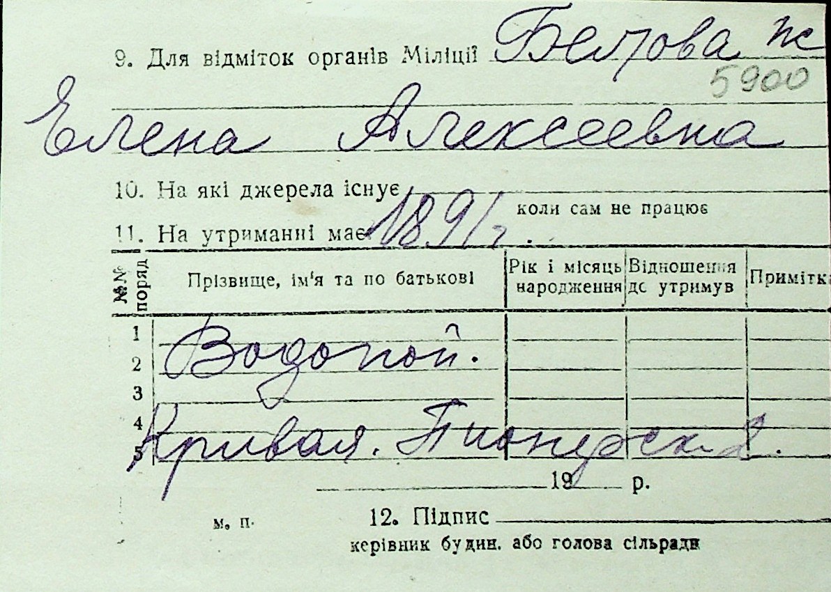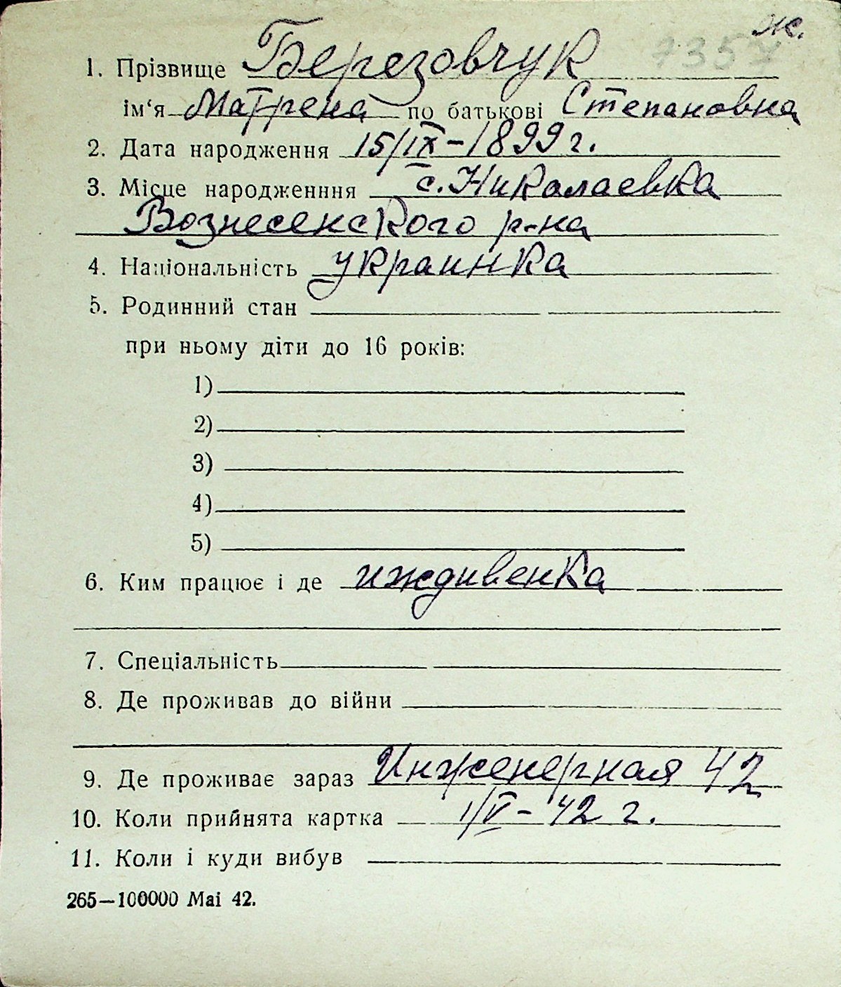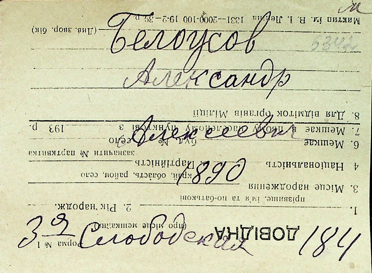 ◦ ◦ Перелік карток на осіб, які мешкали у м. Миколаїв у період окупації 1941–1944 років