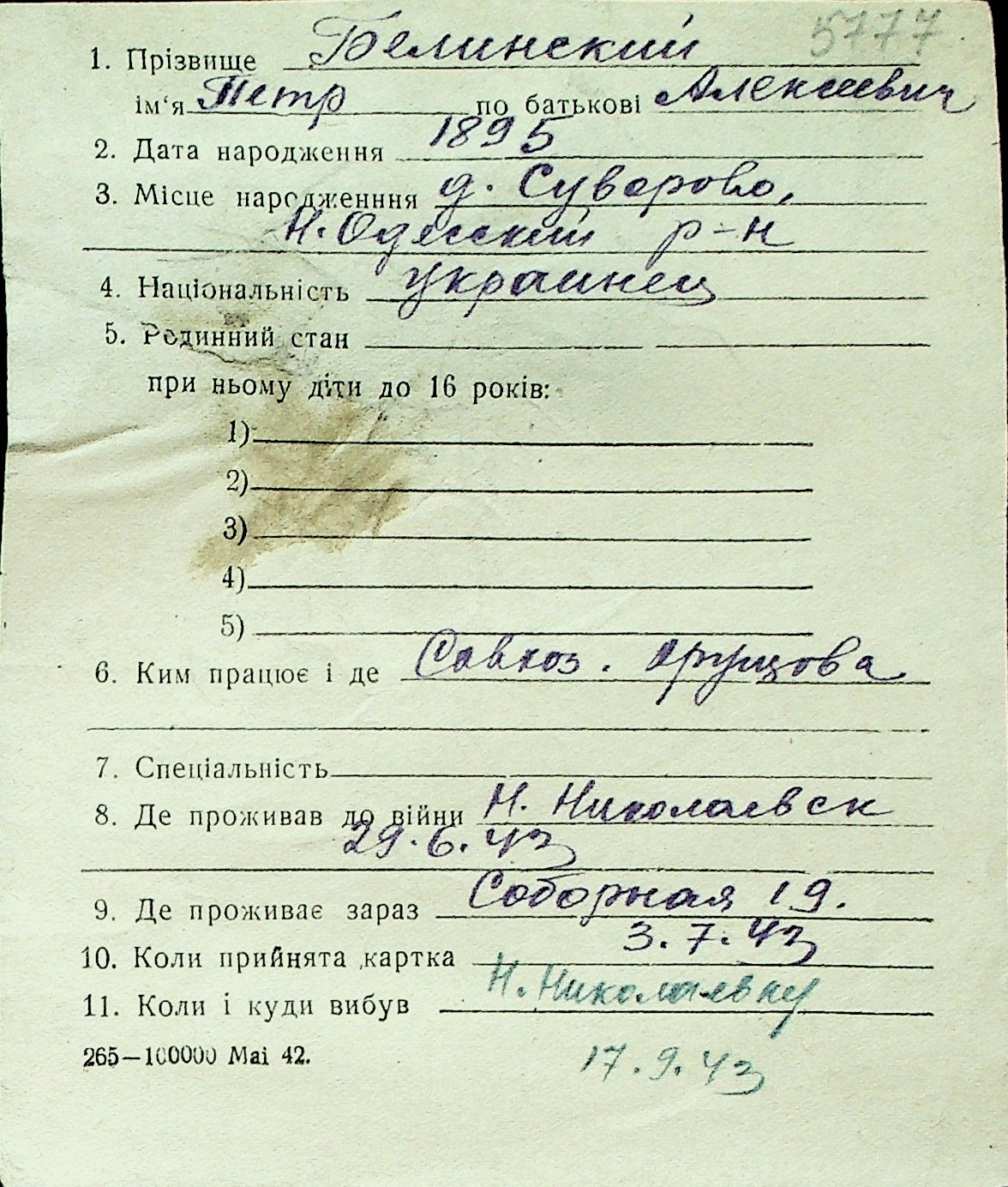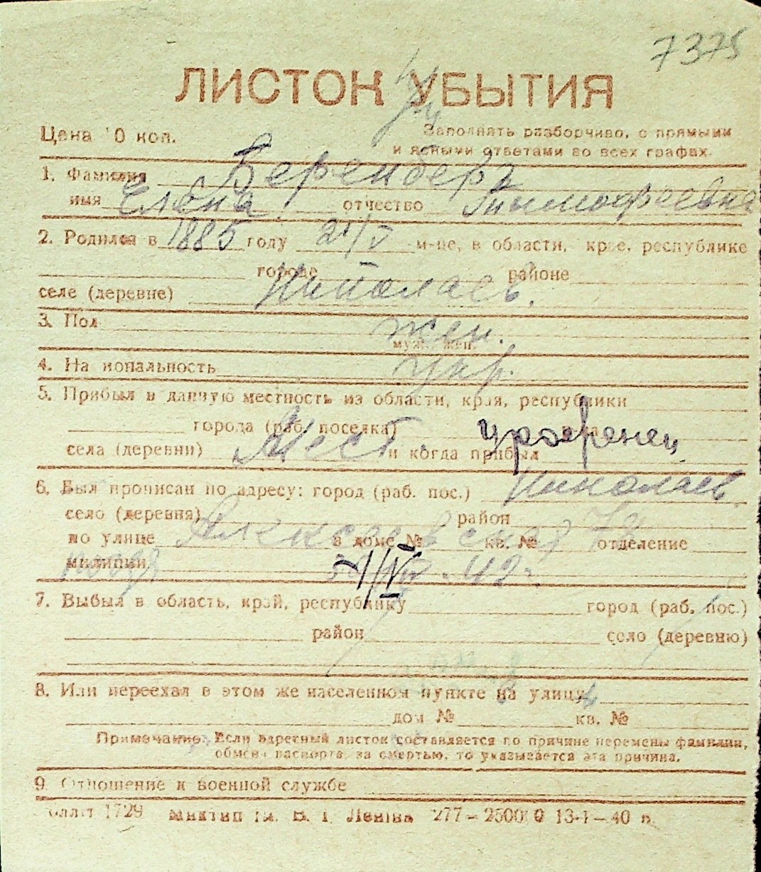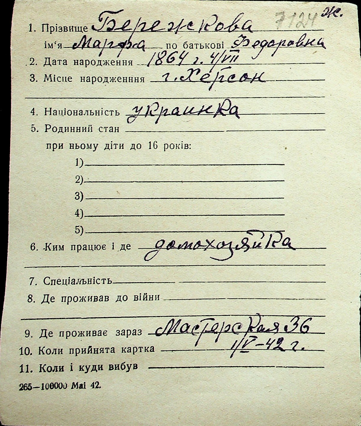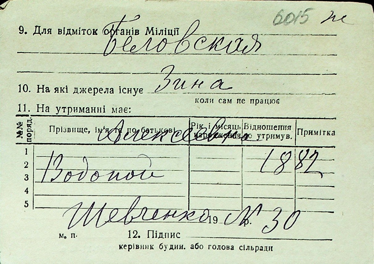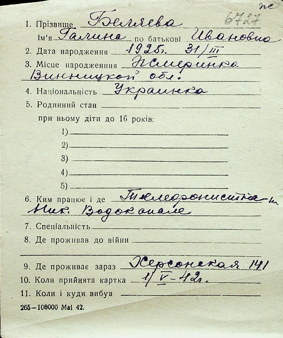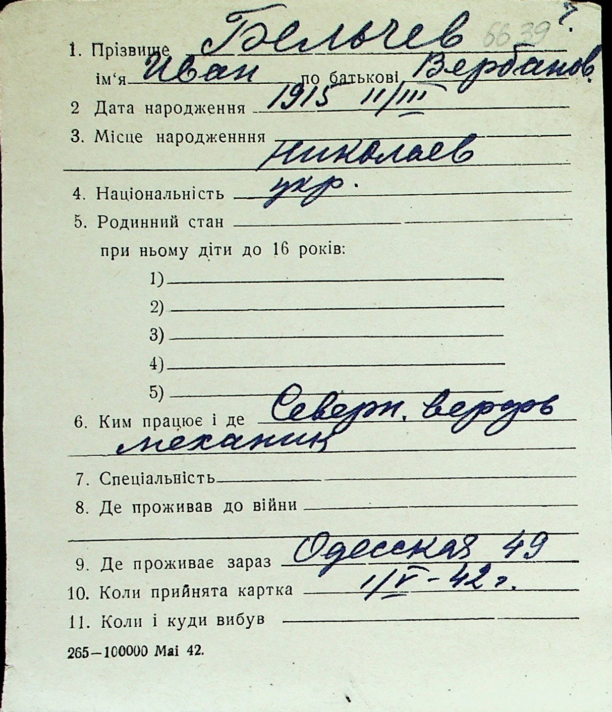 ◦ ◦ Перелік карток на осіб, які мешкали у м. Миколаїв у період окупації 1941–1944 років